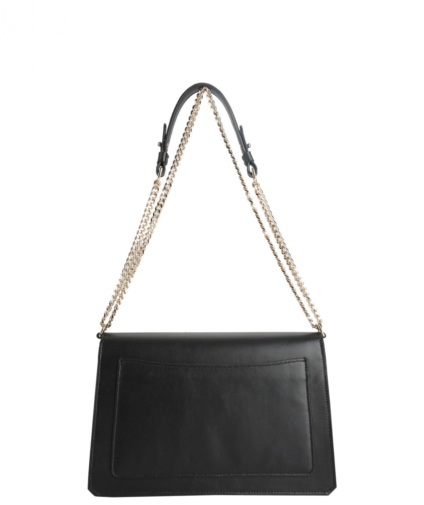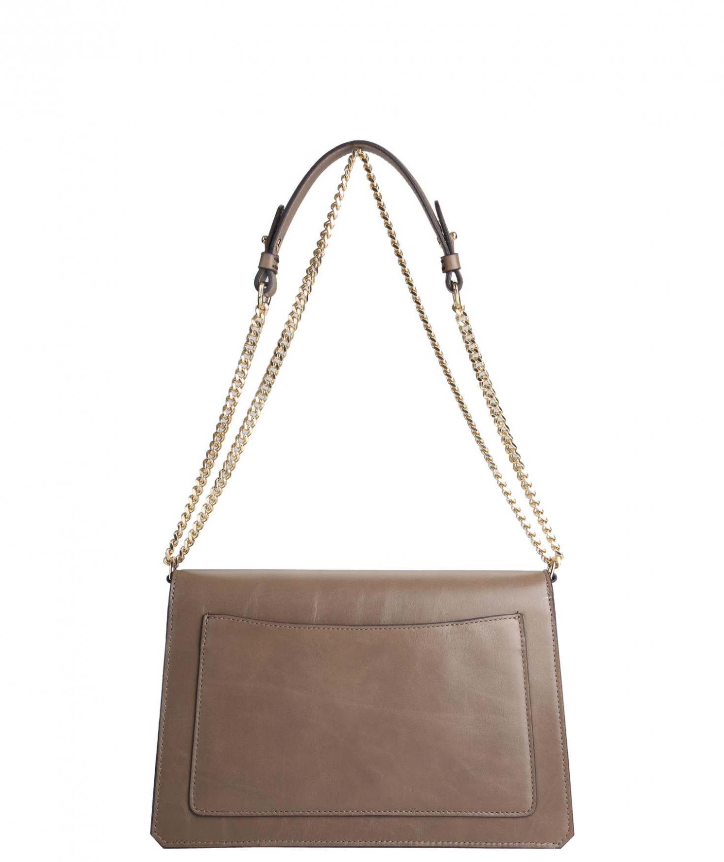 Sac esprit cartable porté main ou épaule grâce à sa bandoulière réglable et amovible. Fermeture par un rabat à fermoir. A l'intérieur, deux compartiments et une grande poche sous le rabat. Une poche zippée et deux poches plaquées. Poche extérieure derrière. Bijouterie finition dorée.