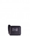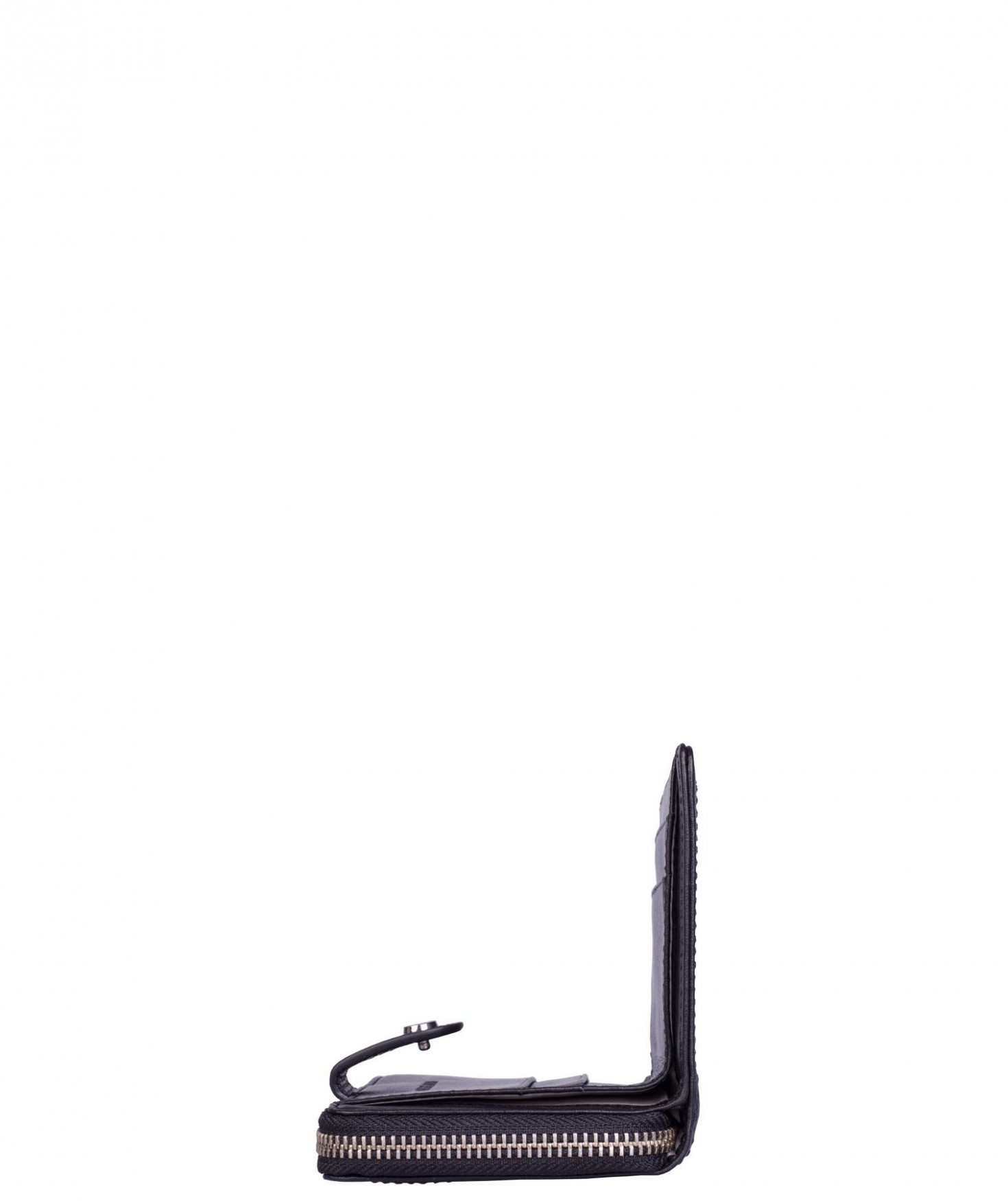 Petit portefeuille avec 1 porte-monnaie zippé. Nombreux emplacements cartes de crédit. Tirette en forme de pompon à franges. Bijouterie en métal argentée.