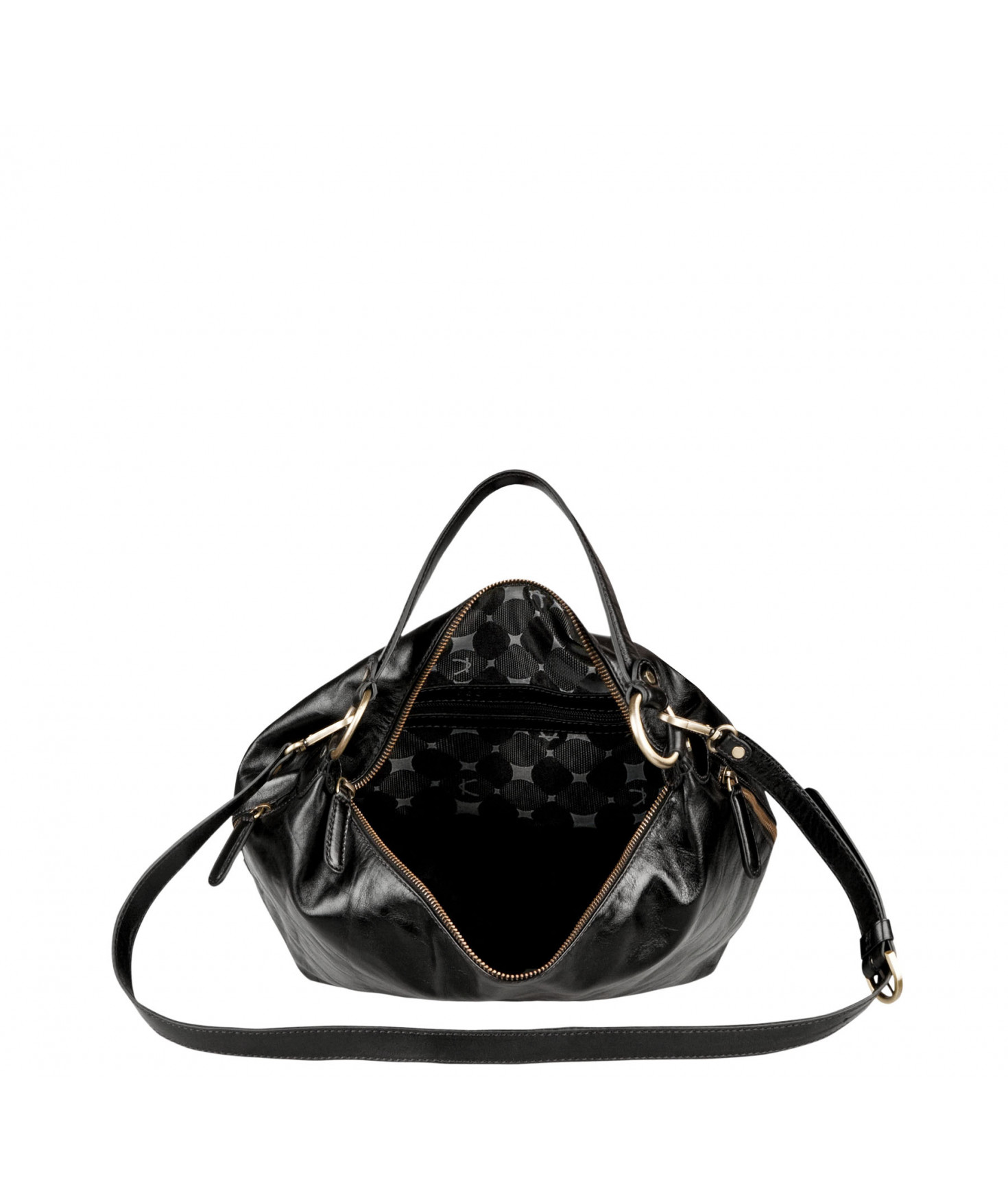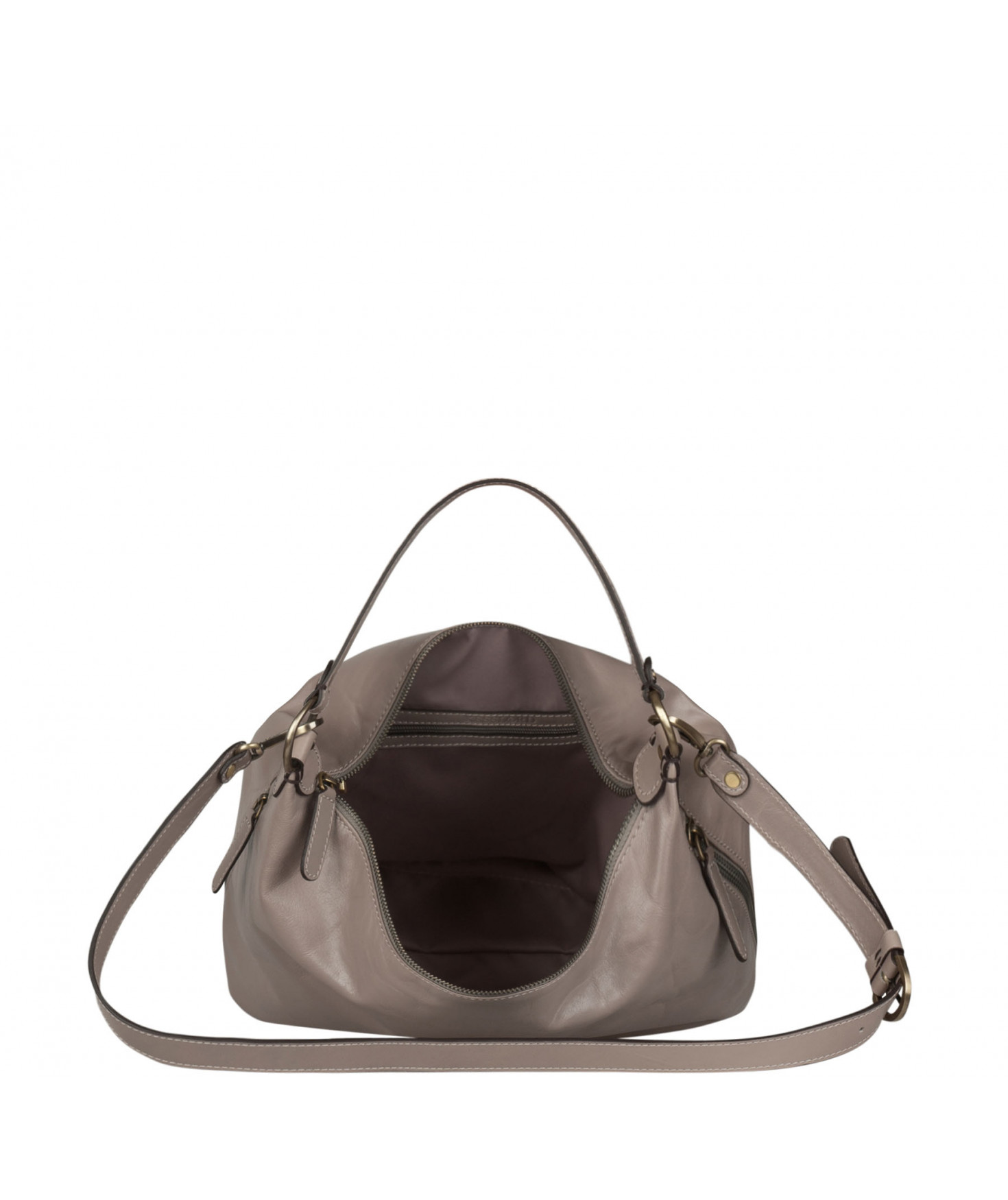Sac cabas double porter, main ou épaule, bandoulière amovible. A l'intérieur, 2 poches plaquées et une poche zippée.