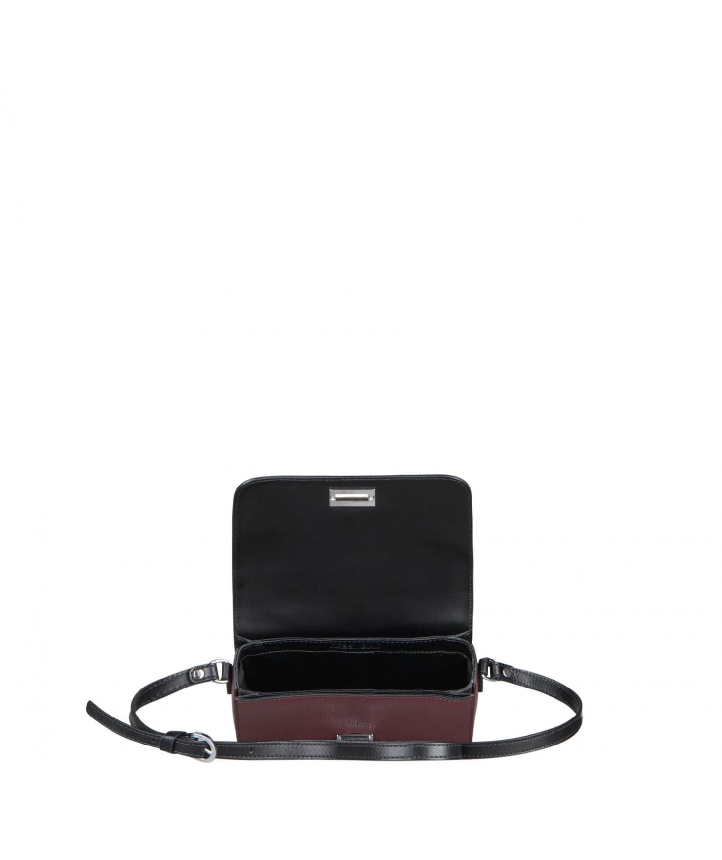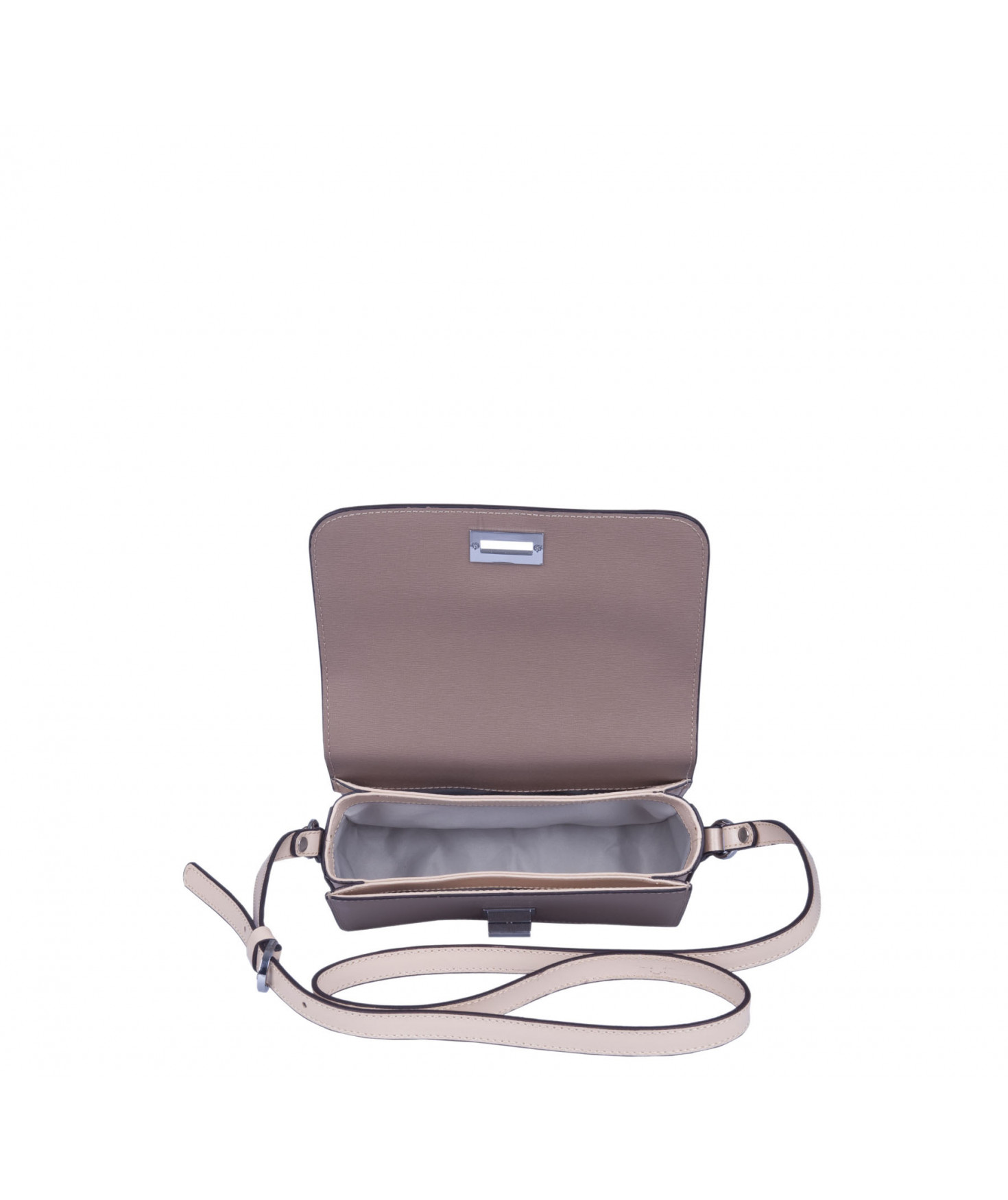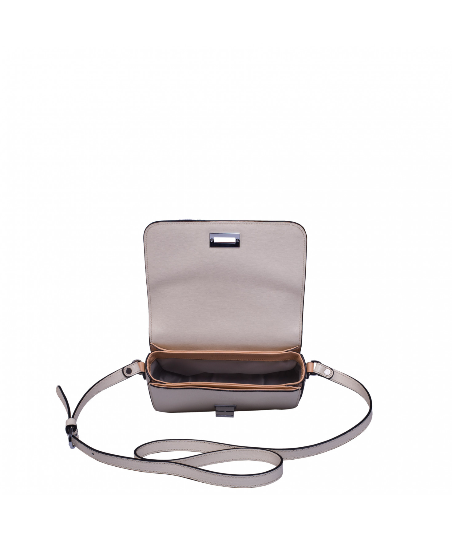 Intérieur 2 compartiments latéraux plaqués, compartiment central avec 1 poche zippée et 1 poche plaquée intérieure.