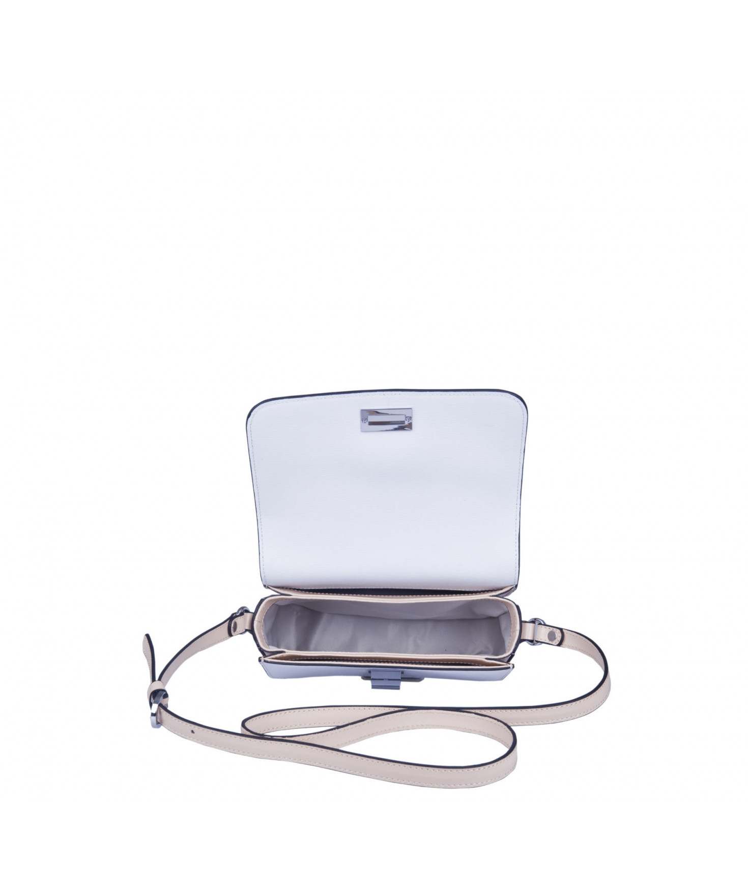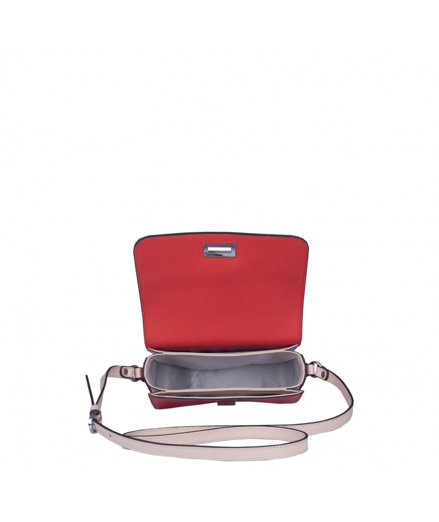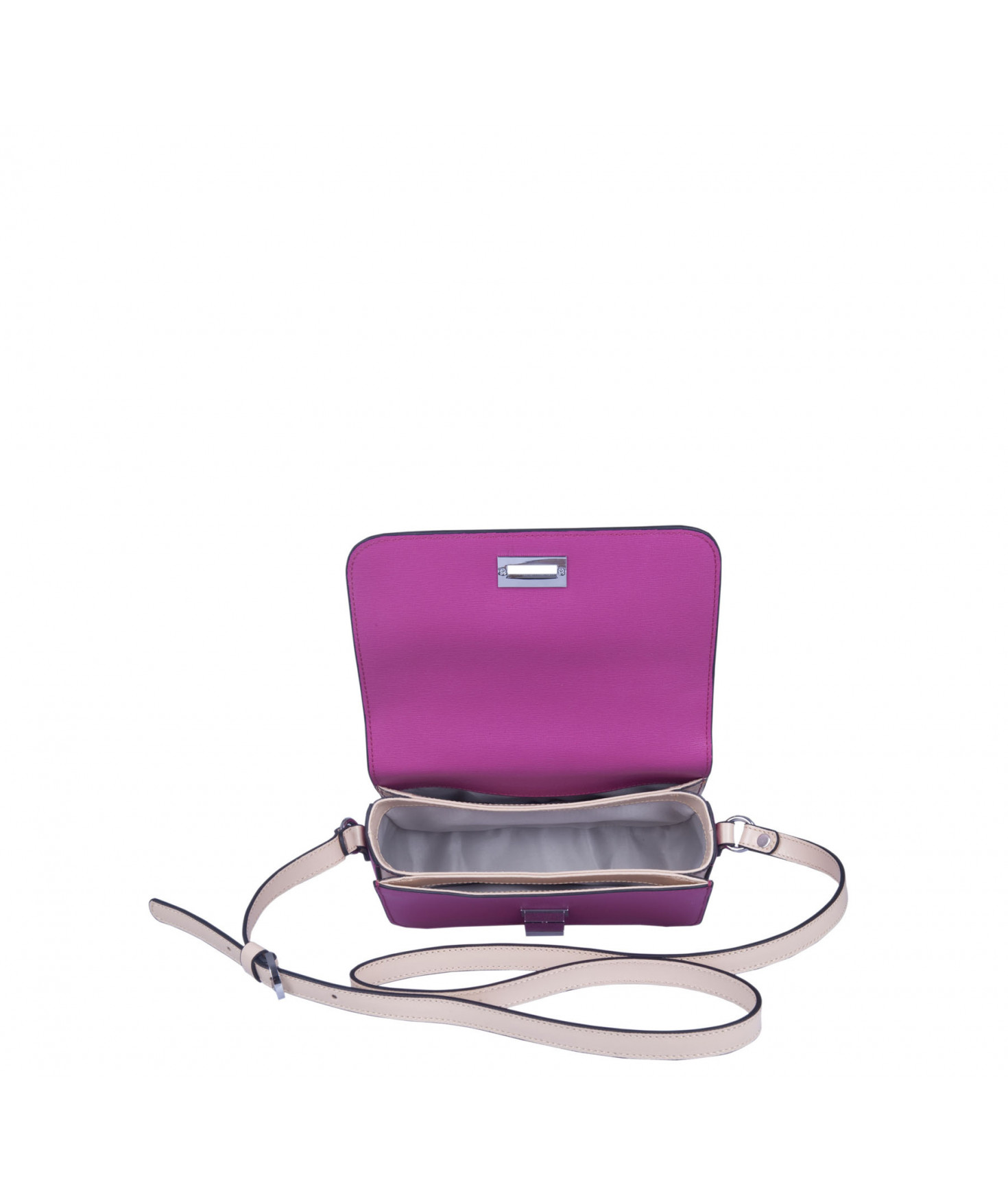 Intérieur 2 compartiments latéraux plaqués, compartiment central avec 1 poche zippée et 1 poche plaquée intérieure.