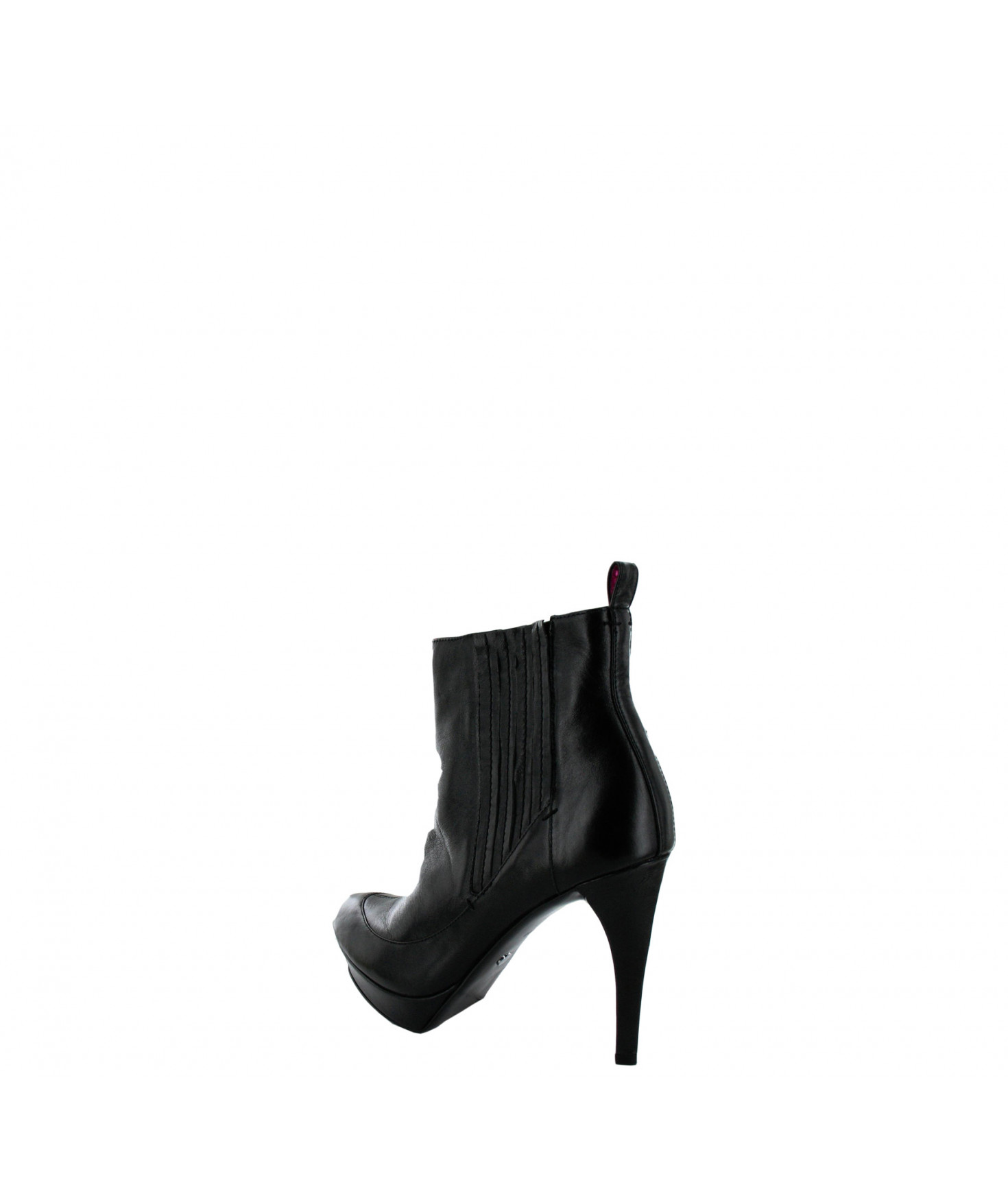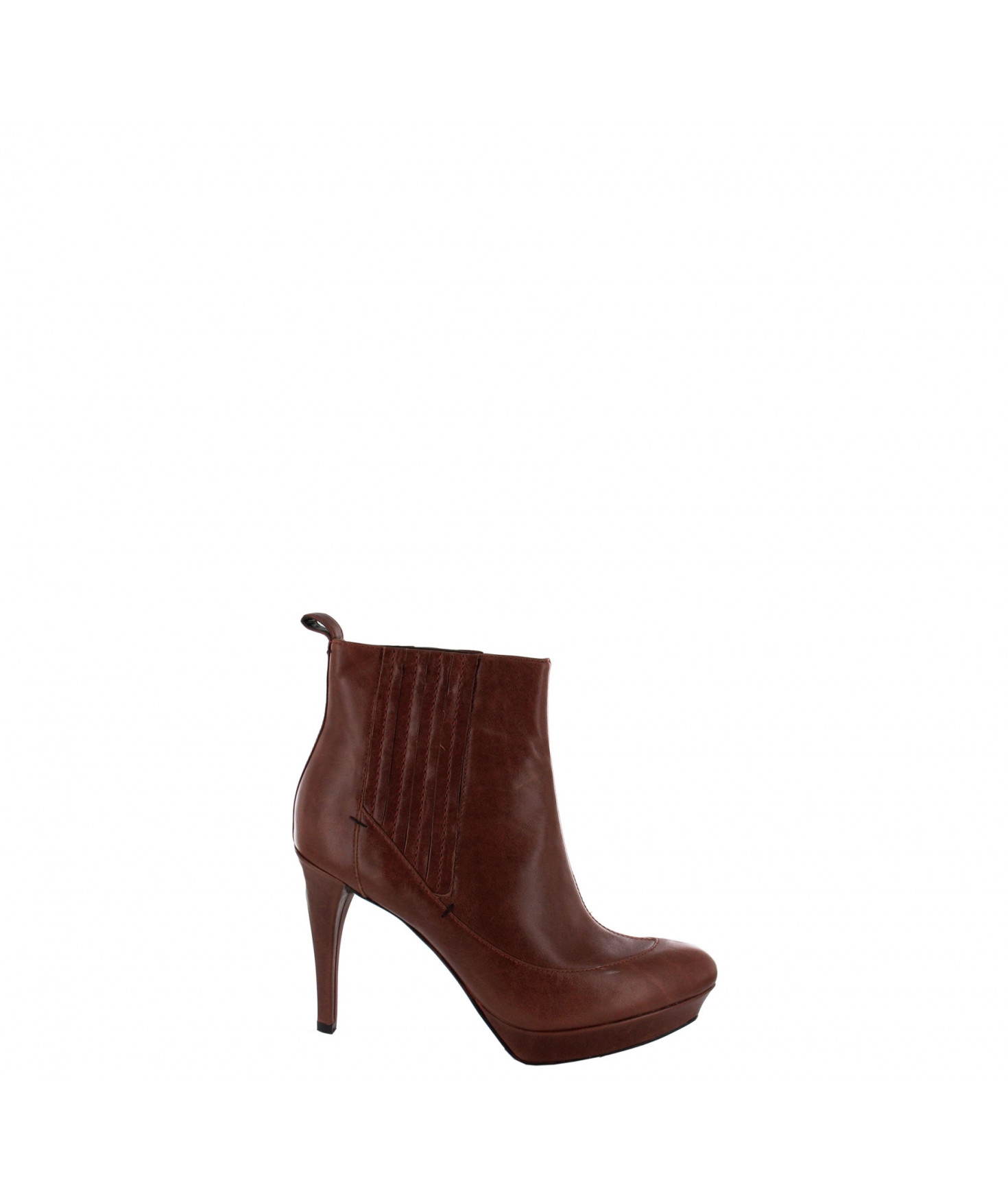 Cuir de vachette, semelle élastomère, hauteur de talon de 10 cm.