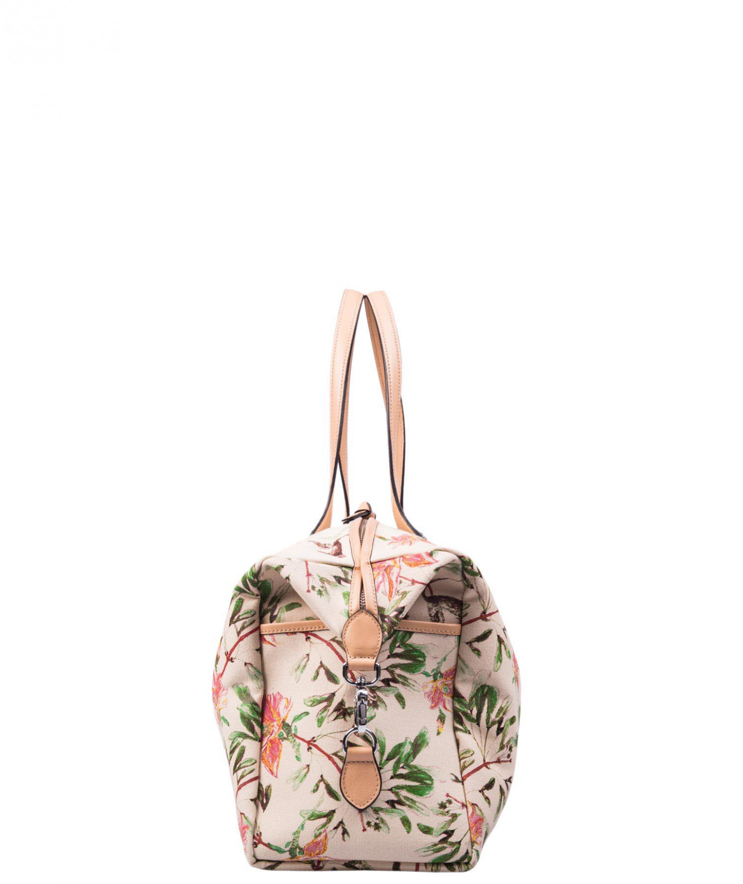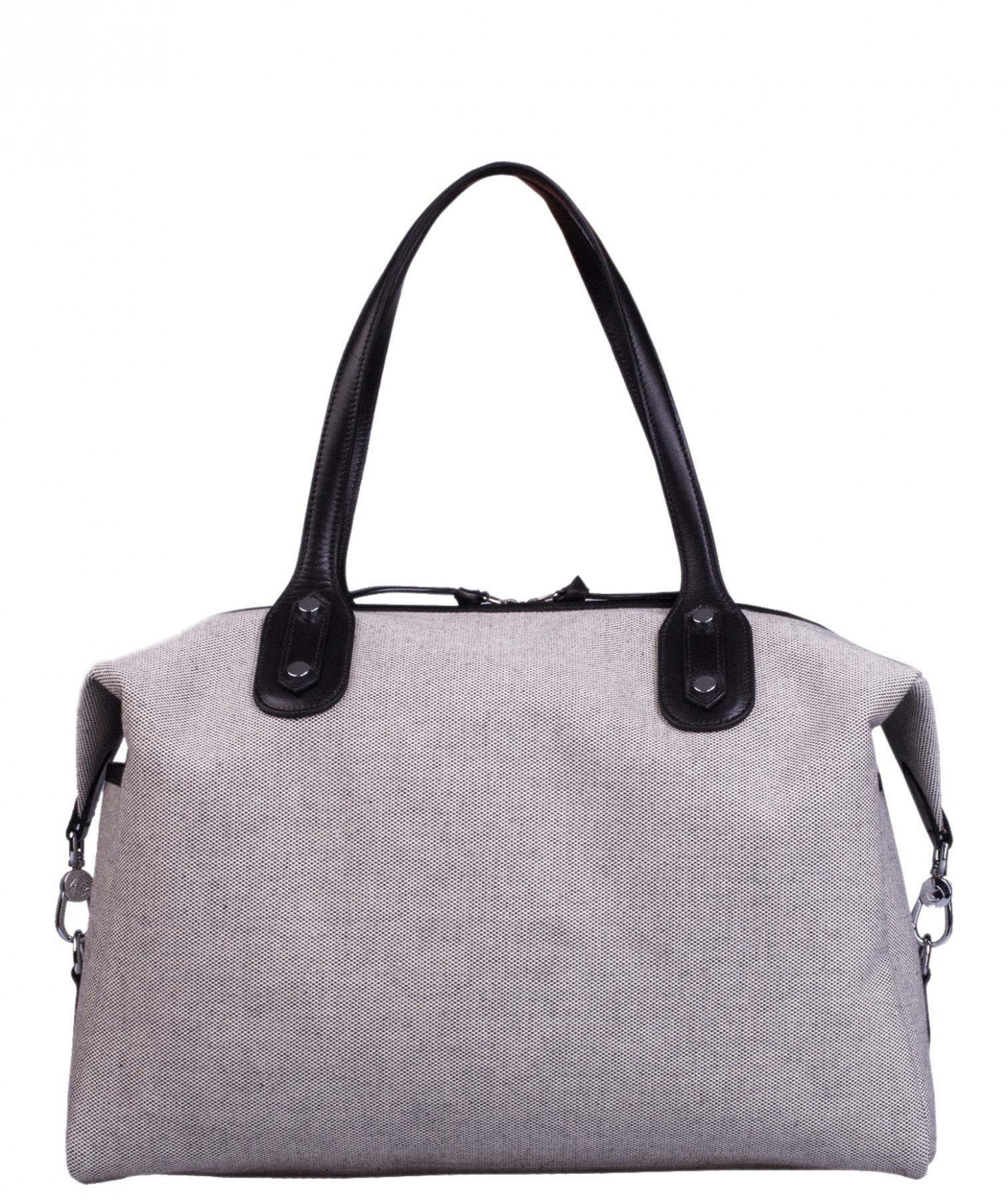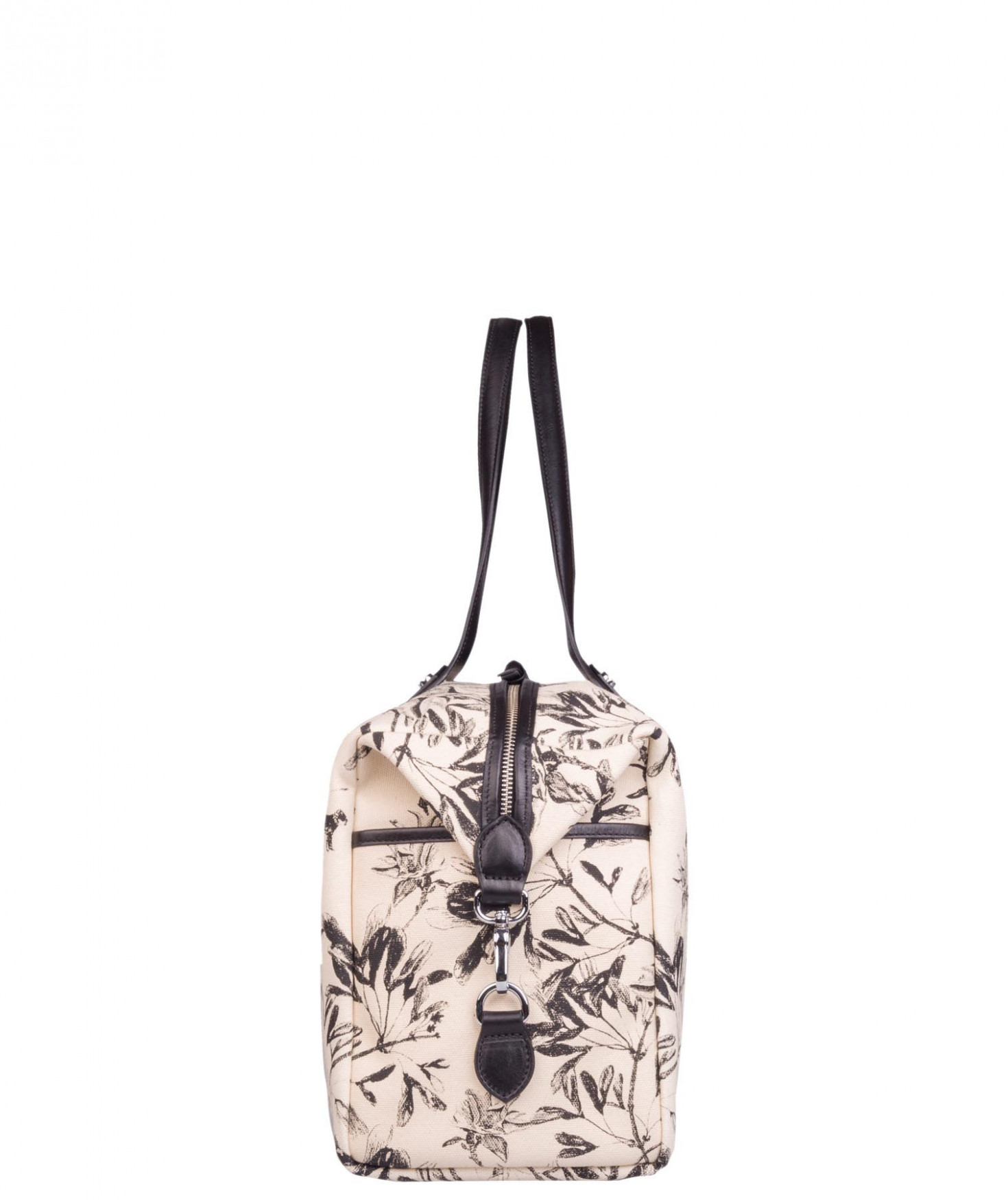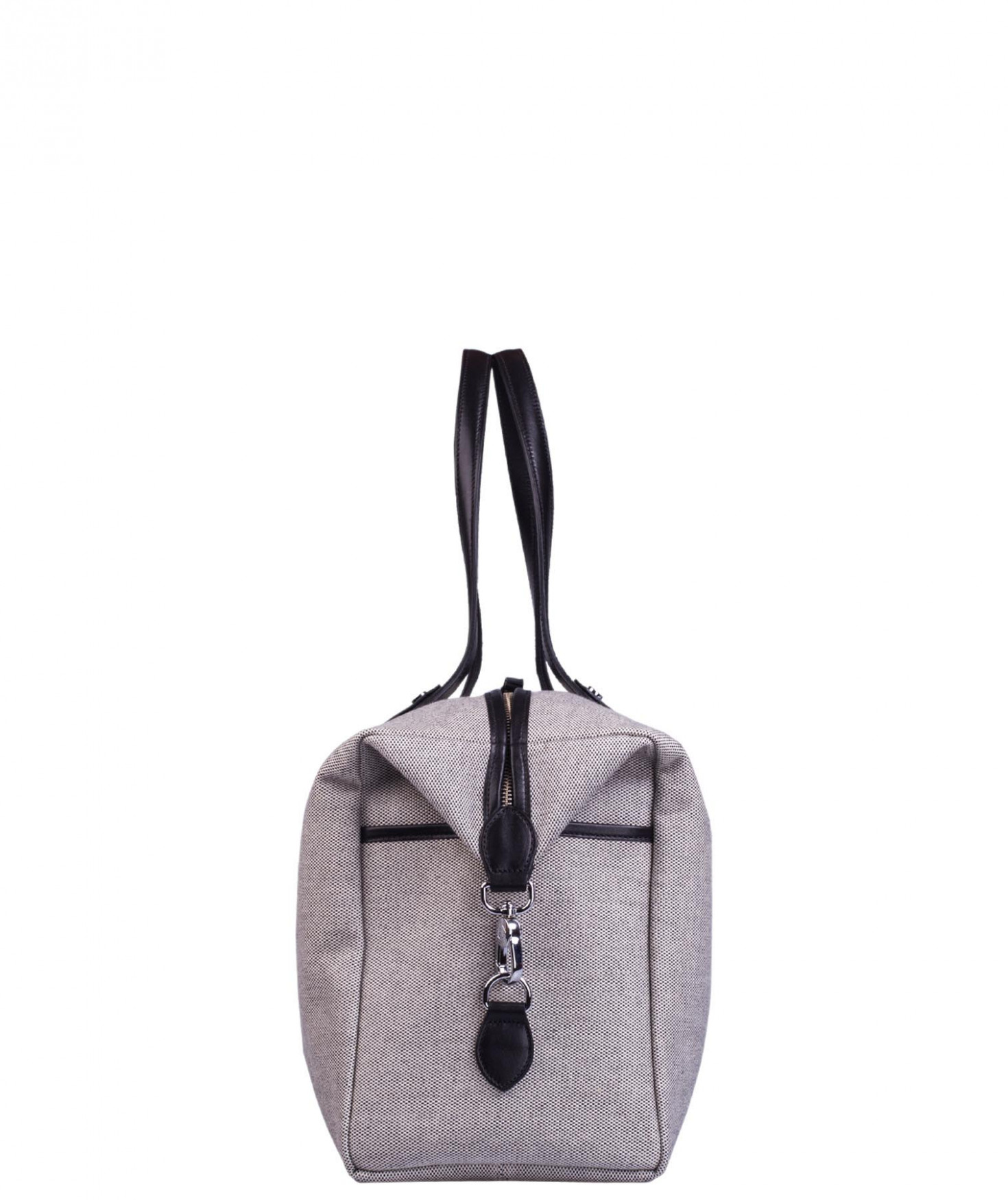 Sac week-end porté main ou épaule court. Fermeture par zip. 2 poches latérales extérieures plaquées. 2 mousquetons latéraux permettent de sécuriser le sac. 1 poche intérieure zippée et 2 poches intérieures plaquées. Bijouterie en métal finition argenté. (42 x 15 x 33 cm)