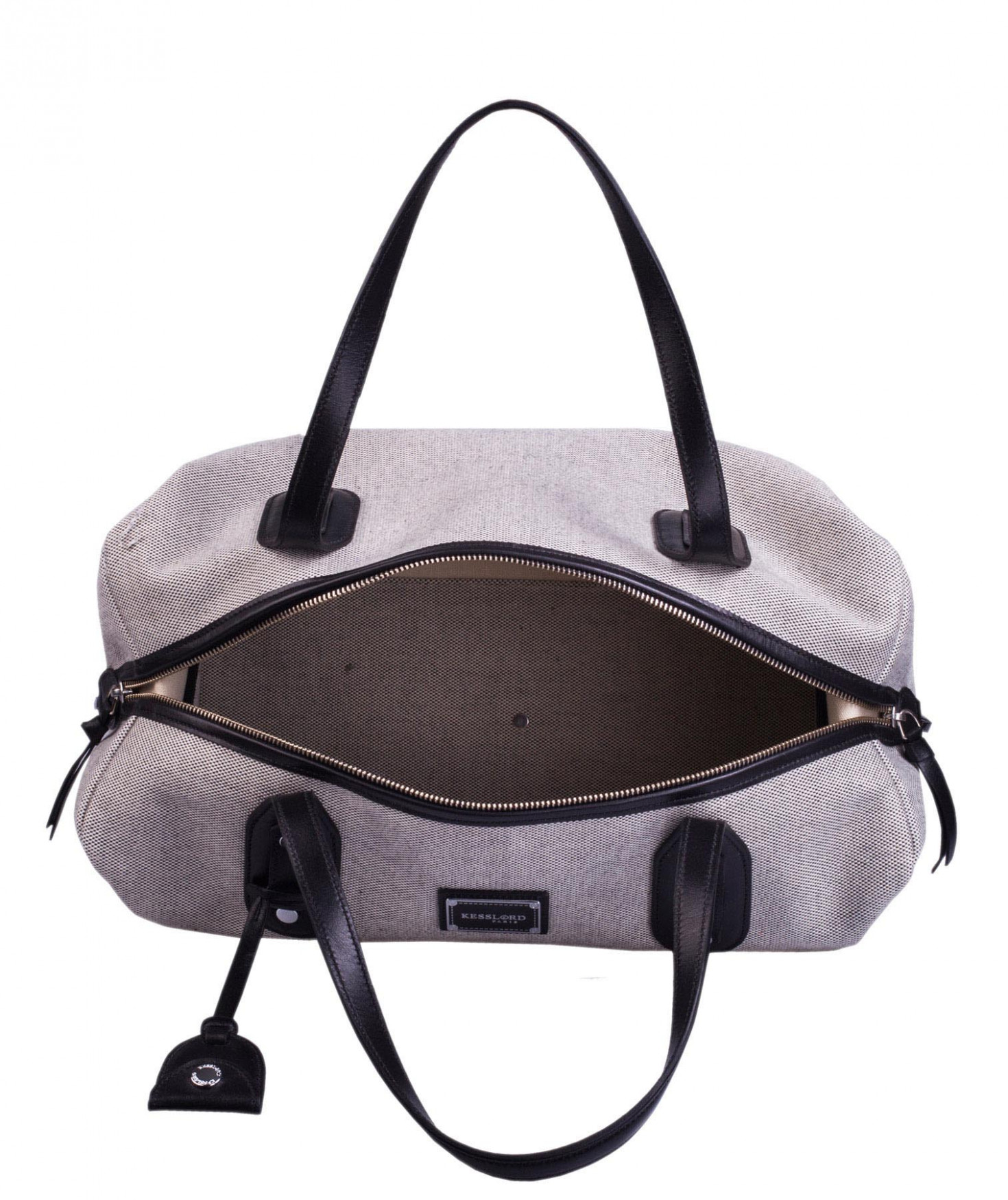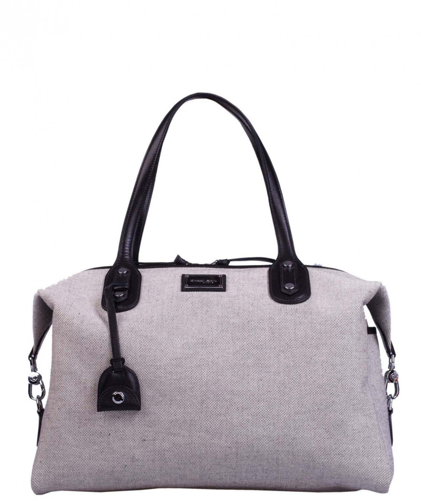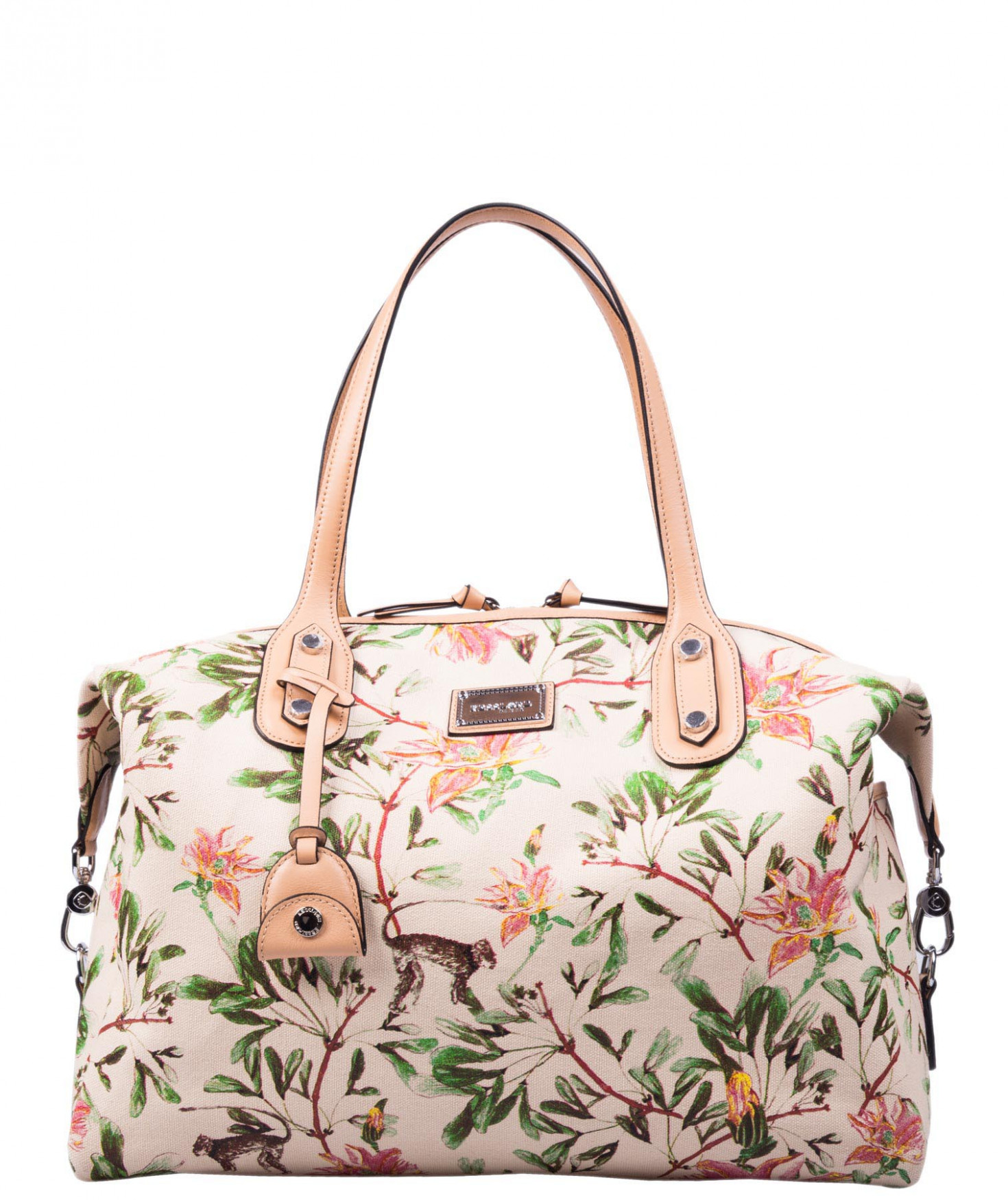 Sac week-end porté main ou épaule court. Fermeture par zip. 2 poches latérales extérieures plaquées. 2 mousquetons latéraux permettent de sécuriser le sac. 1 poche intérieure zippée et 2 poches intérieures plaquées. Bijouterie en métal finition argenté. (42 x 15 x 33 cm)