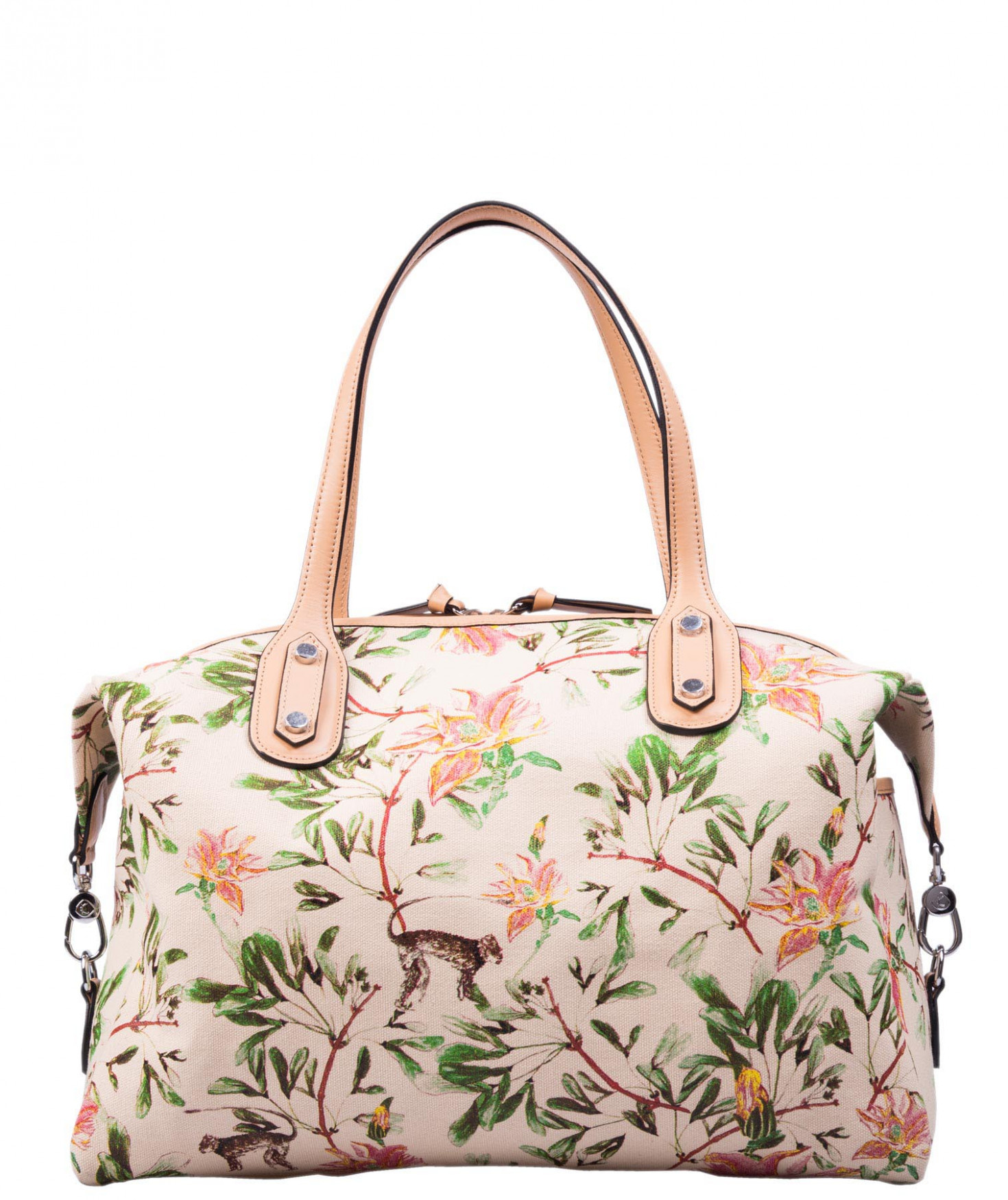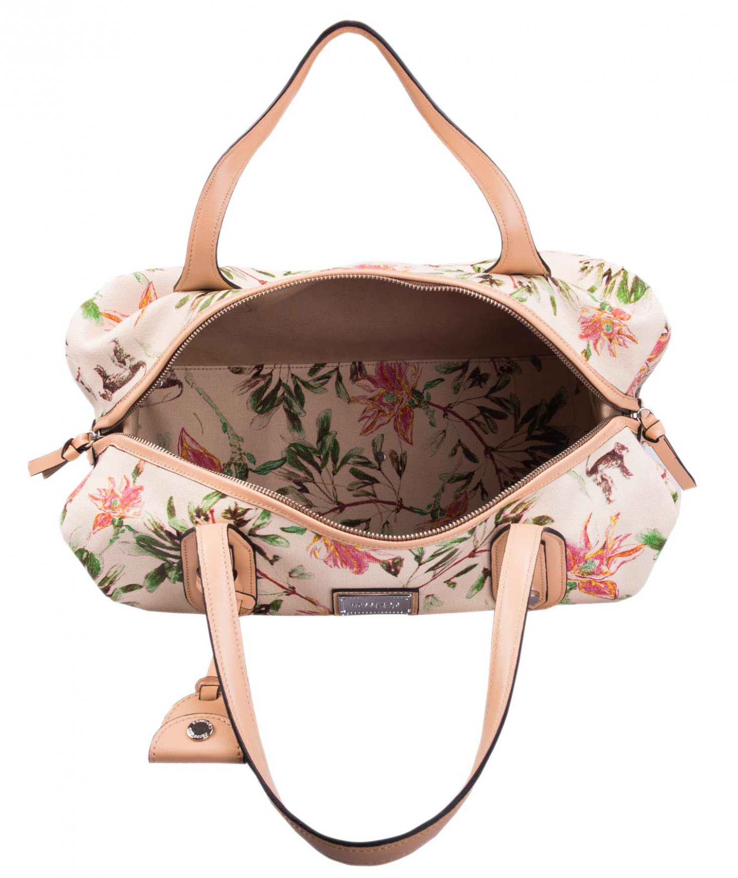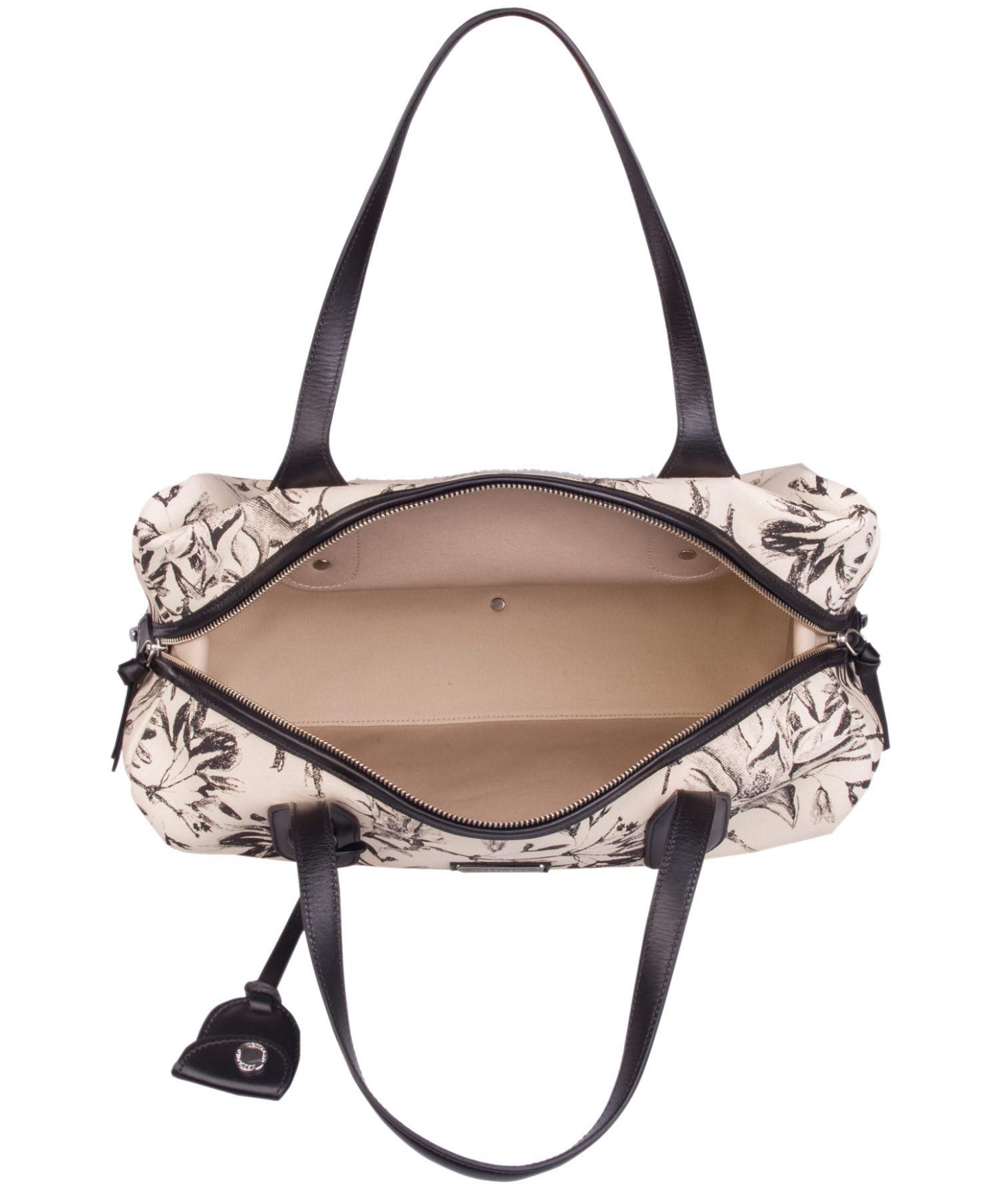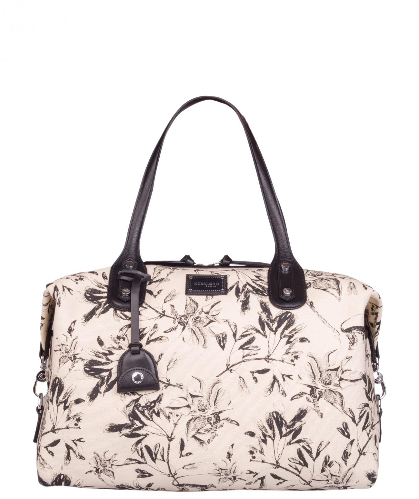 Sac week-end porté main ou épaule court. Fermeture par zip. 2 poches latérales extérieures plaquées. 2 mousquetons latéraux permettent de sécuriser le sac. 1 poche intérieure zippée et 2 poches intérieures plaquées. Bijouterie en métal finition argenté. (42 x 15 x 33 cm)