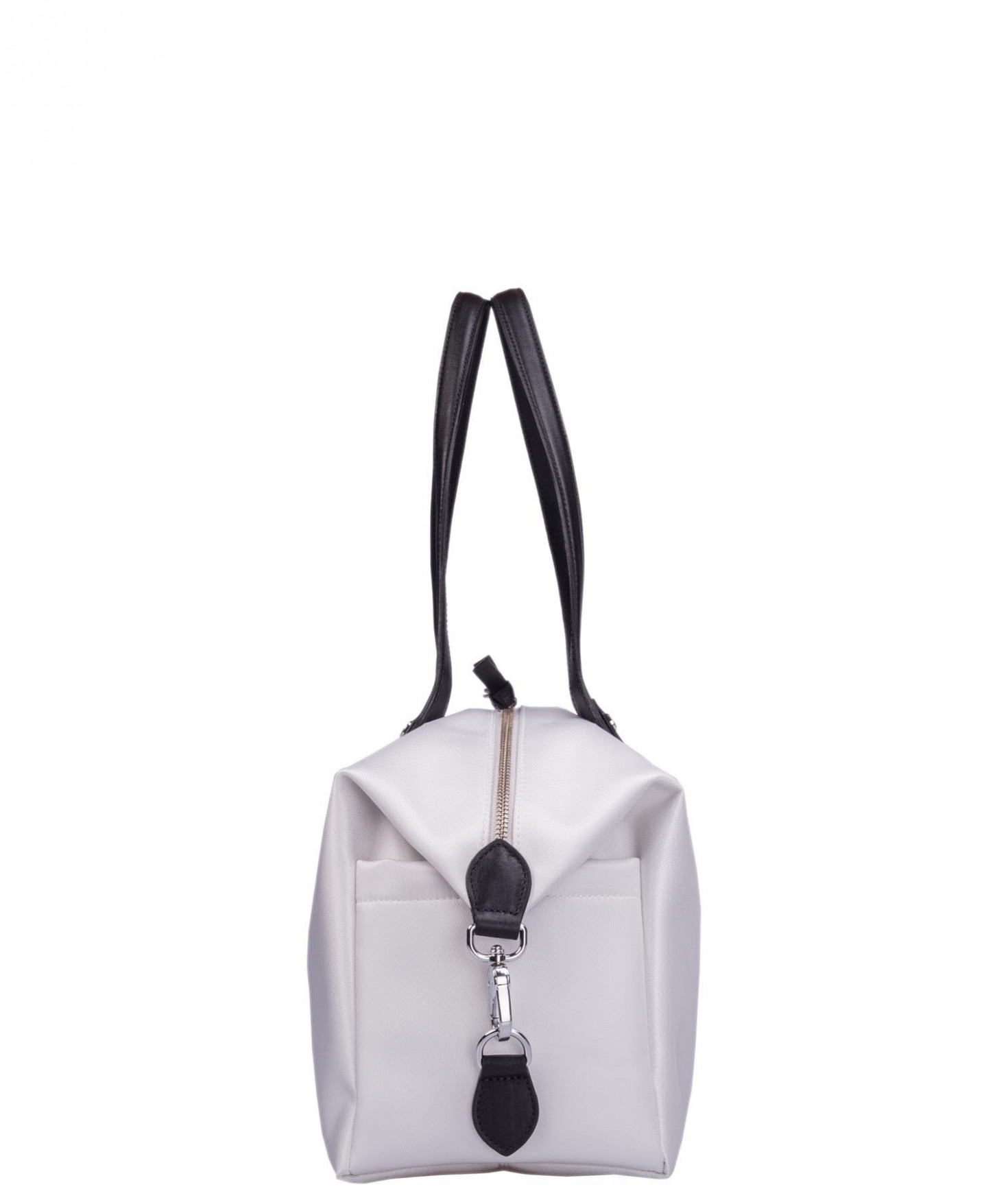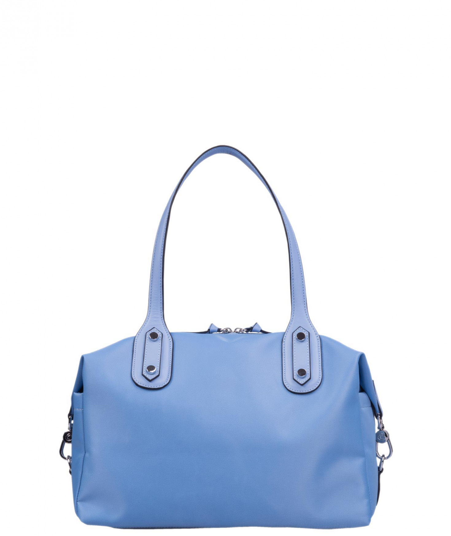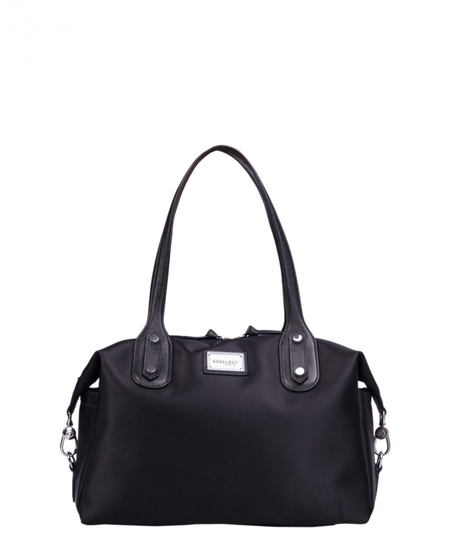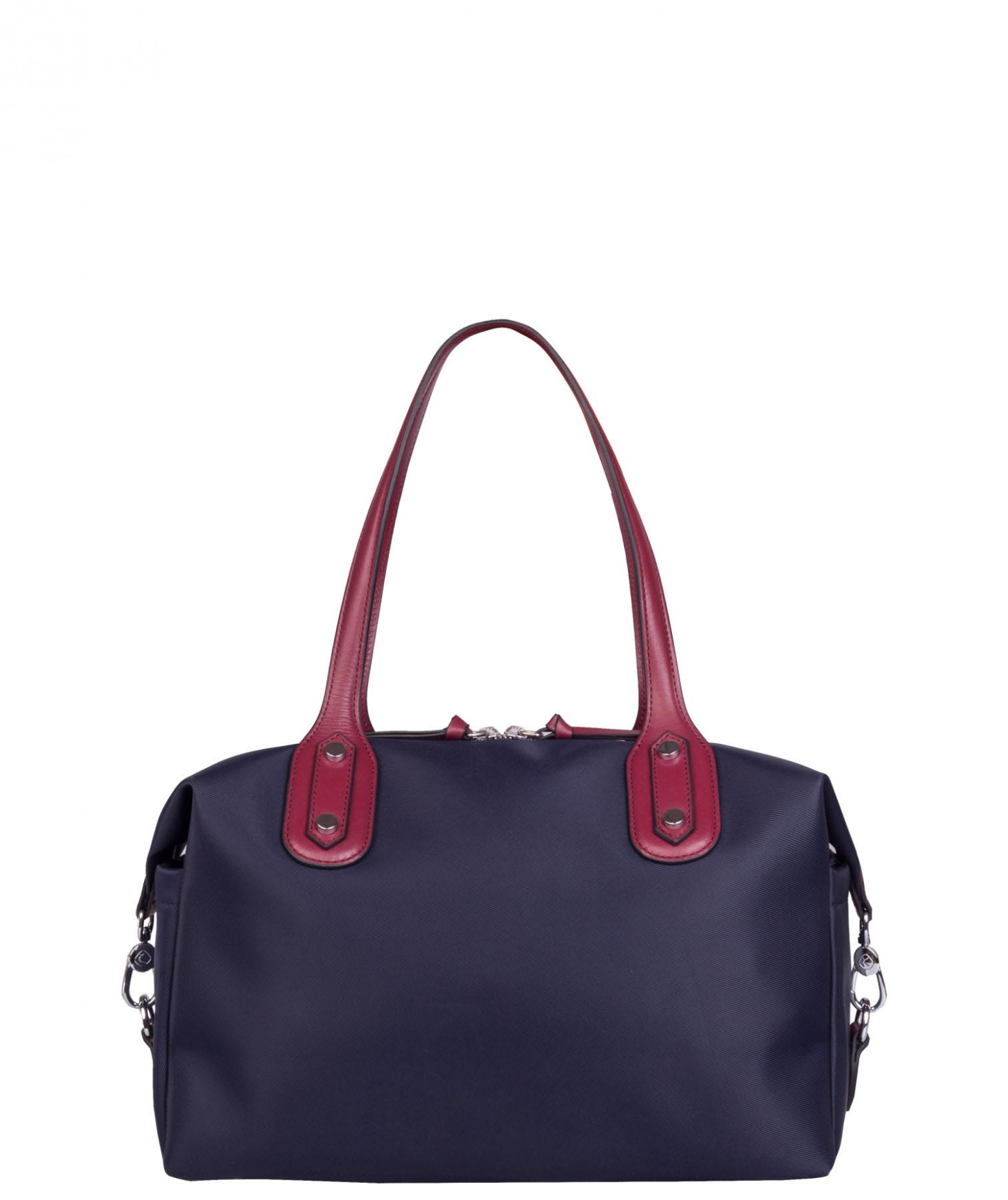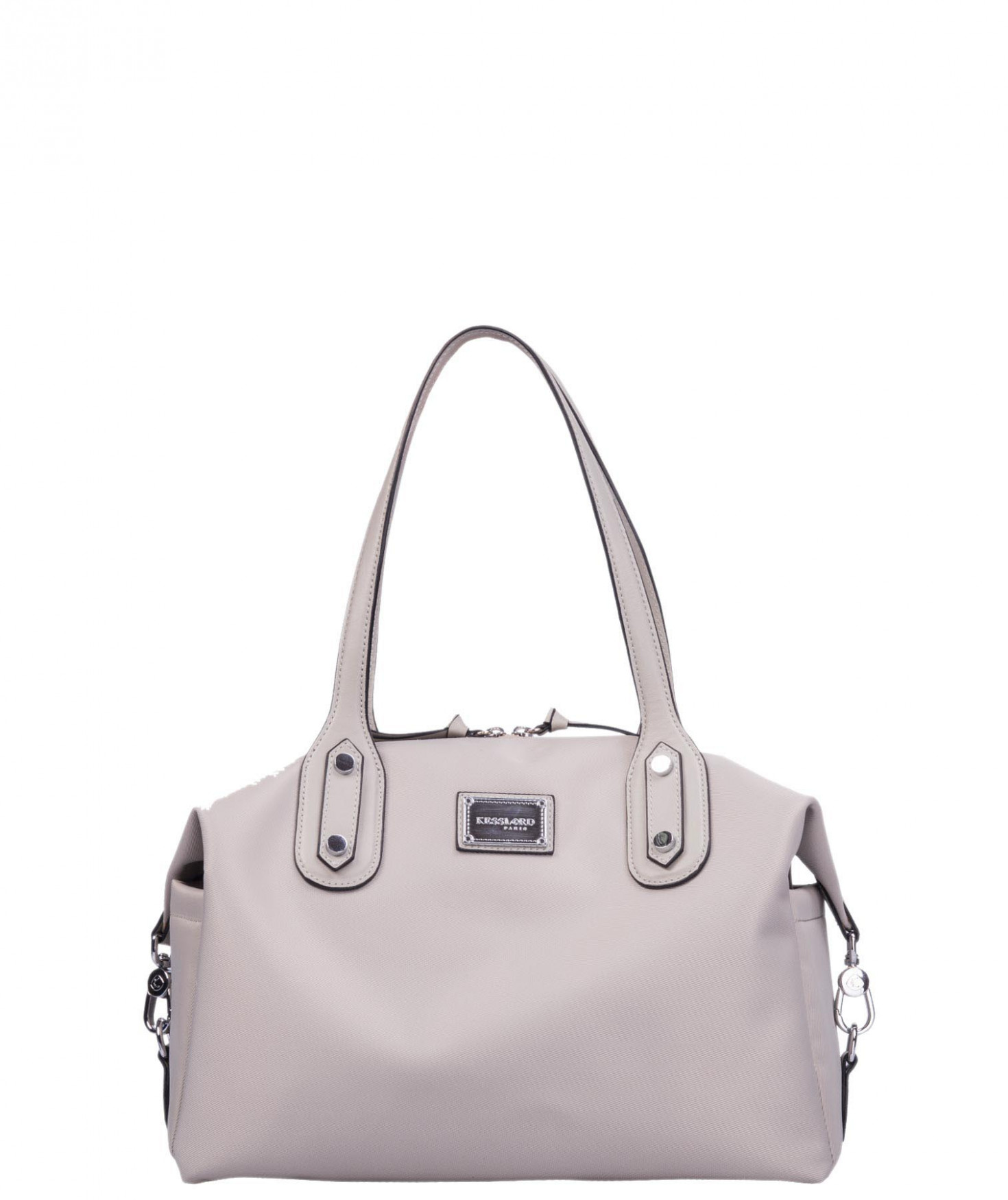 Sac shopping porté main ou épaule court. Fermeture par zip. 2 poches latérales extérieures plaquées. 2 mousquetons latéraux ferment le sac. 1 poche intérieure zippée et 2 poches intérieures plaquées. Bijouterie en métal finition argentée.