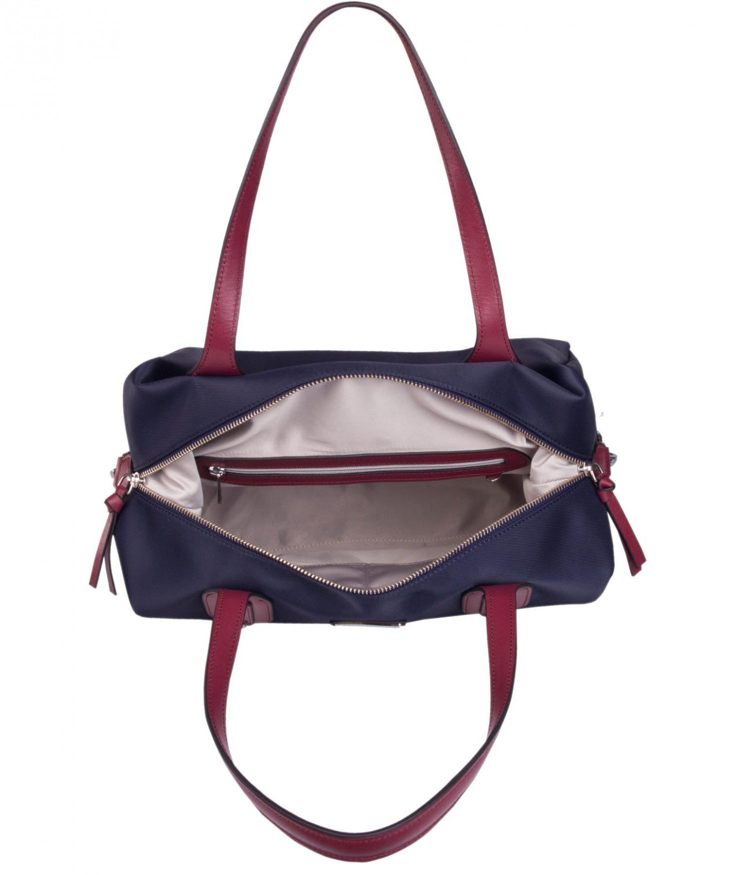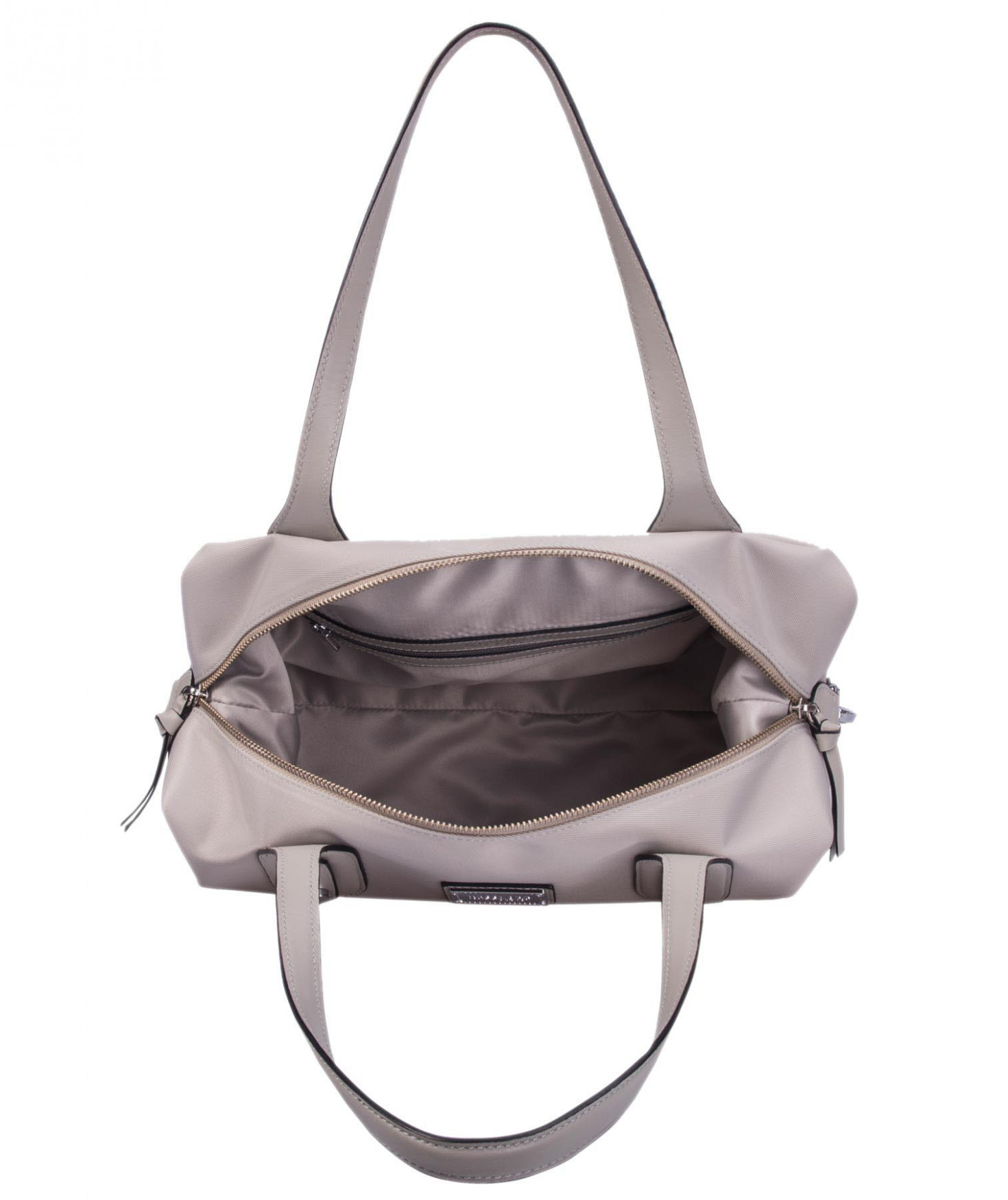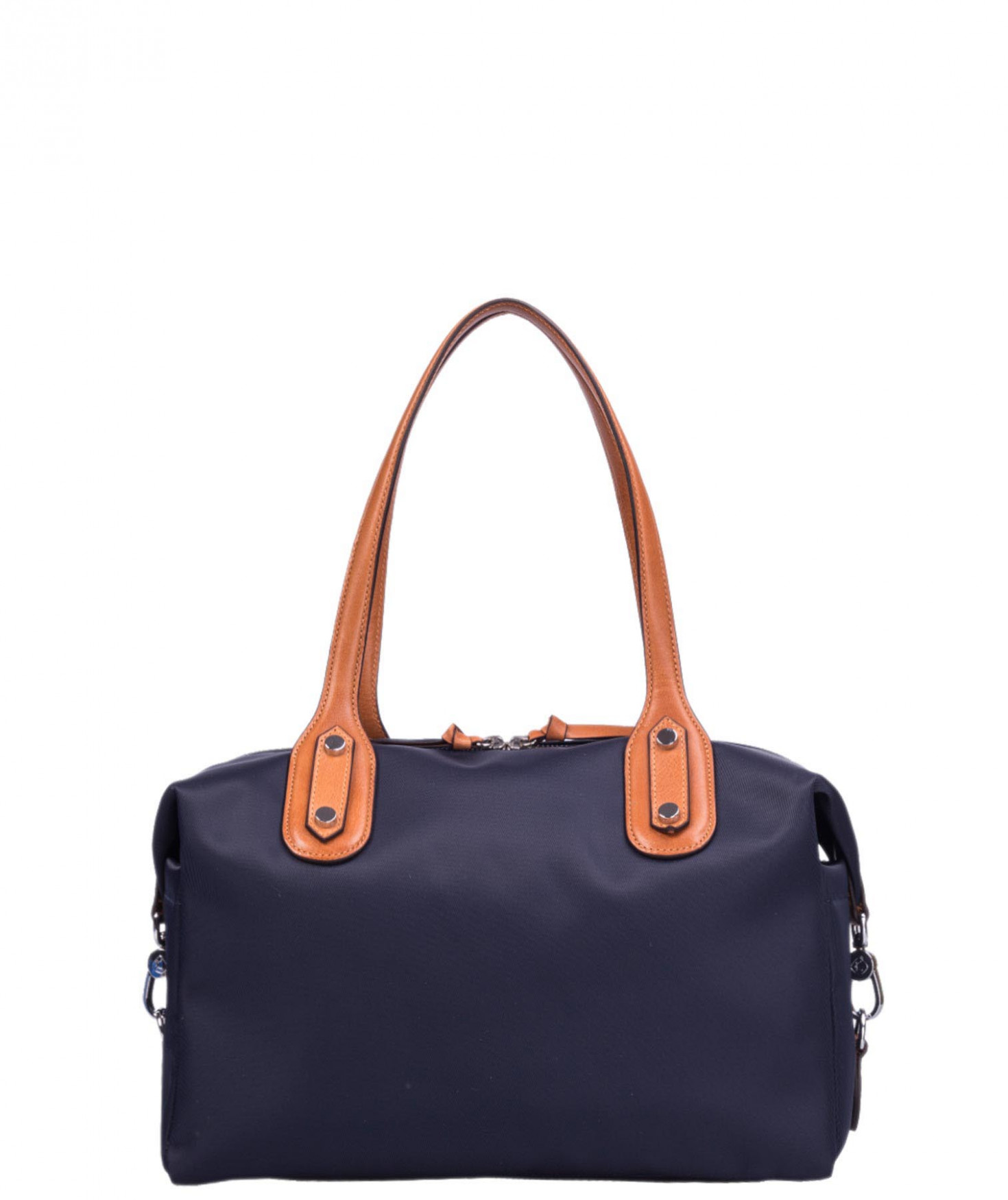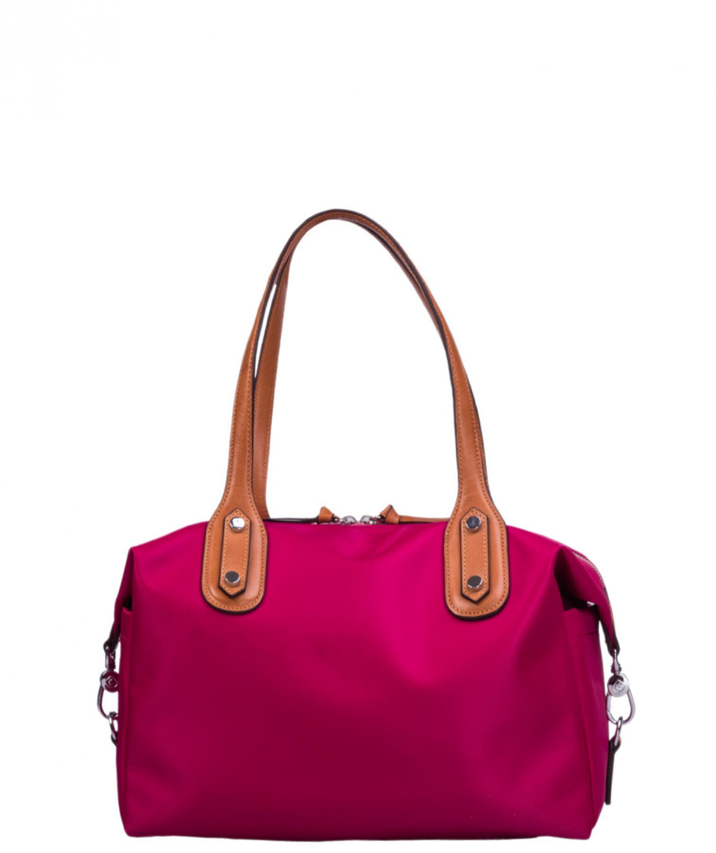Sac shopping porté main ou épaule court. Fermeture par zip. 2 poches latérales extérieures plaquées. 2 mousquetons latéraux ferment le sac. 1 poche intérieure zippée et 2 poches intérieures plaquées. Bijouterie en métal finition argentée.