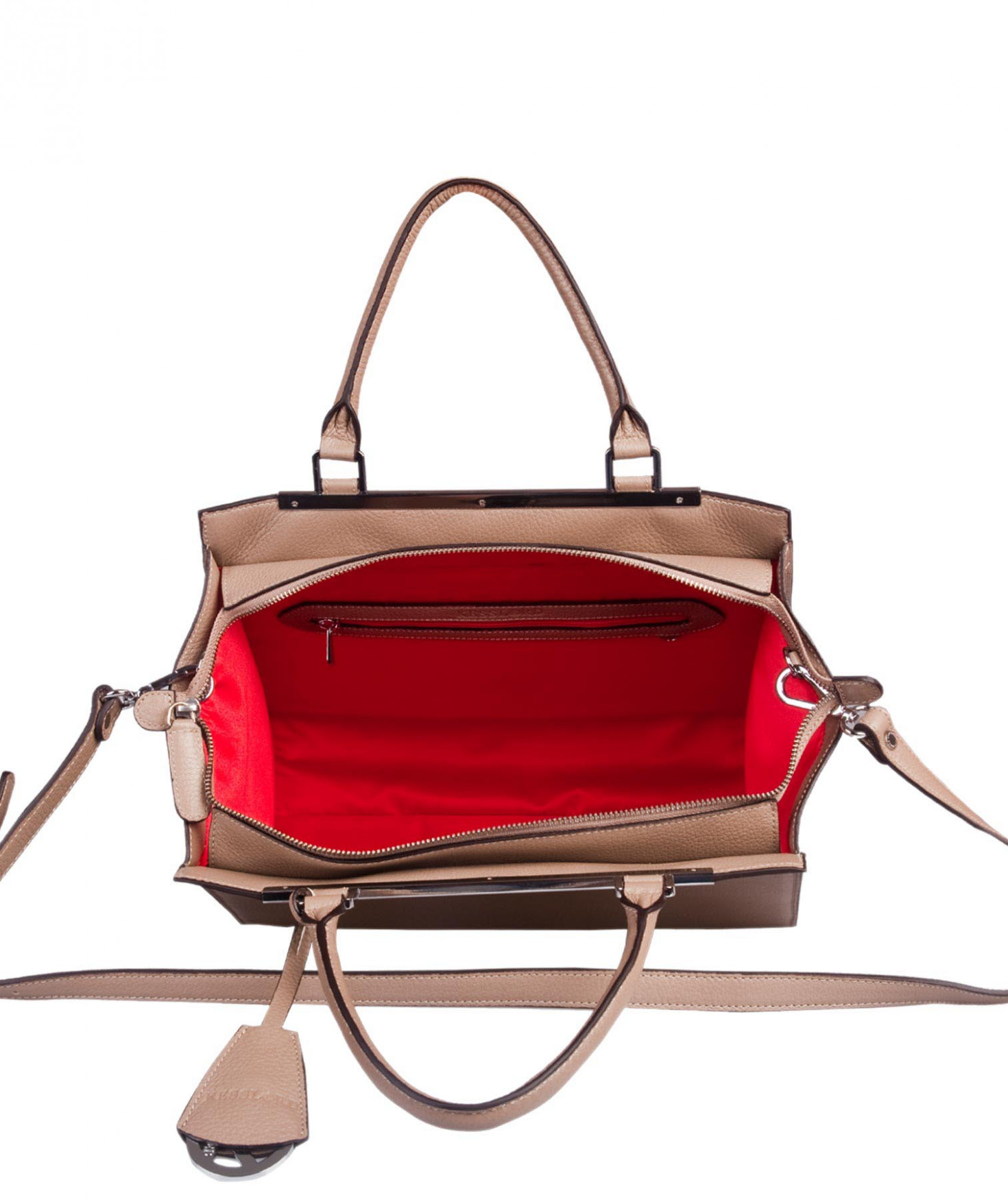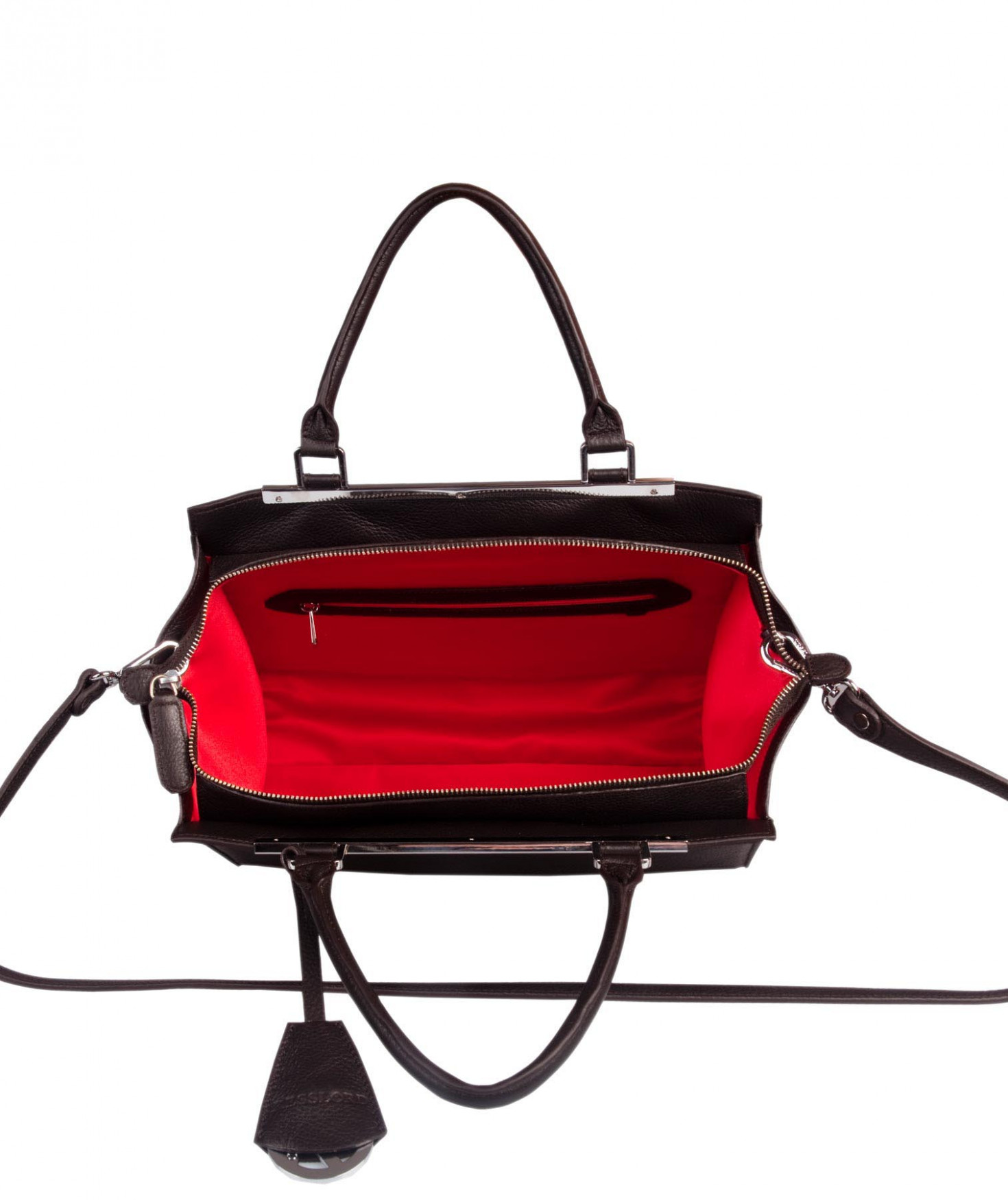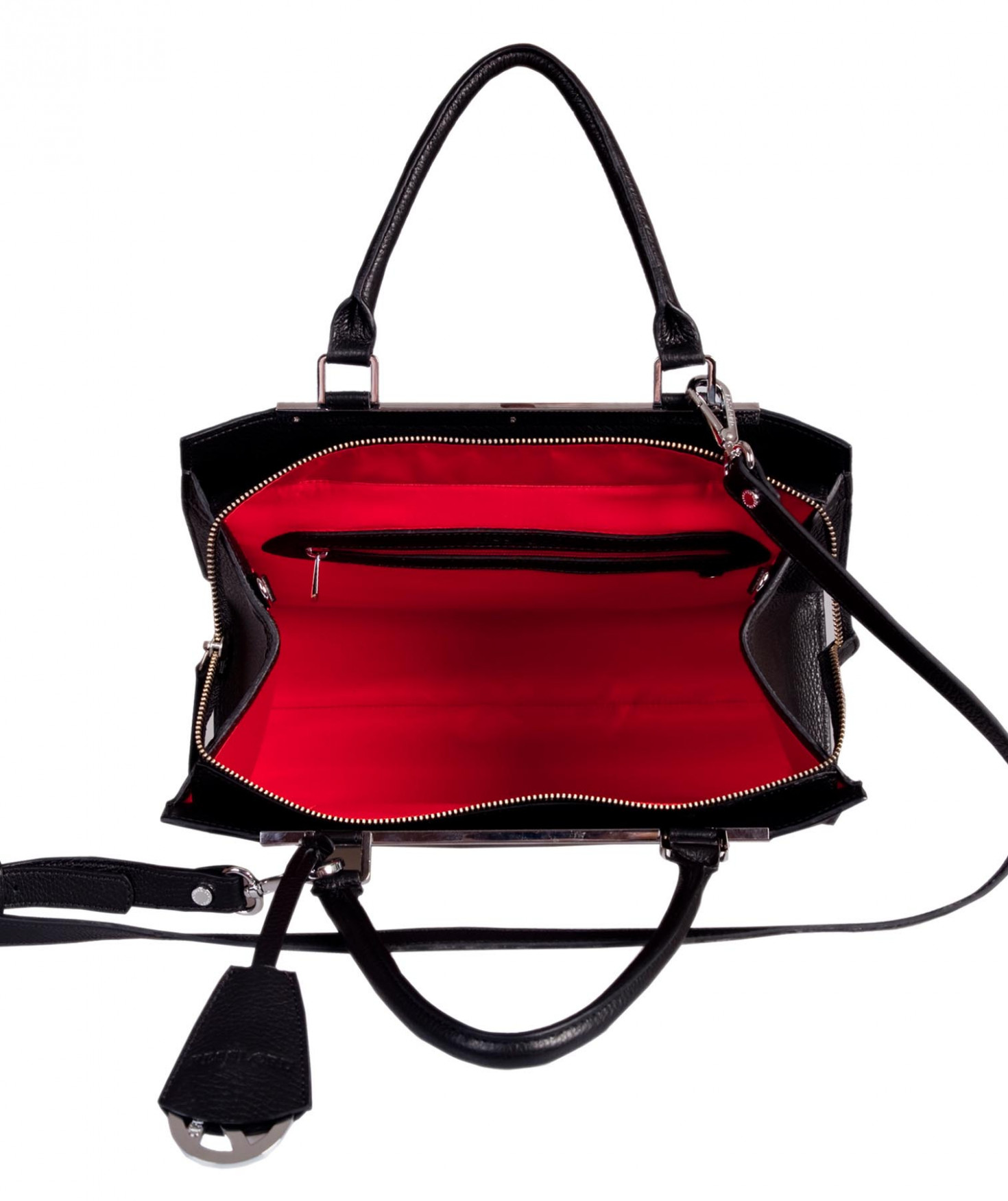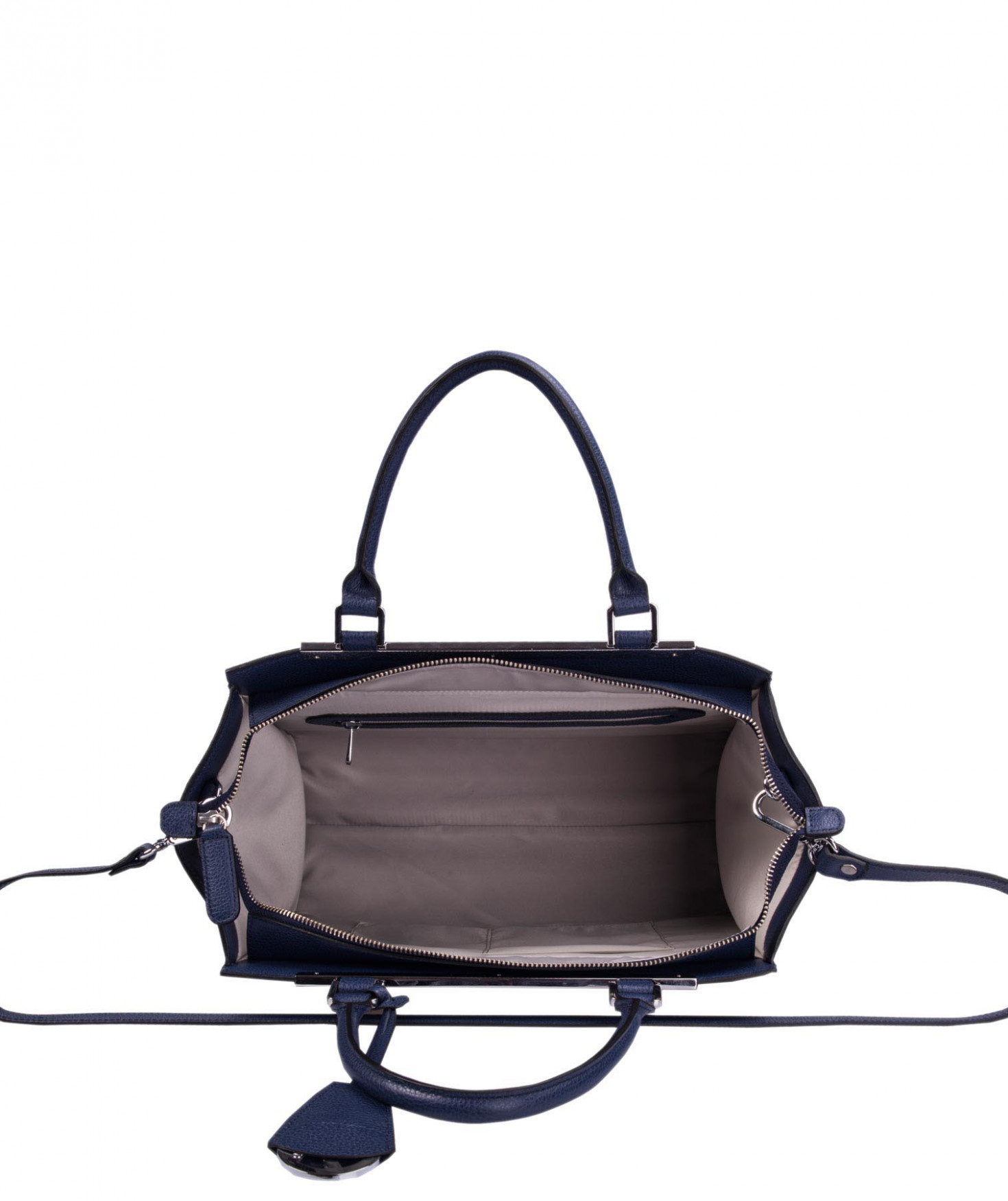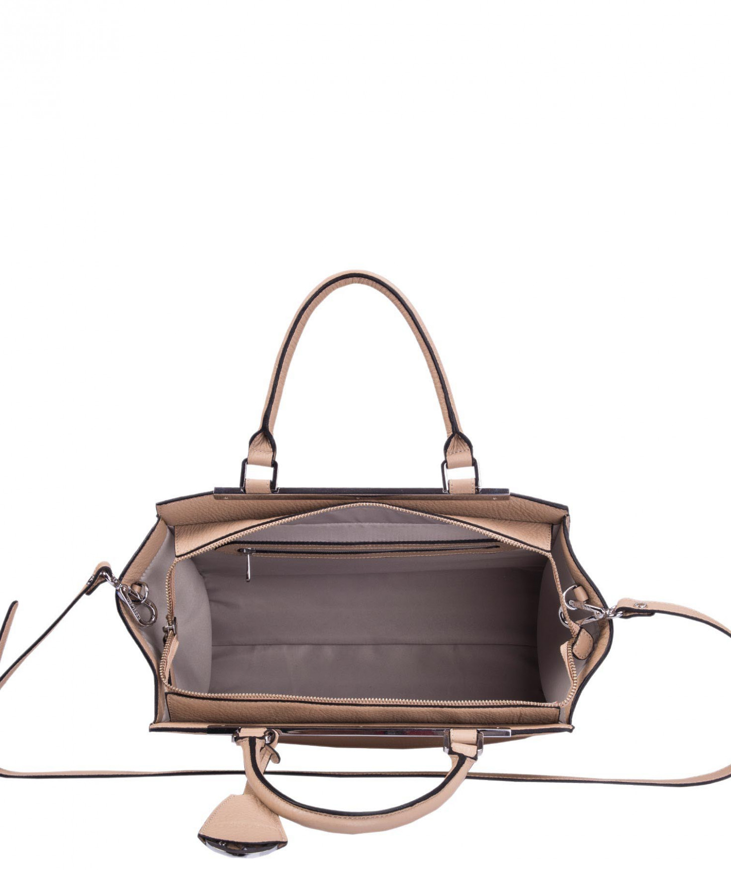 Sac porté main ou épaule grâce à sa bandoulière amovible et réglable. Une poche intérieure zippée et deux poches intérieures plaquées. Bijouterie finition argentée.