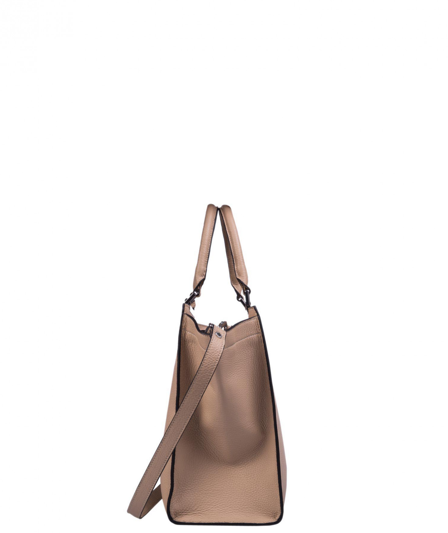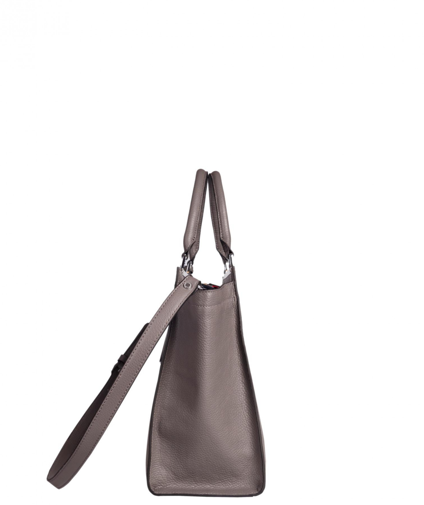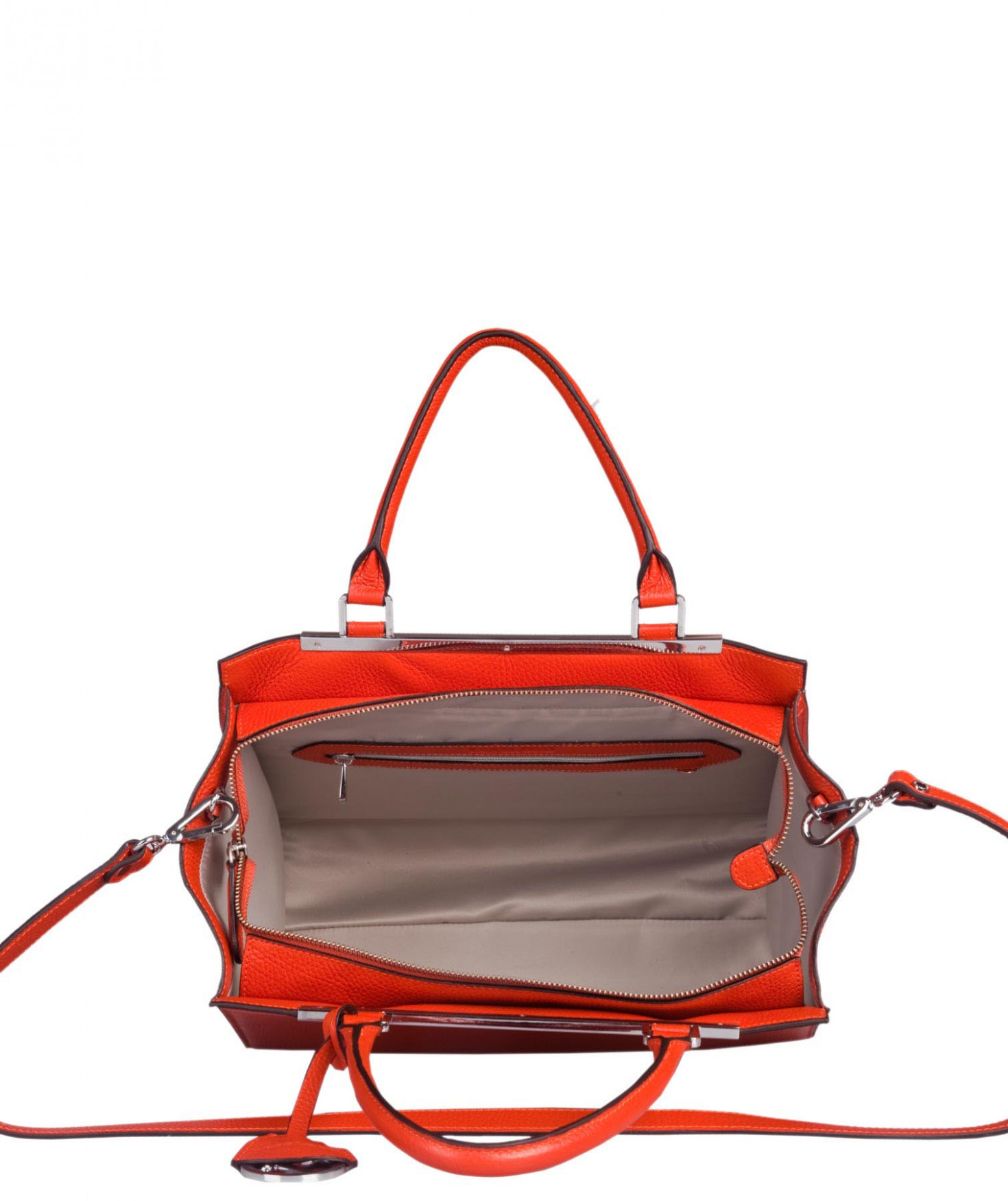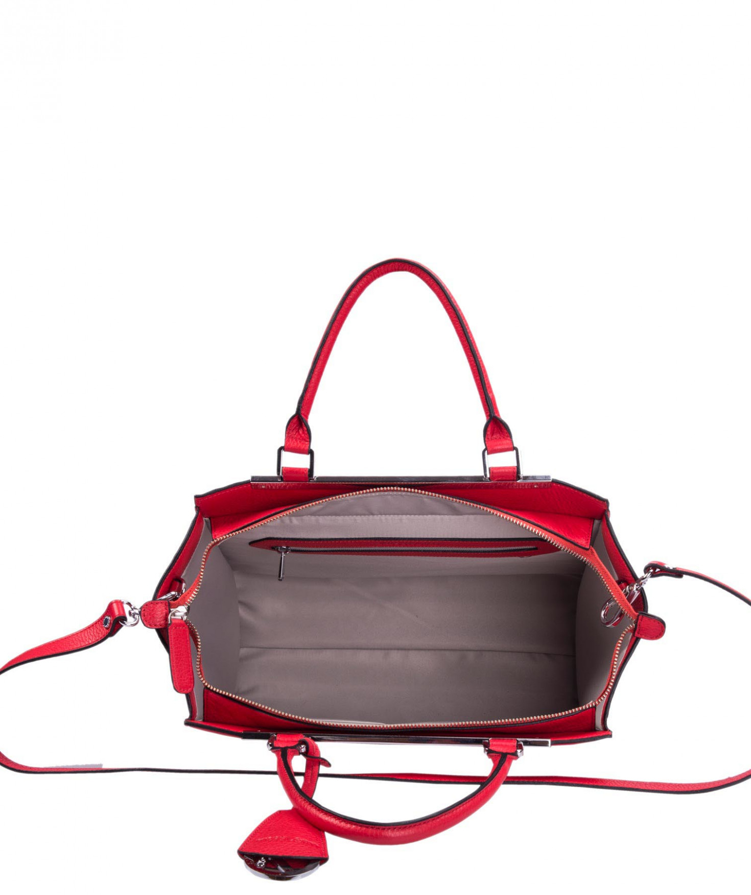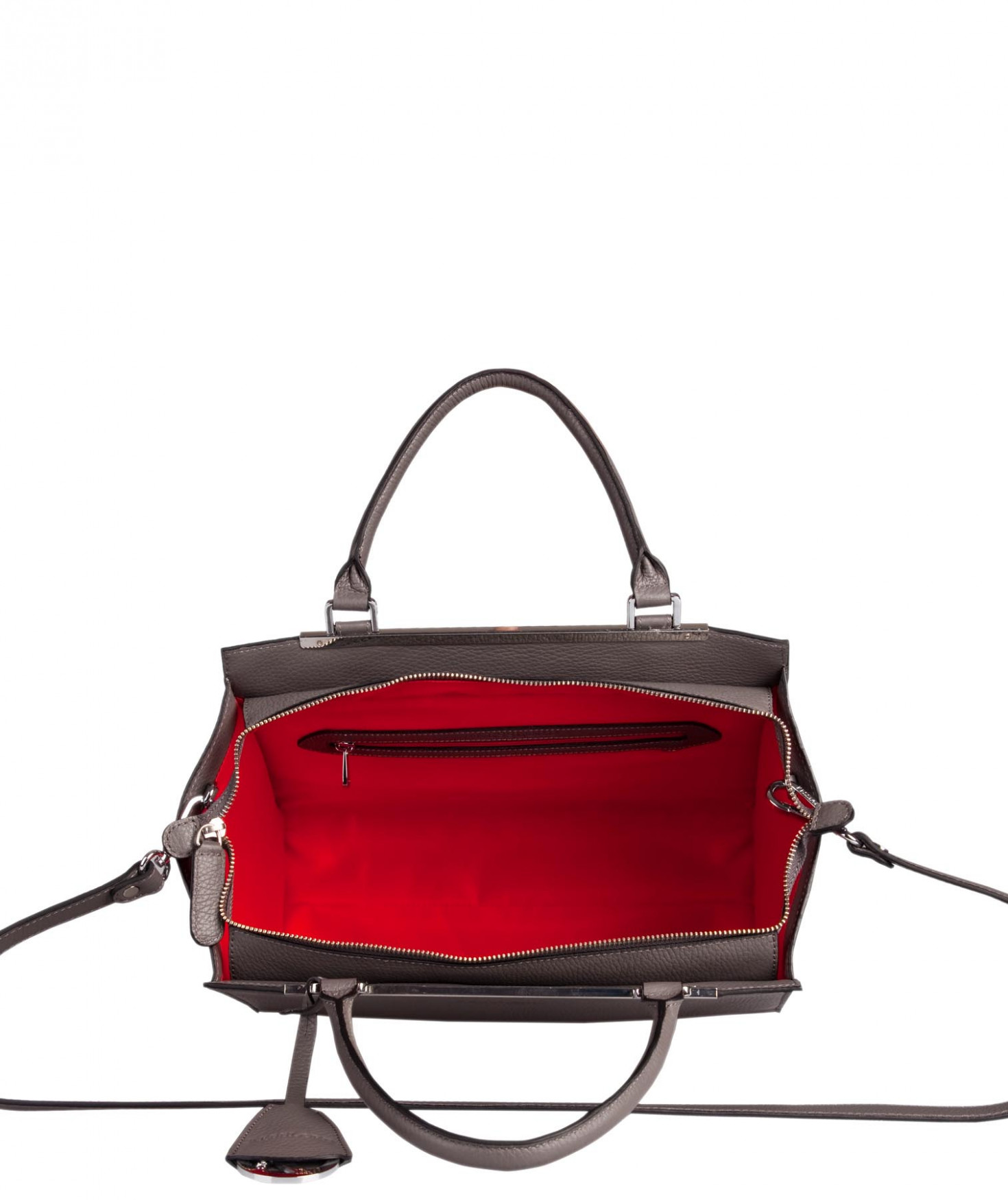 Sac porté main ou épaule grâce à sa bandoulière amovible et réglable. Une poche intérieure zippée et deux poches intérieures plaquées. Bijouterie finition argentée.
