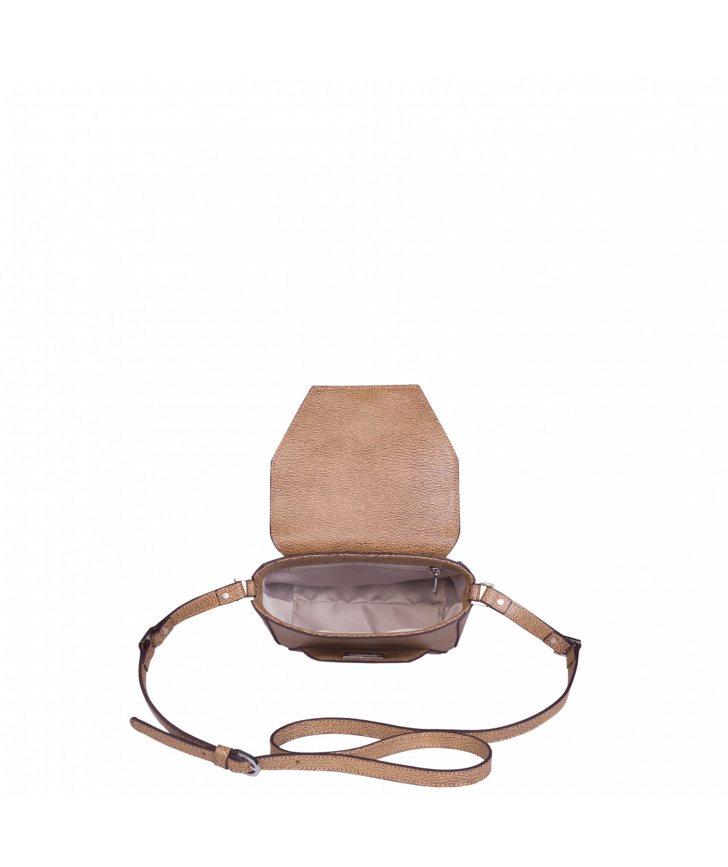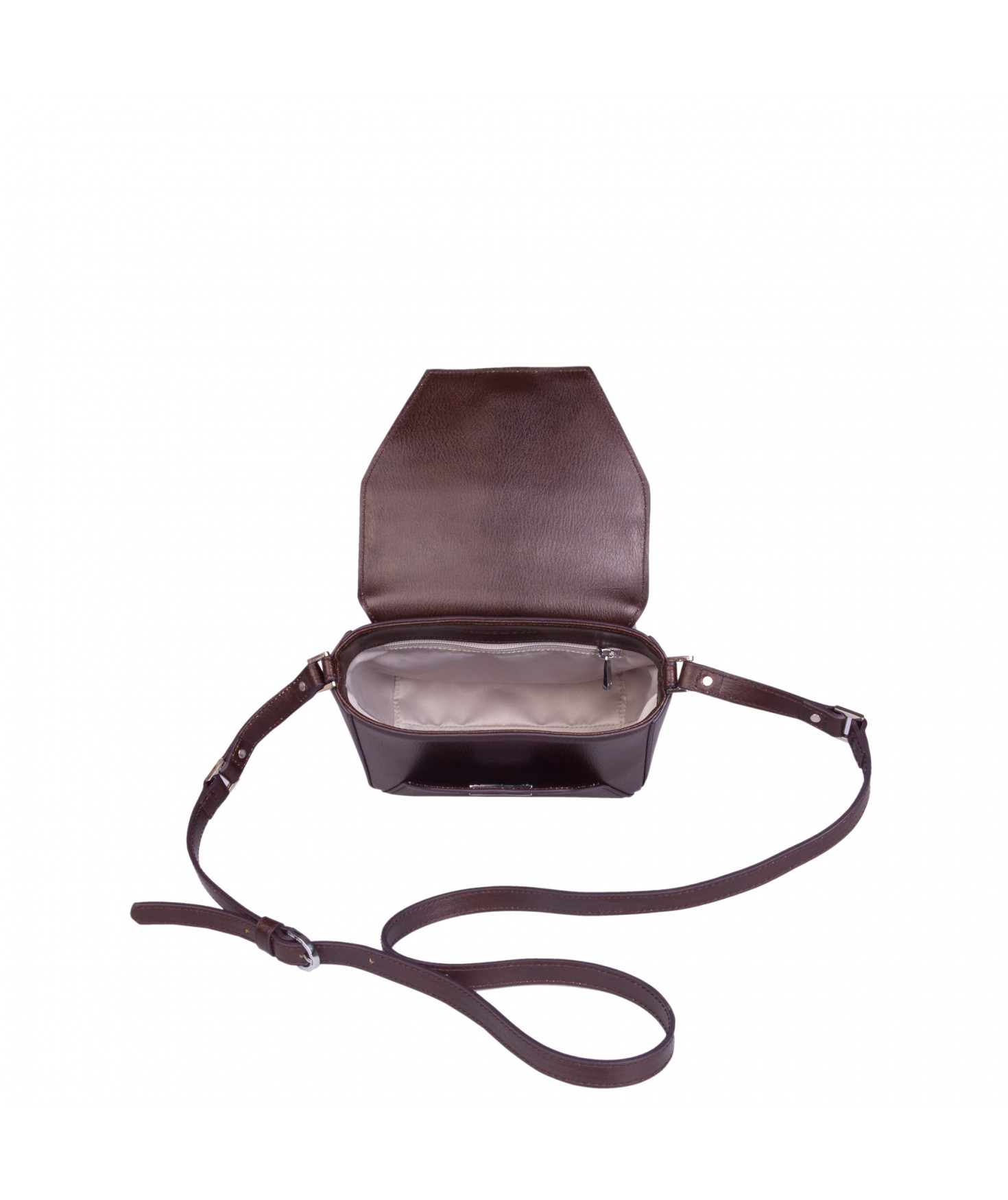 Petit sac porté épaule ou croisé grâce à sa bandoulière réglable. Fermeture à rabat façon "enveloppe". A l'intérieur, une poche zippée et une poche plaquée. Bijouterie en métal finition argentée.
