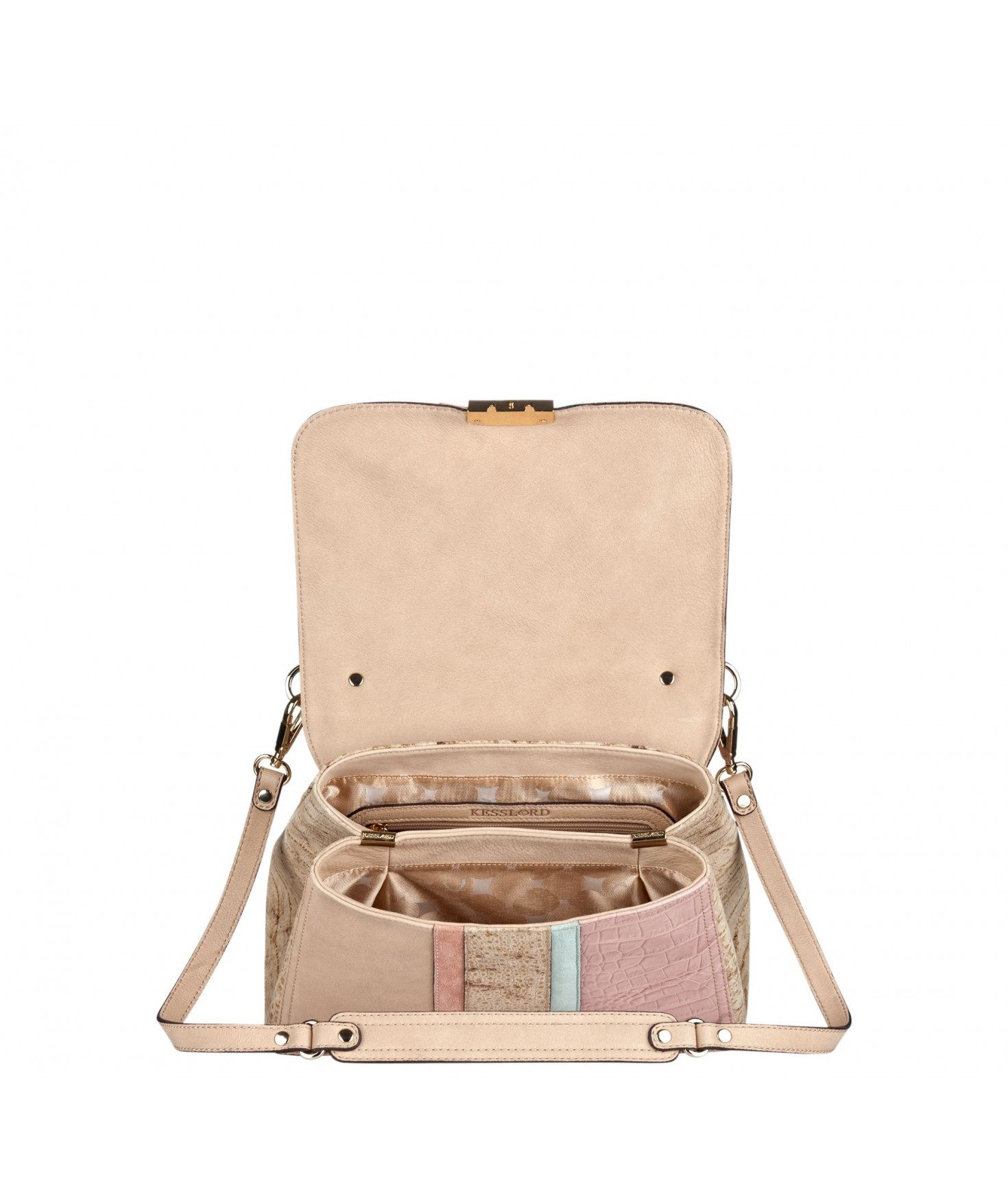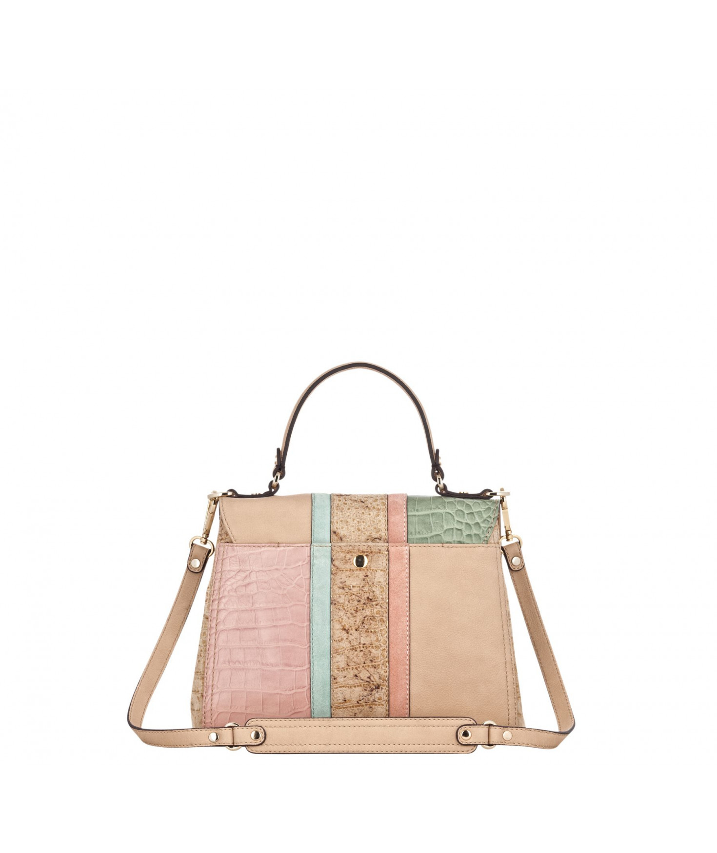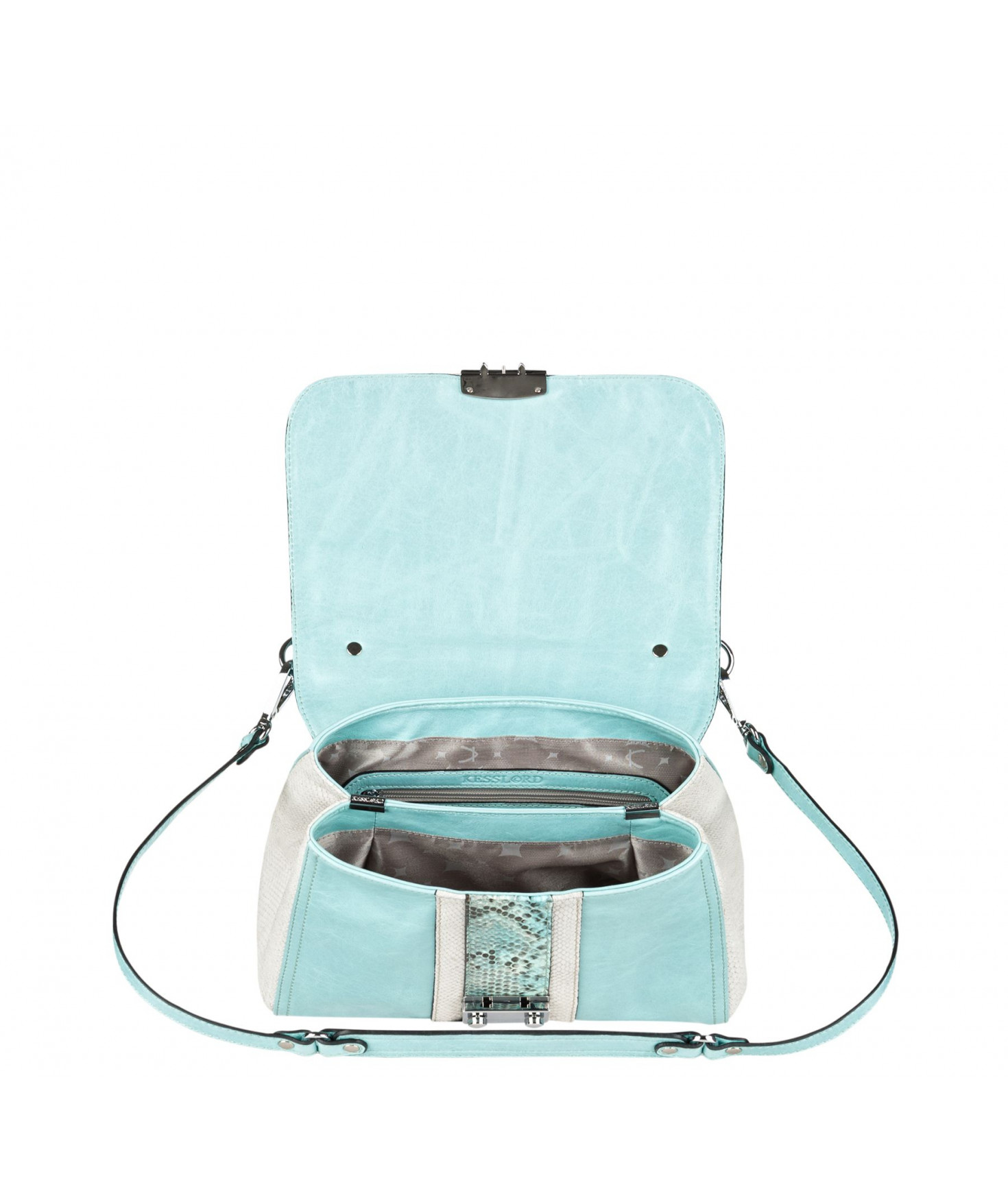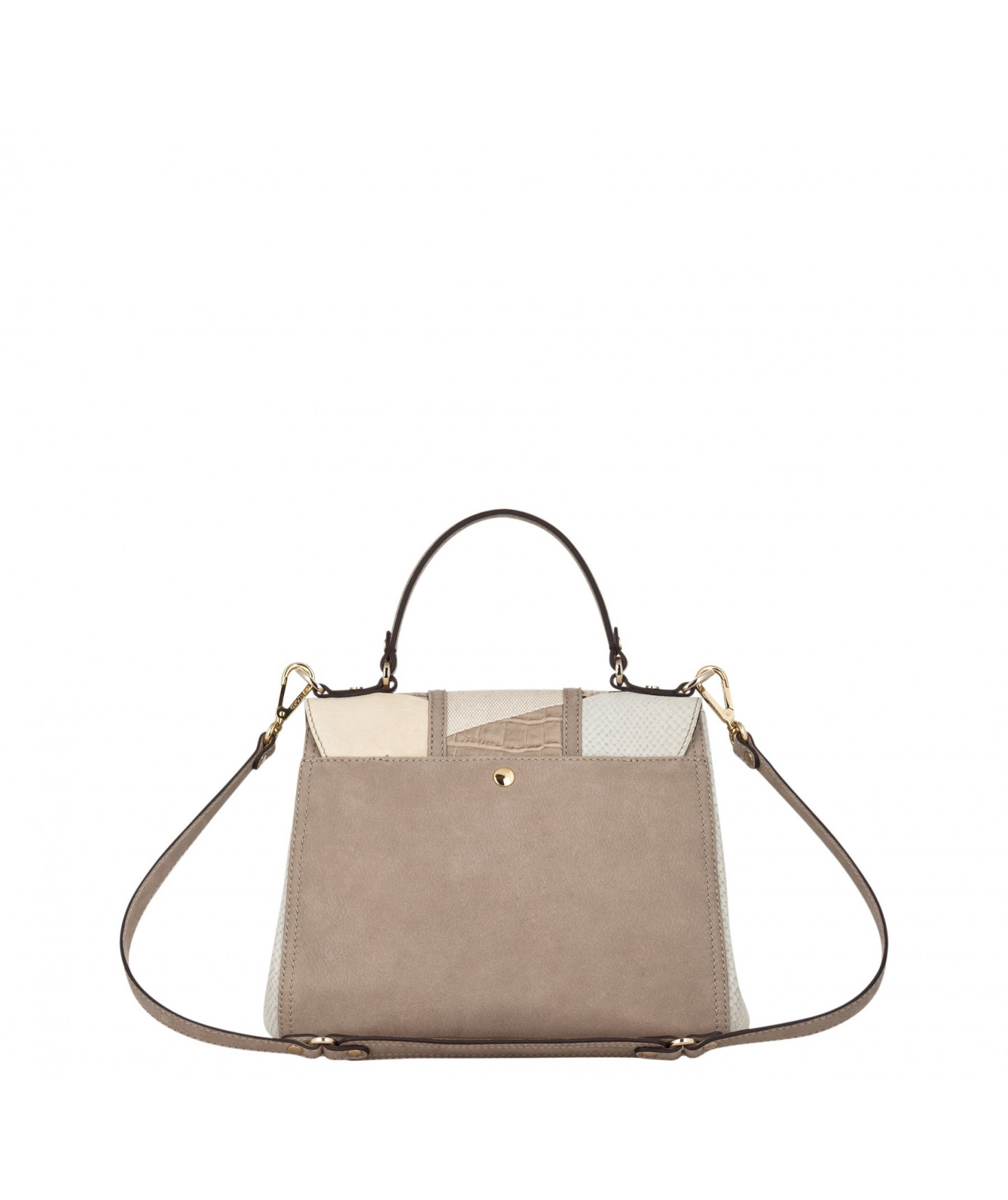 Porté main ou épaule, fermé par rabat et fermoir métal.
