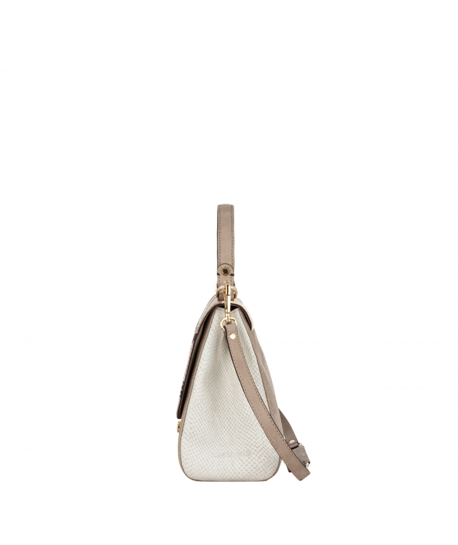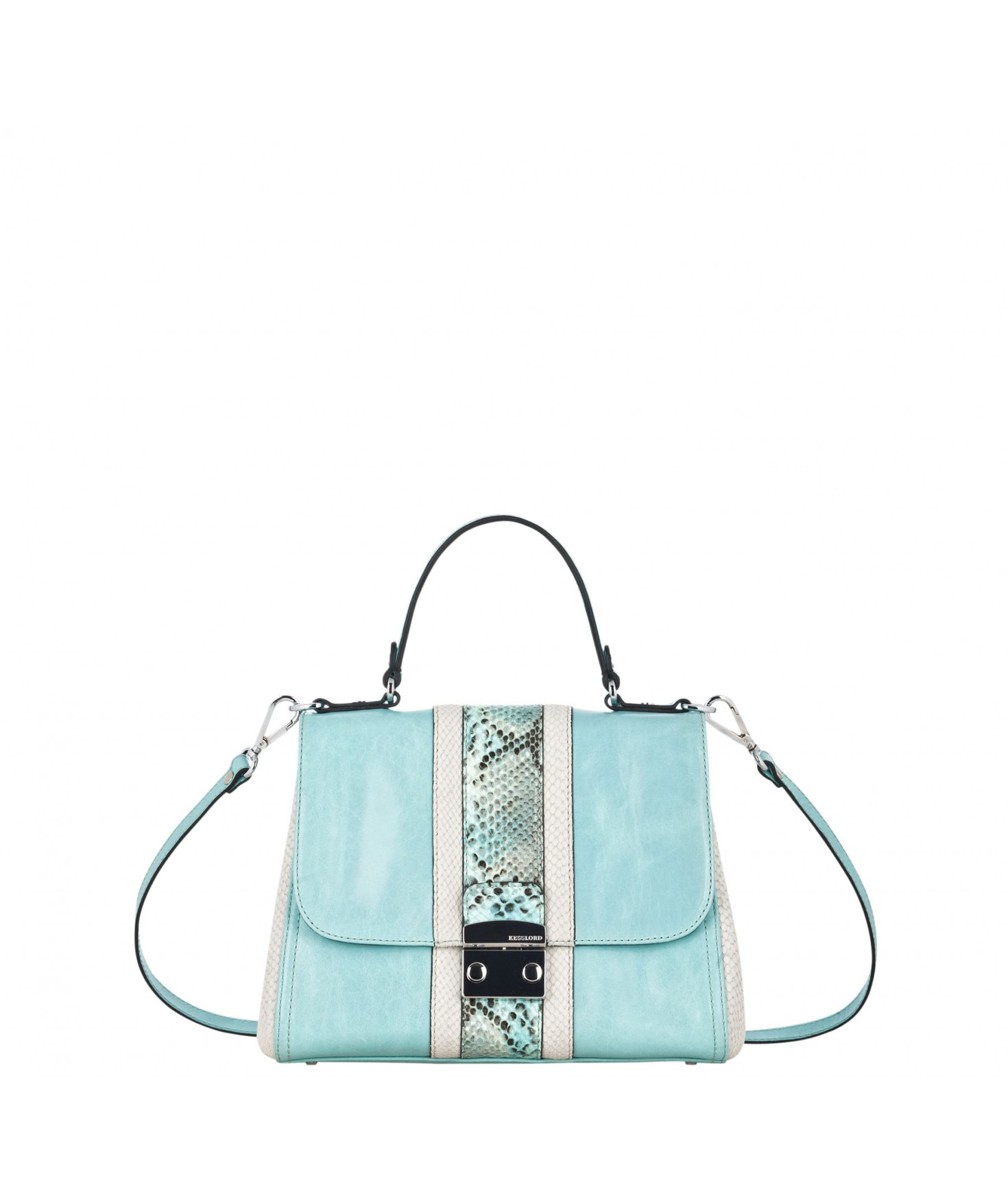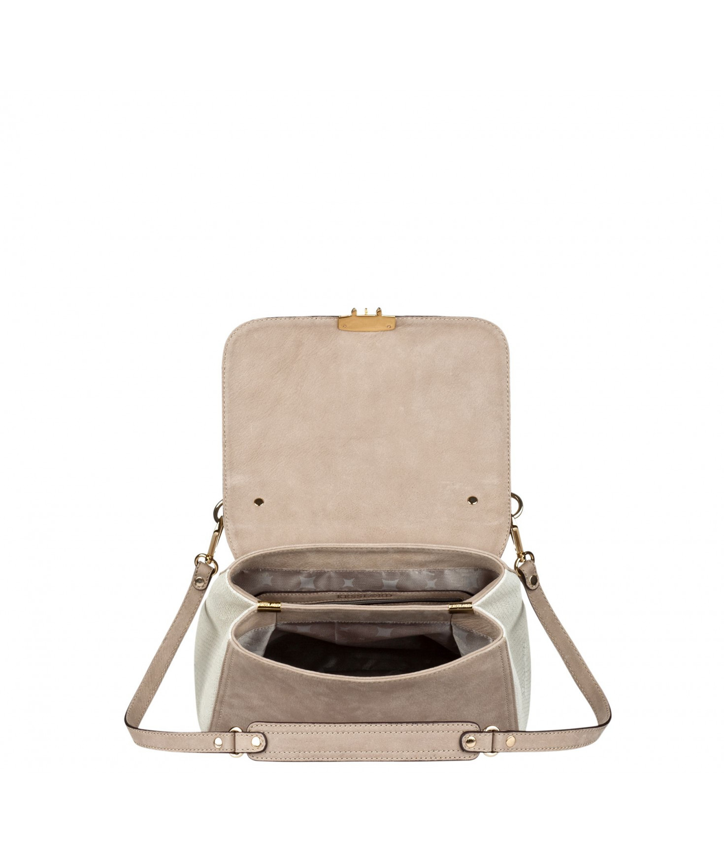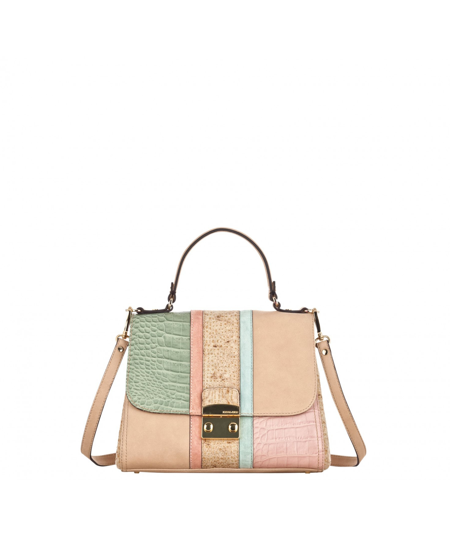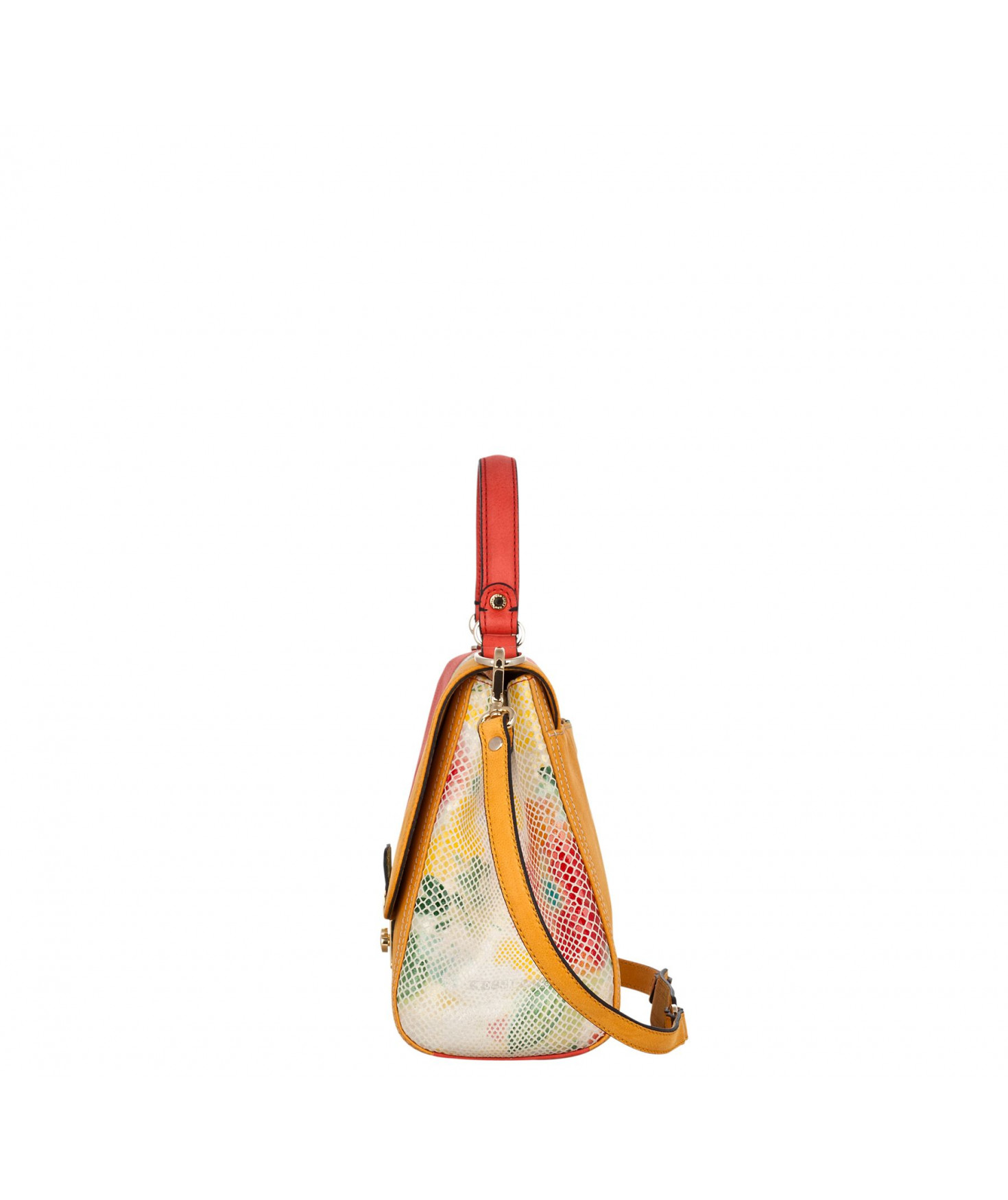 Porté main ou épaule, fermé par rabat et fermoir métal.