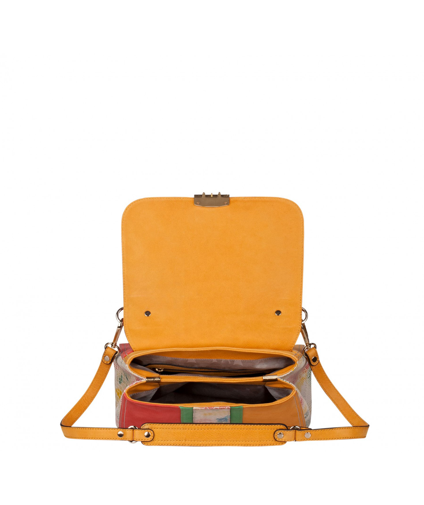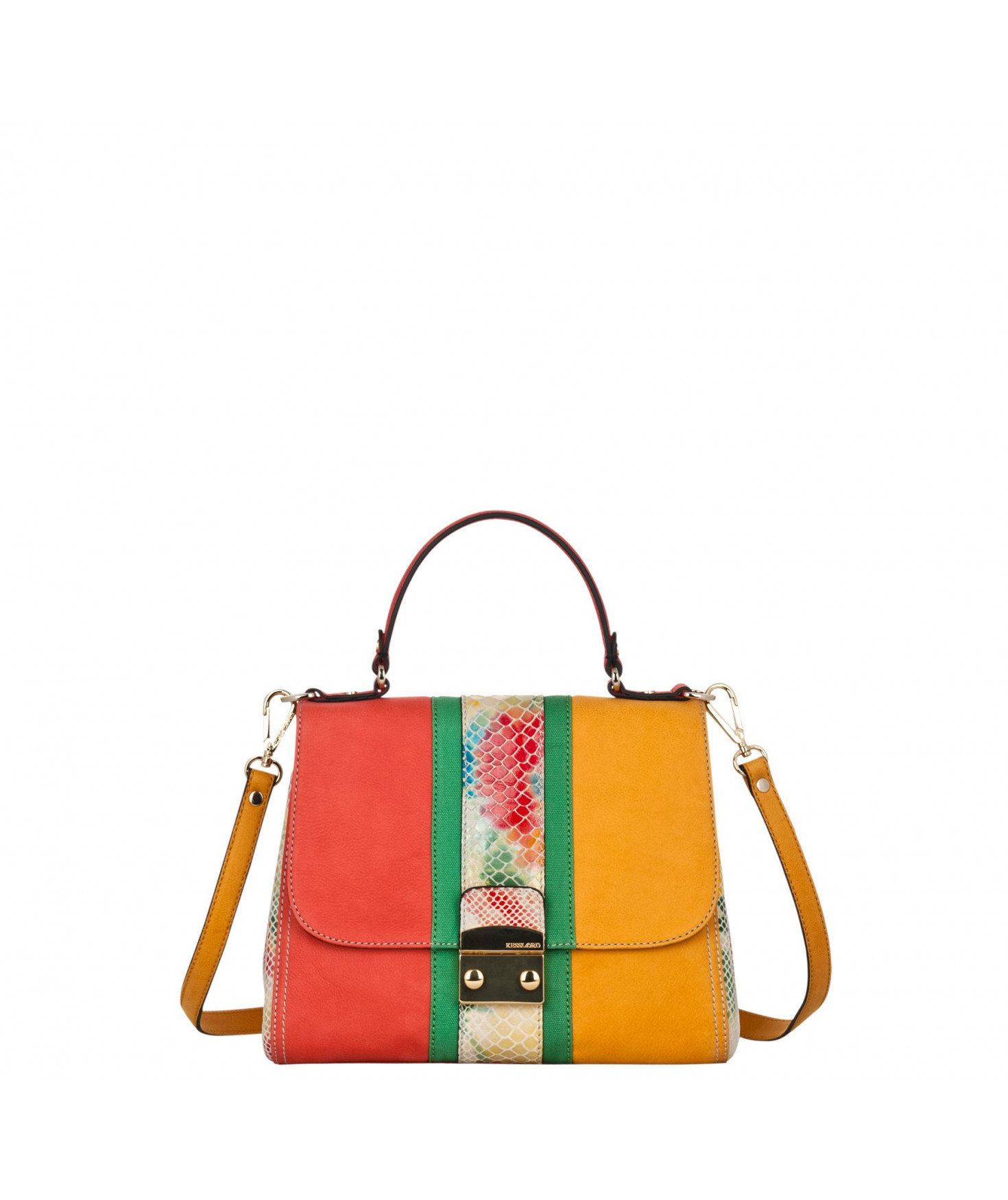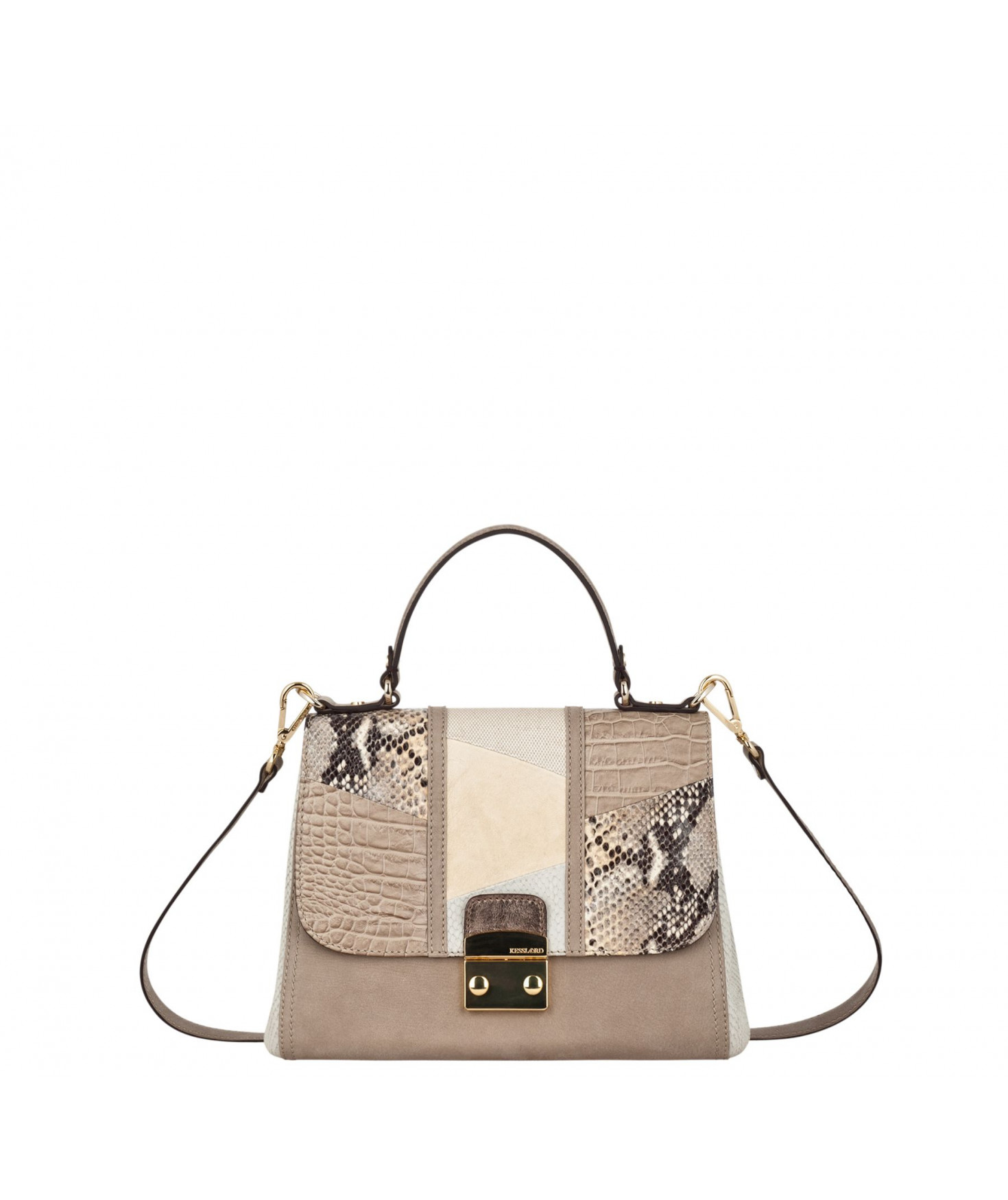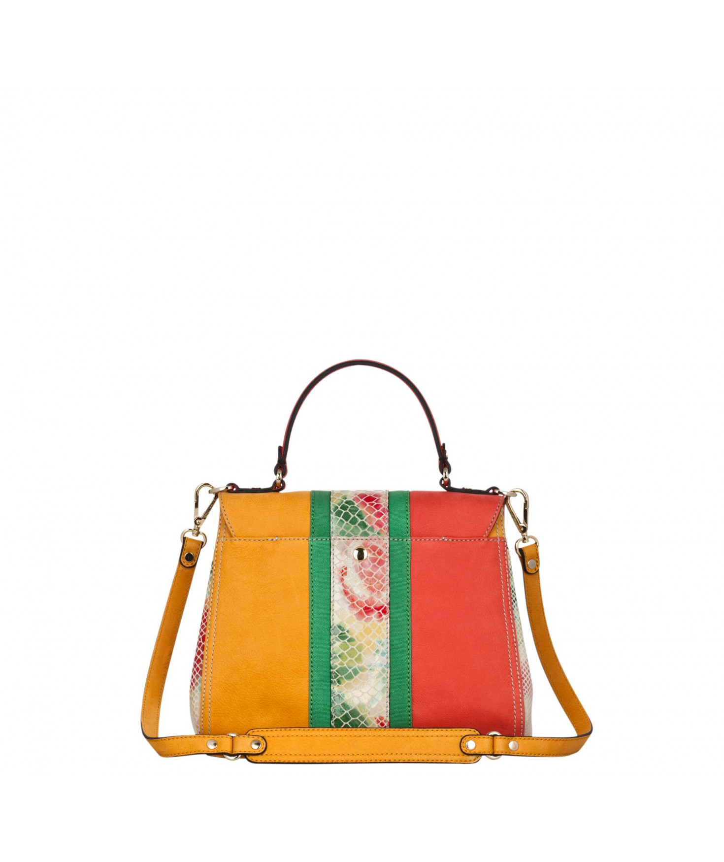 Porté main ou épaule, fermé par rabat et fermoir métal.