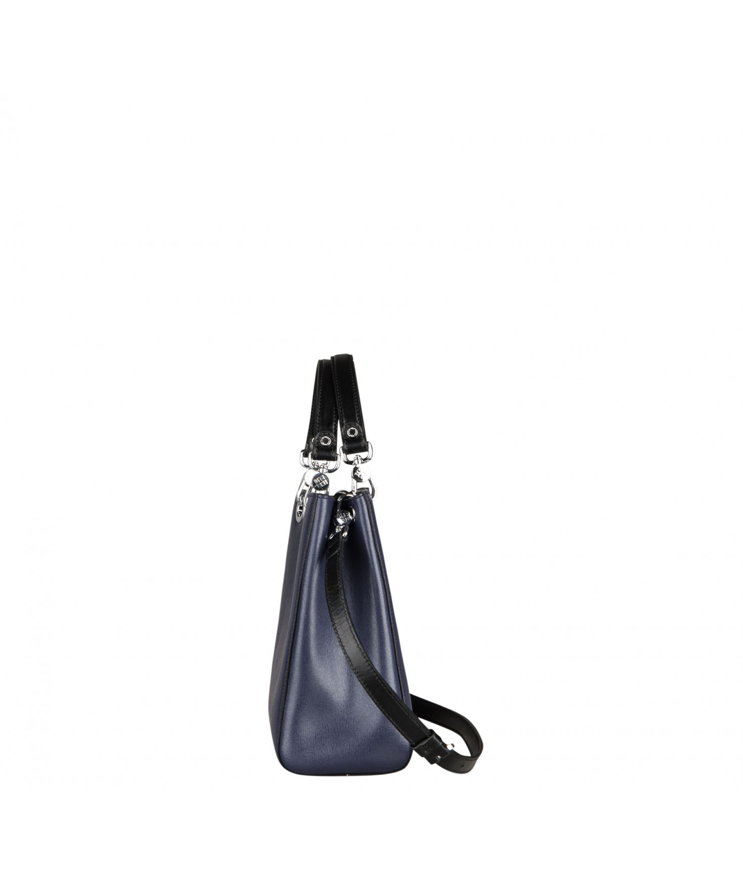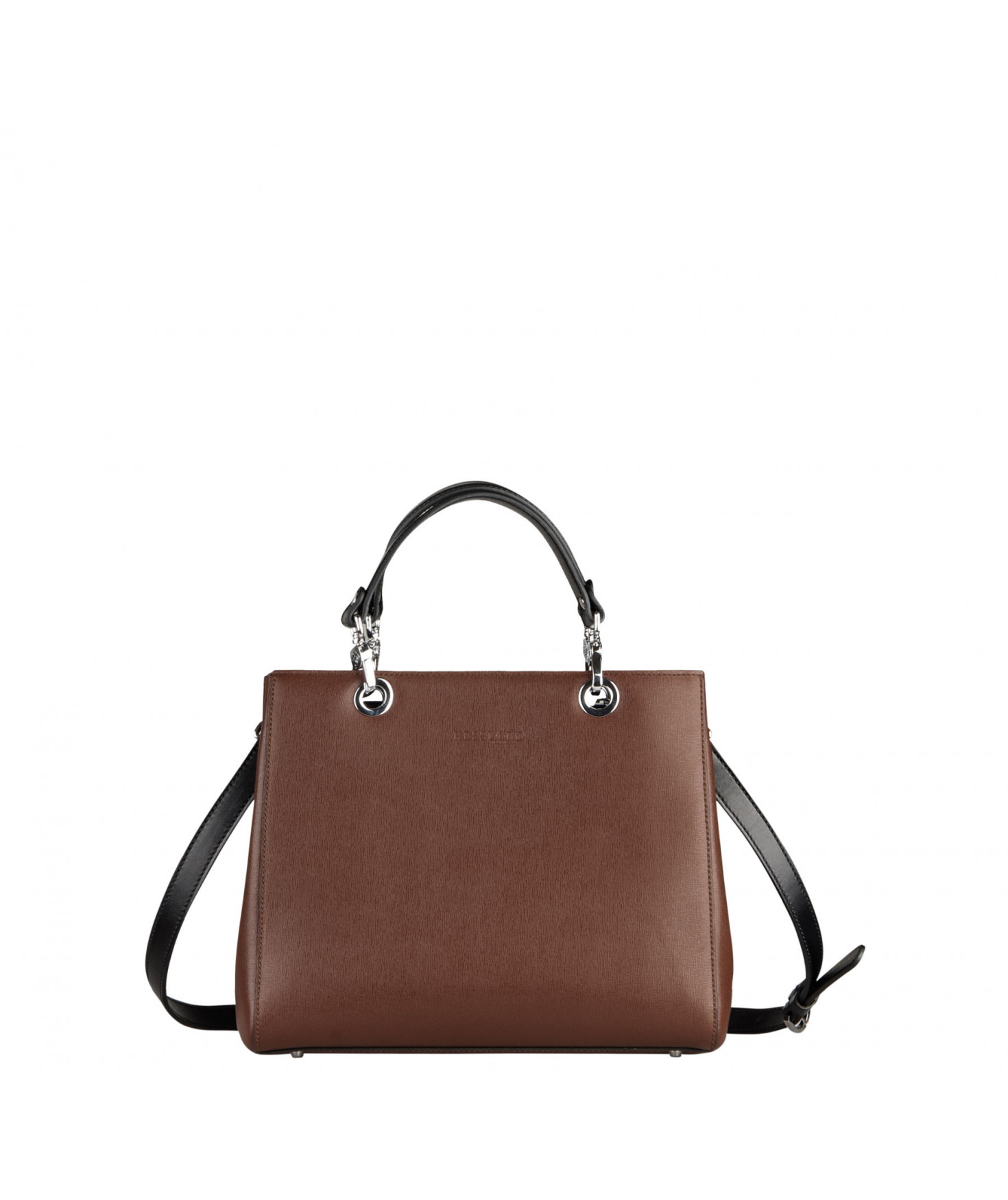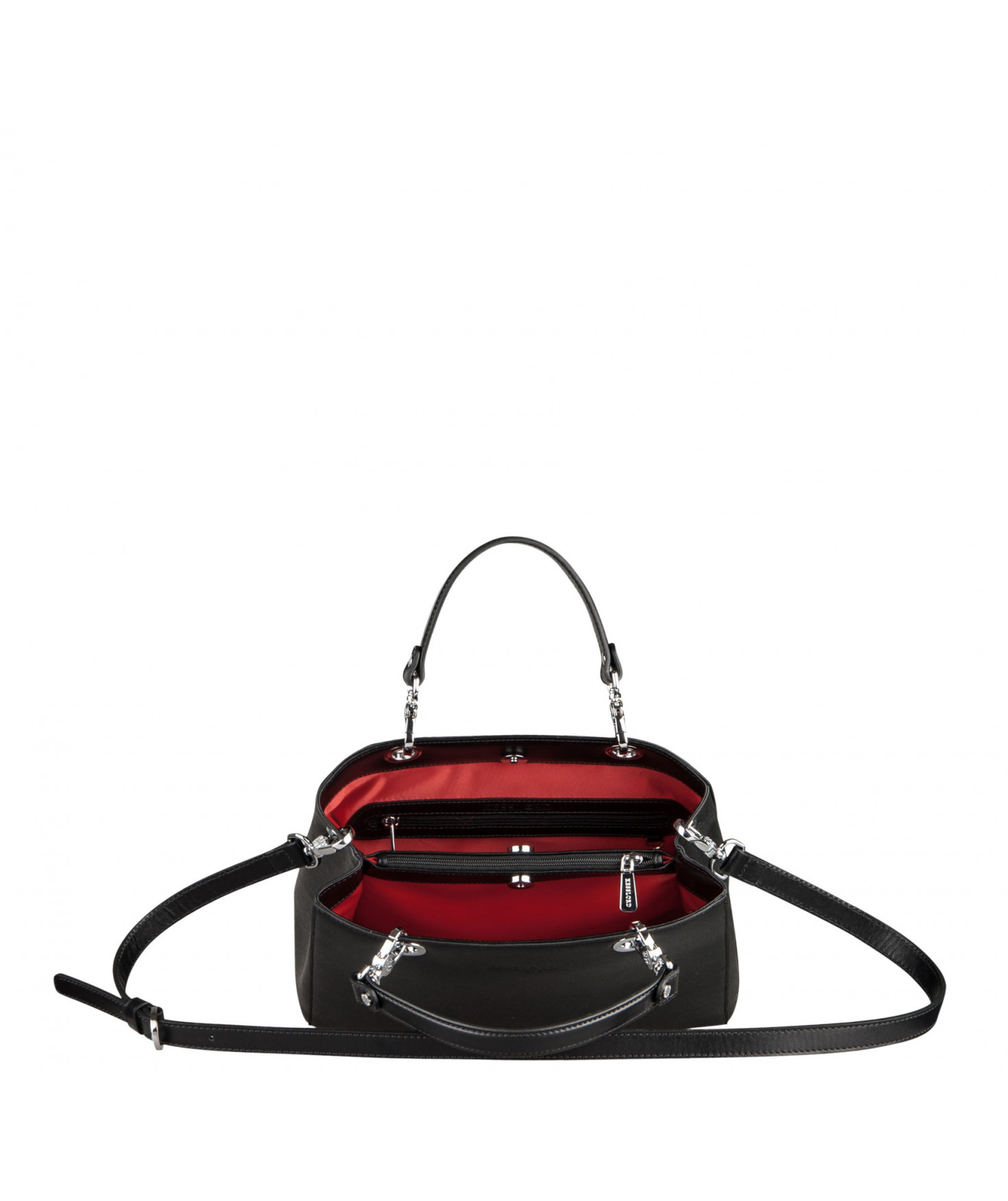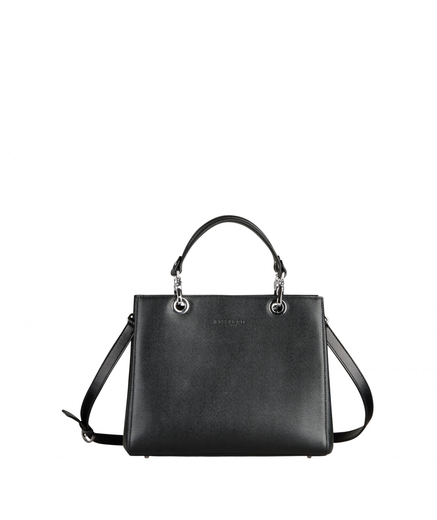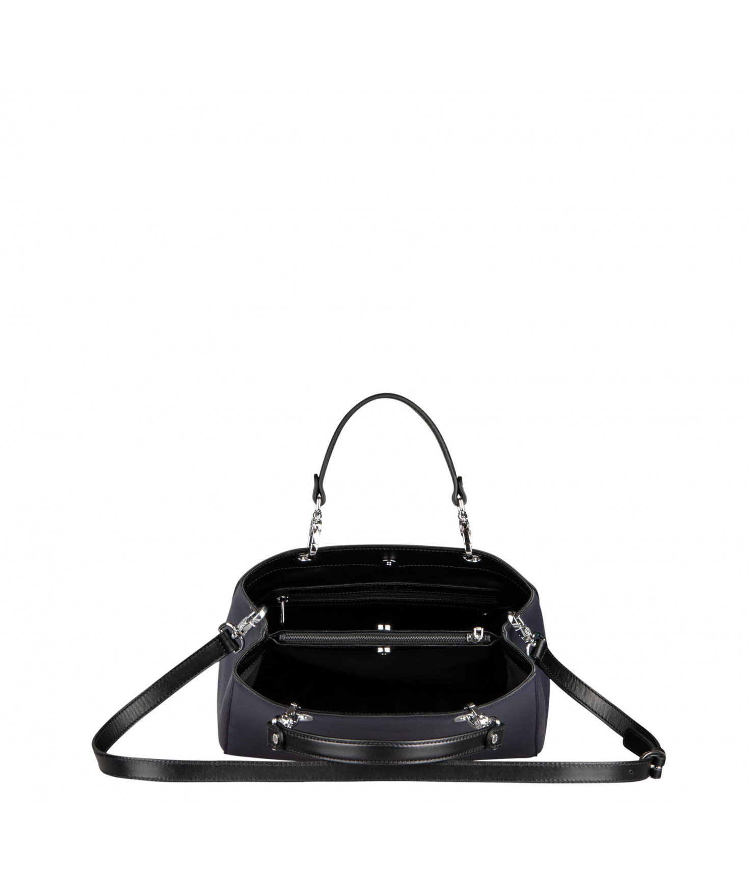 Petit cabas porté main, pourvu de deux anses et d'une bandoulière réglable et amovible.