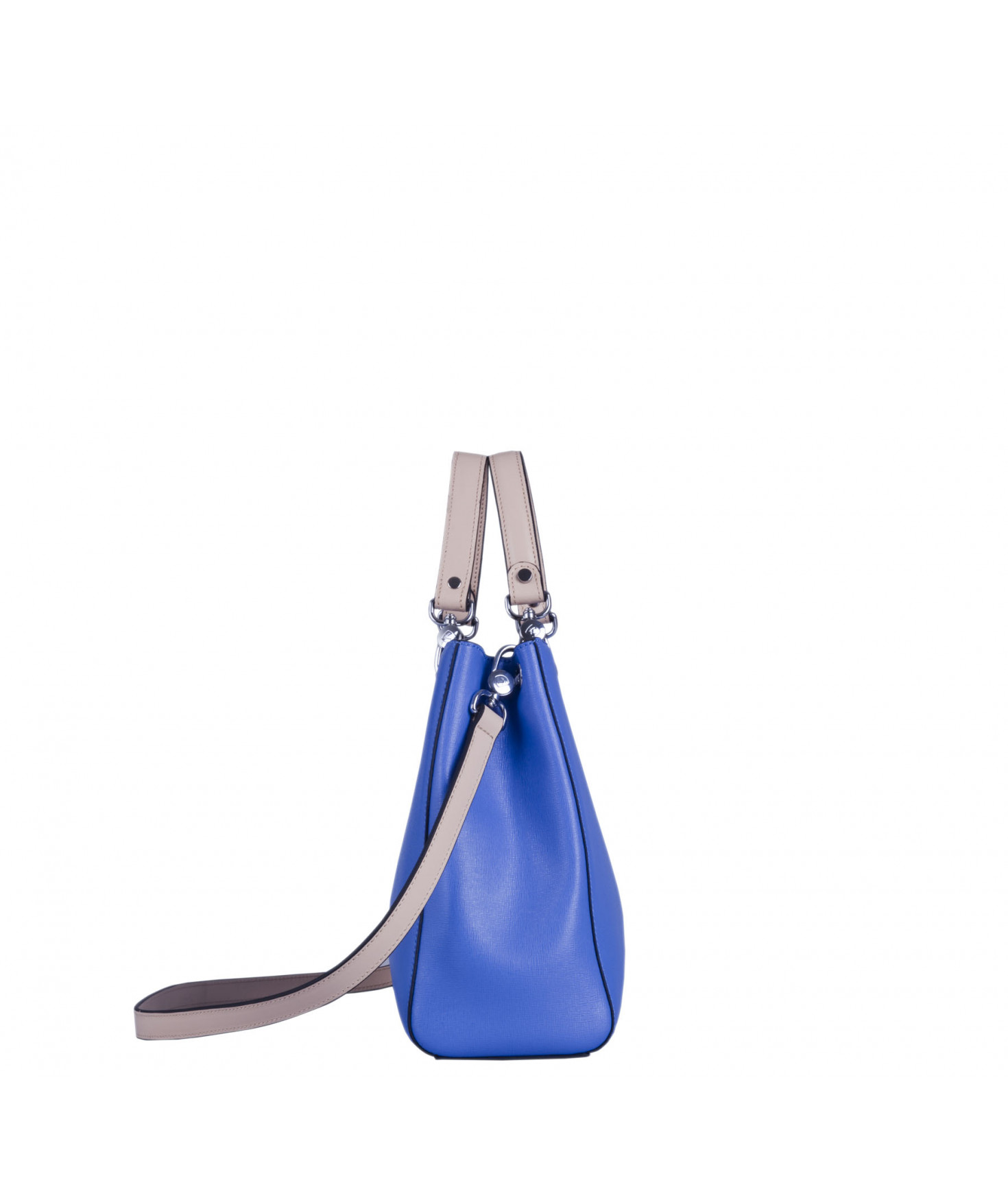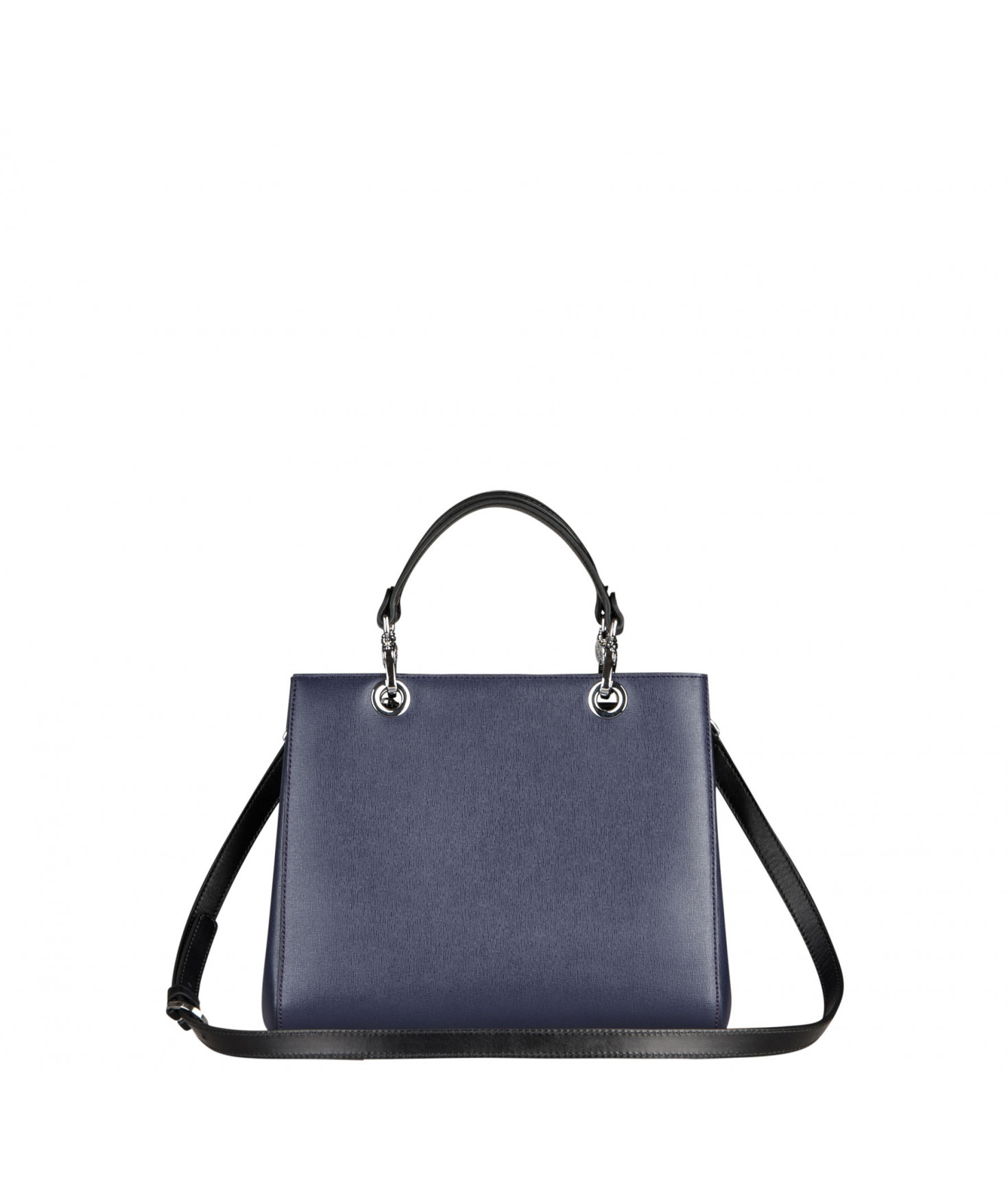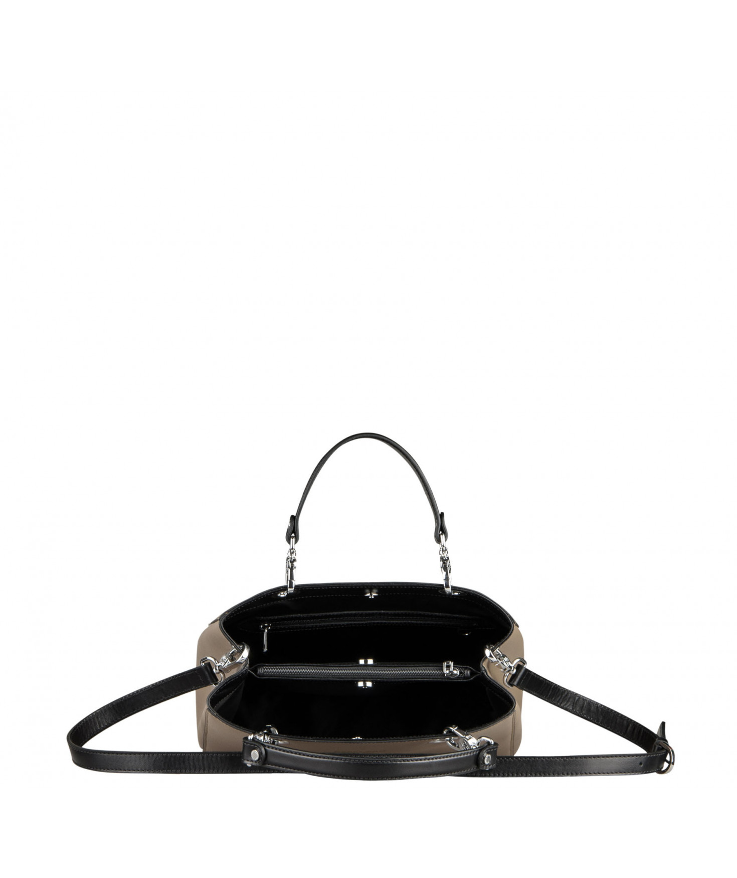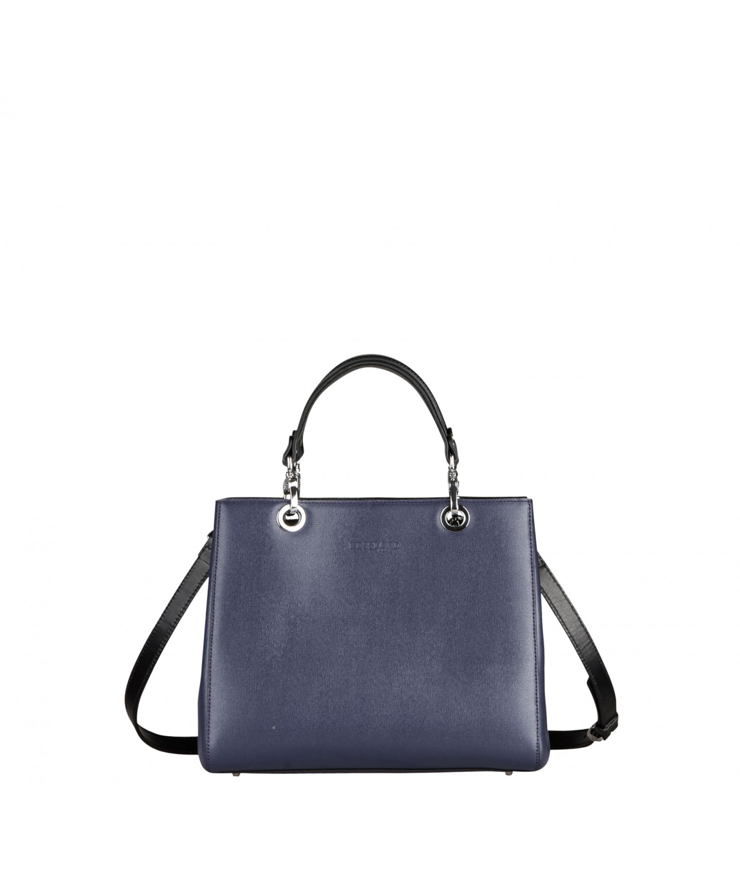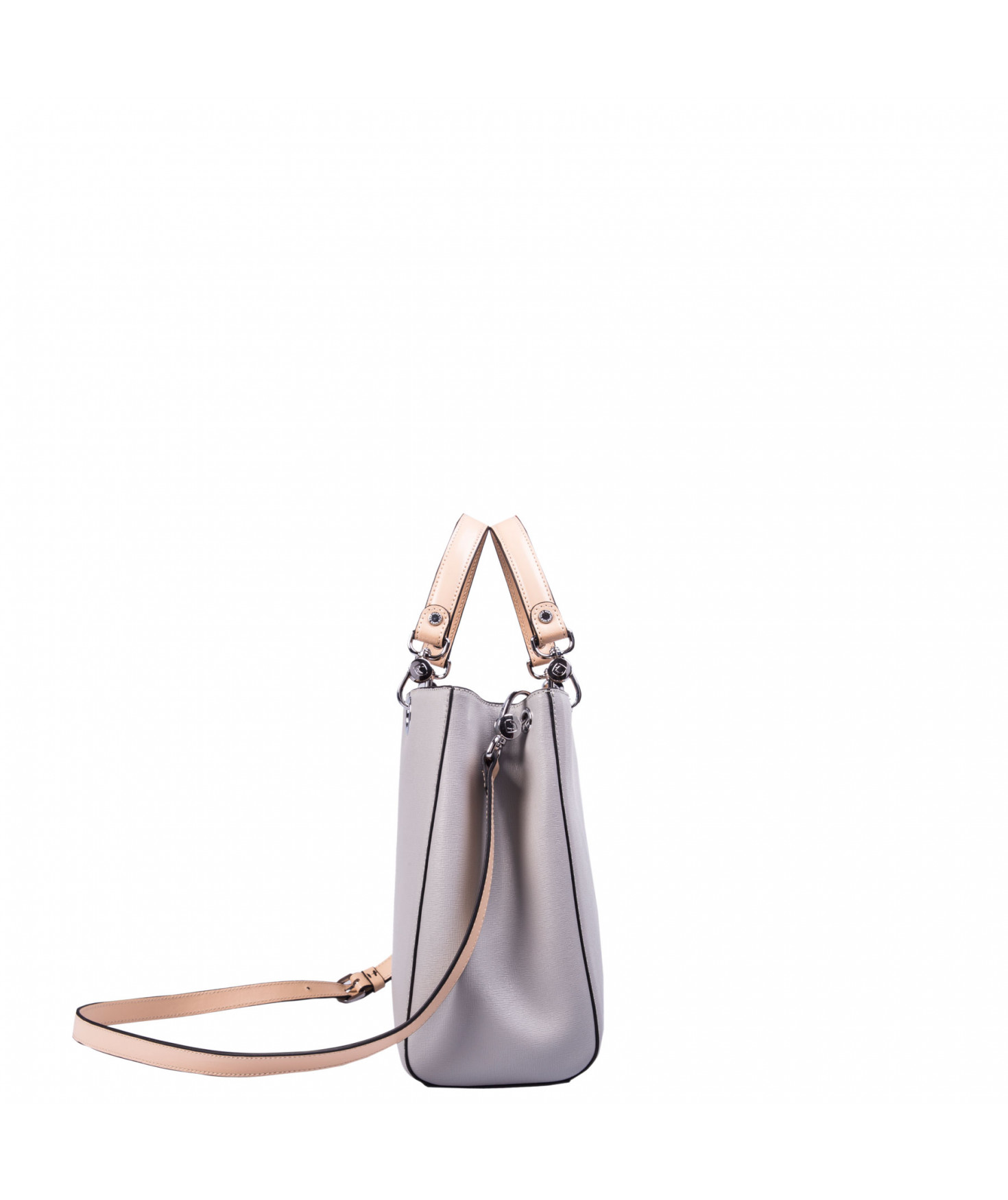 Petit cabas porté main, pourvu de deux anses et d'une bandoulière réglable et amovible.