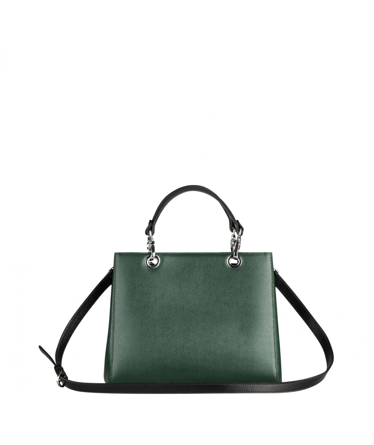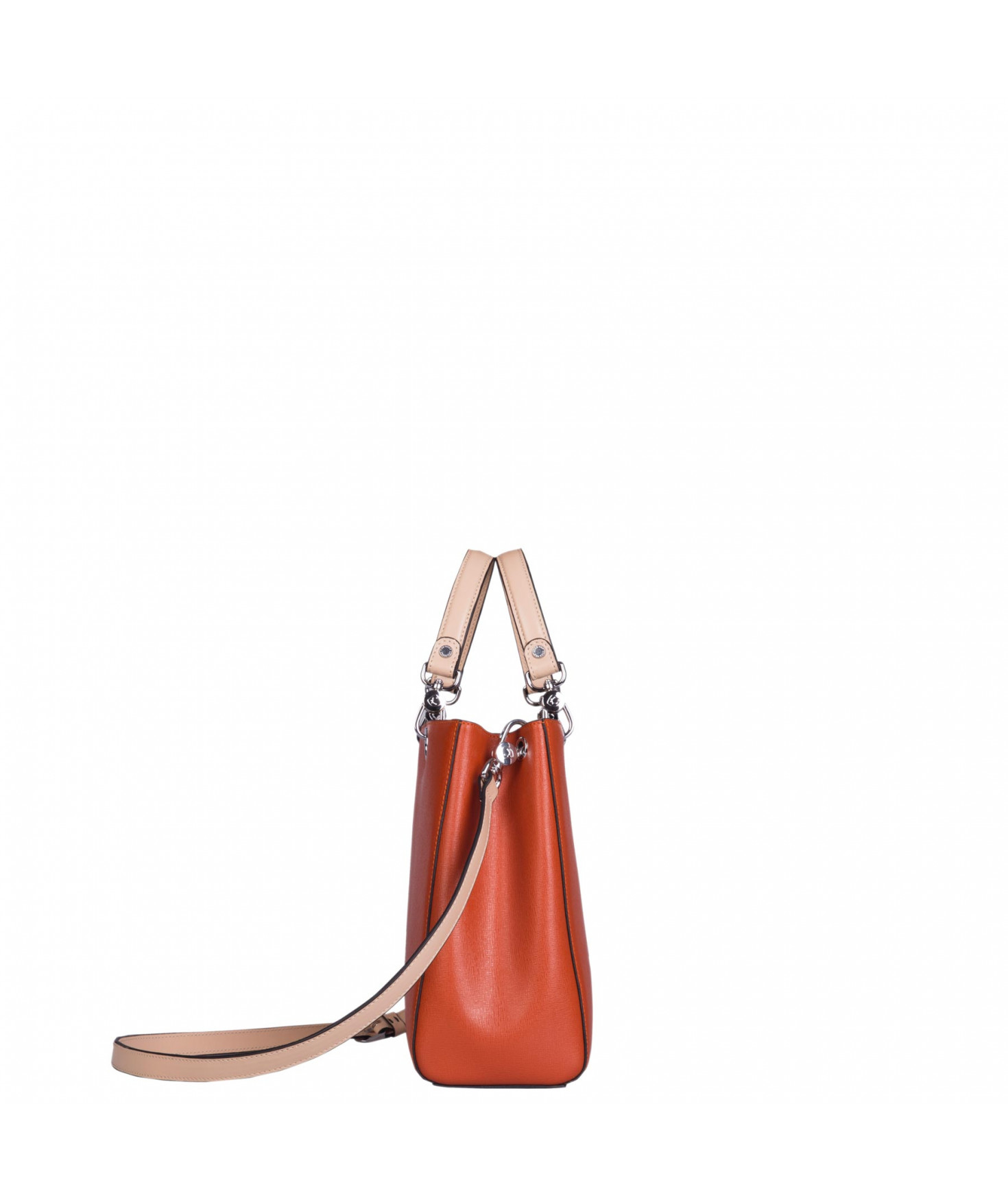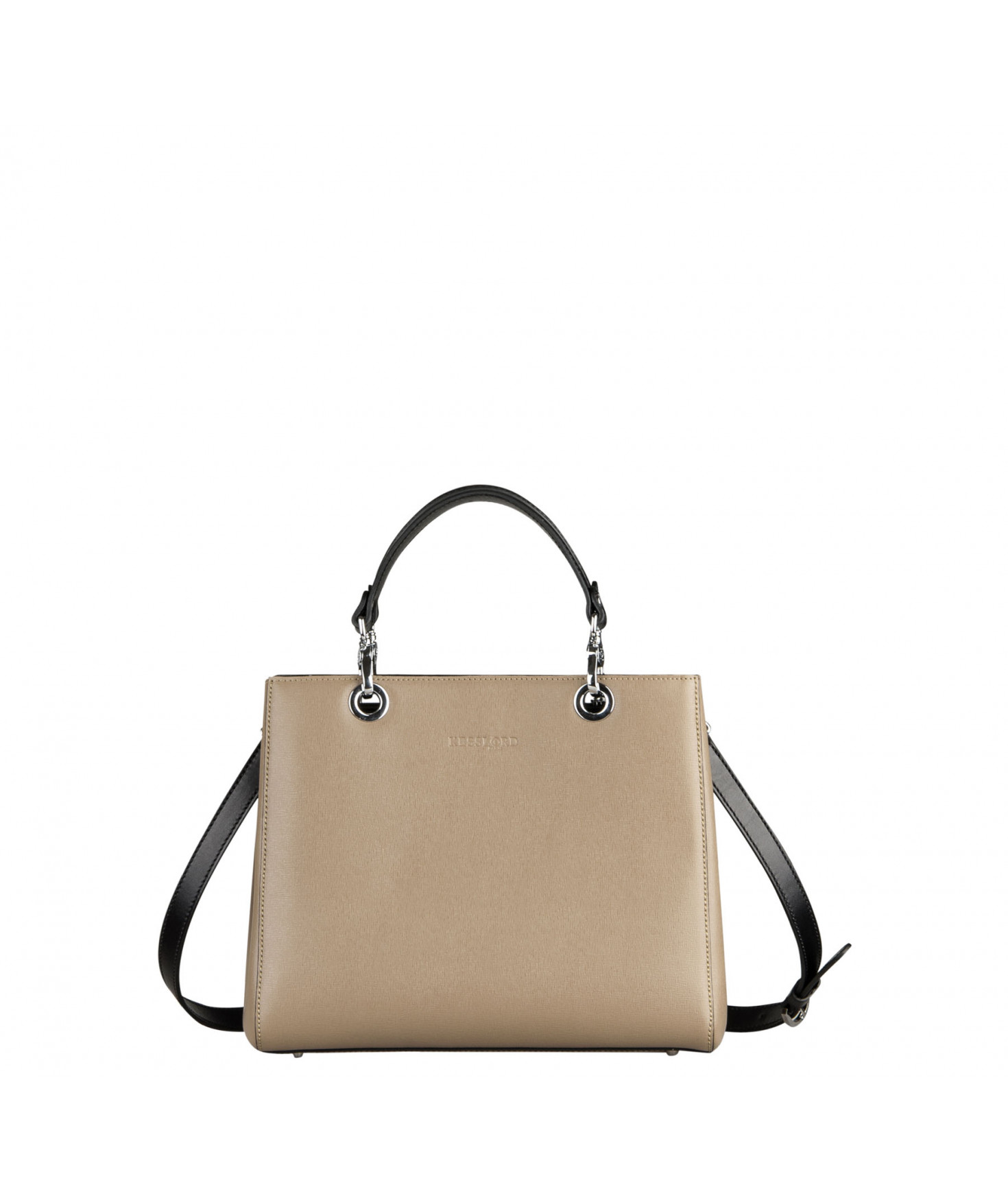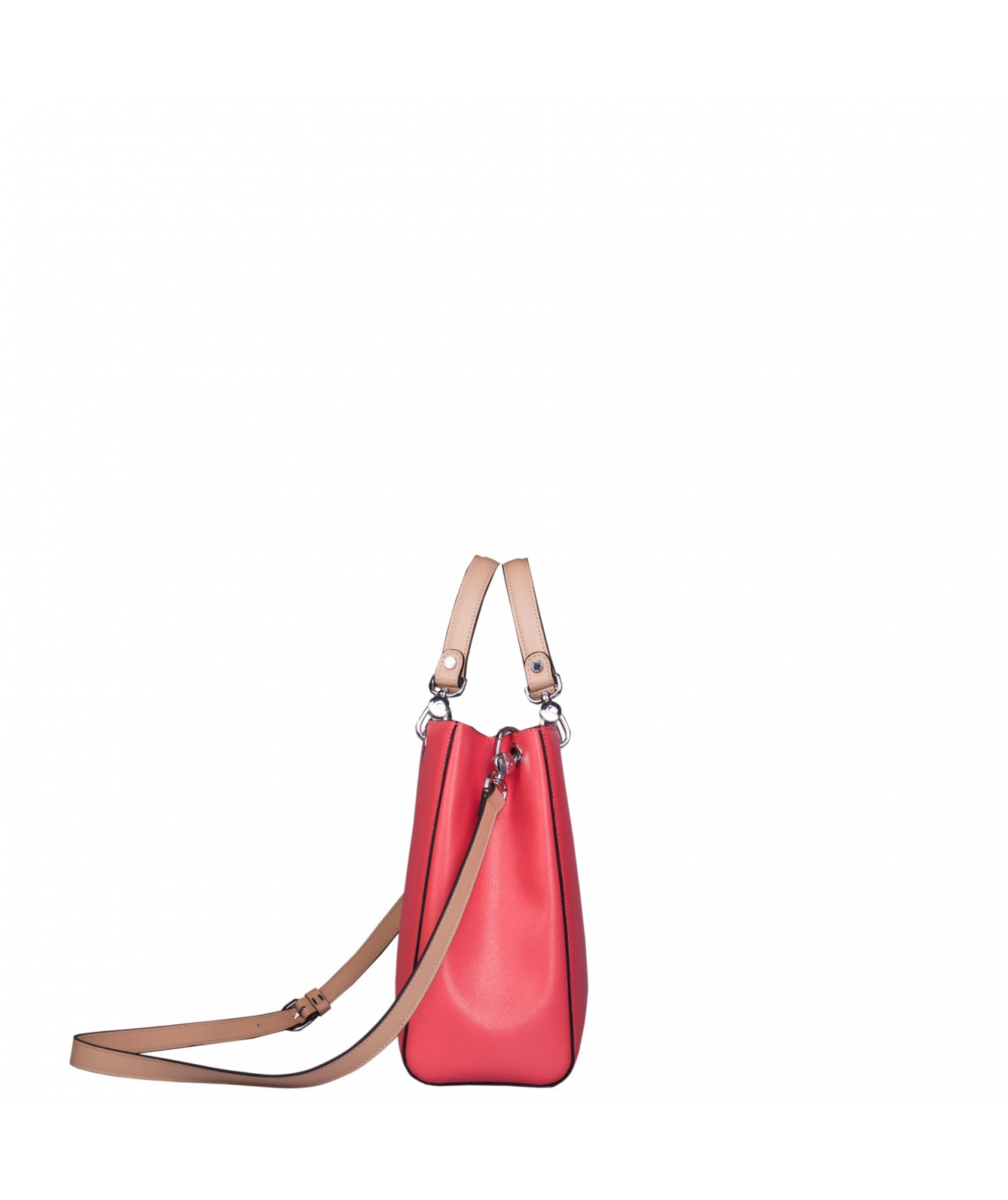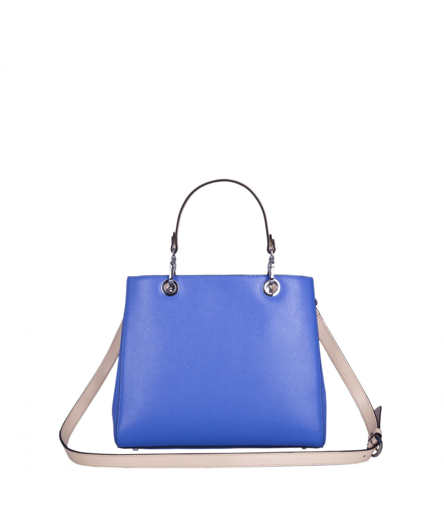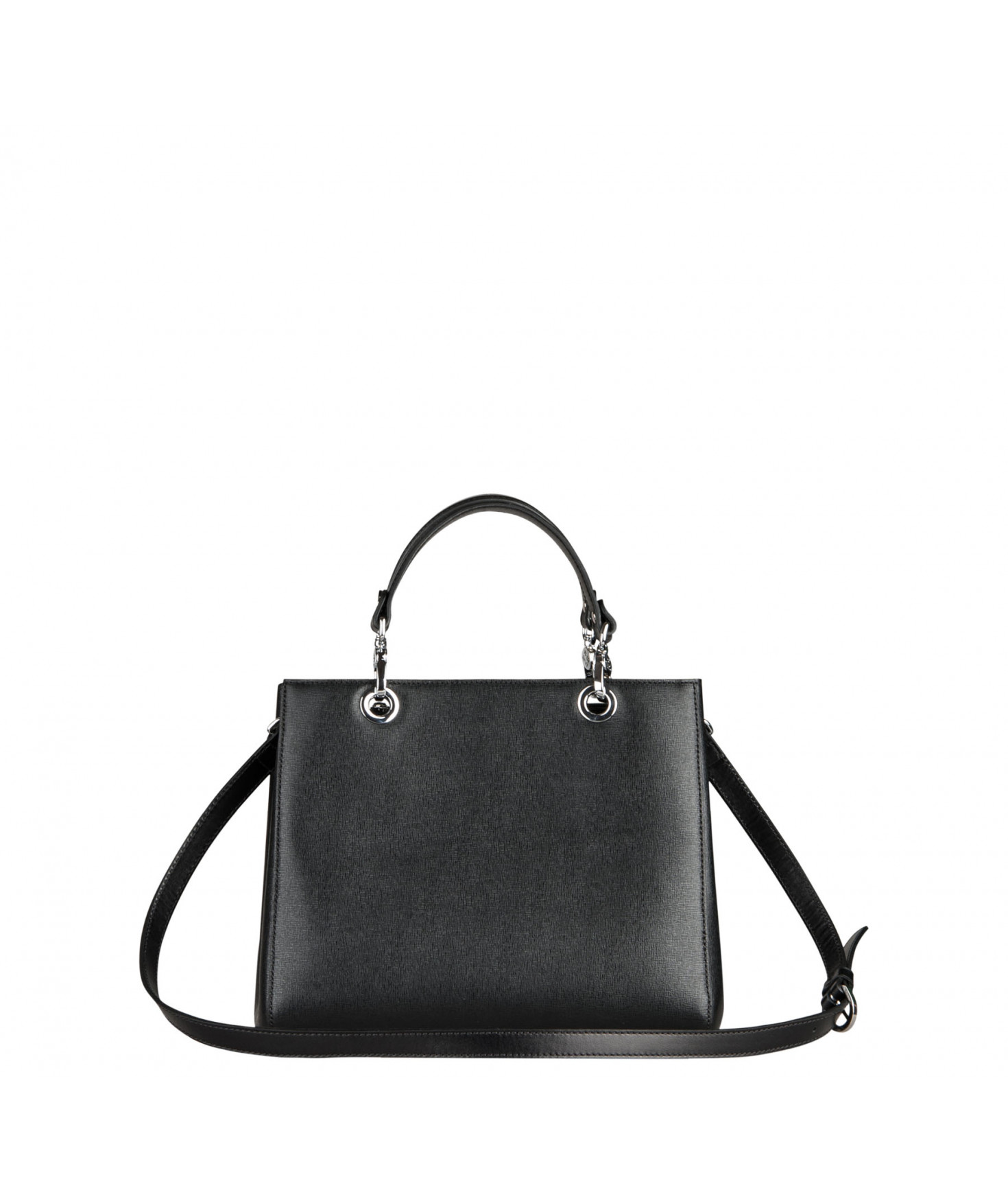 Petit cabas porté main, pourvu de deux anses et d'une bandoulière réglable et amovible.