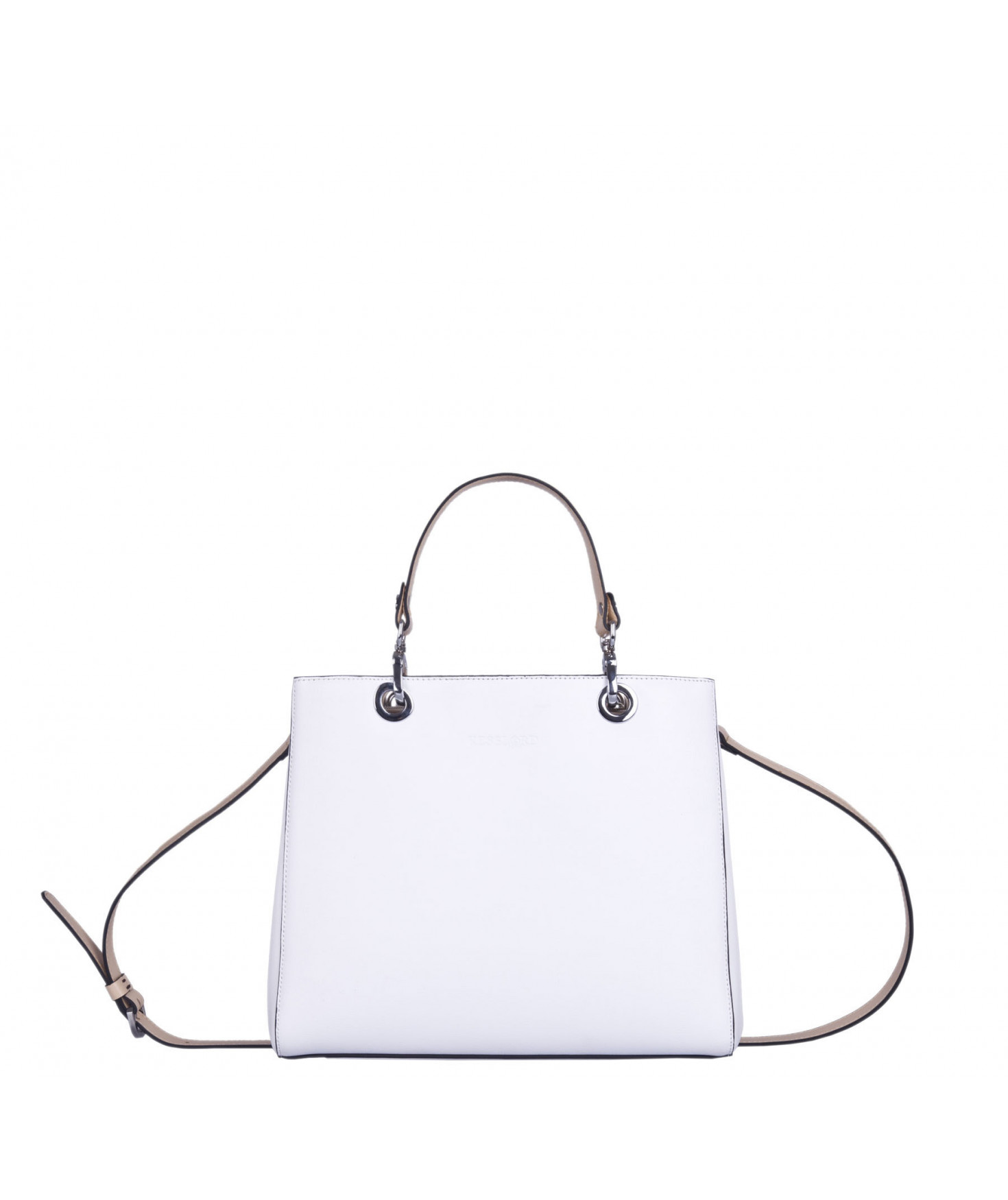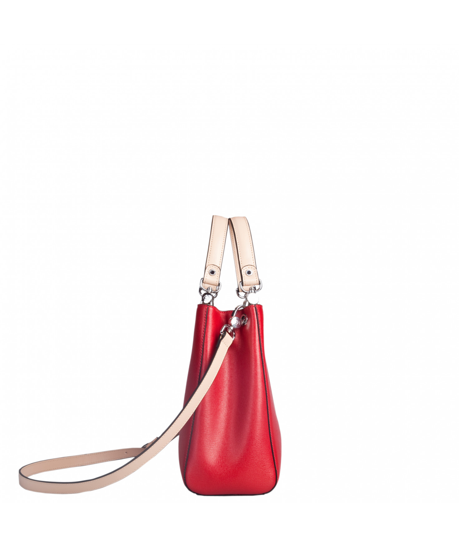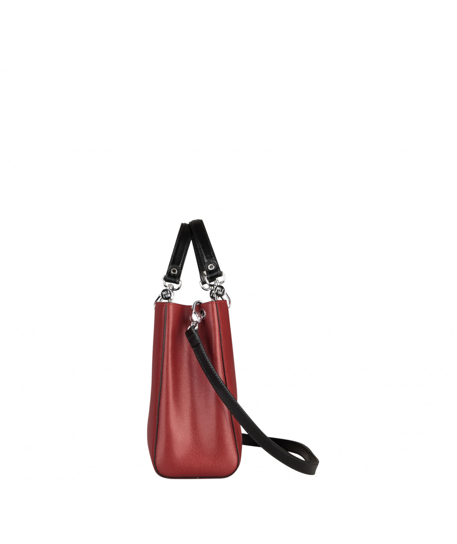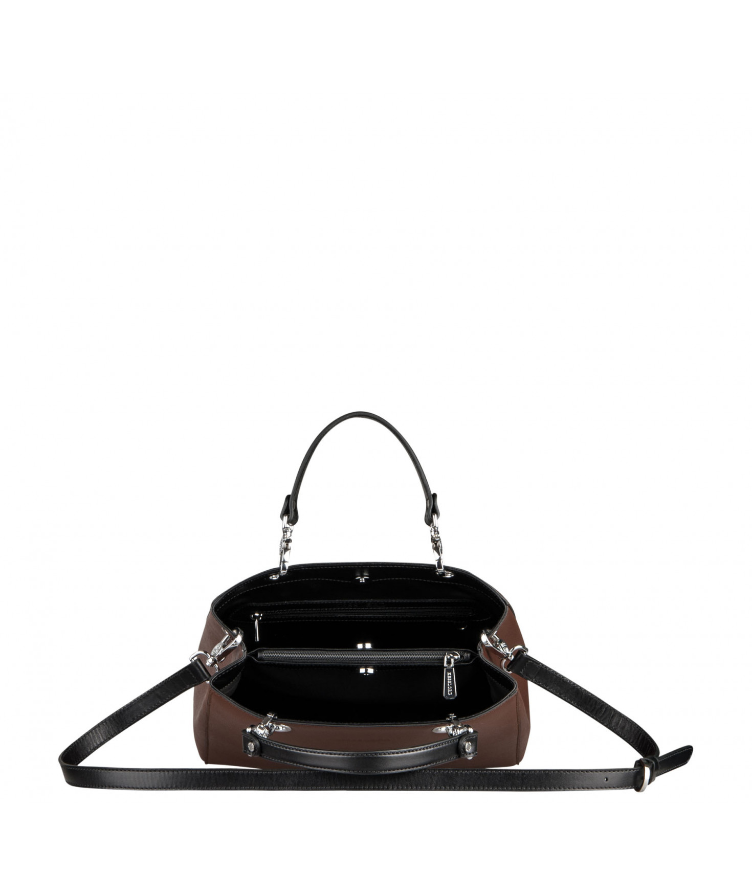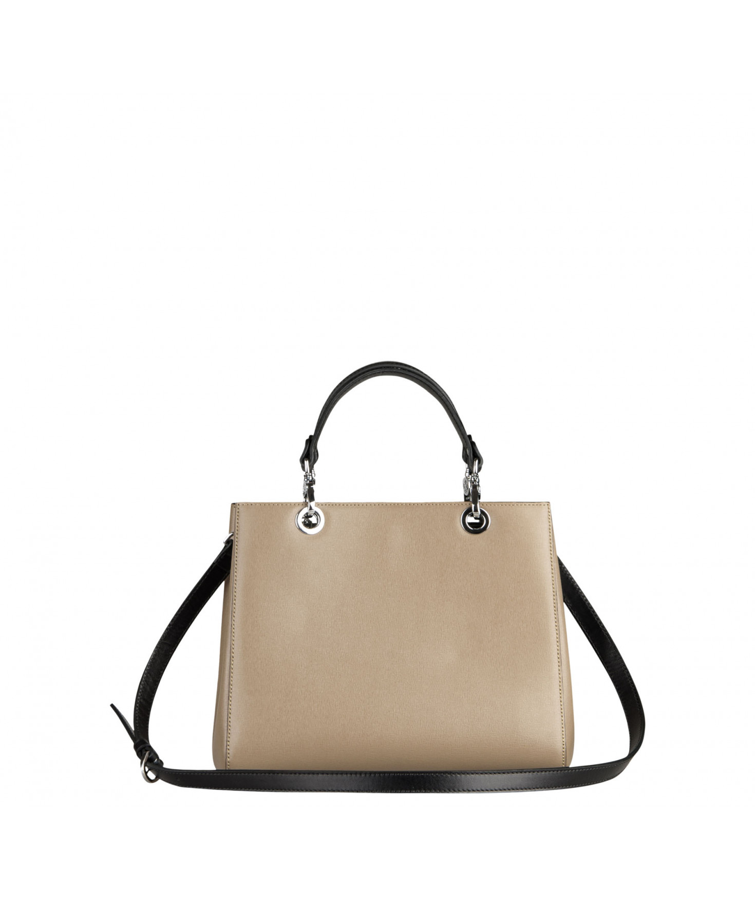 Petit cabas porté main, pourvu de deux anses et d'une bandoulière réglable et amovible.