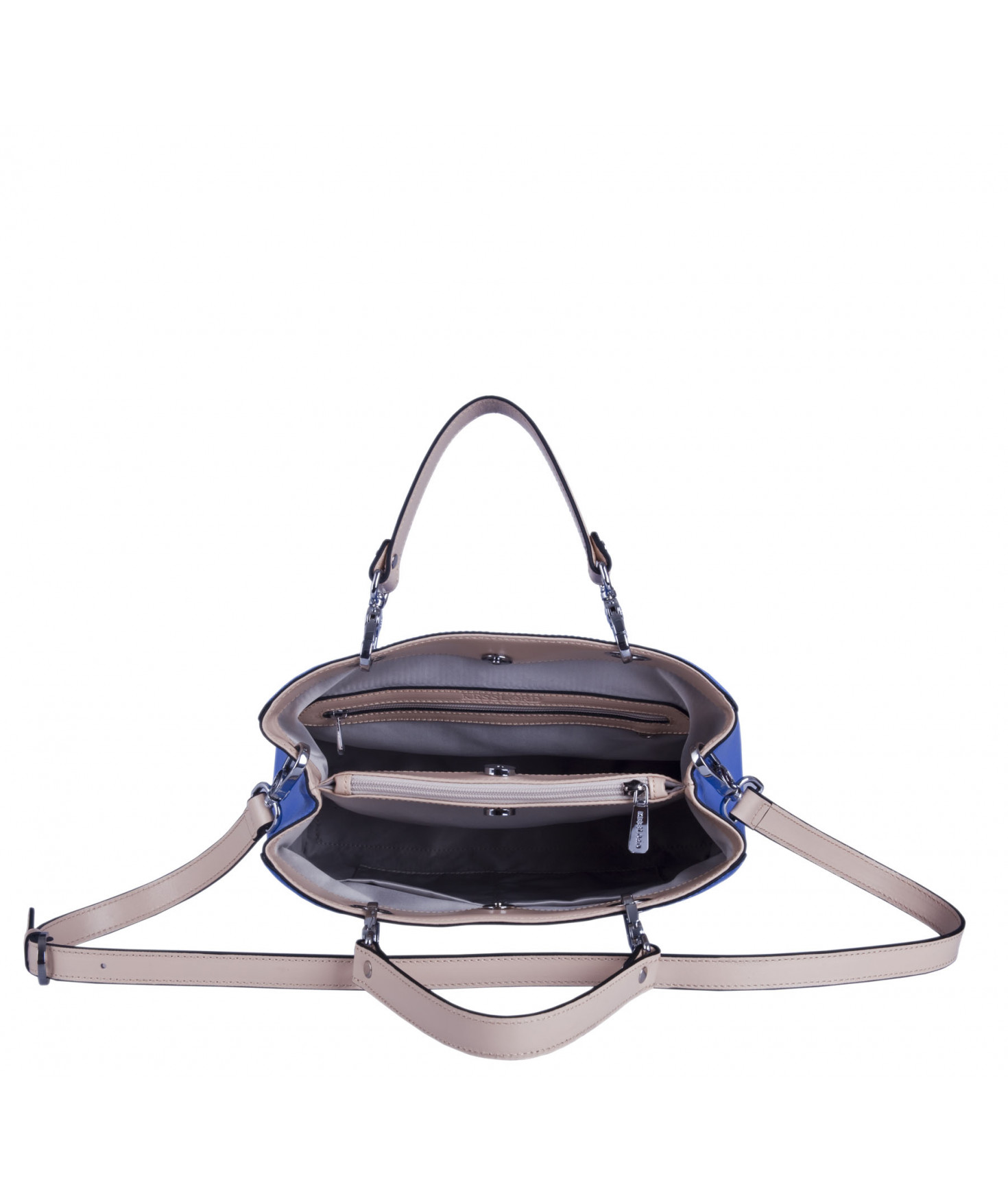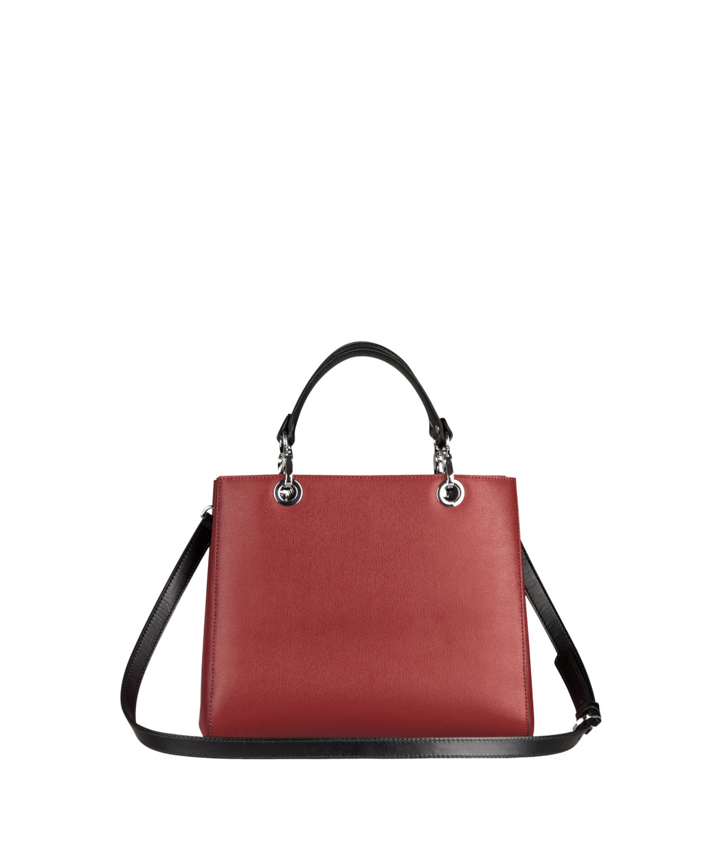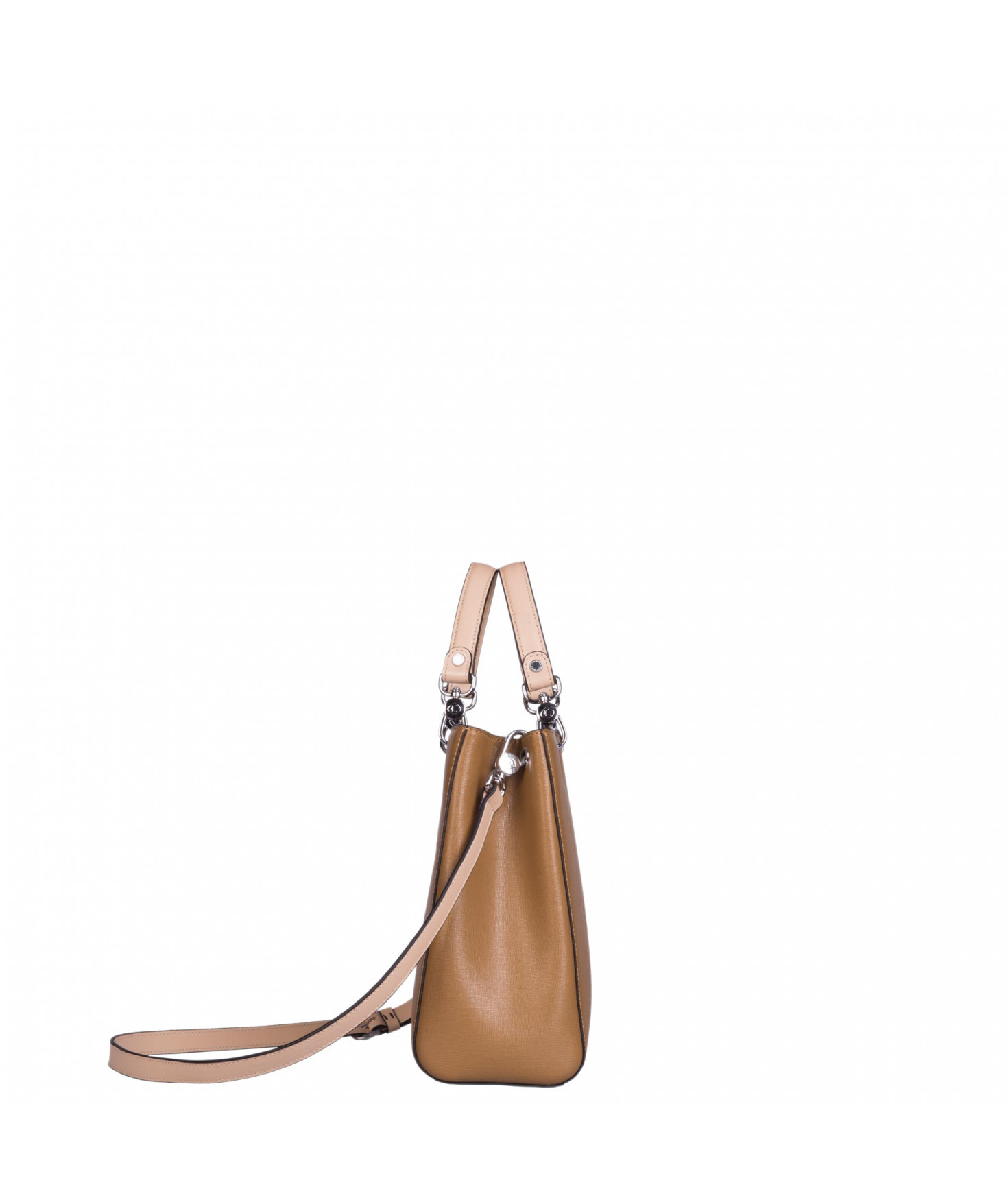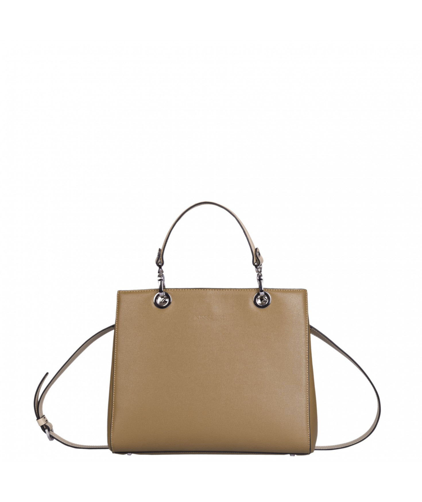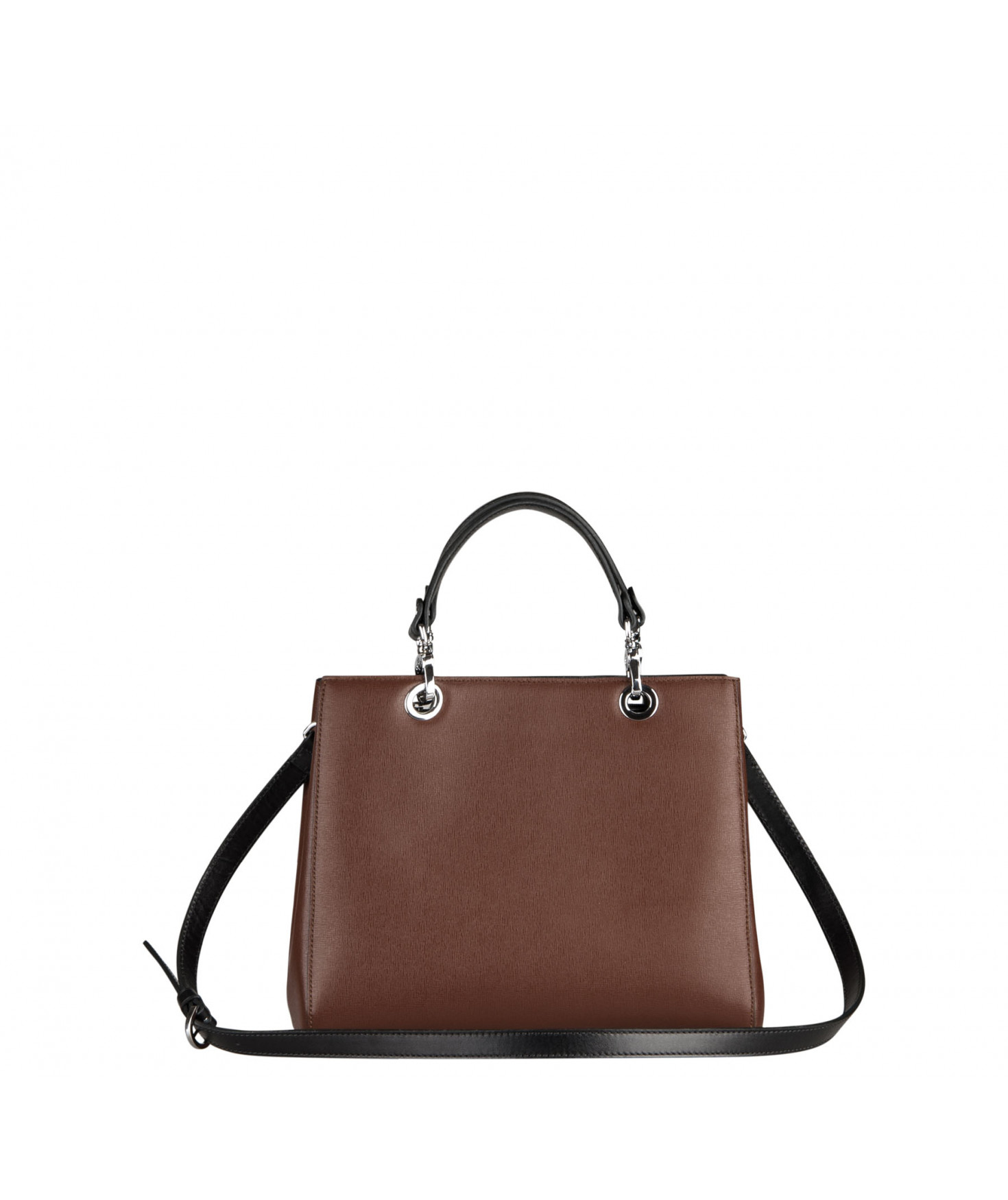 Petit cabas porté main, pourvu de deux anses et d'une bandoulière réglable et amovible.