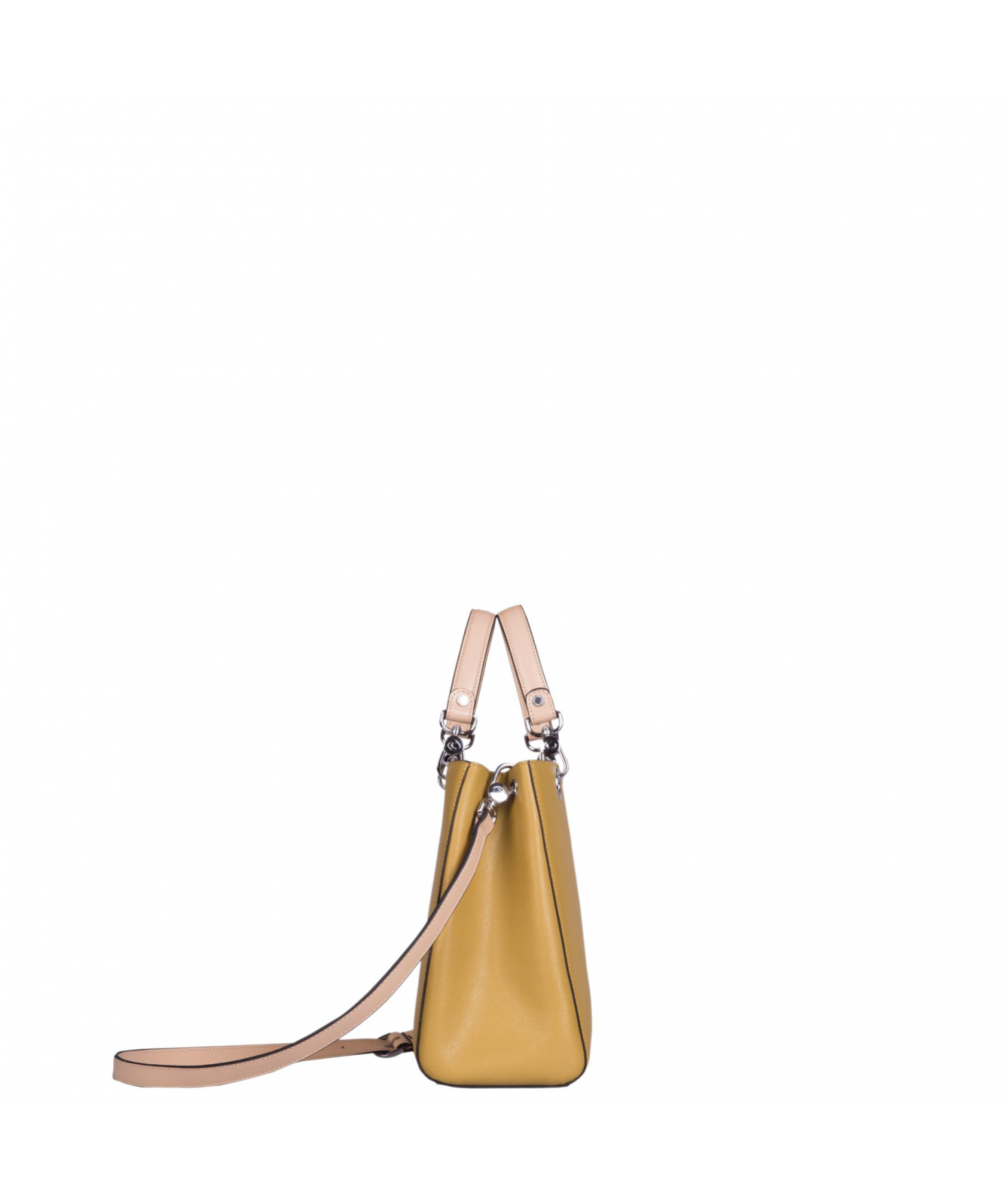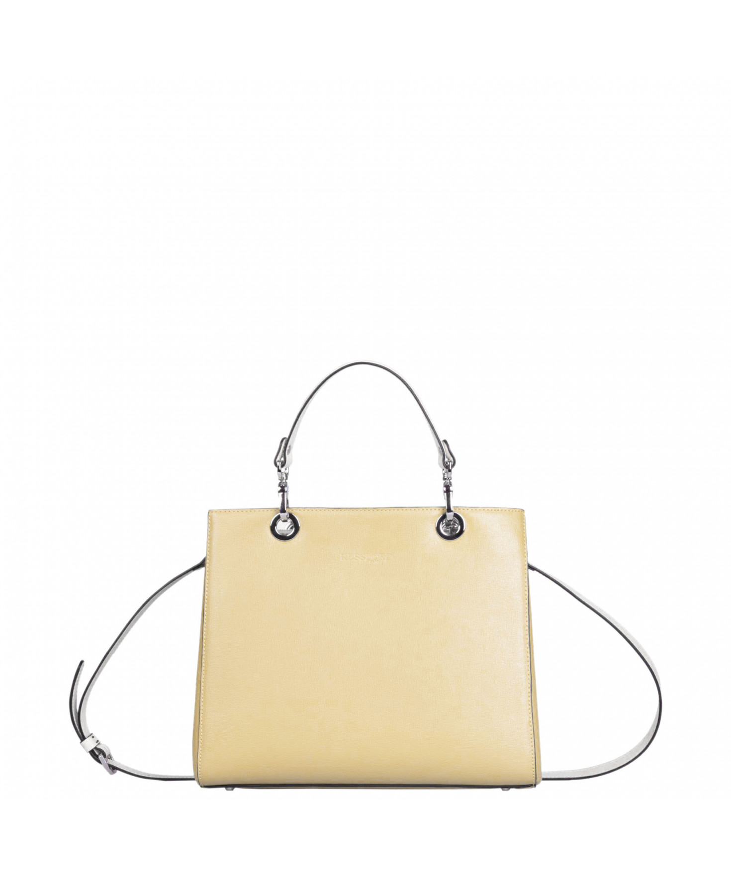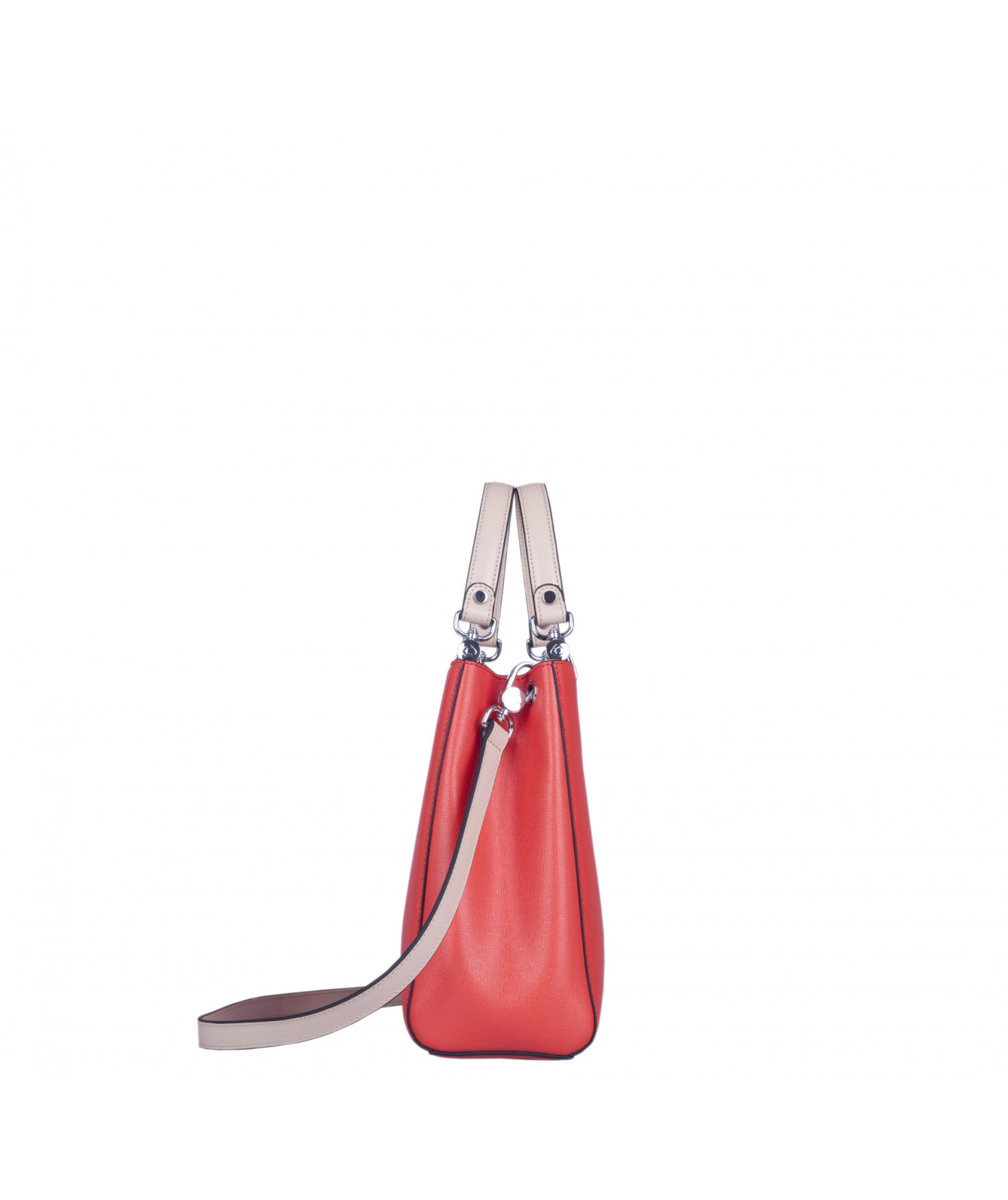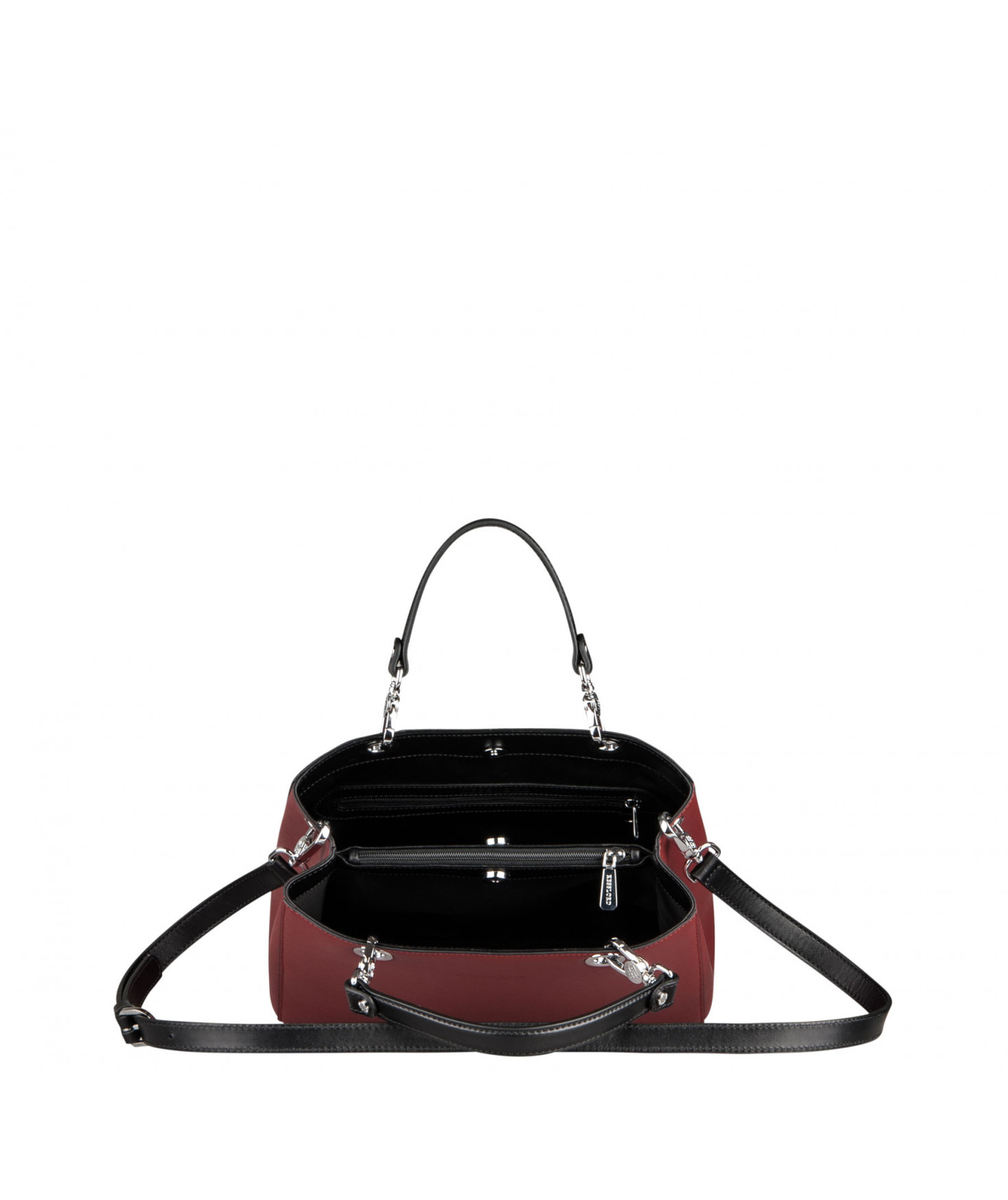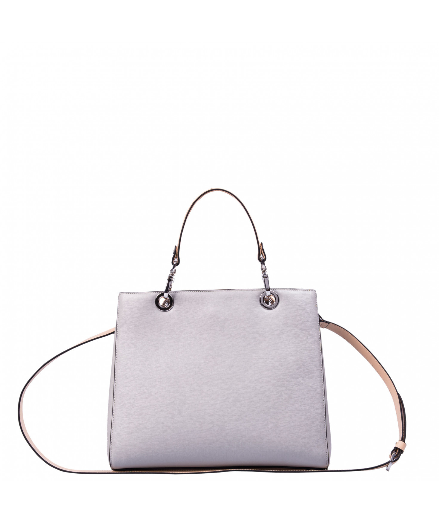 Petit cabas porté main, pourvu de deux anses et d'une bandoulière réglable et amovible.