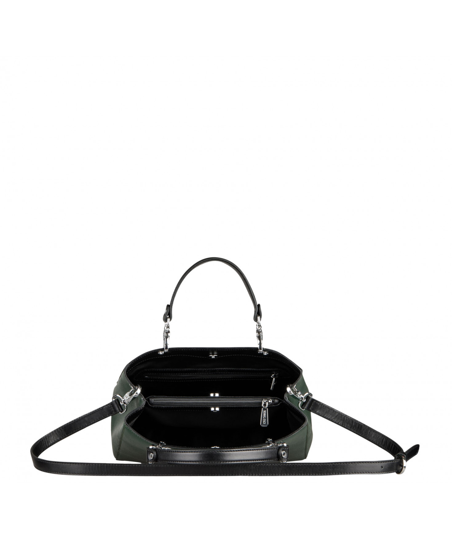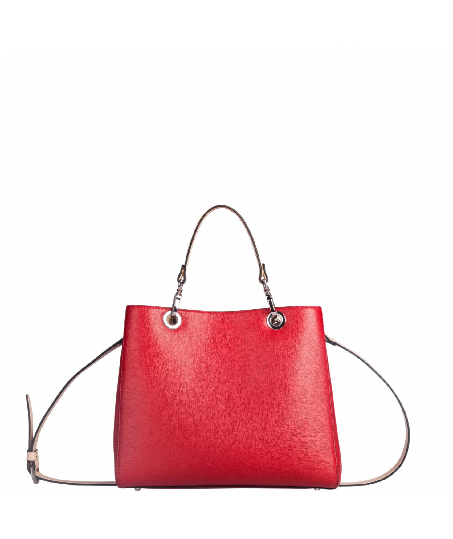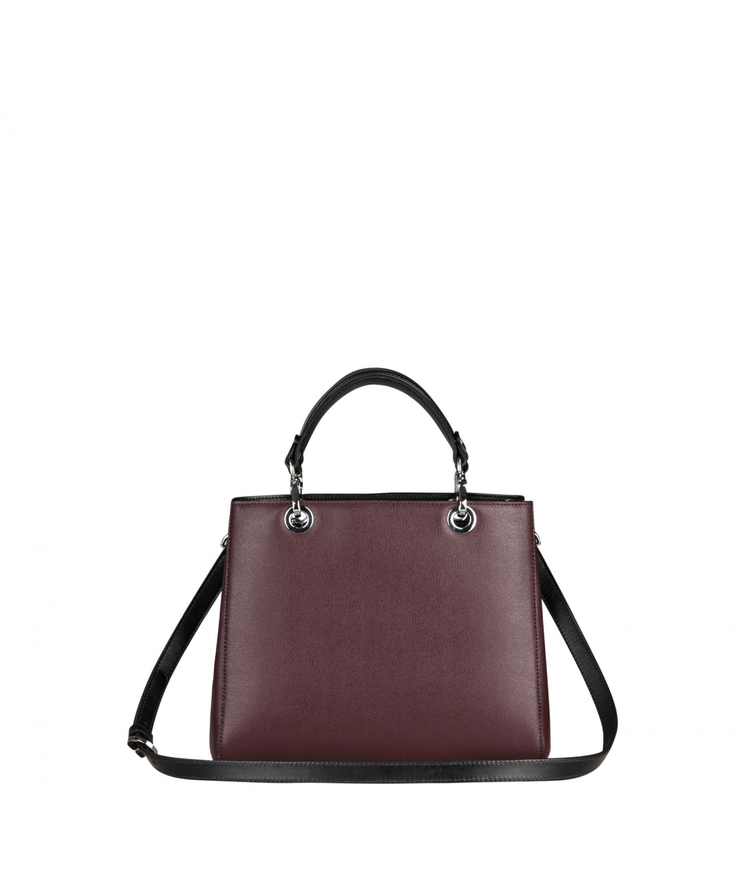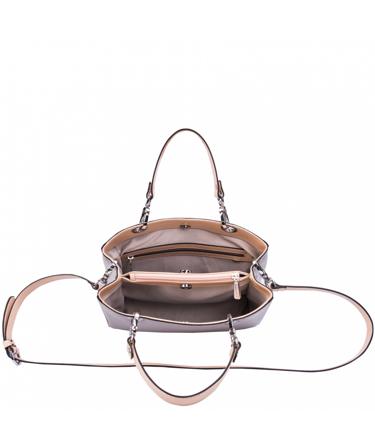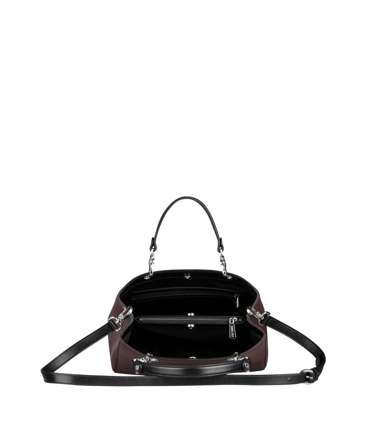 Petit cabas porté main, pourvu de deux anses et d'une bandoulière réglable et amovible.
