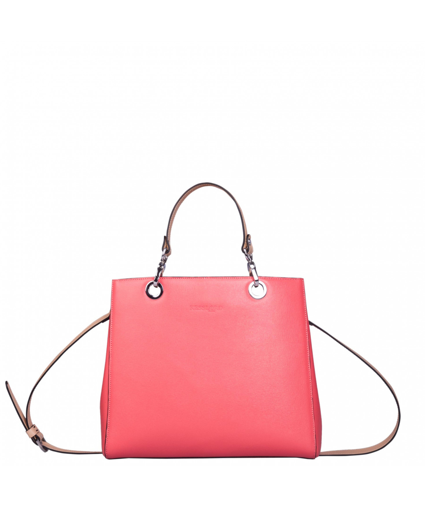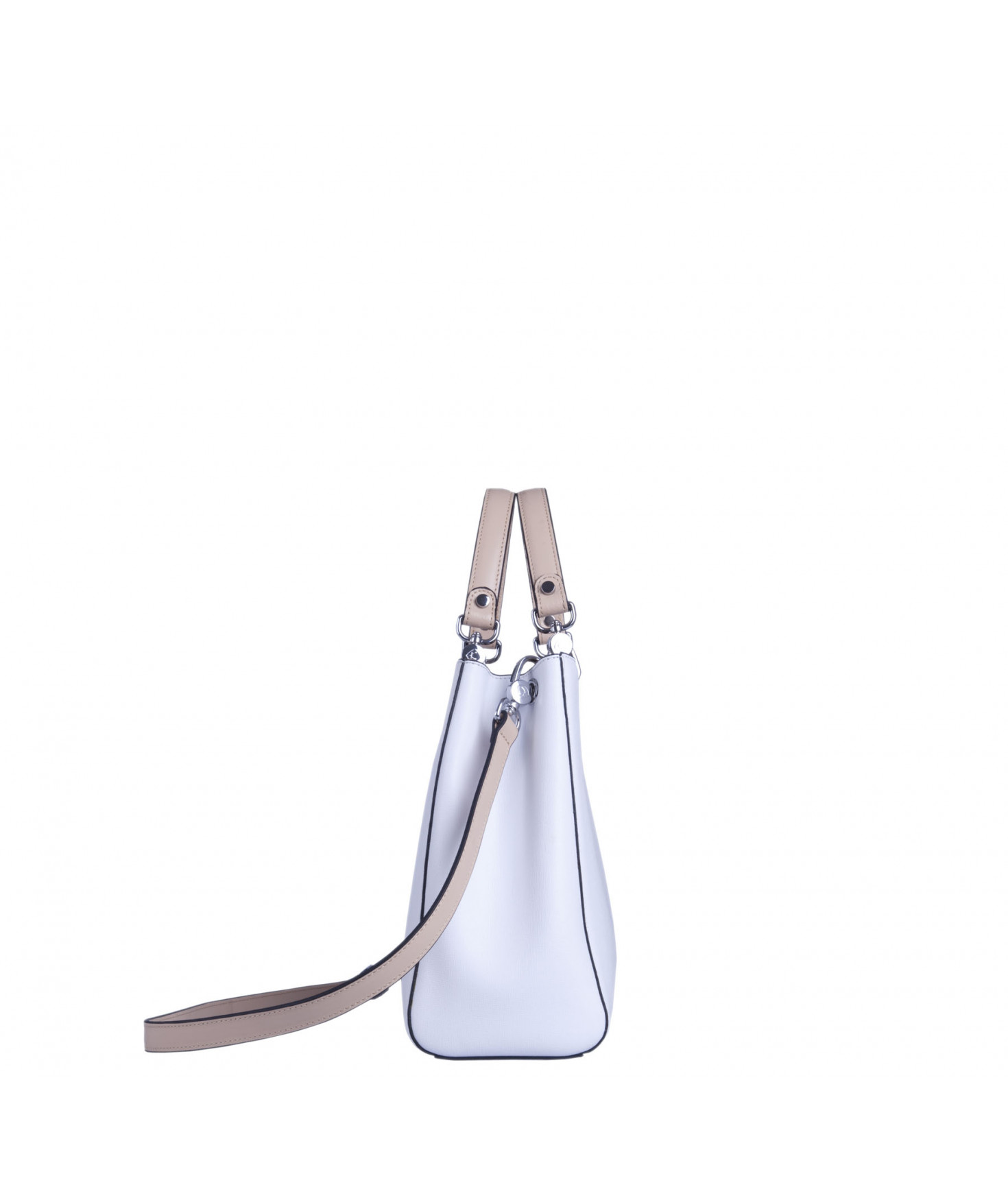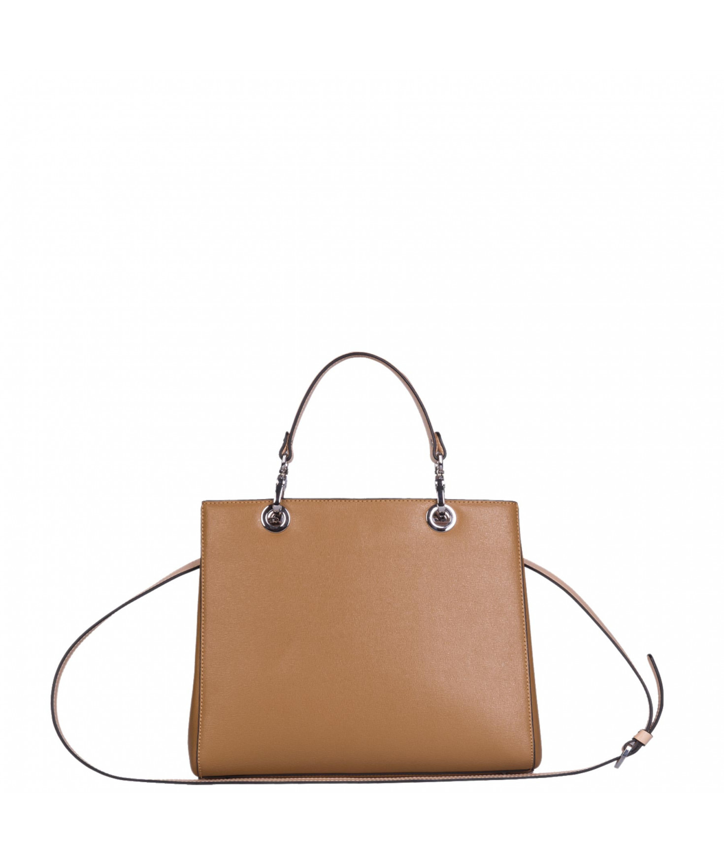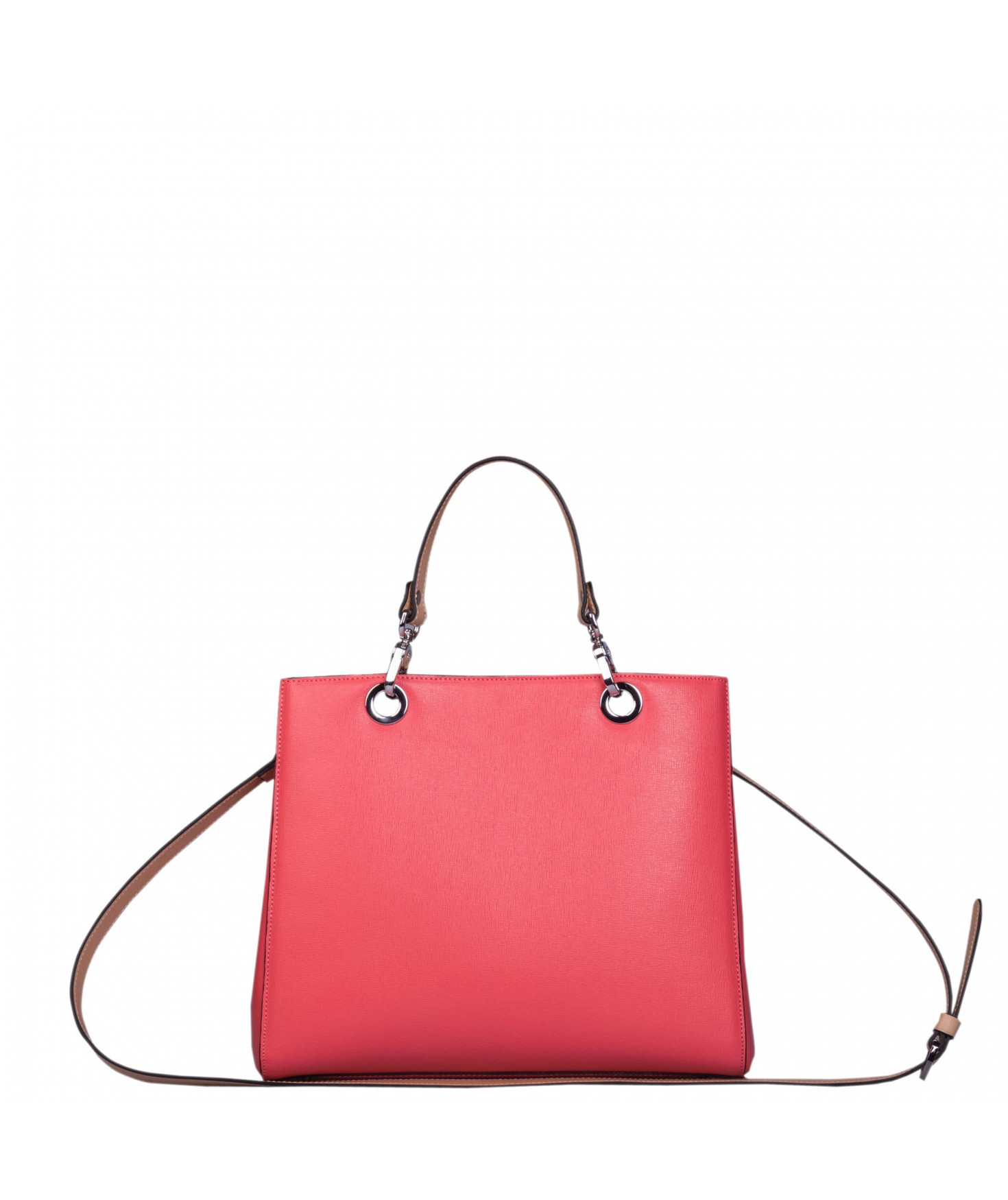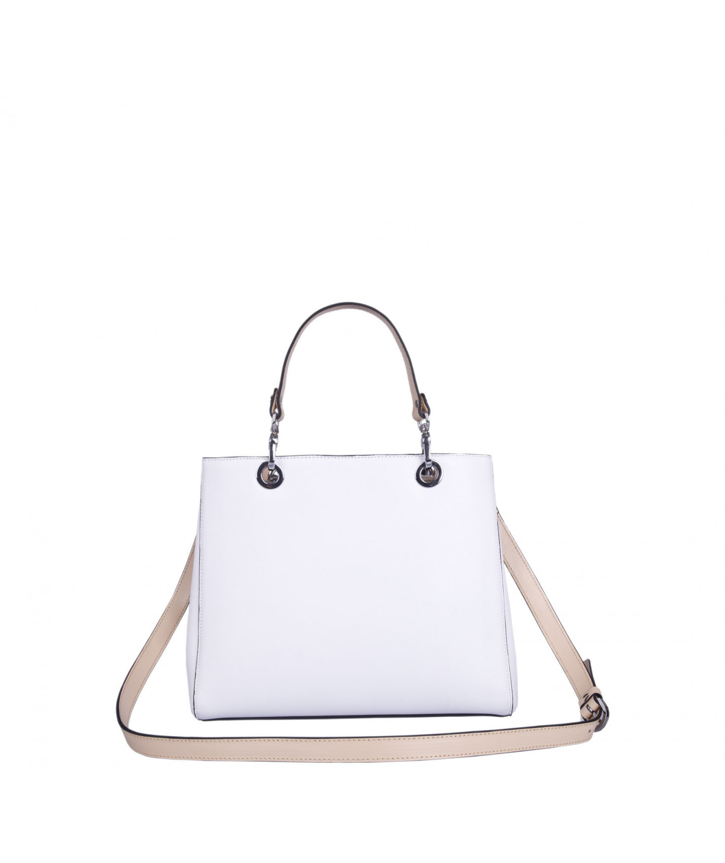 Petit cabas porté main, pourvu de deux anses et d'une bandoulière réglable et amovible.