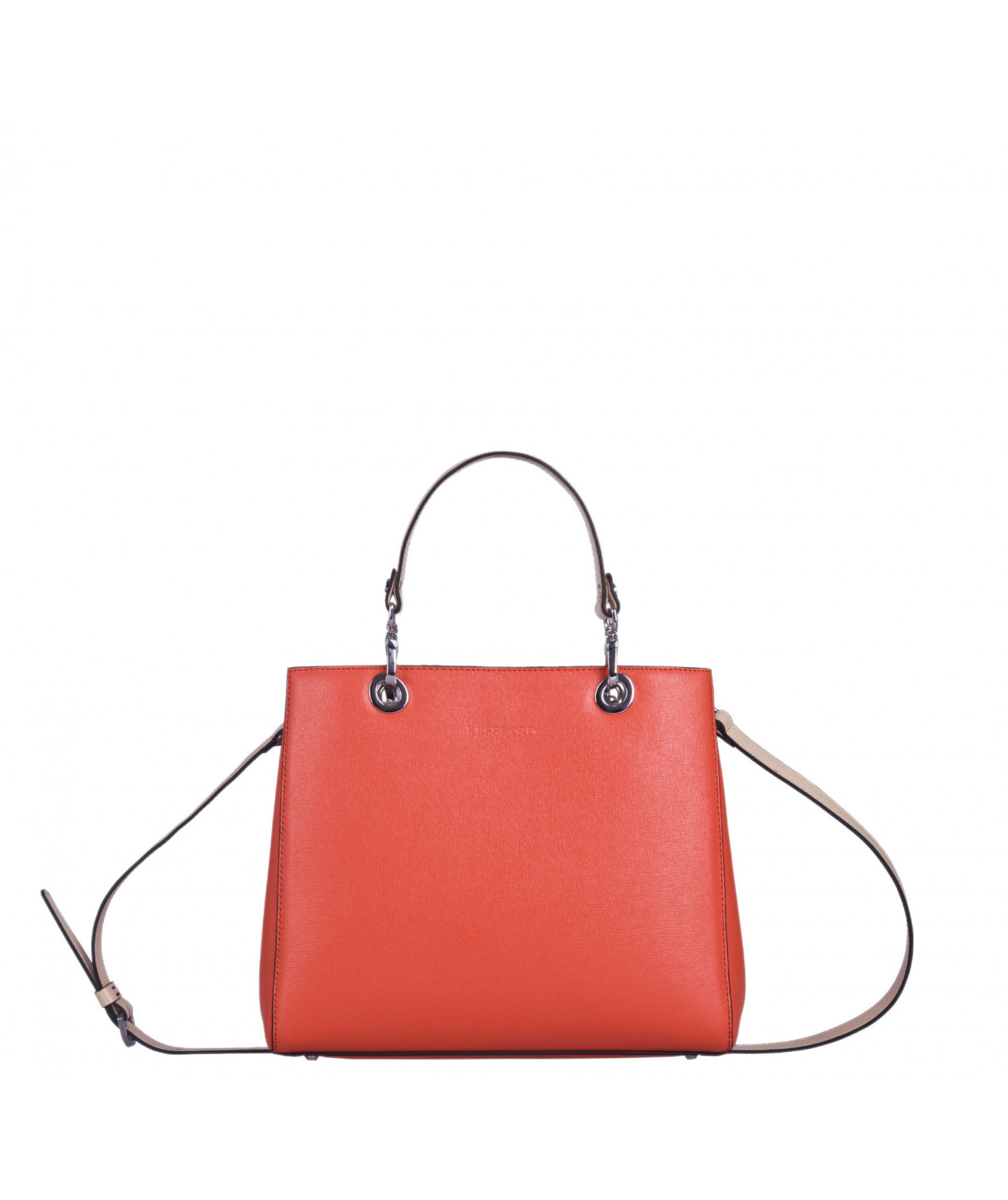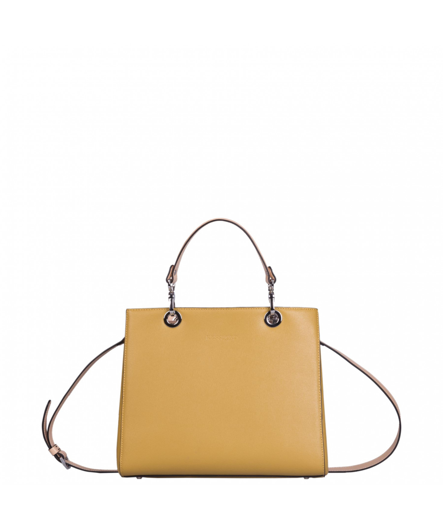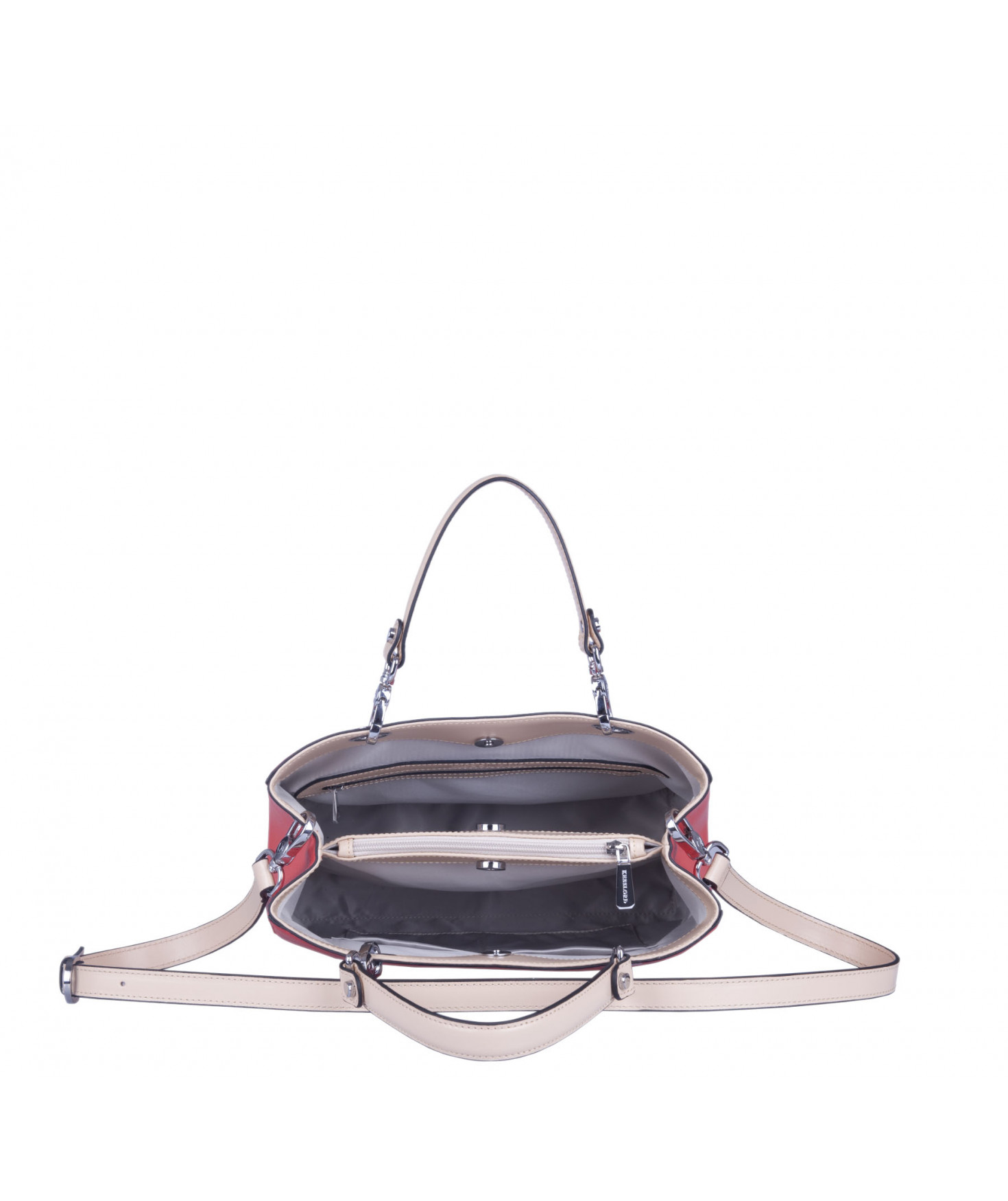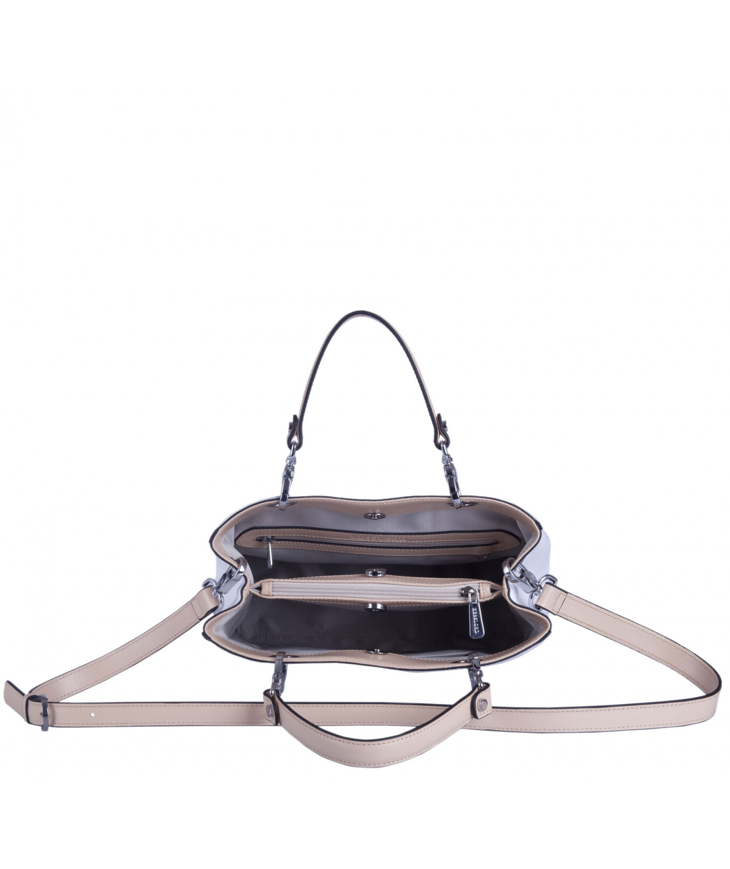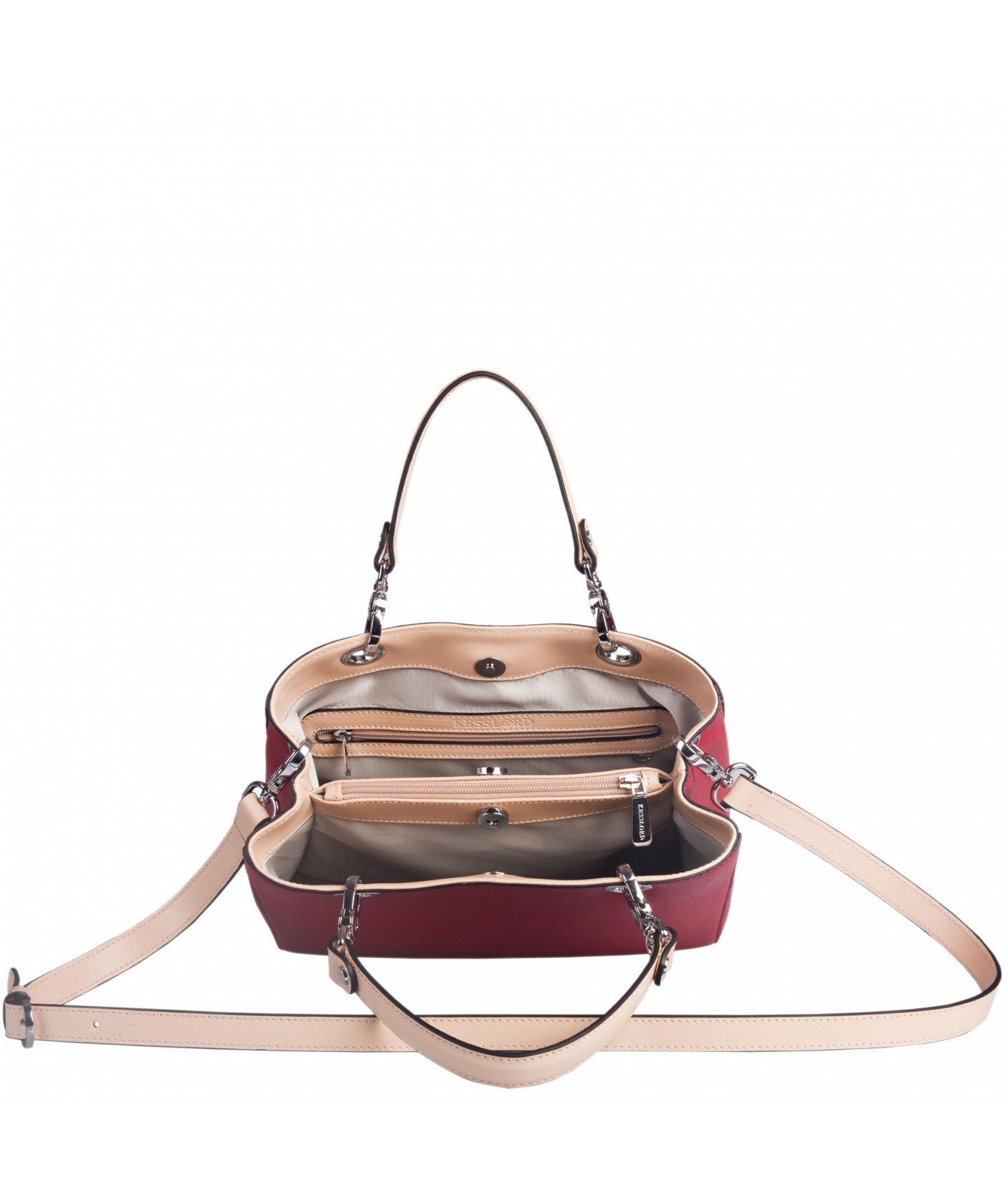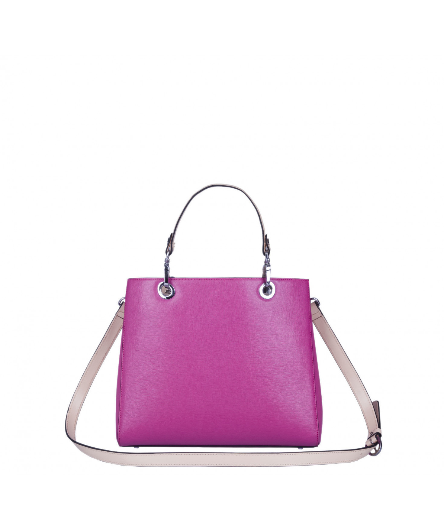 Petit cabas porté main, pourvu de deux anses et d'une bandoulière réglable et amovible.