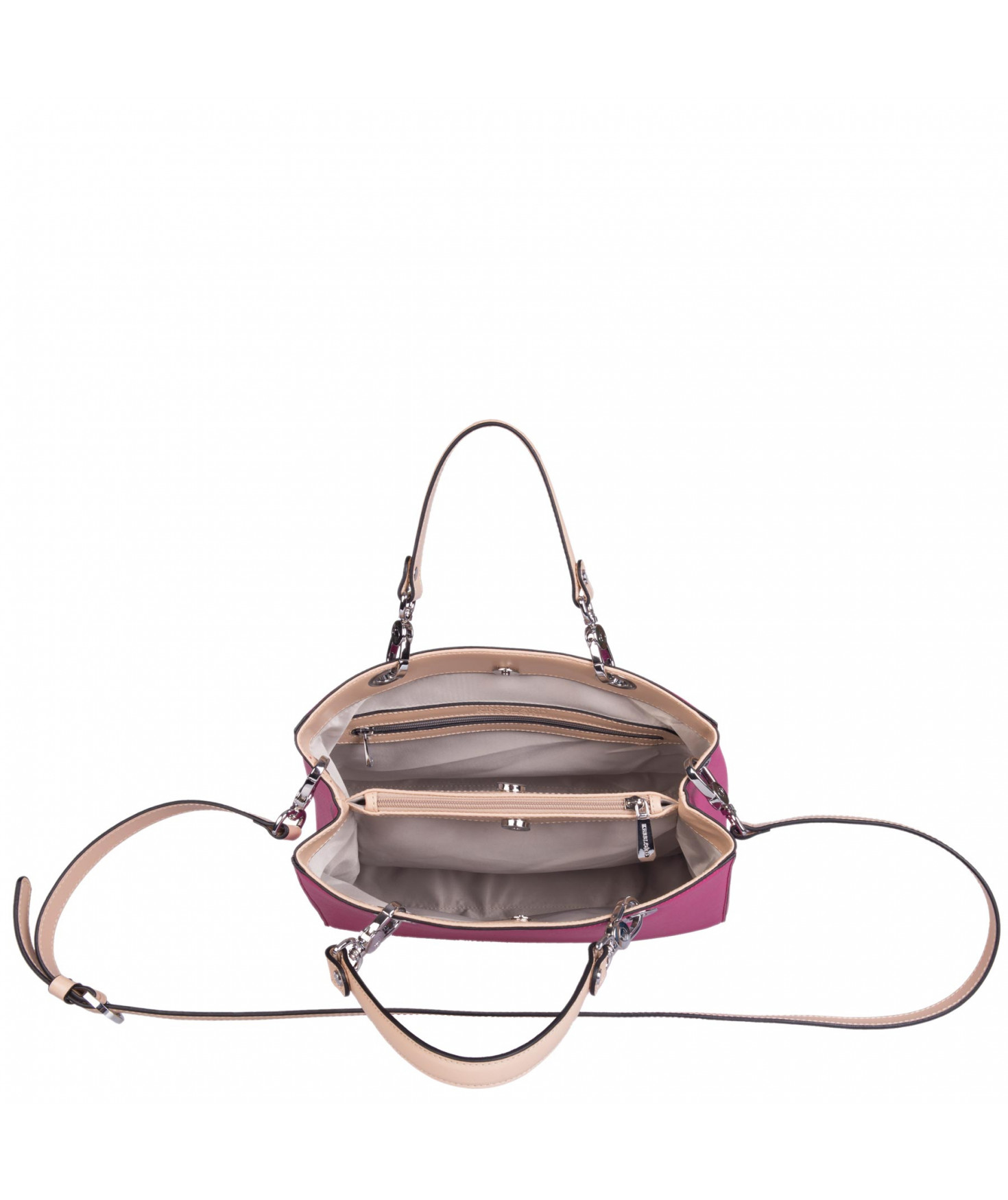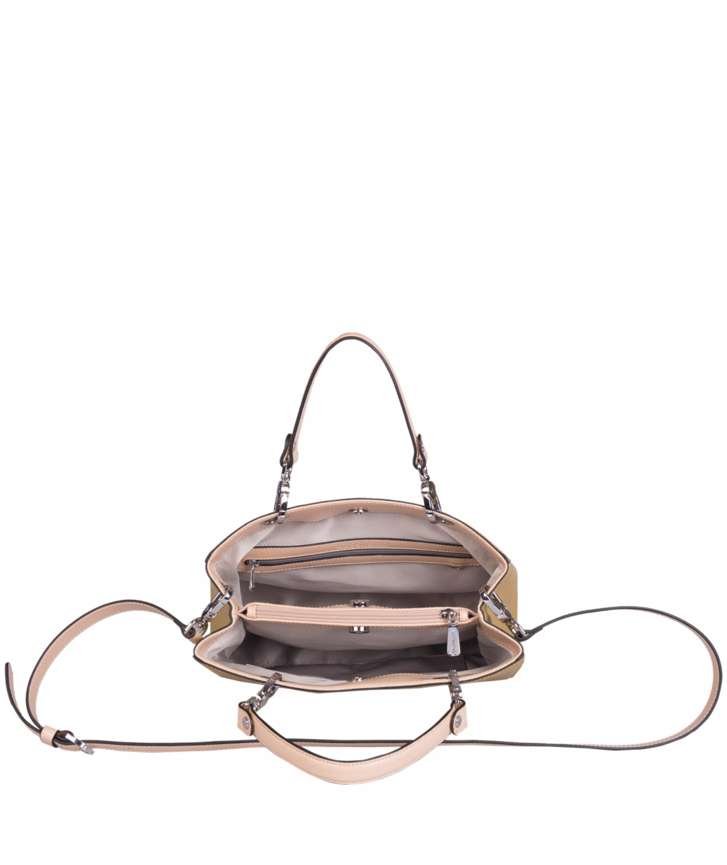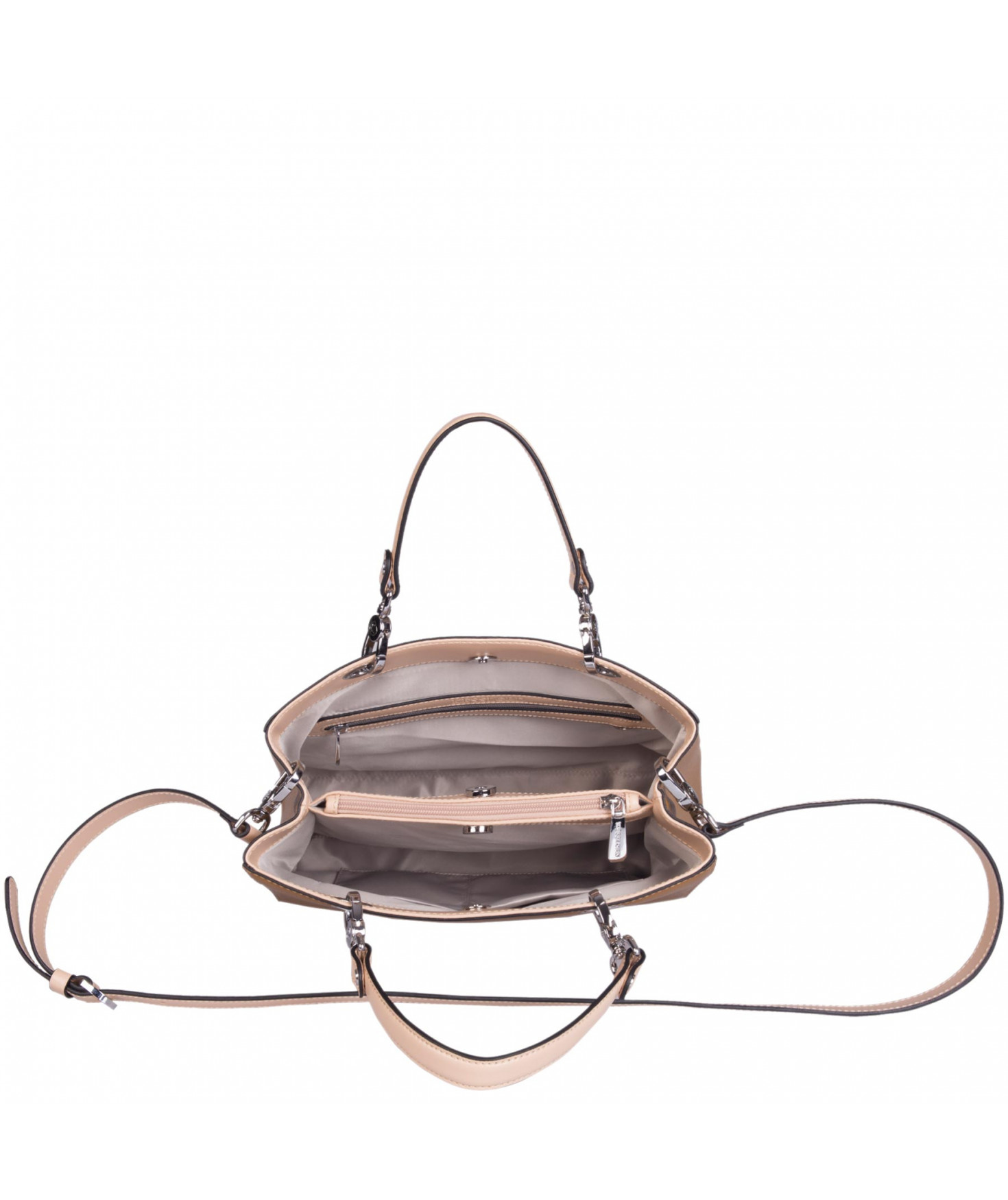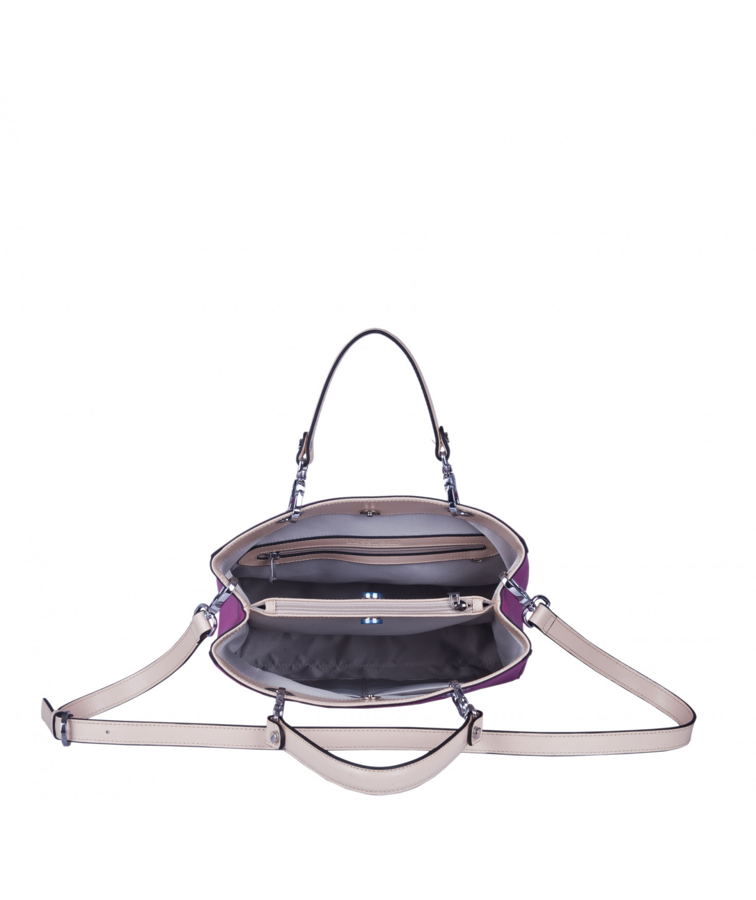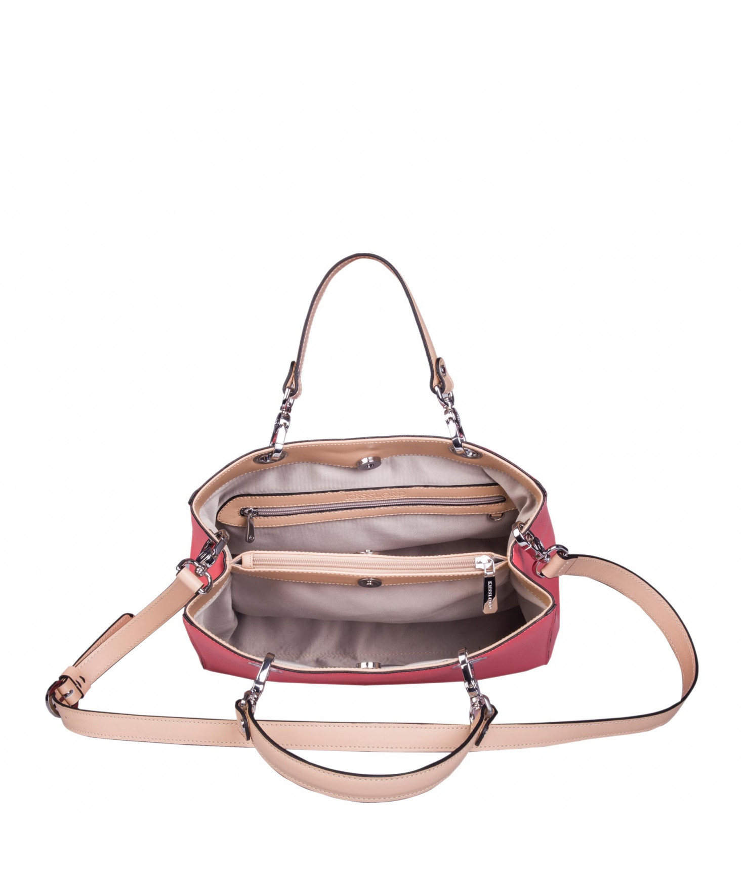 Petit cabas porté main, pourvu de deux anses et d'une bandoulière réglable et amovible.