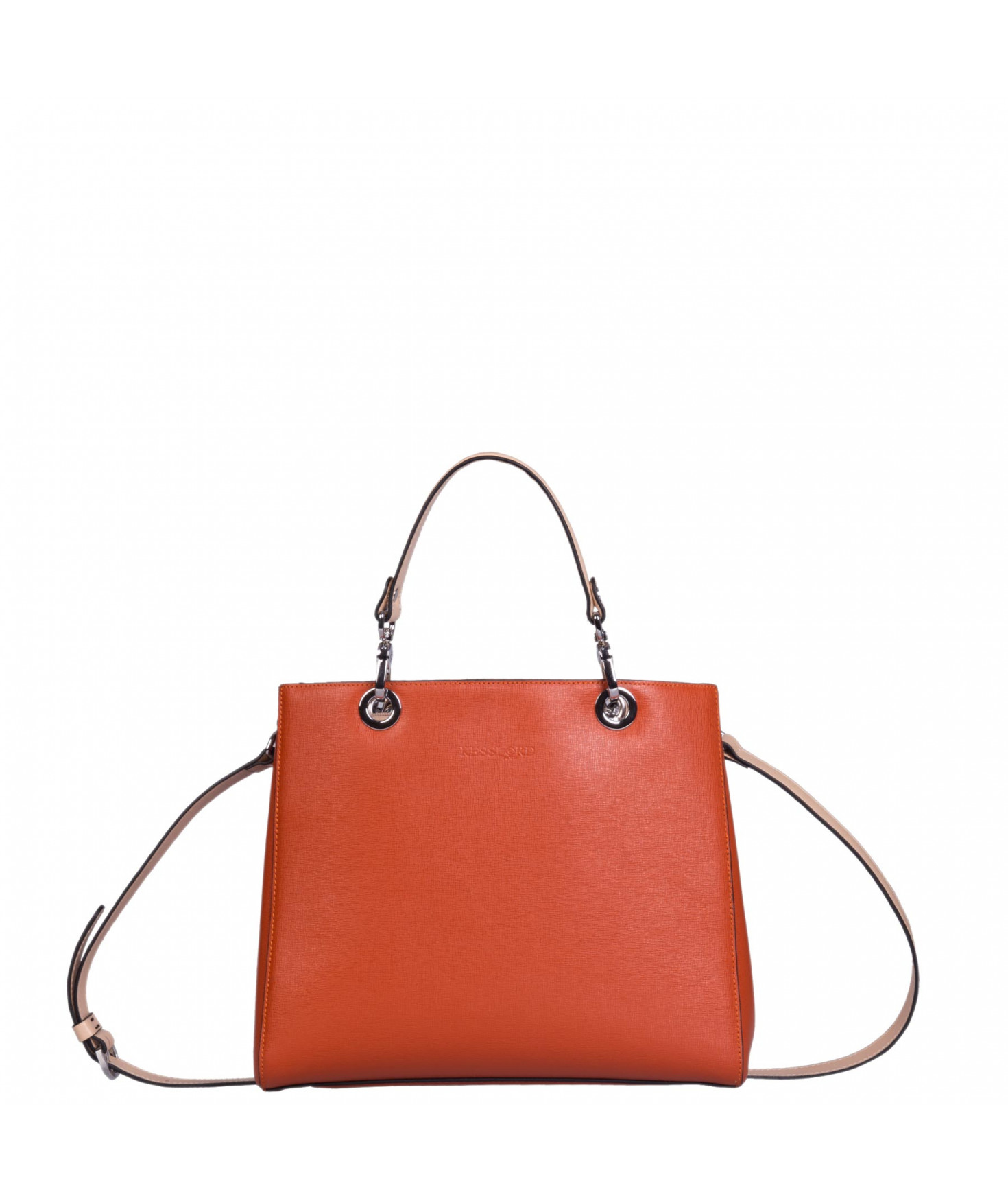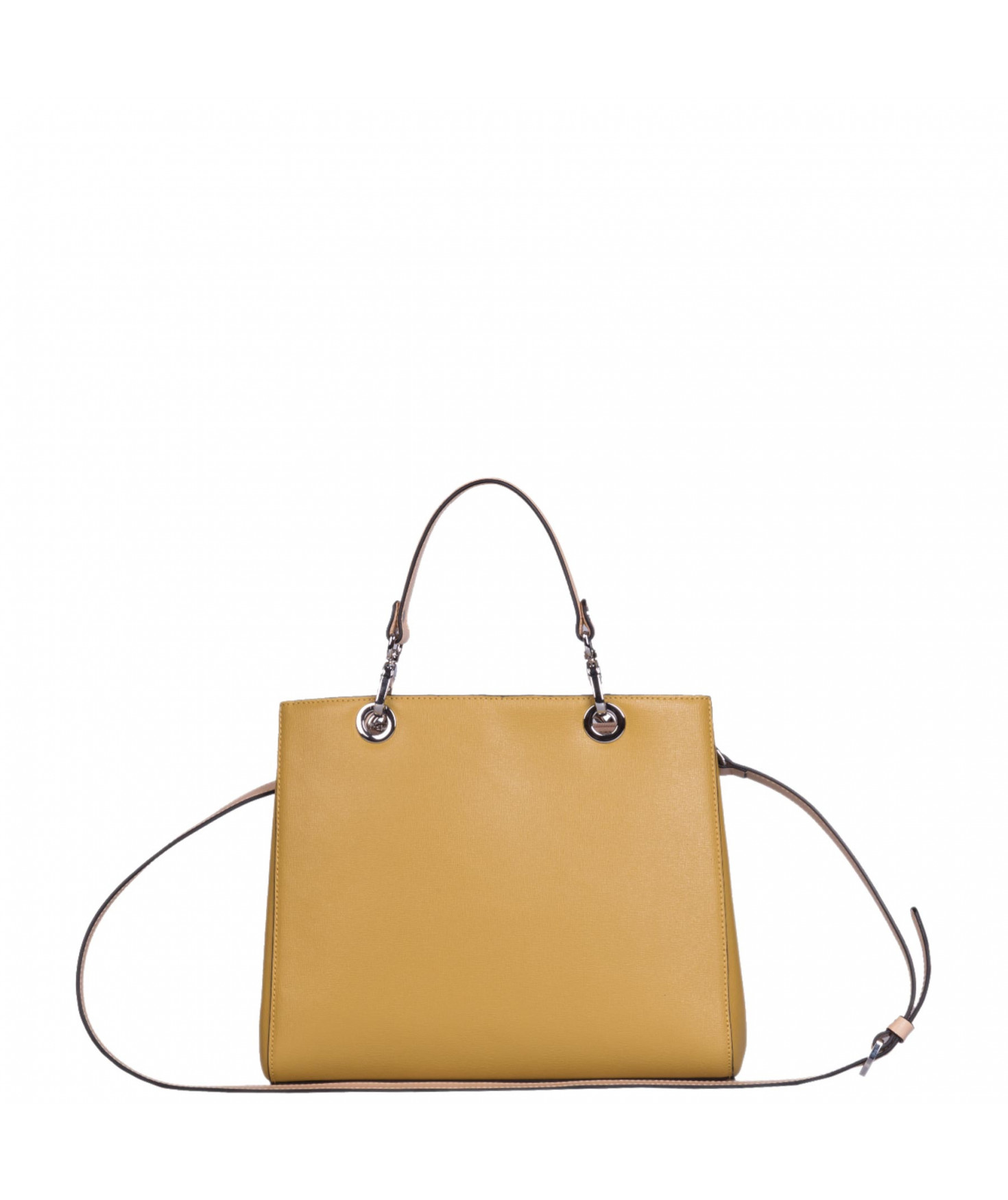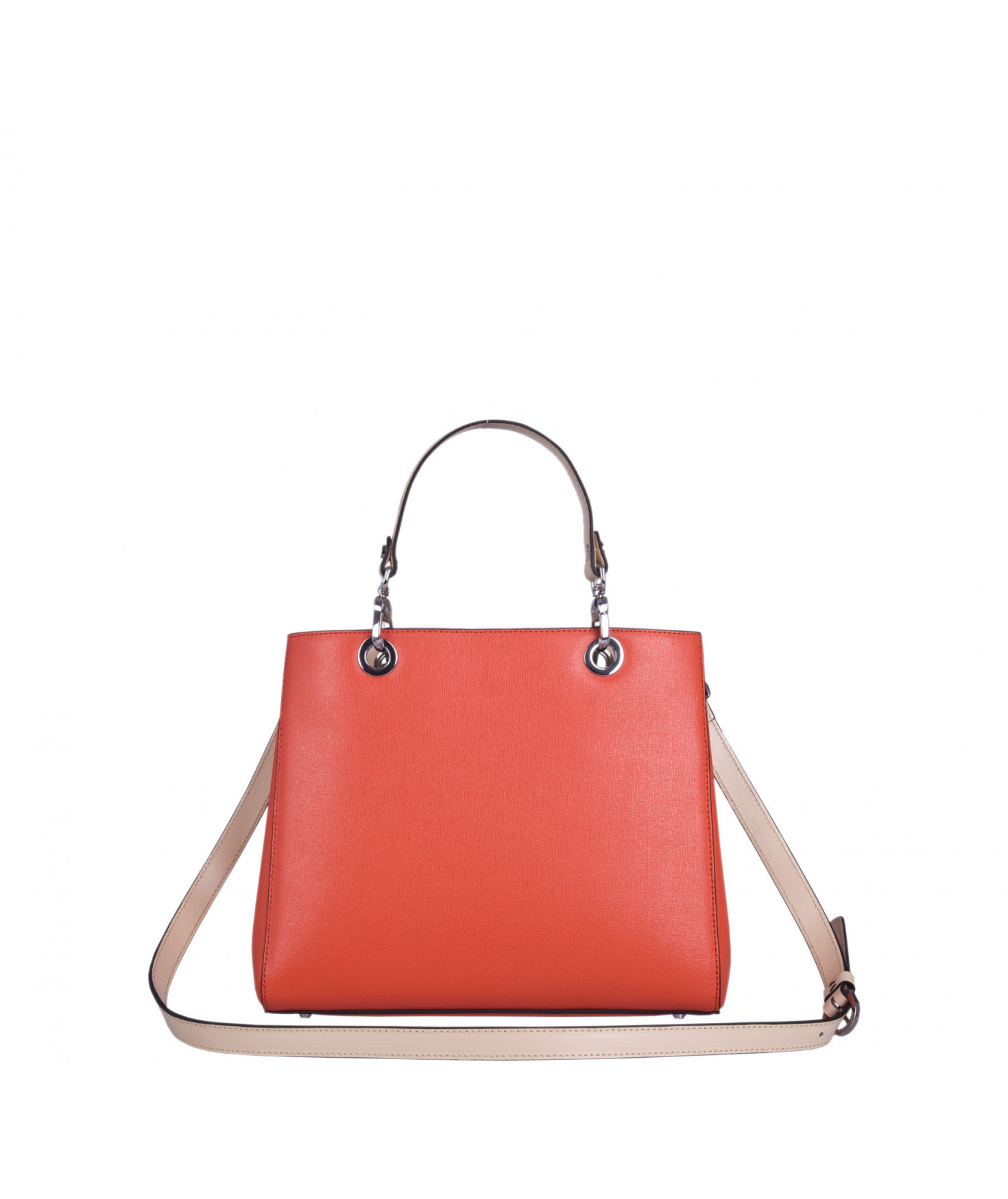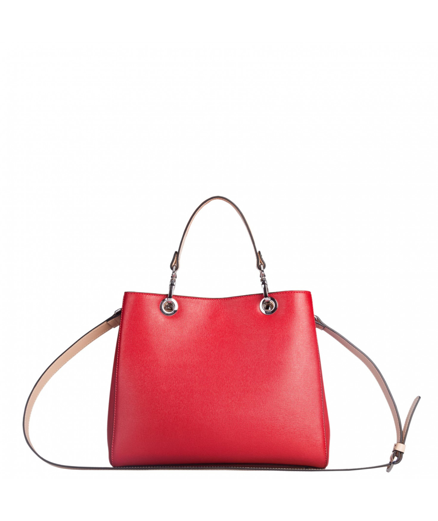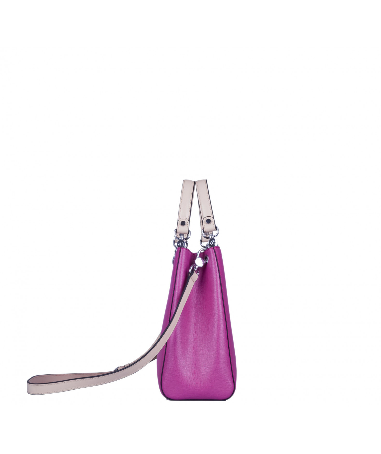 Petit cabas porté main, pourvu de deux anses et d'une bandoulière réglable et amovible.