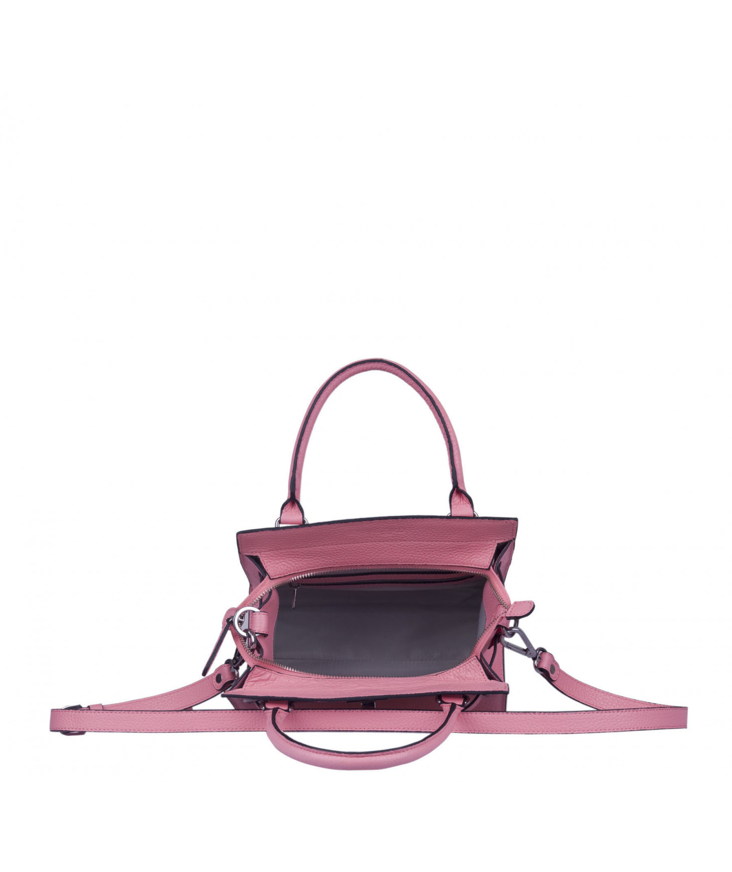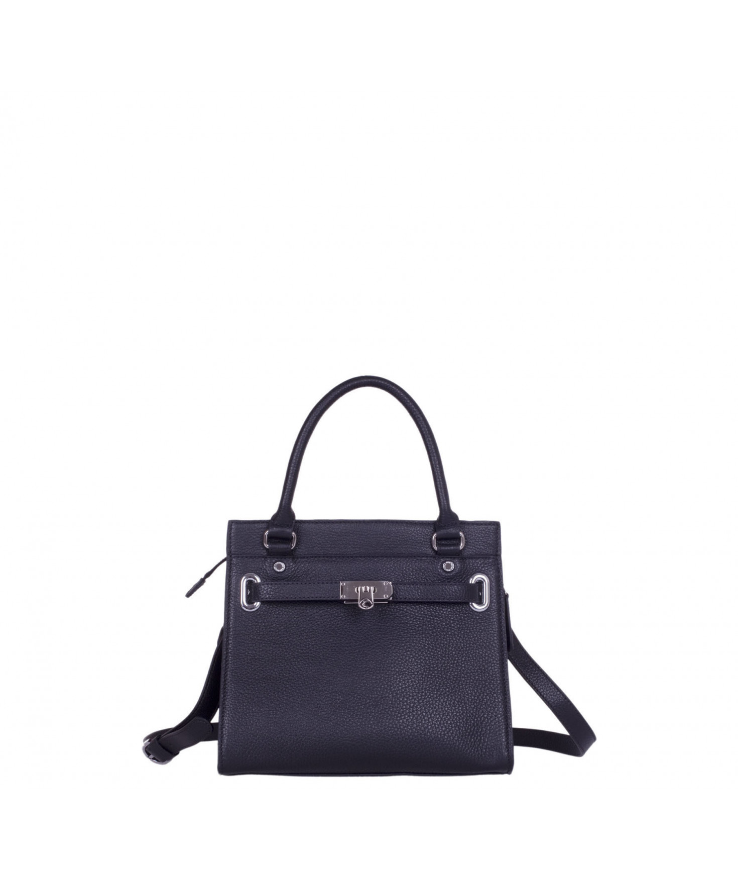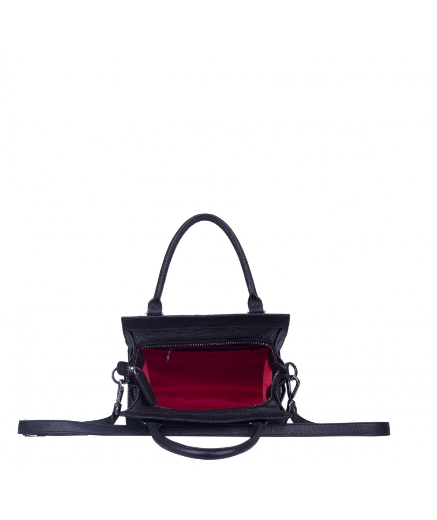 Petit sac porté main, épaule ou croisé grâce à une bandoulière réglable et amovible. Fermeture à zip. Une poche intérieure zippée et deux poches intérieures plaquées. Bijouterie en métal finition argentée.