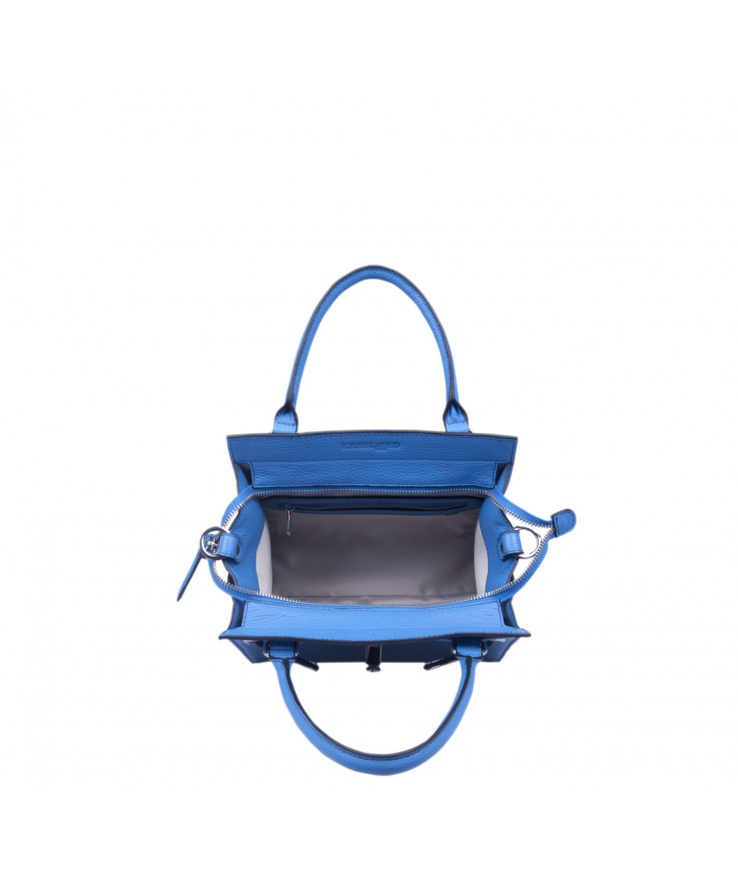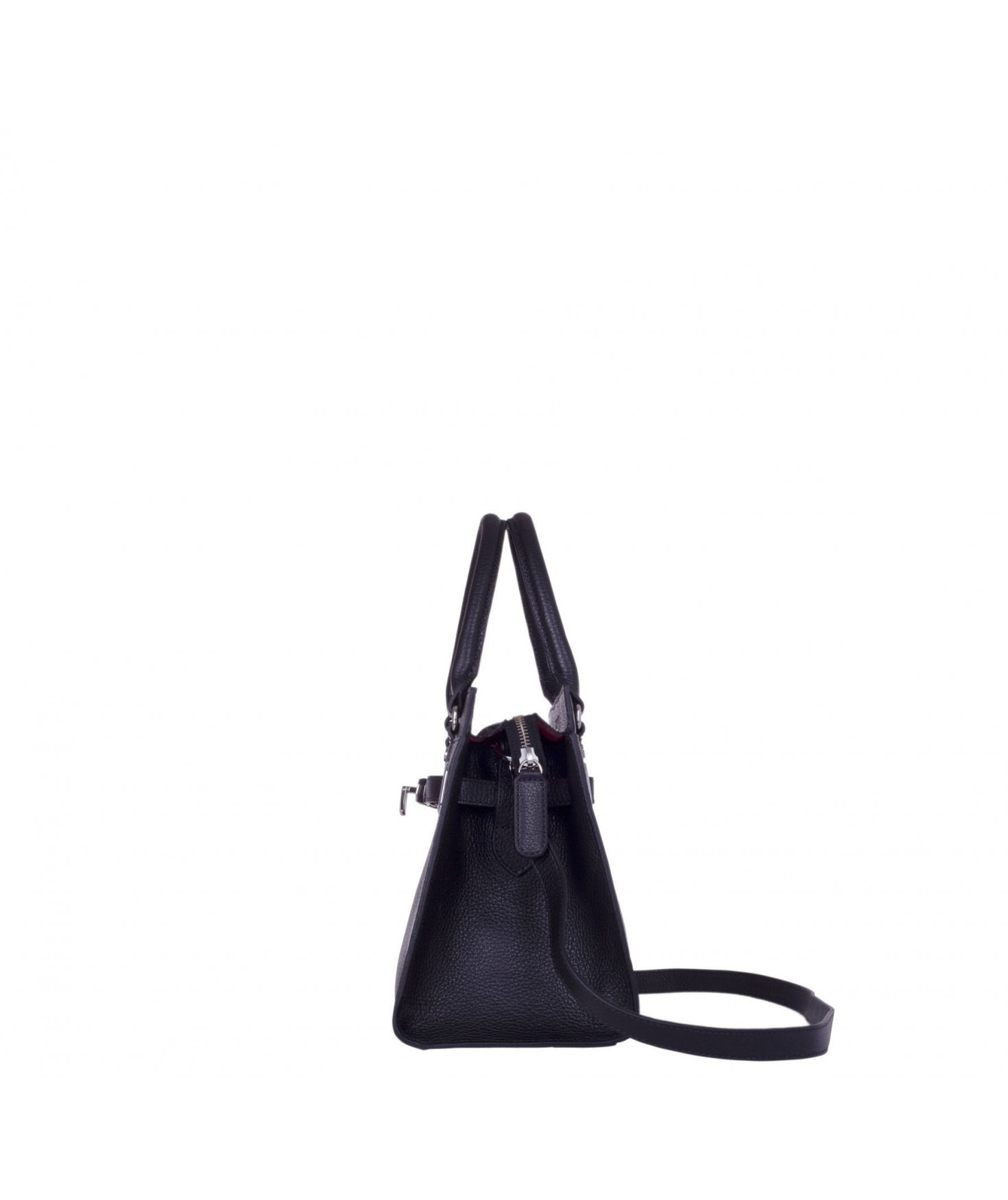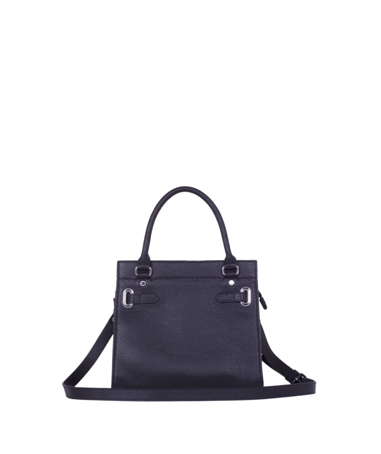 Petit sac porté main, épaule ou croisé grâce à une bandoulière réglable et amovible. Fermeture à zip. Une poche intérieure zippée et deux poches intérieures plaquées. Bijouterie en métal finition argentée.