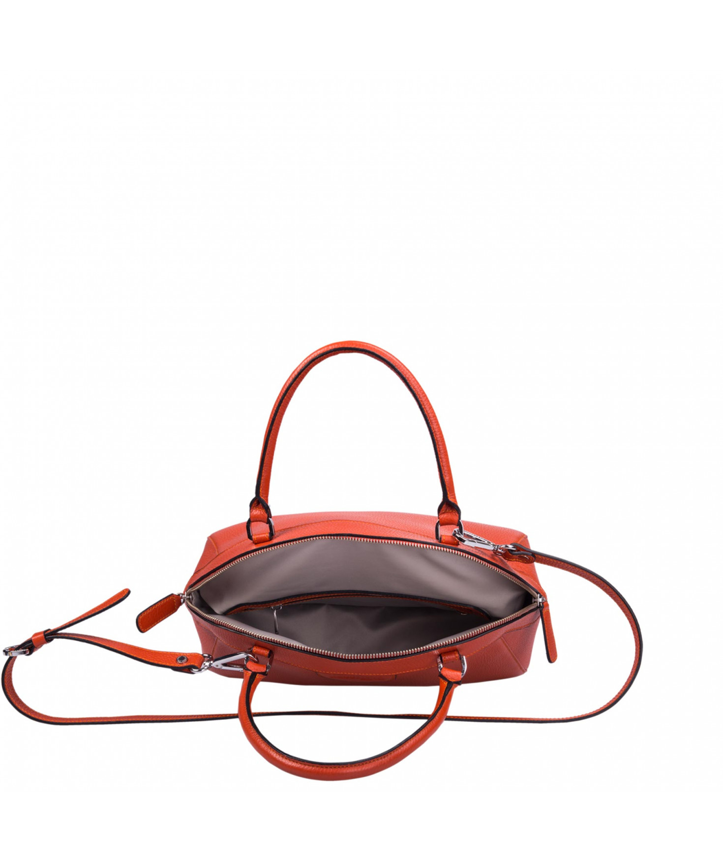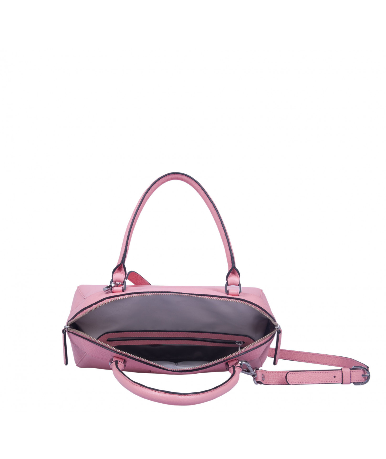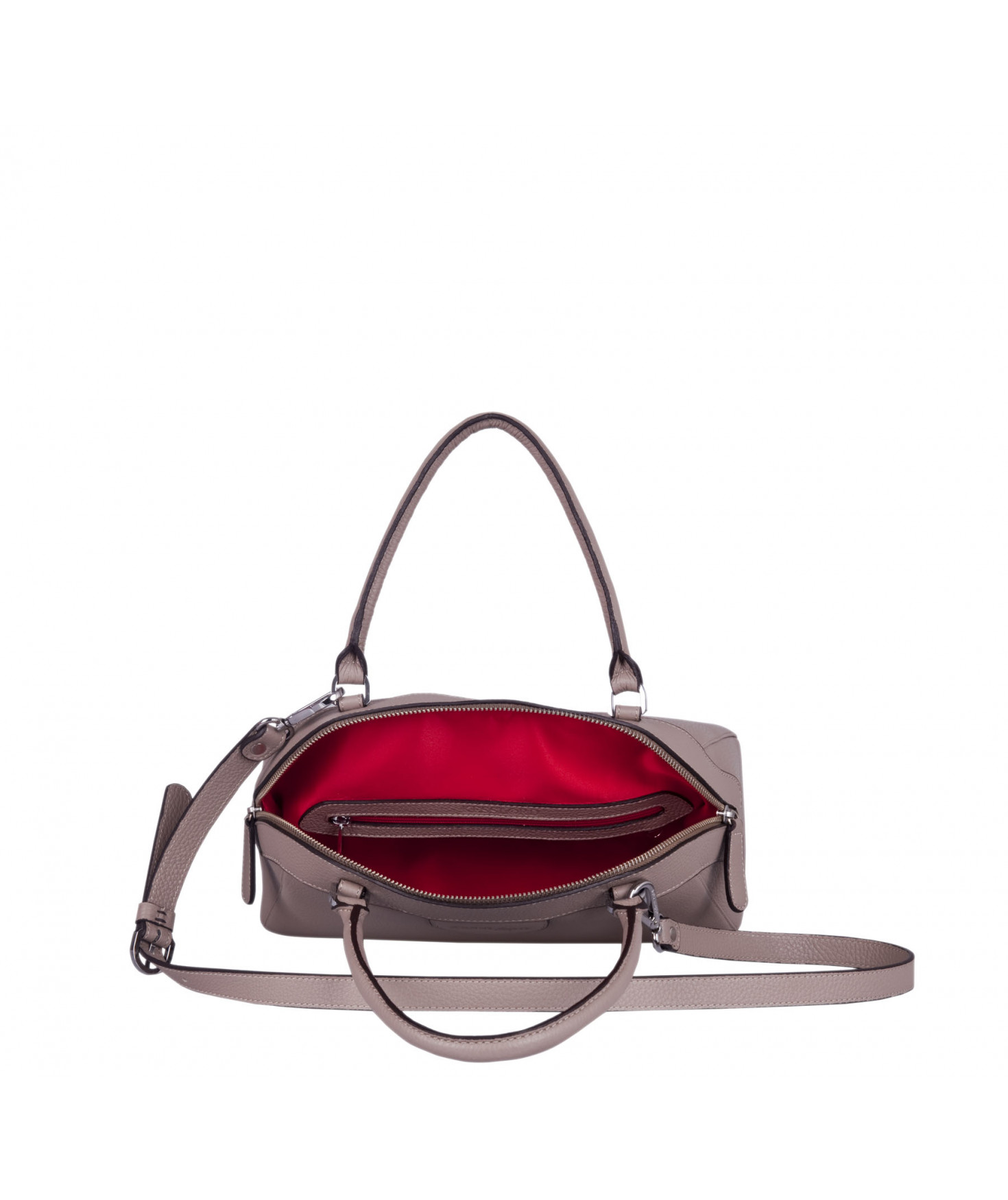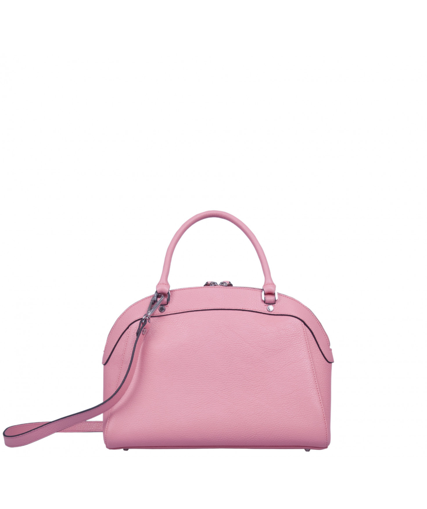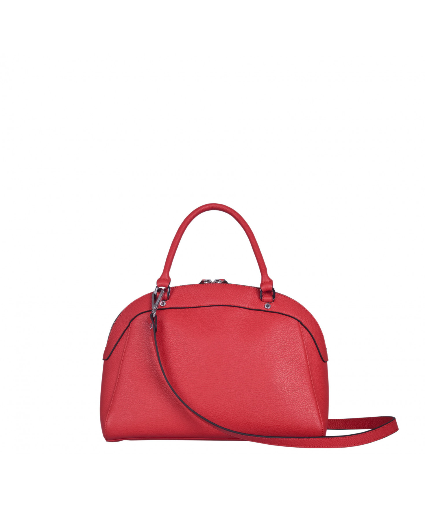 Sac porté main, épaule ou croisé grâce à une bandoulière réglable et amovible. Fermeture à zip. Une poche intérieure zippée et deux poches intérieures plaquées. Bijouterie en métal finition argentée.