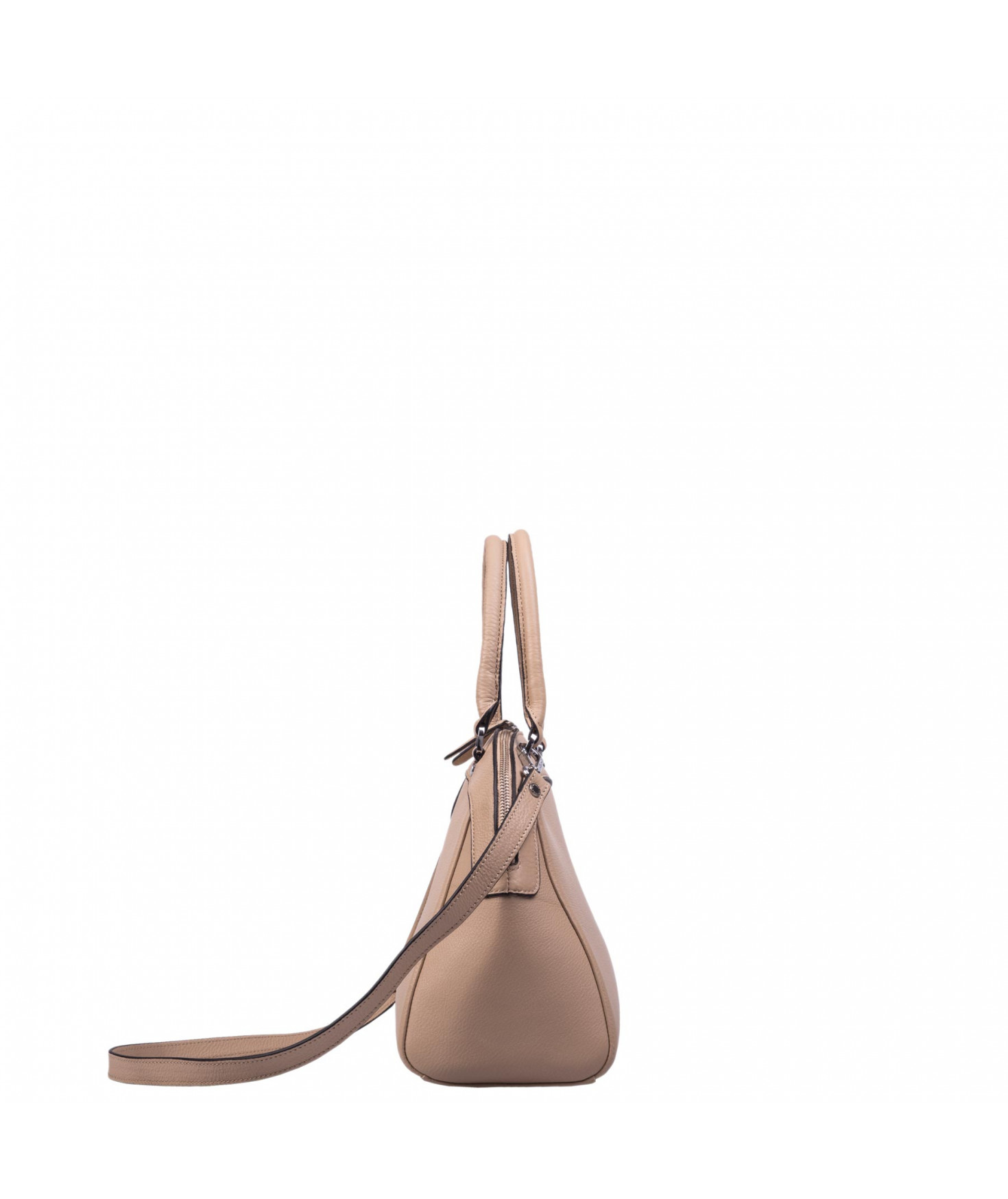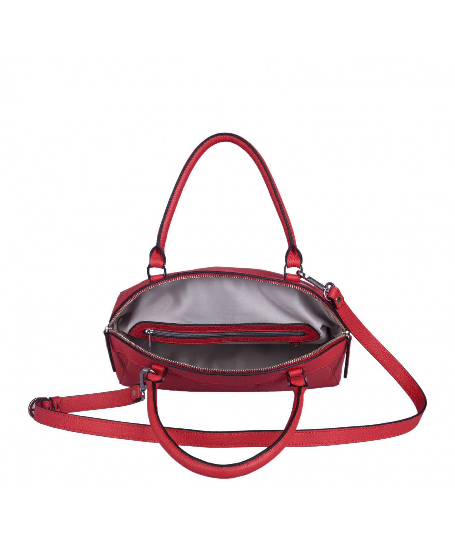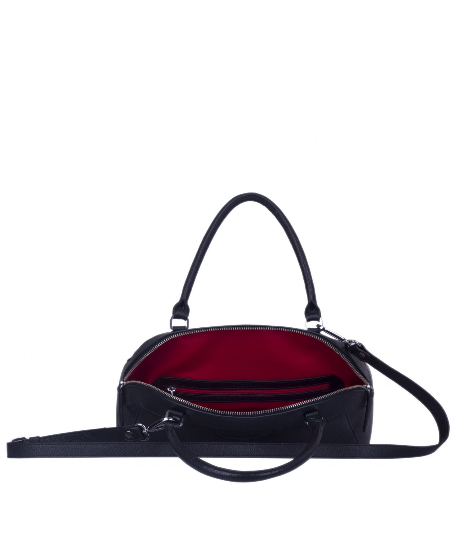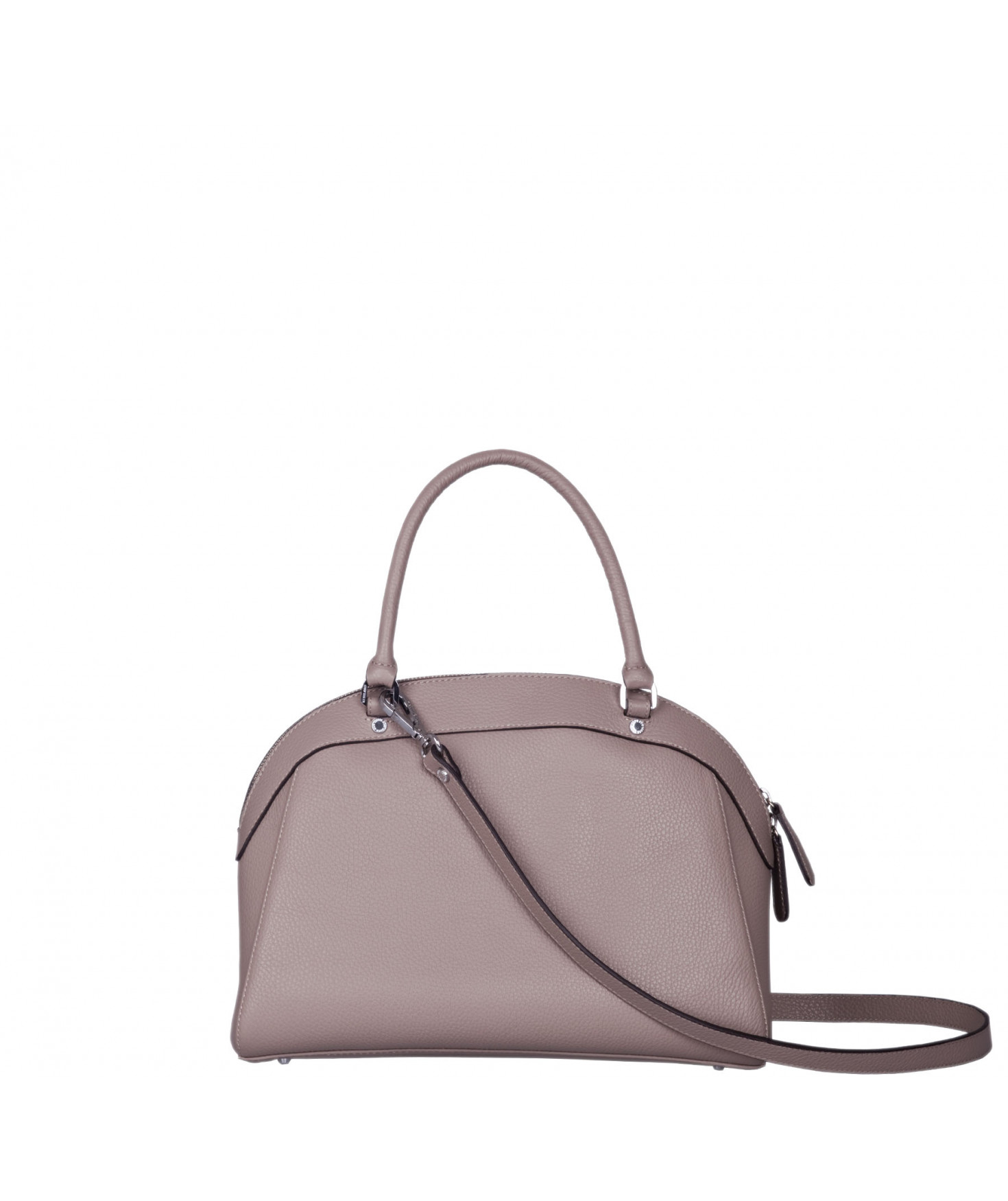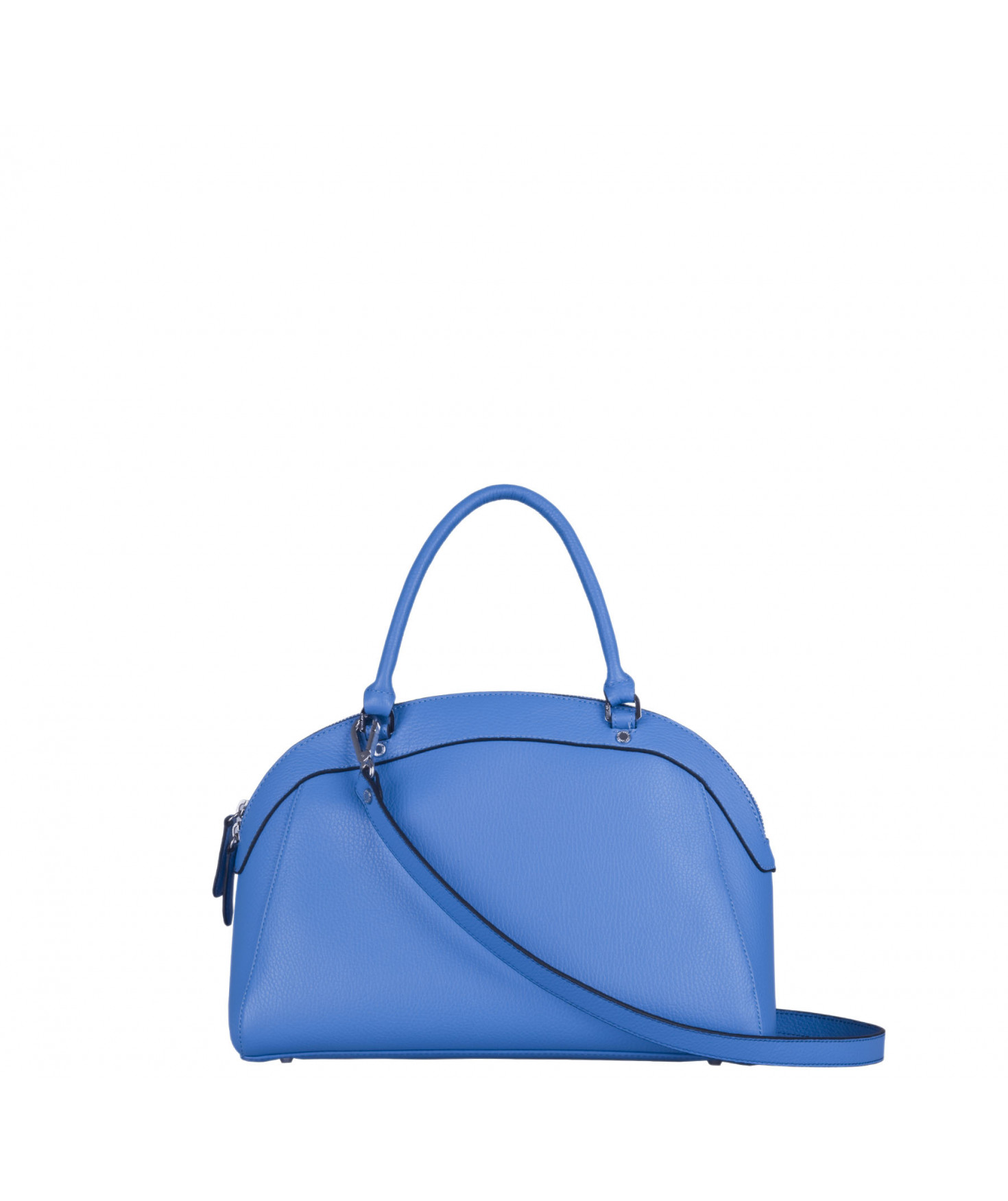 Sac porté main, épaule ou croisé grâce à une bandoulière réglable et amovible. Fermeture à zip. Une poche intérieure zippée et deux poches intérieures plaquées. Bijouterie en métal finition argentée.
