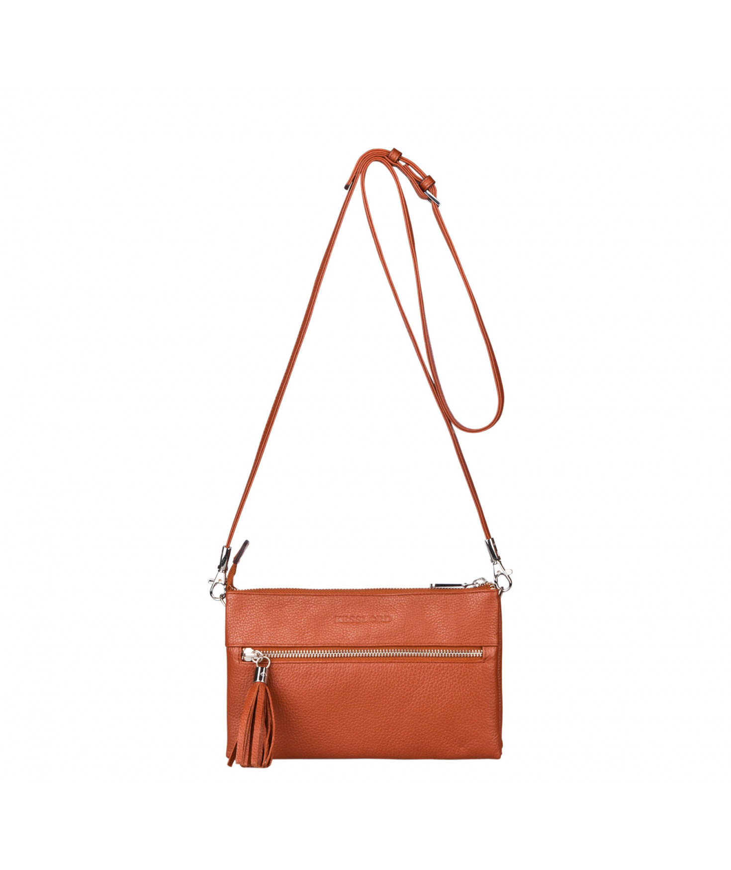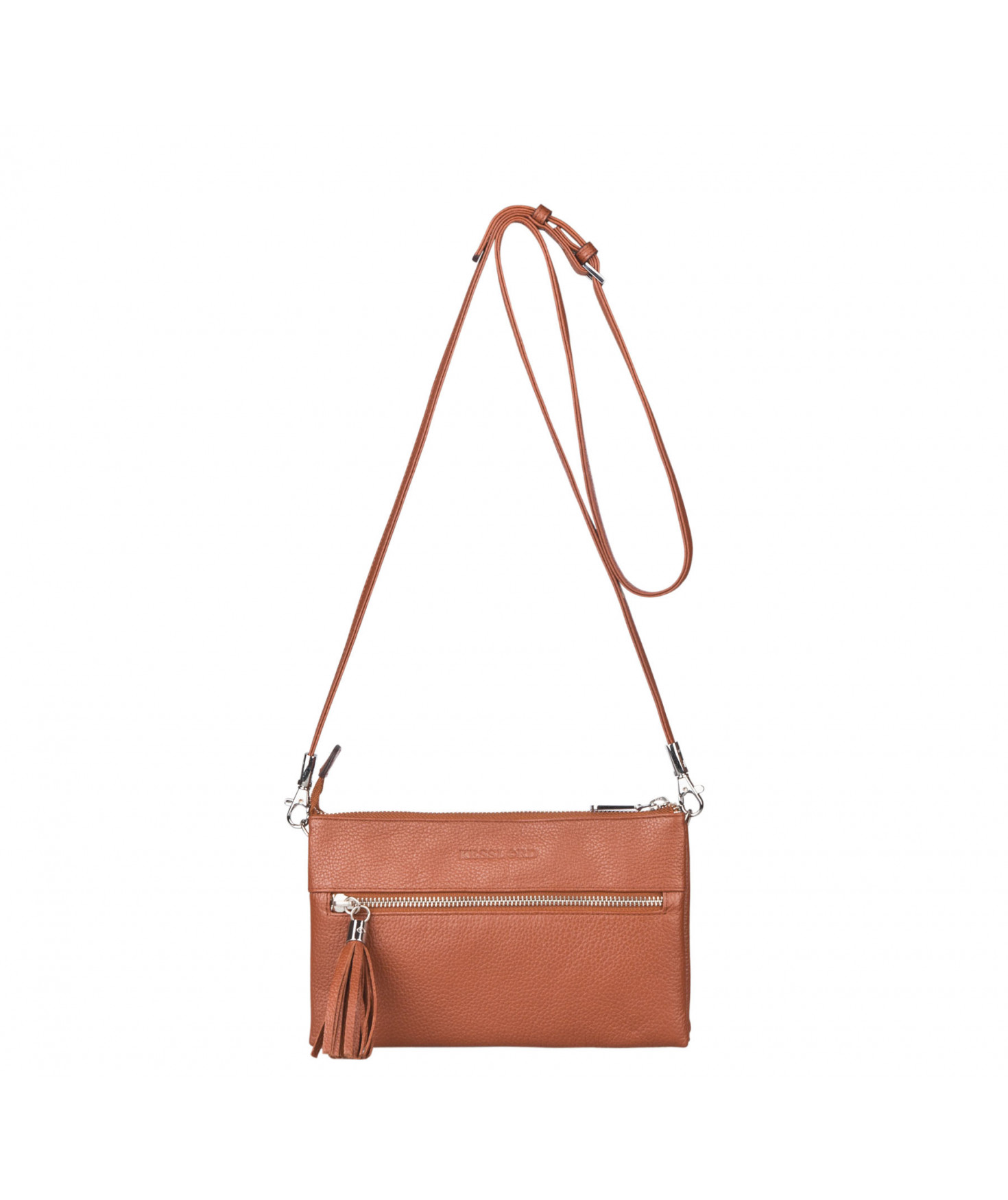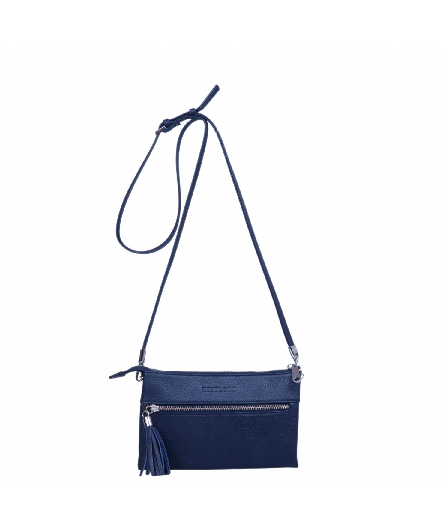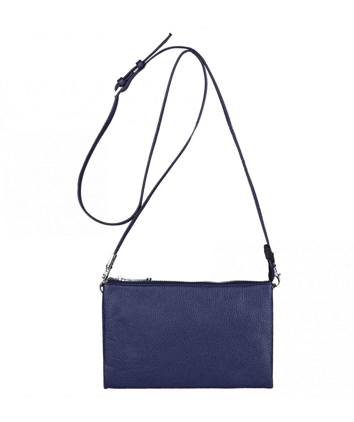 Porté travers en cuir de vachette grainée - Doublure en polyester - Dimensions en cm (HxLxP) : 14x23x3