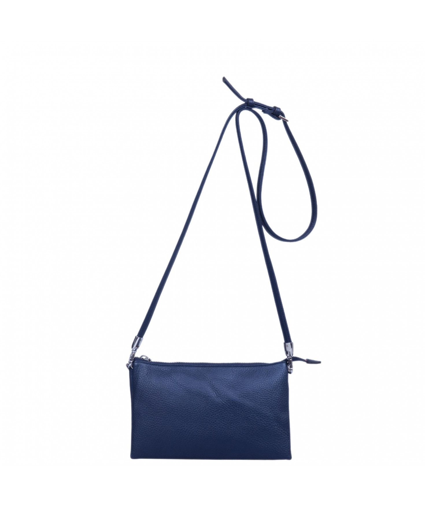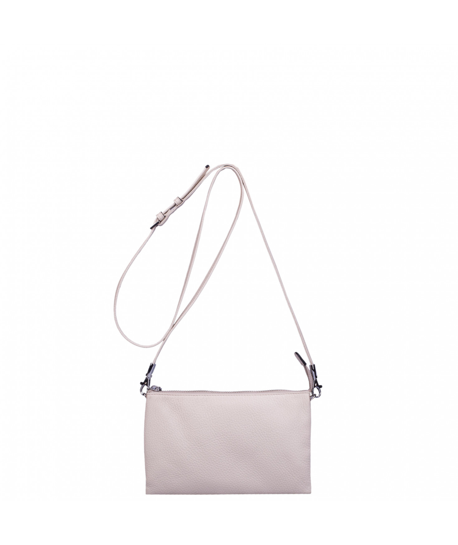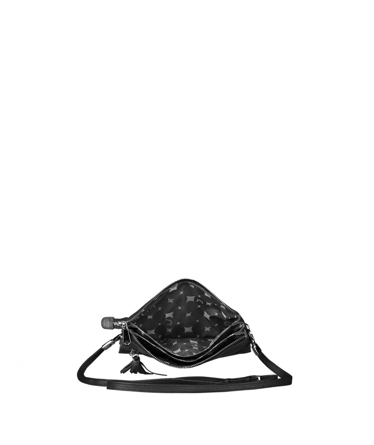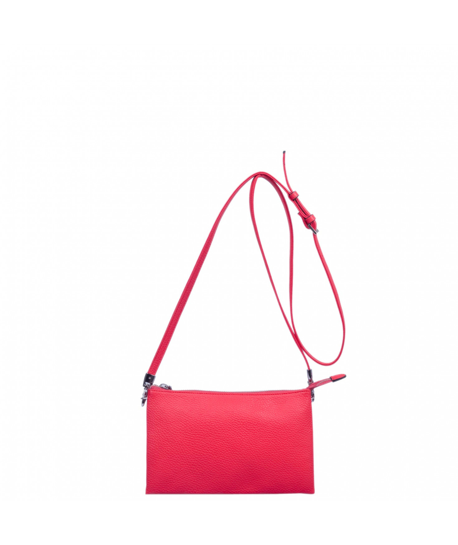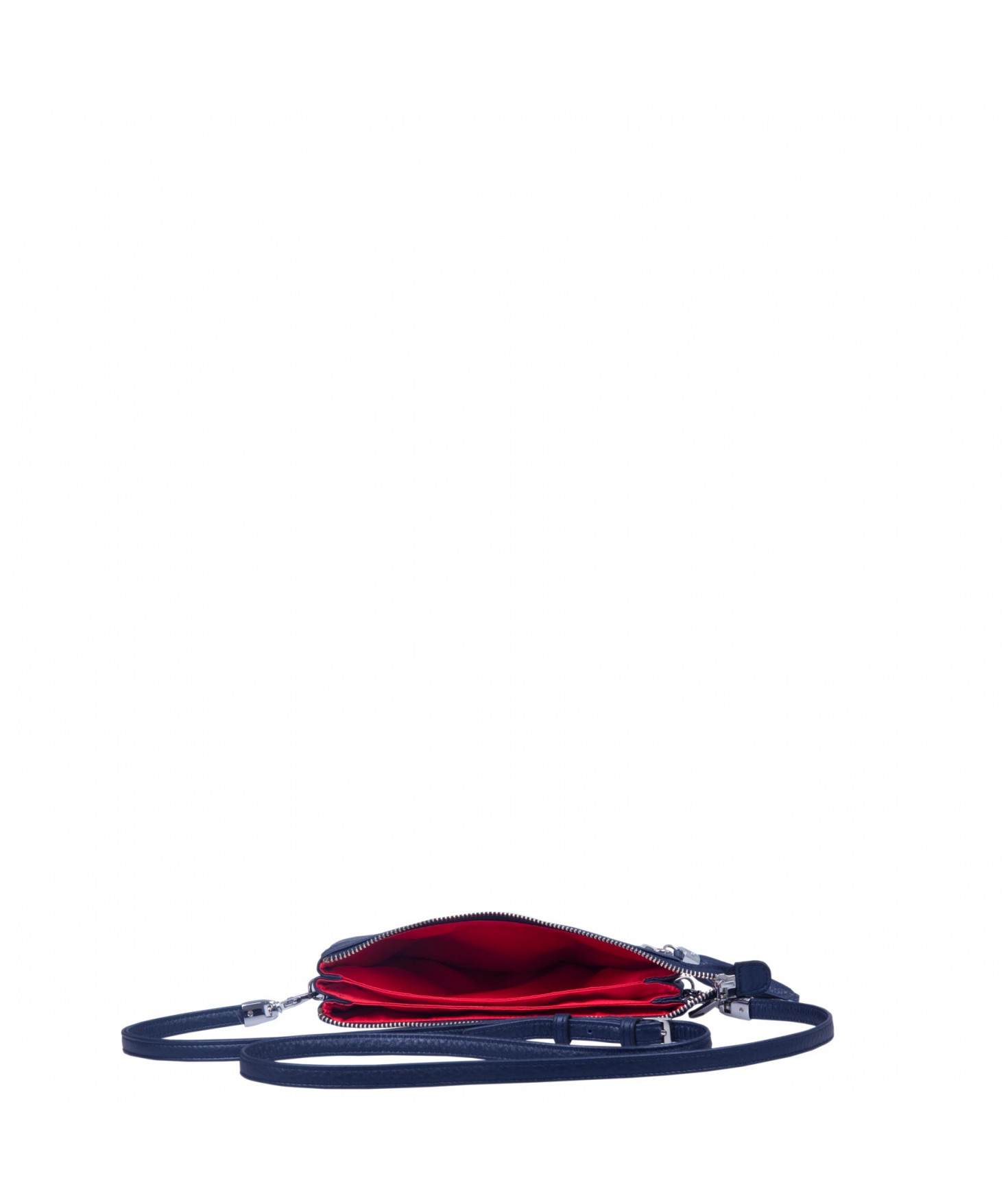 Pochette dotée de trois compartiments intérieurs. Fermeture à zip. Bandoulière réglable et amovible. Une poche extérieure zippée.