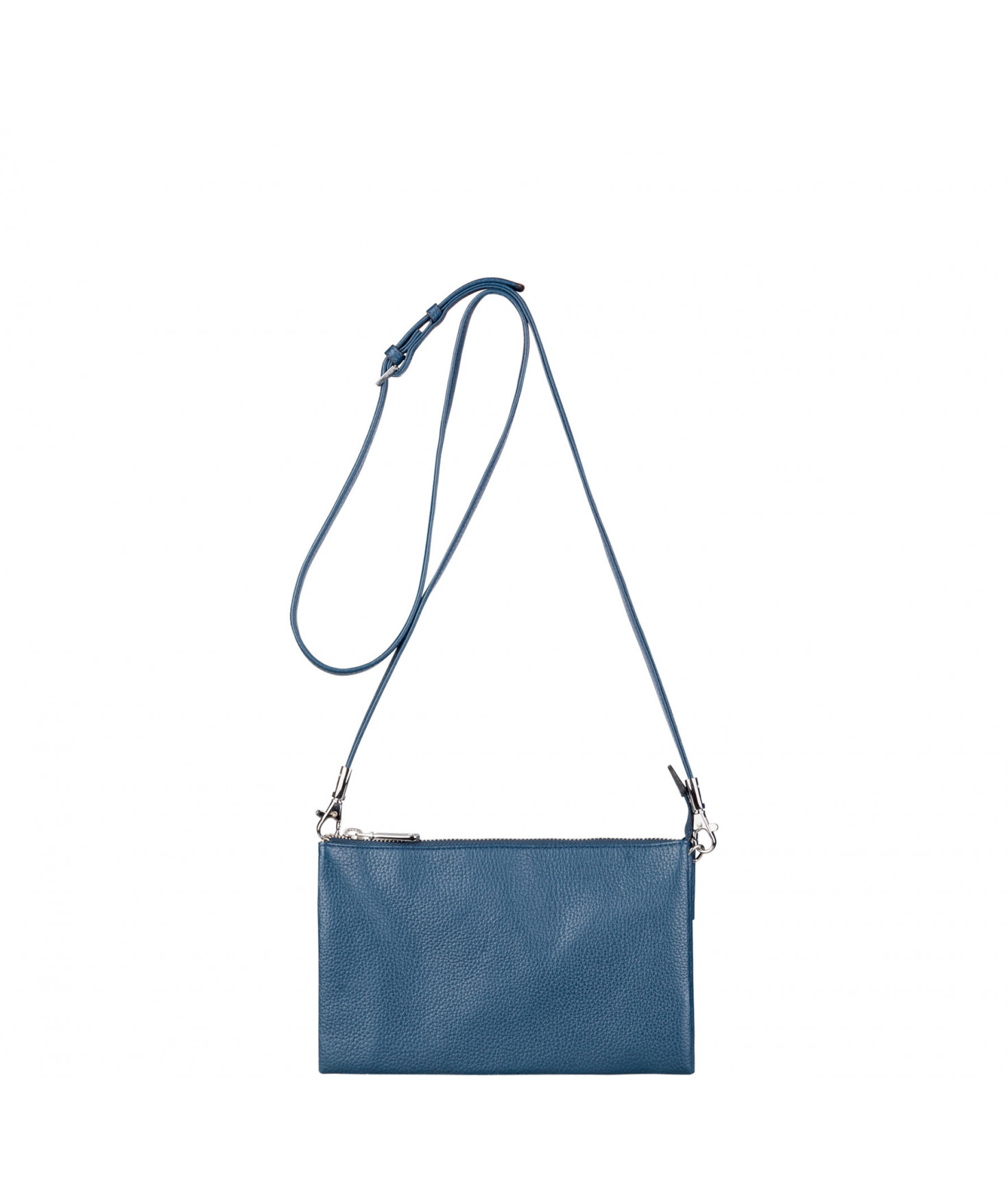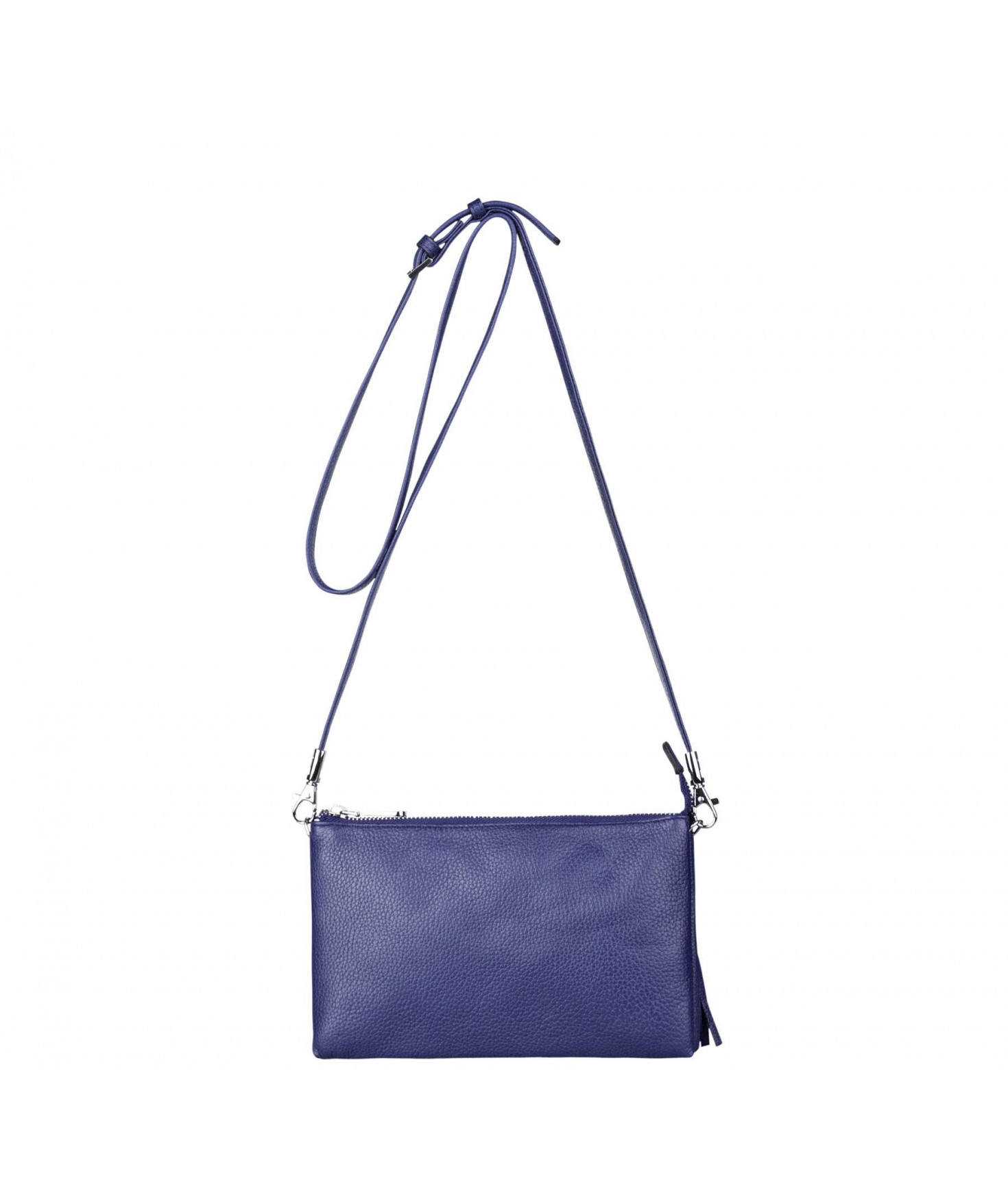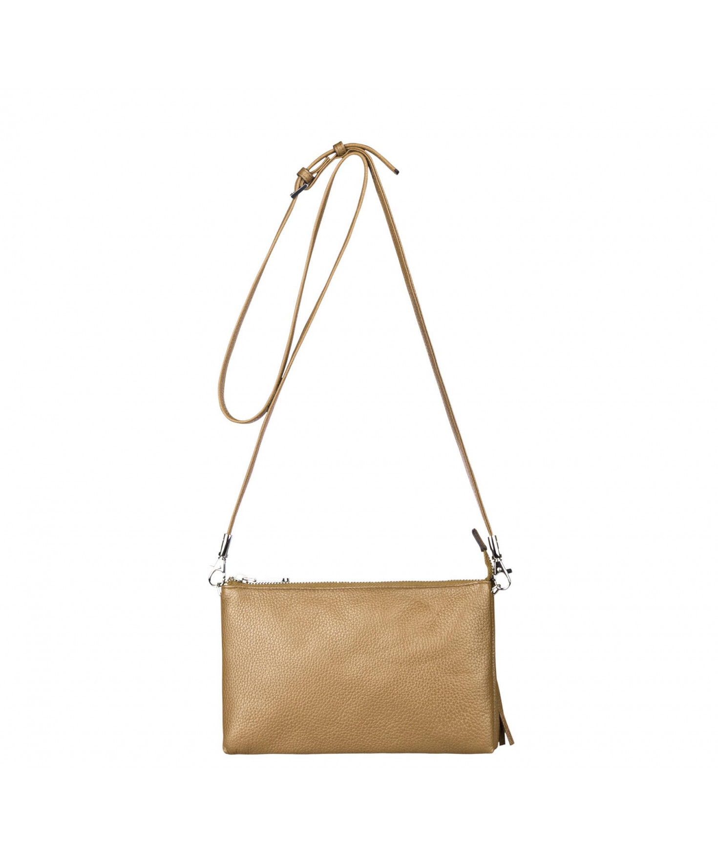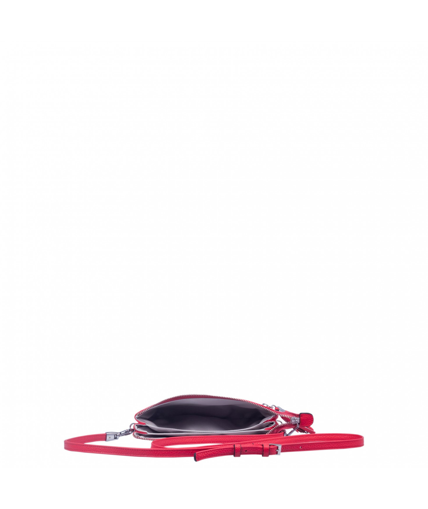 Pochette dotée de trois compartiments intérieurs. Fermeture à zip. Bandoulière réglable et amovible. Une poche extérieure zippée.