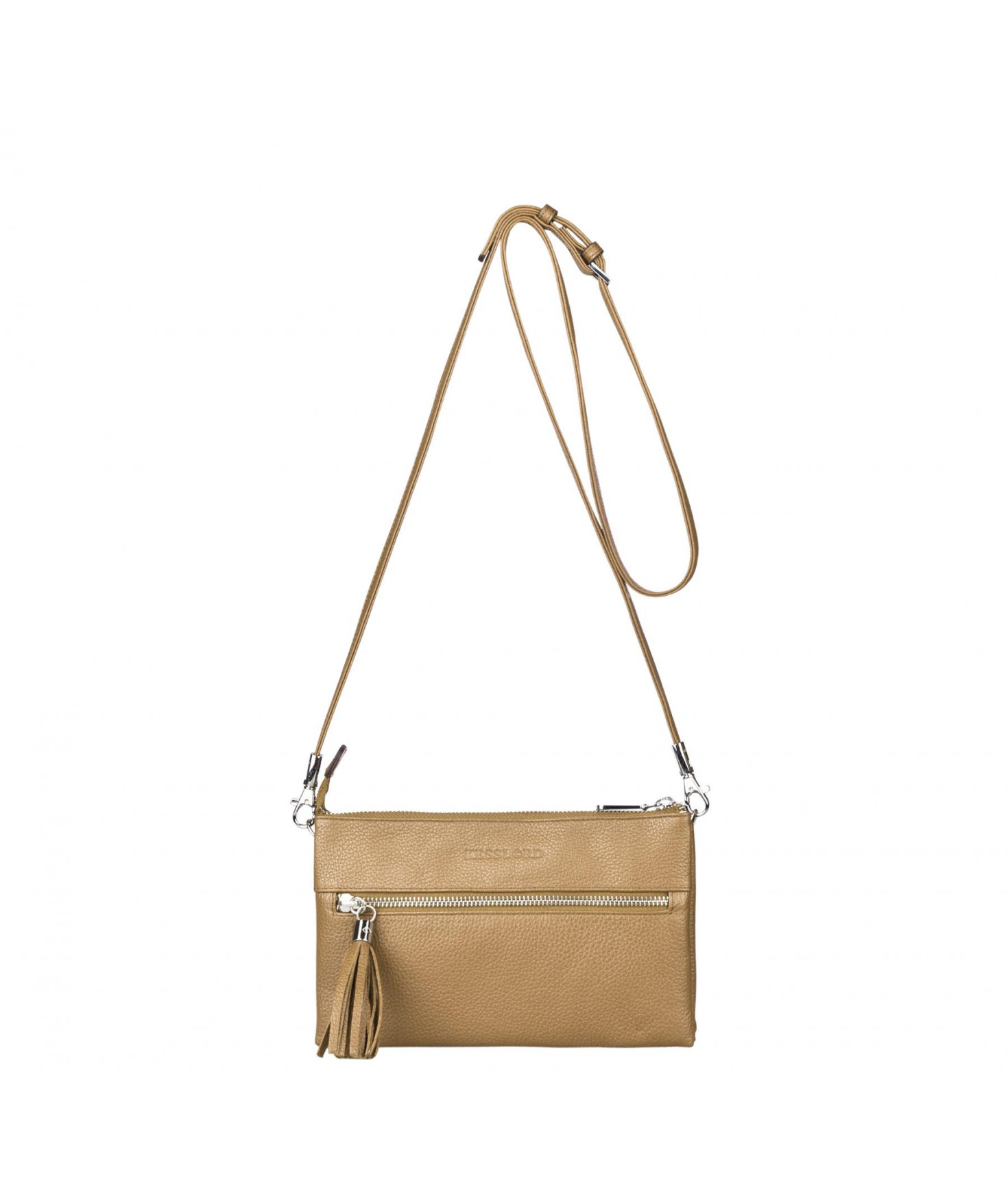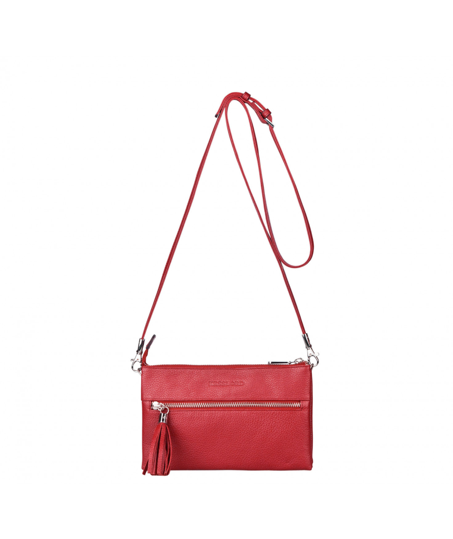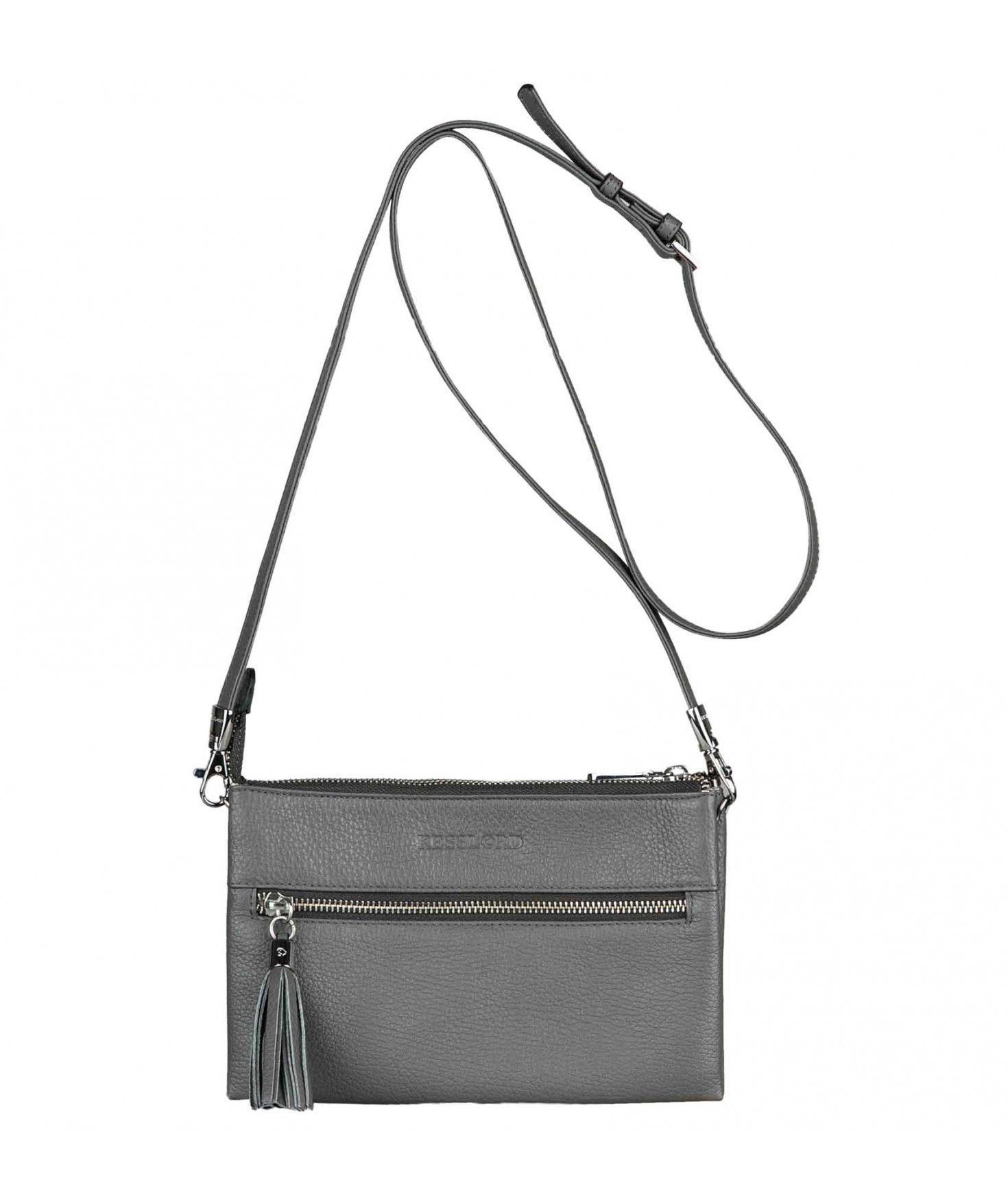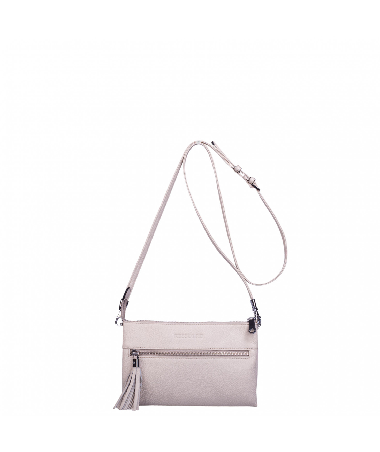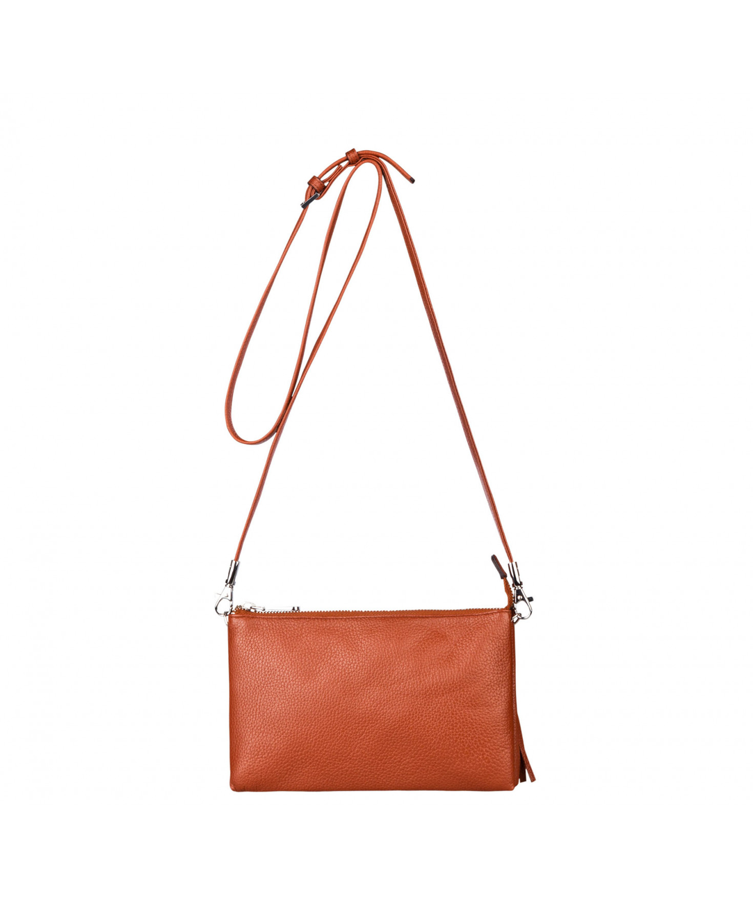 Pochette dotée de trois compartiments intérieurs. Fermeture à zip. Bandoulière réglable et amovible. Une poche extérieure zippée.