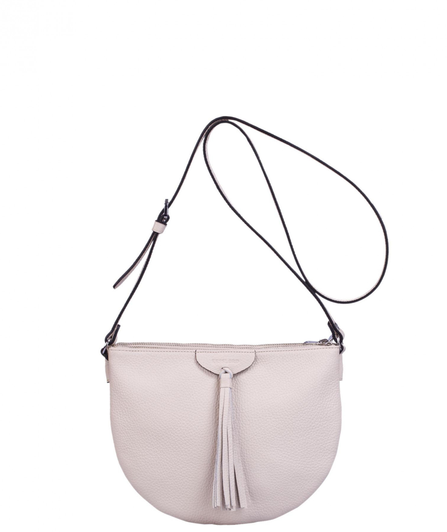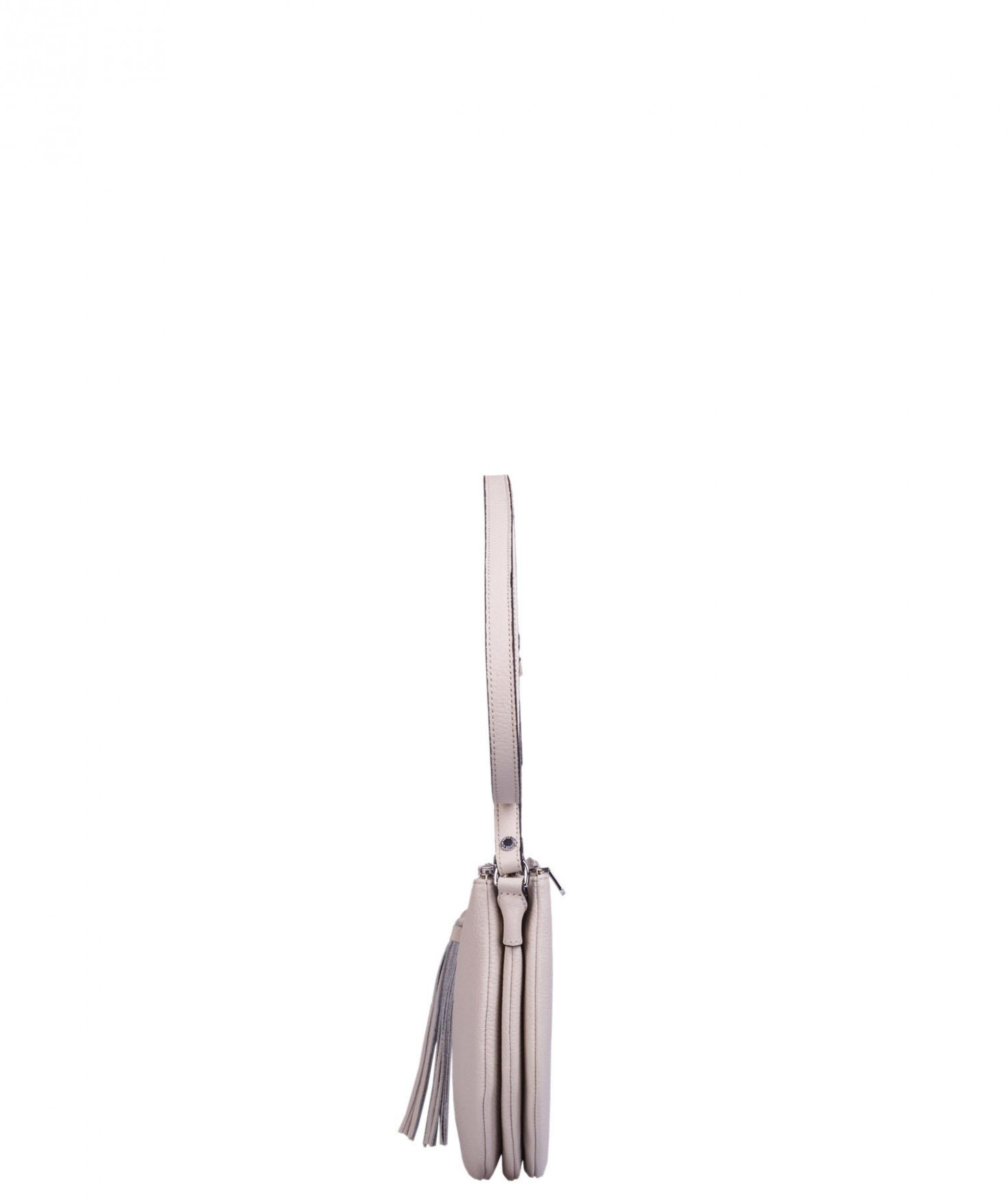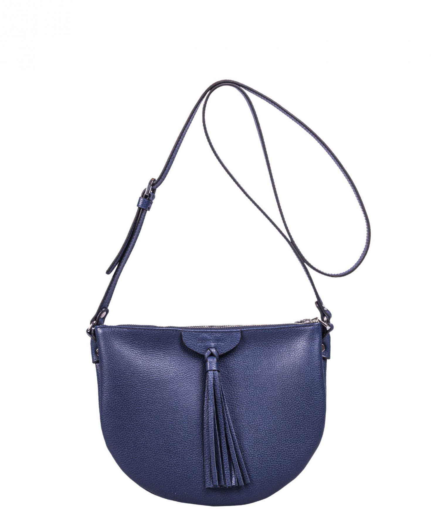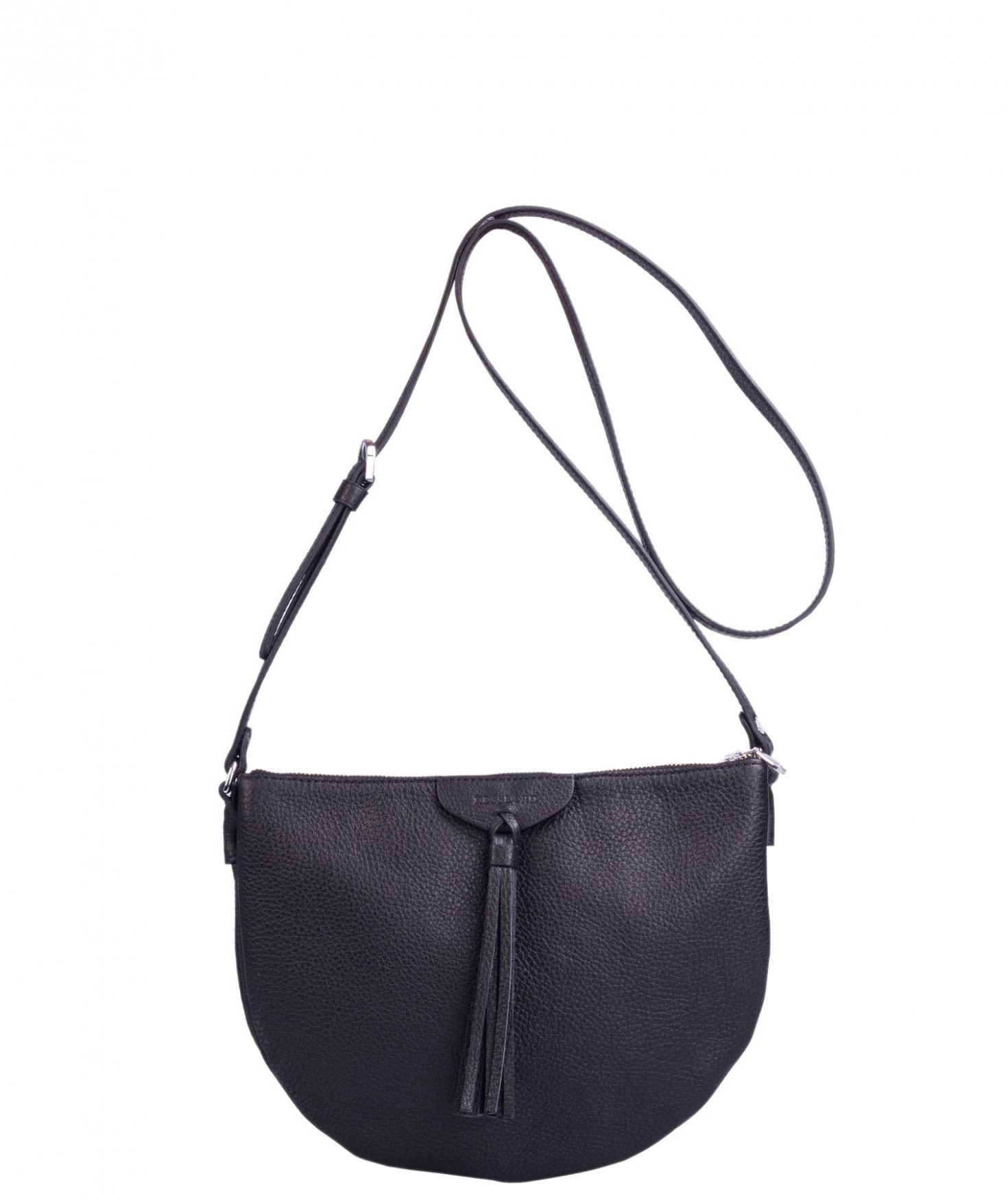 Besace portée épaule ou croisée grâce à sa bandoulière réglable. Trois compartiments fermés par des zips. Pompon à franges sur le devant. Bijouterie finition argentée.