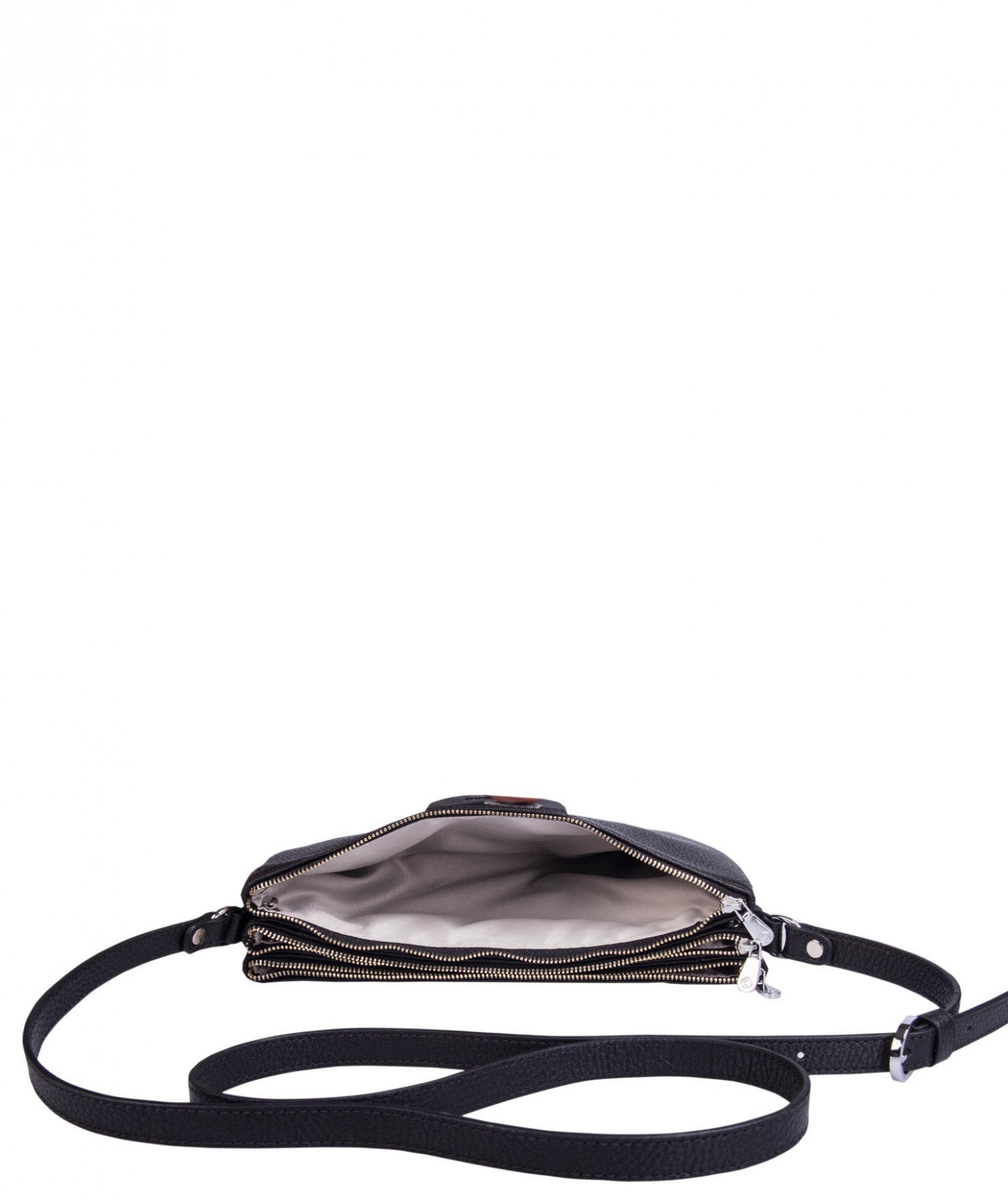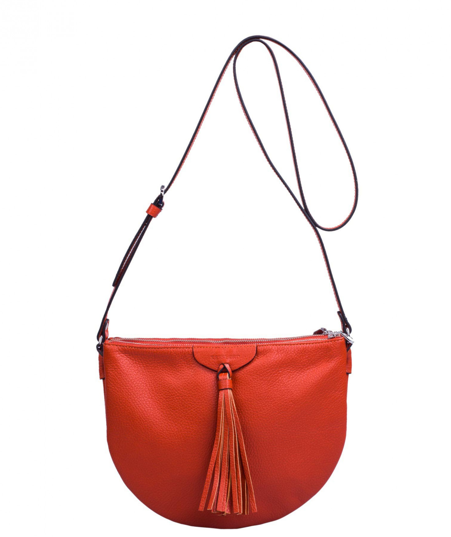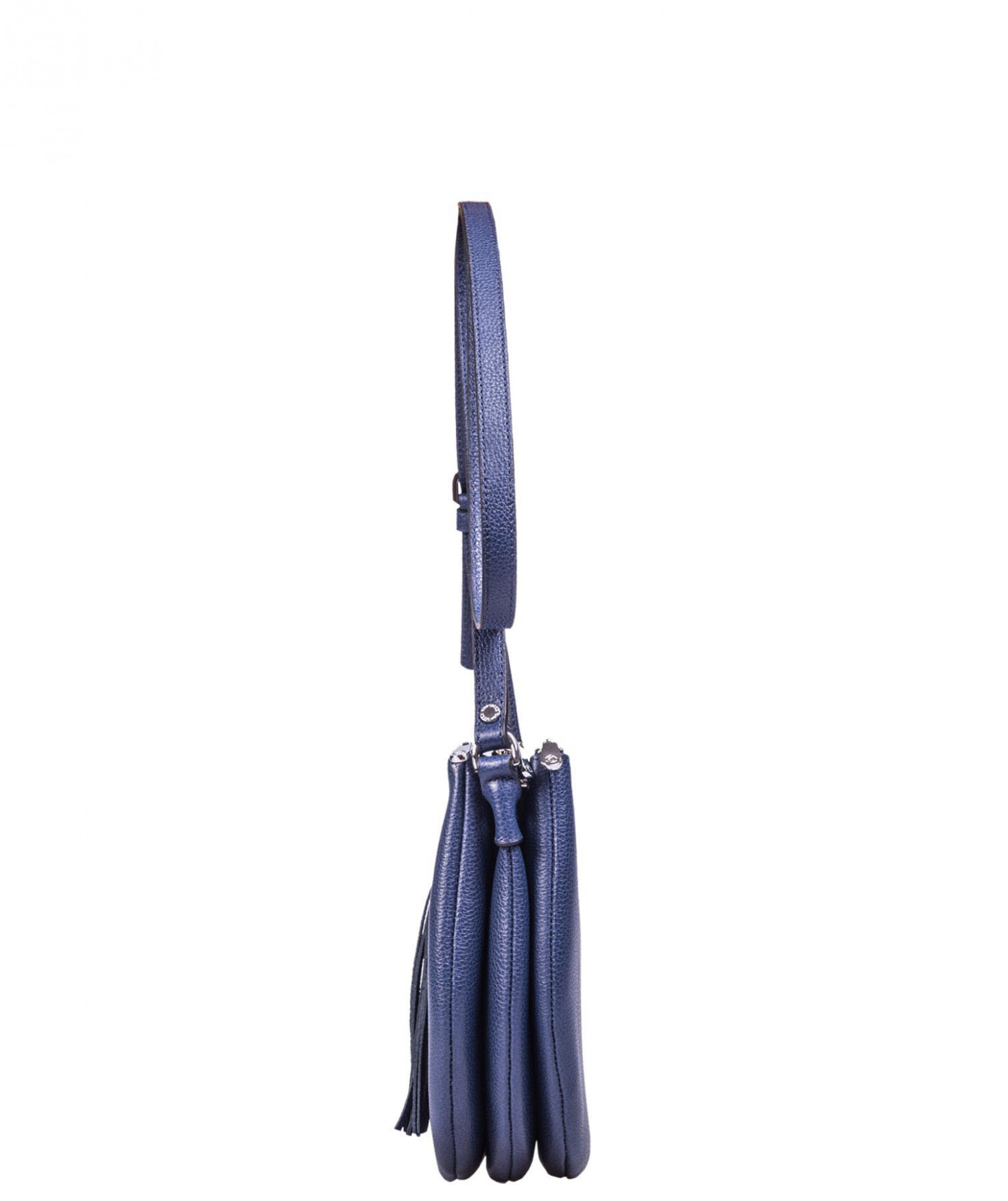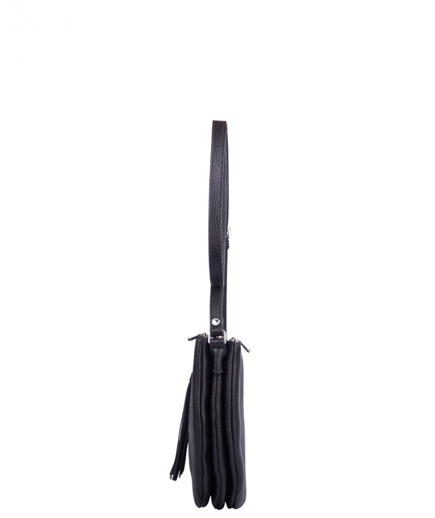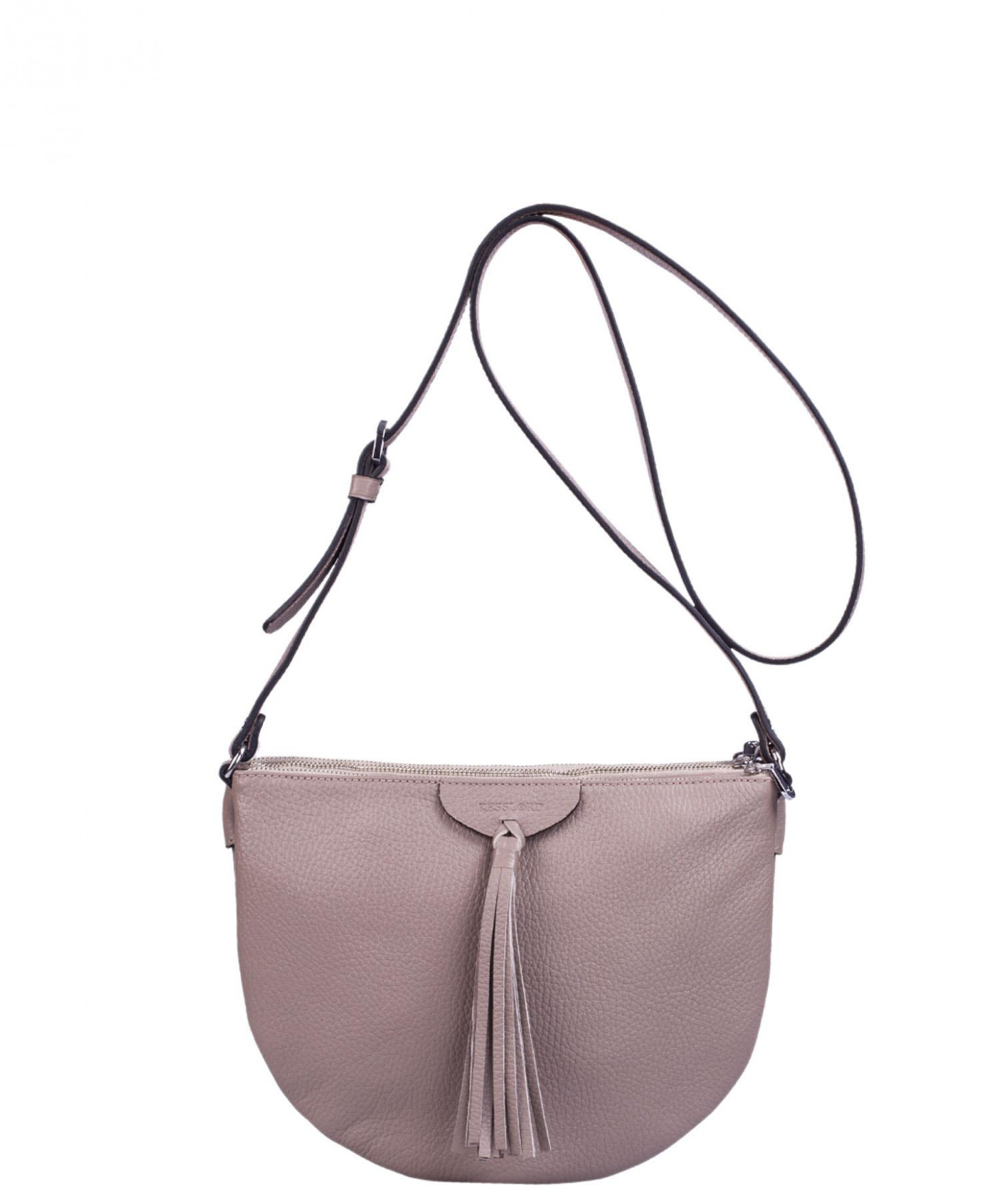Besace portée épaule ou croisée grâce à sa bandoulière réglable. Trois compartiments fermés par des zips. Pompon à franges sur le devant. Bijouterie finition argentée.