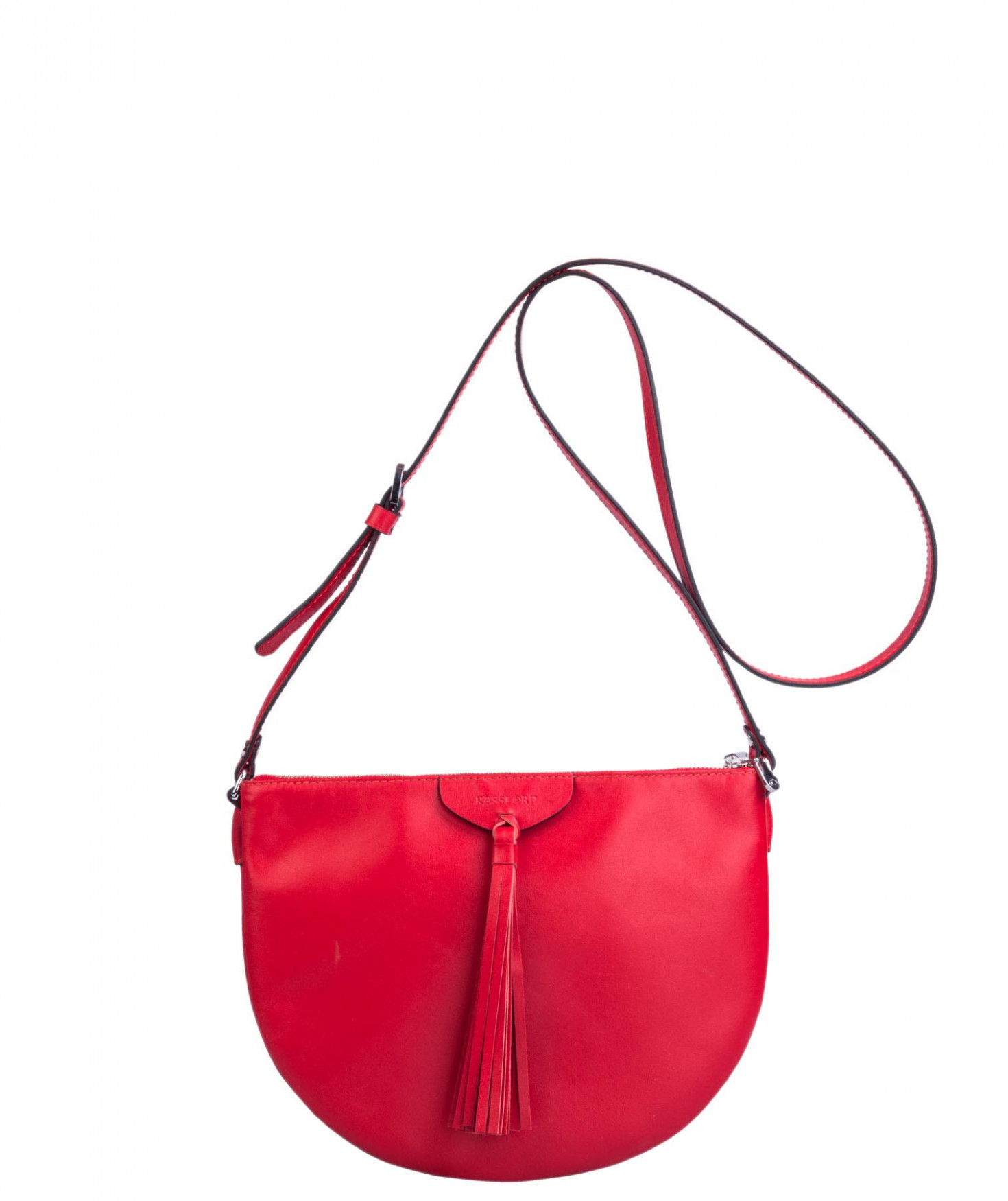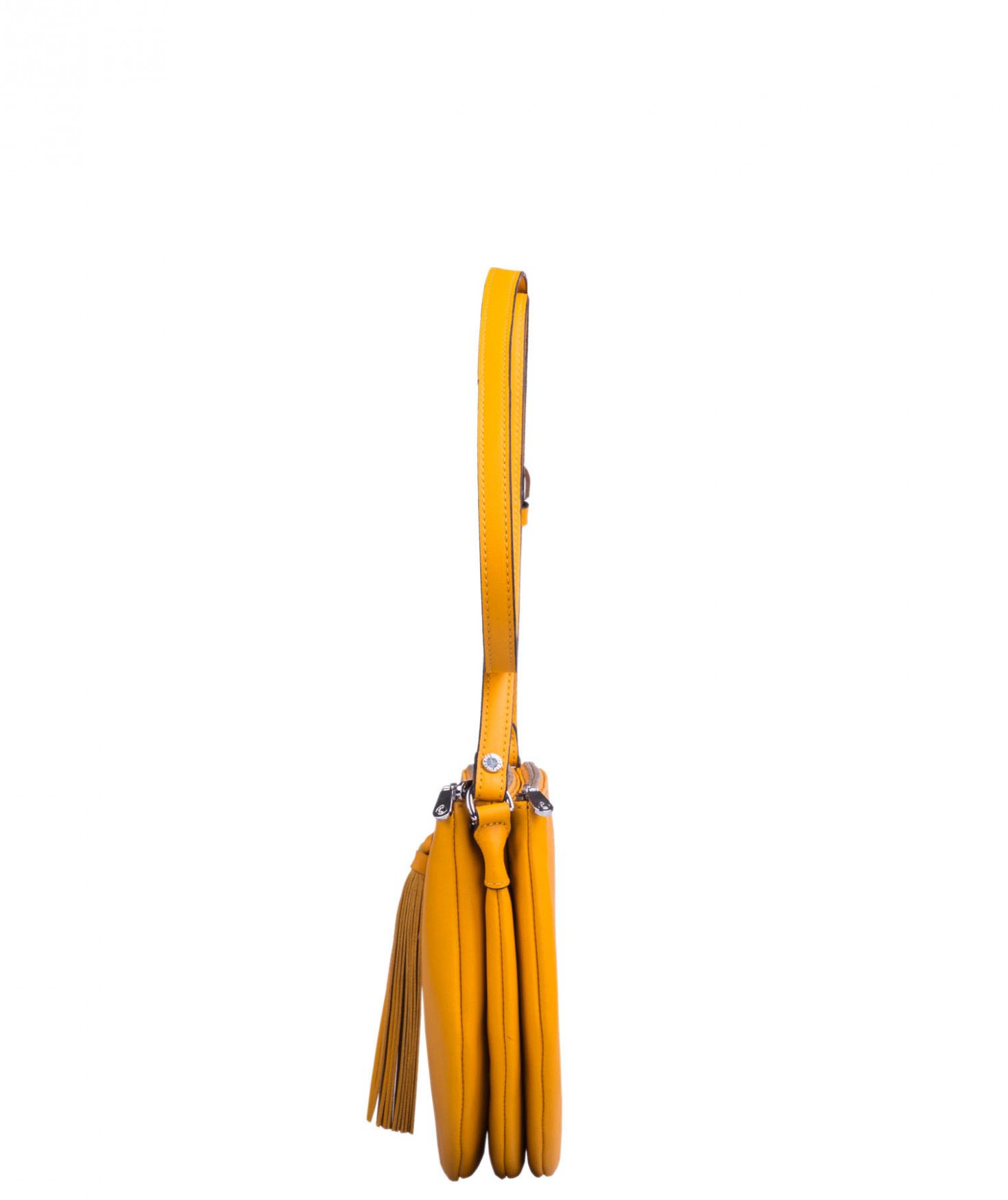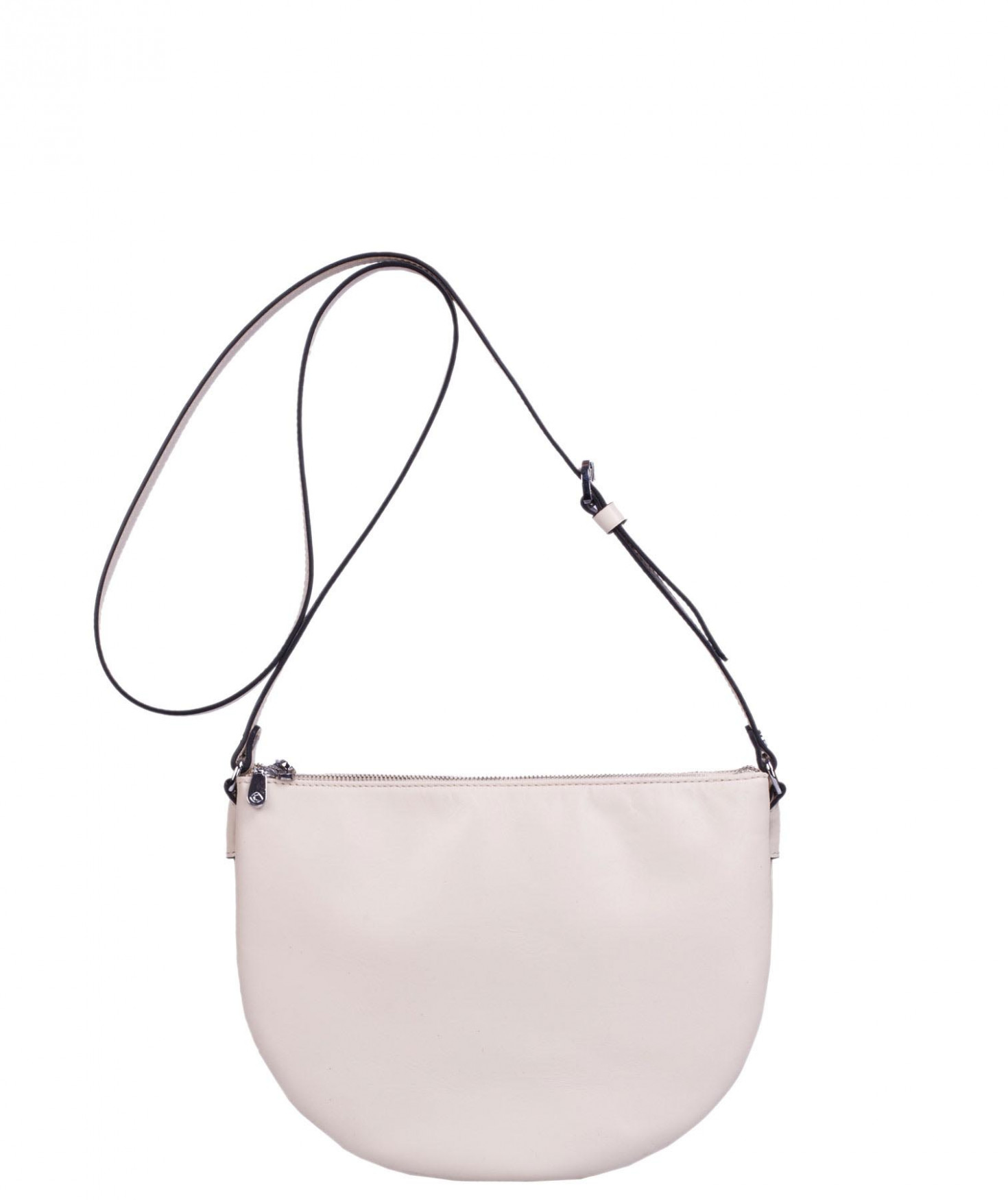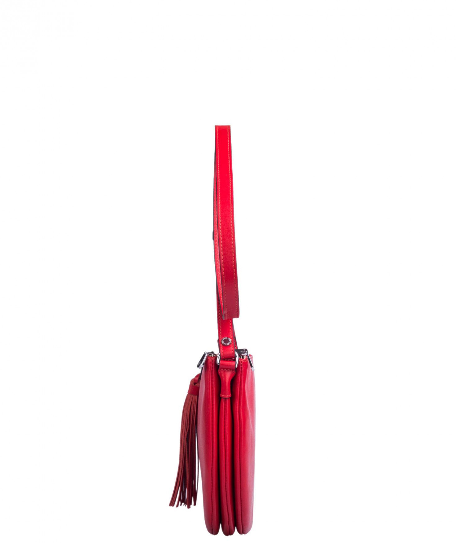 Besace portée épaule ou croisée grâce à sa bandoulière réglable. Trois compartiments fermés par des zips. Pompon à franges sur le devant. Bijouterie finition argentée.