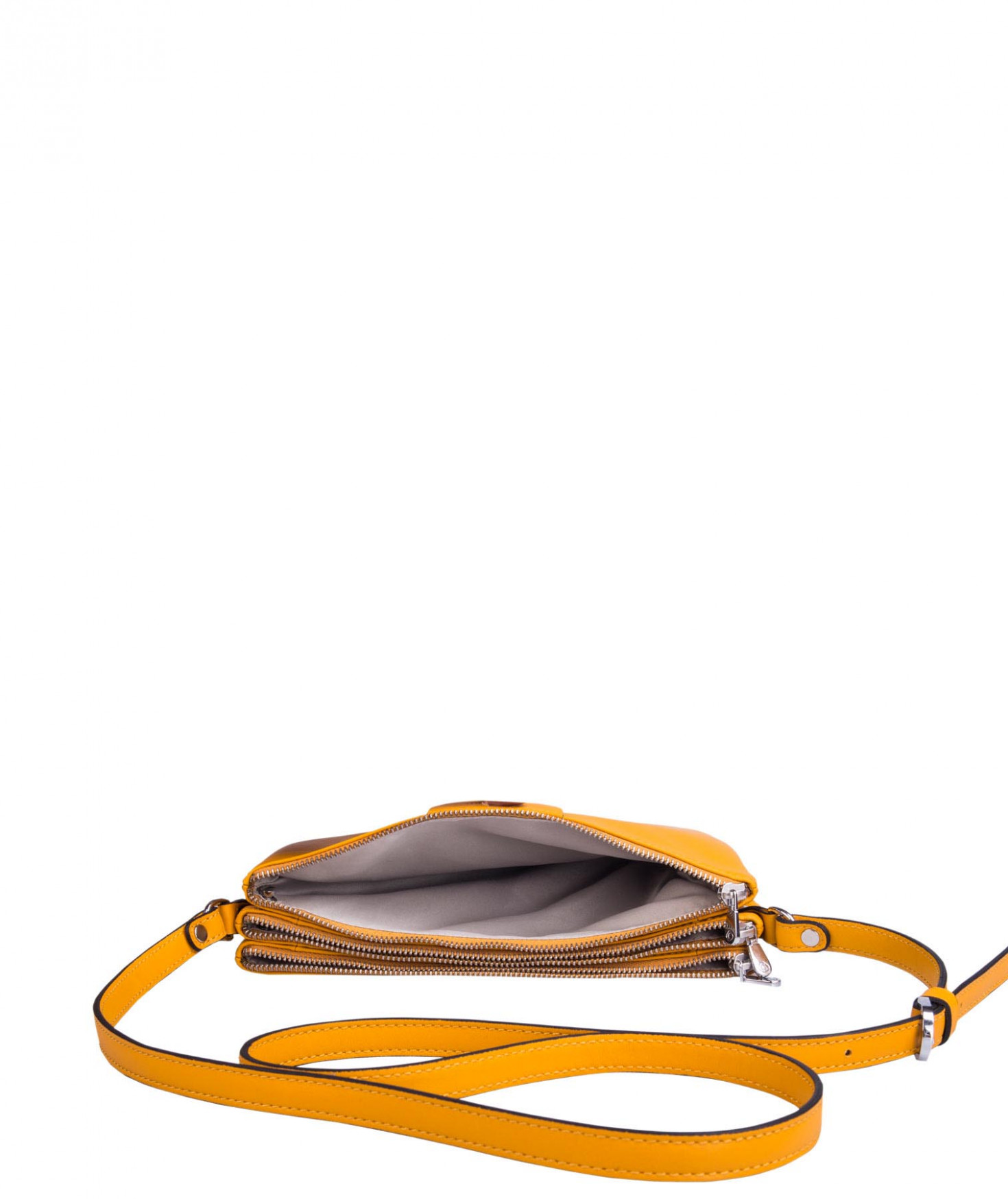 Porté travers en cuir de vachette lisse - Doublure en polyester - Dimensions en cm (HxLxP) : 20x26x4