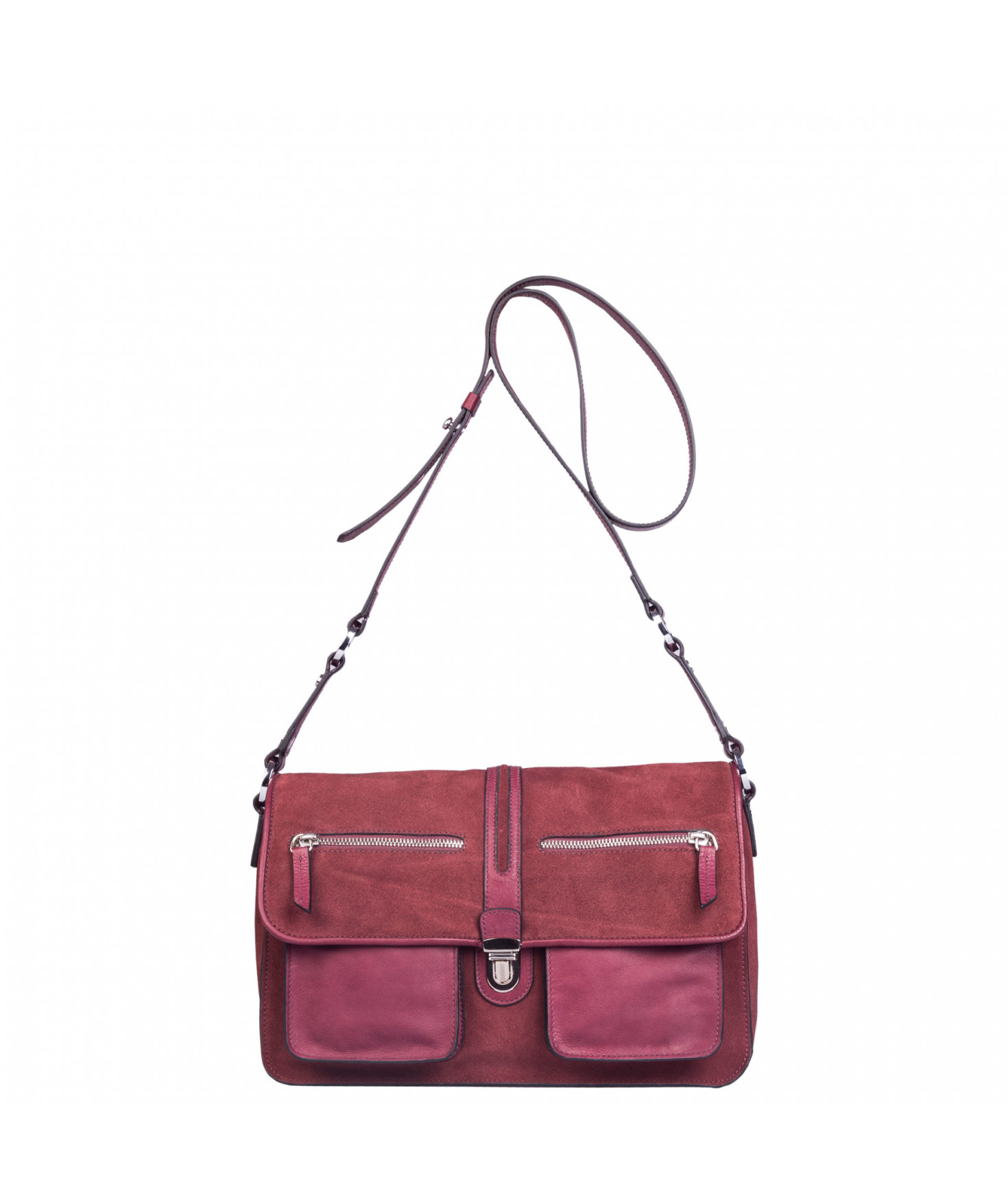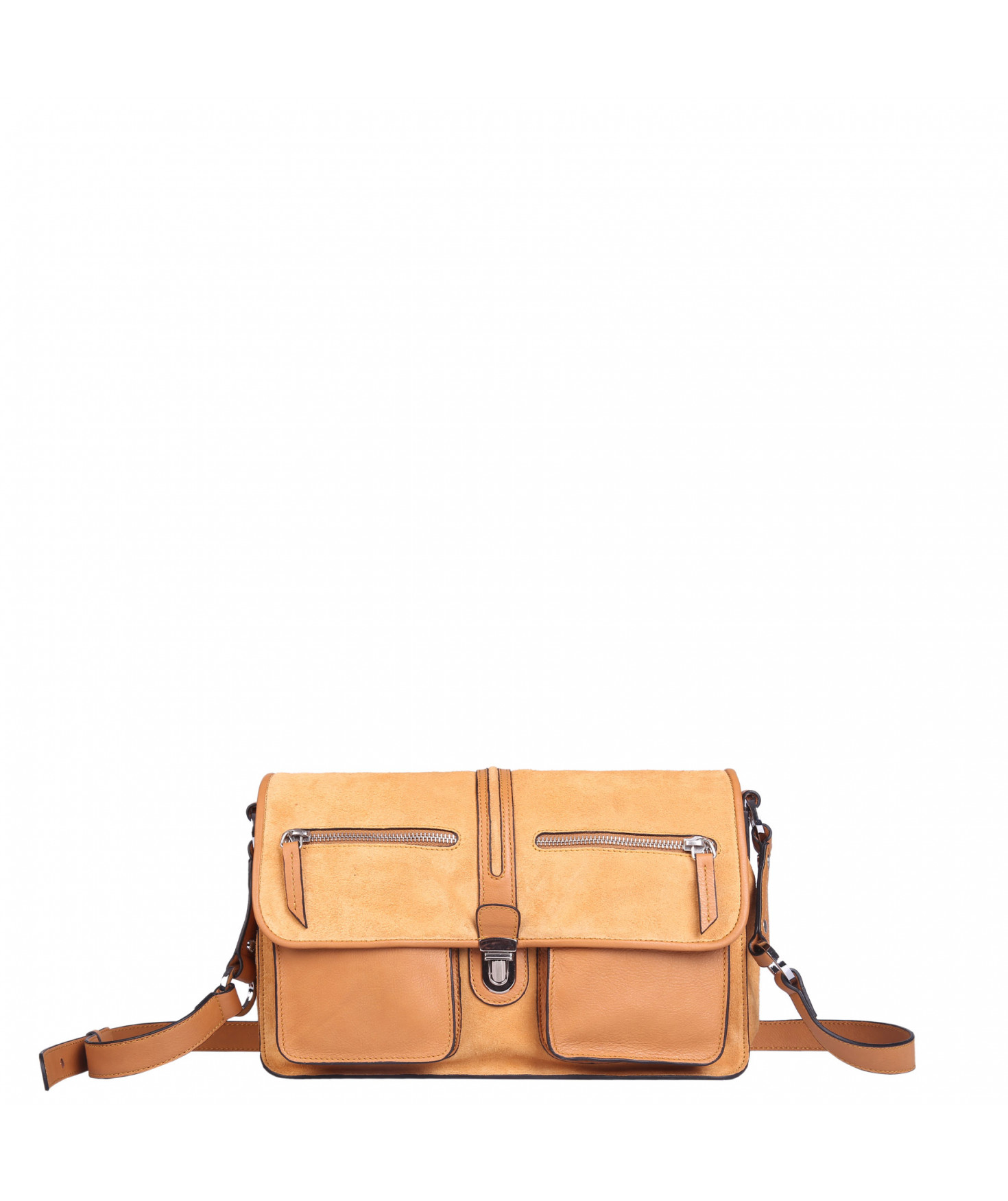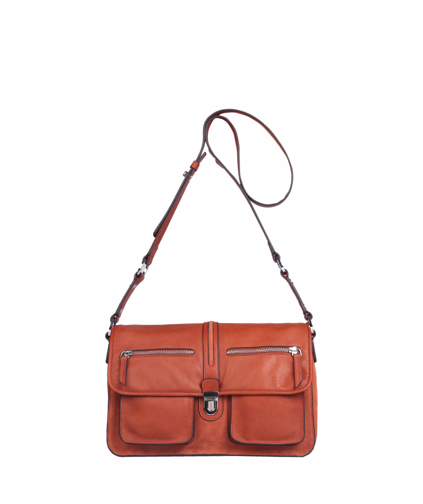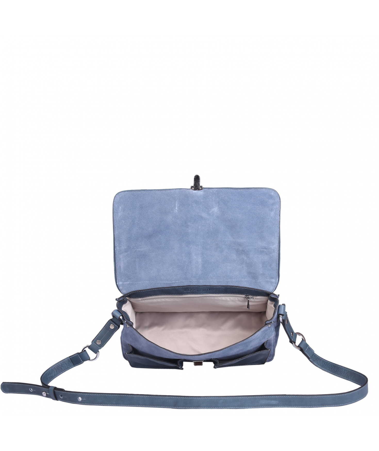 Besace porté épaule ou croisé grâce à sa bandoulière réglable. A l'extérieur, deux poches zippées et deux poches plaquées sous le rabat à fermoir. A l'intérieur, une poche zippée et deux poches plaquées. Bijouterie finition argentée.