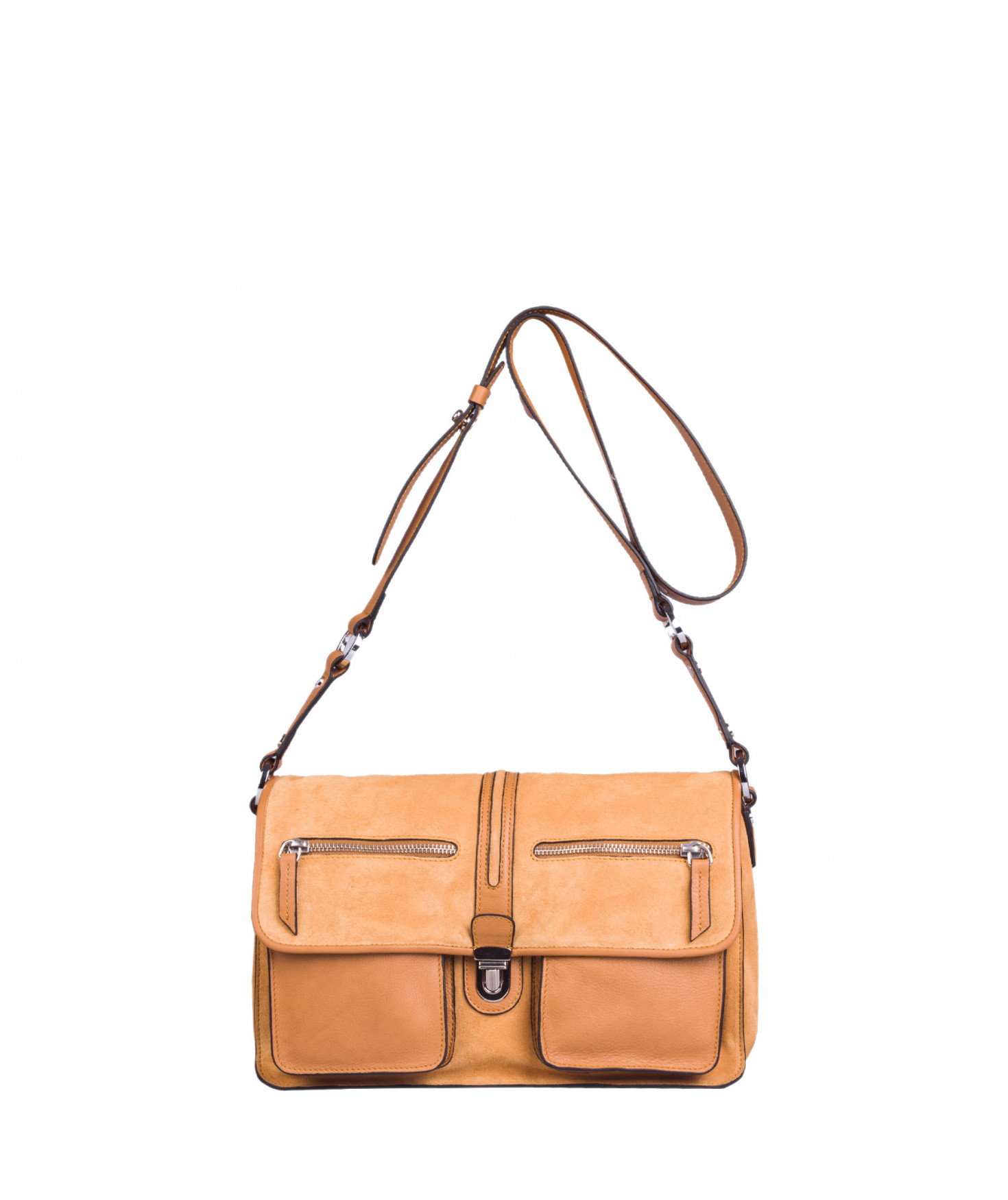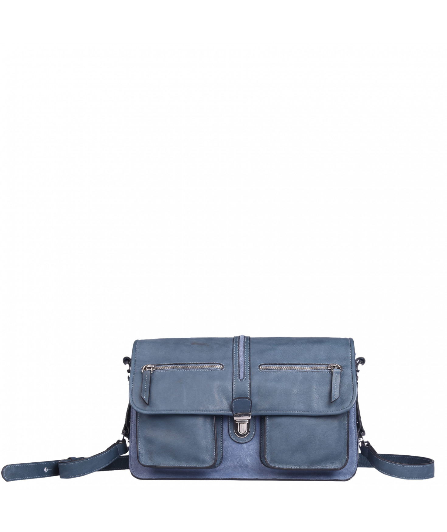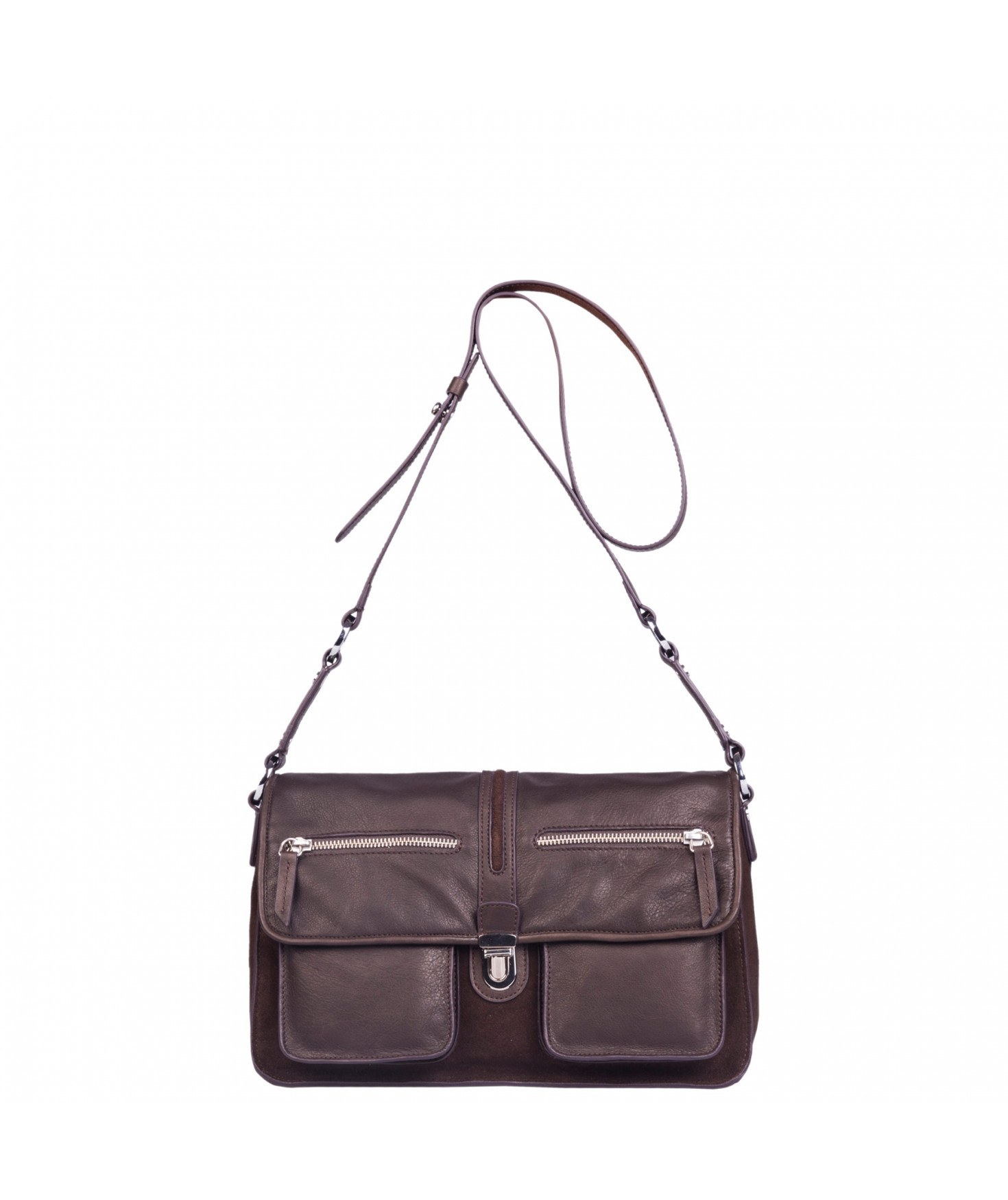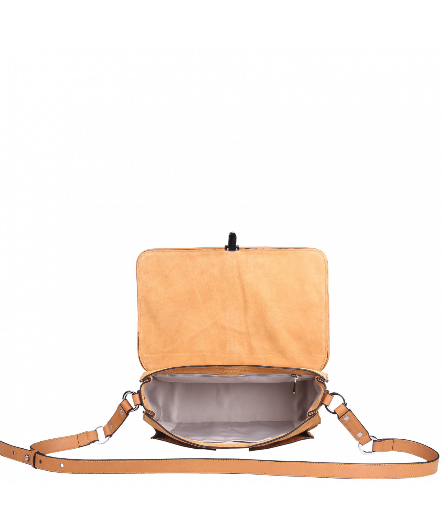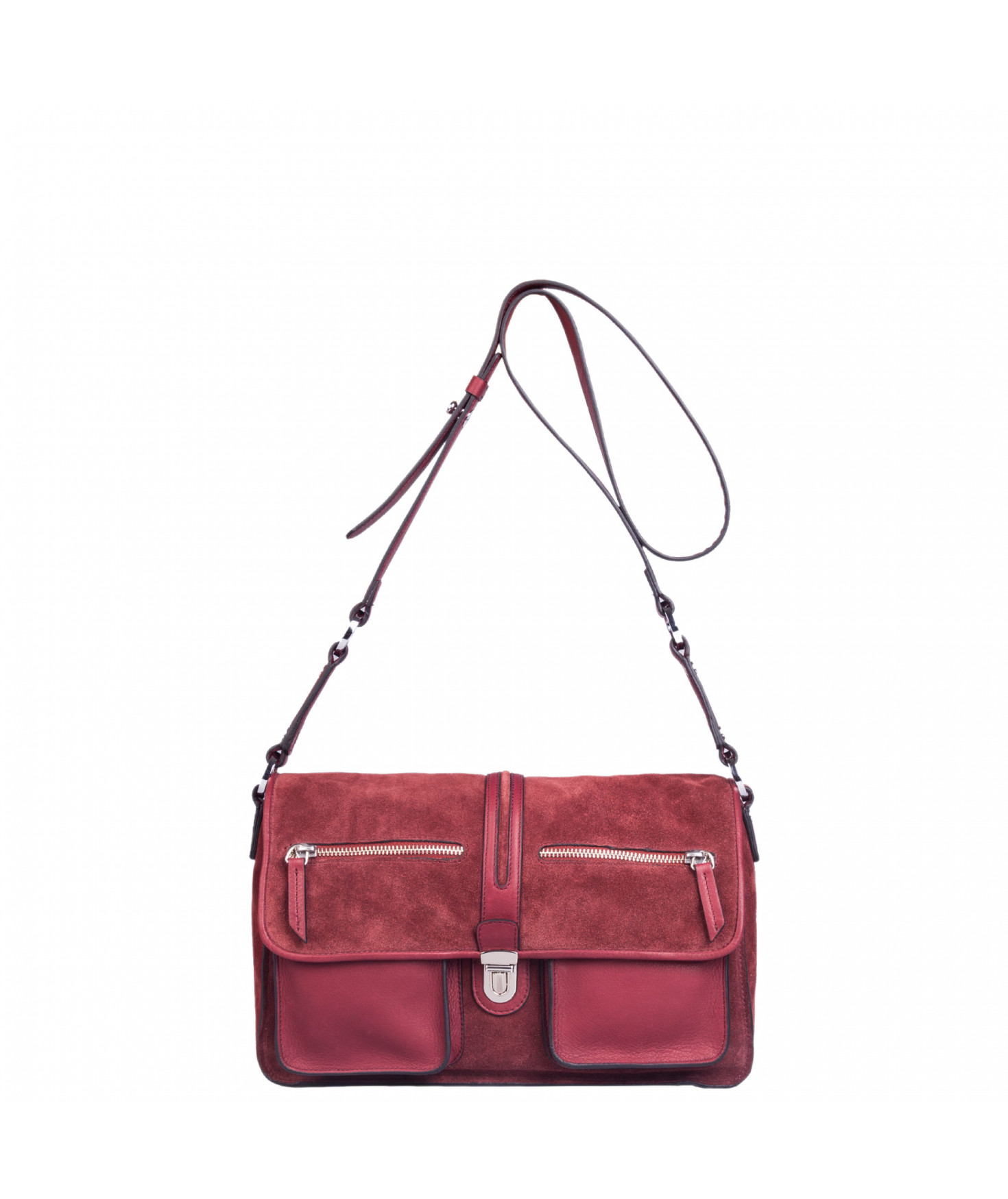 Besace porté épaule ou croisé grâce à sa bandoulière réglable. A l'extérieur, deux poches zippées et deux poches plaquées sous le rabat à fermoir. A l'intérieur, une poche zippée et deux poches plaquées. Bijouterie finition argentée.