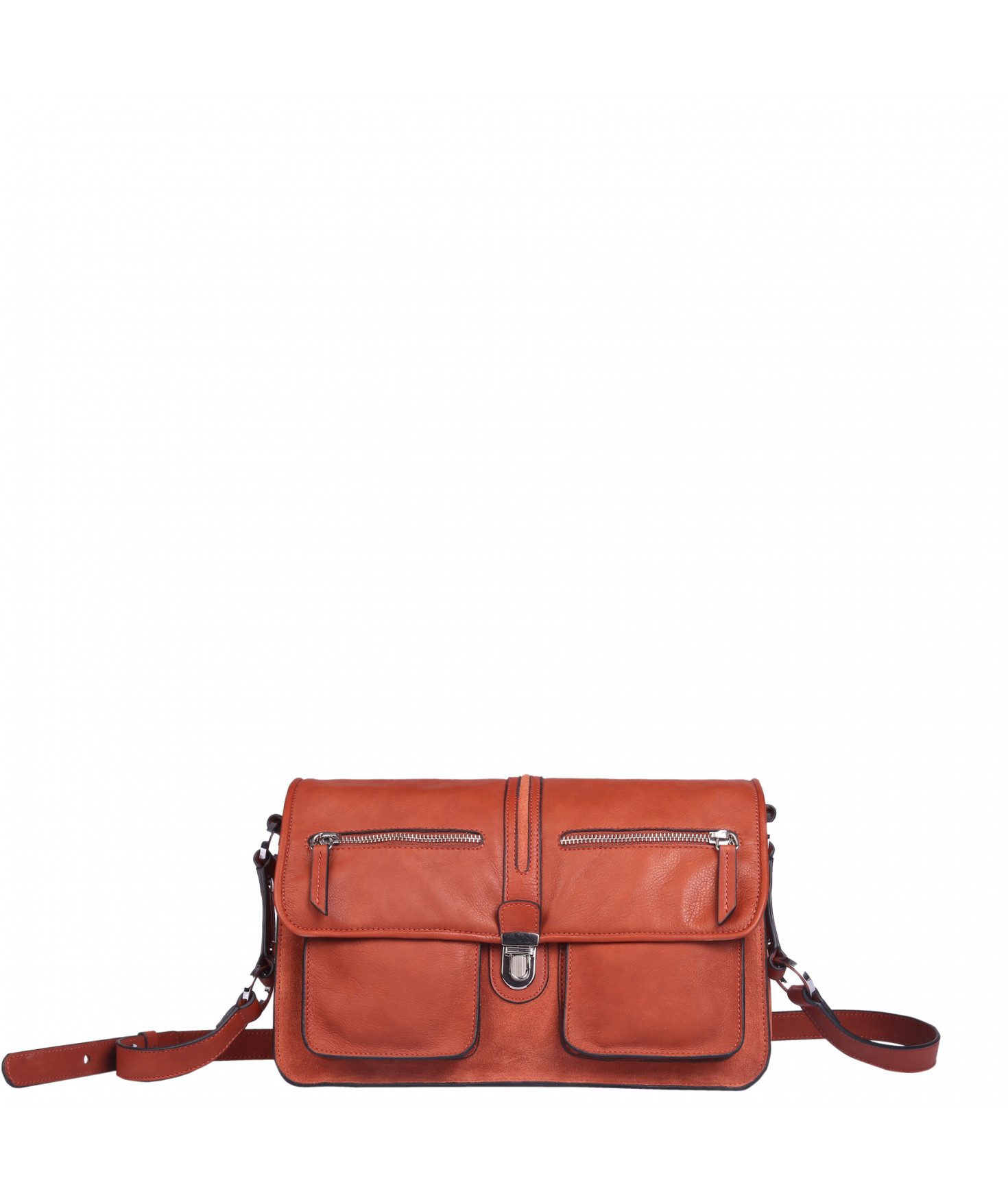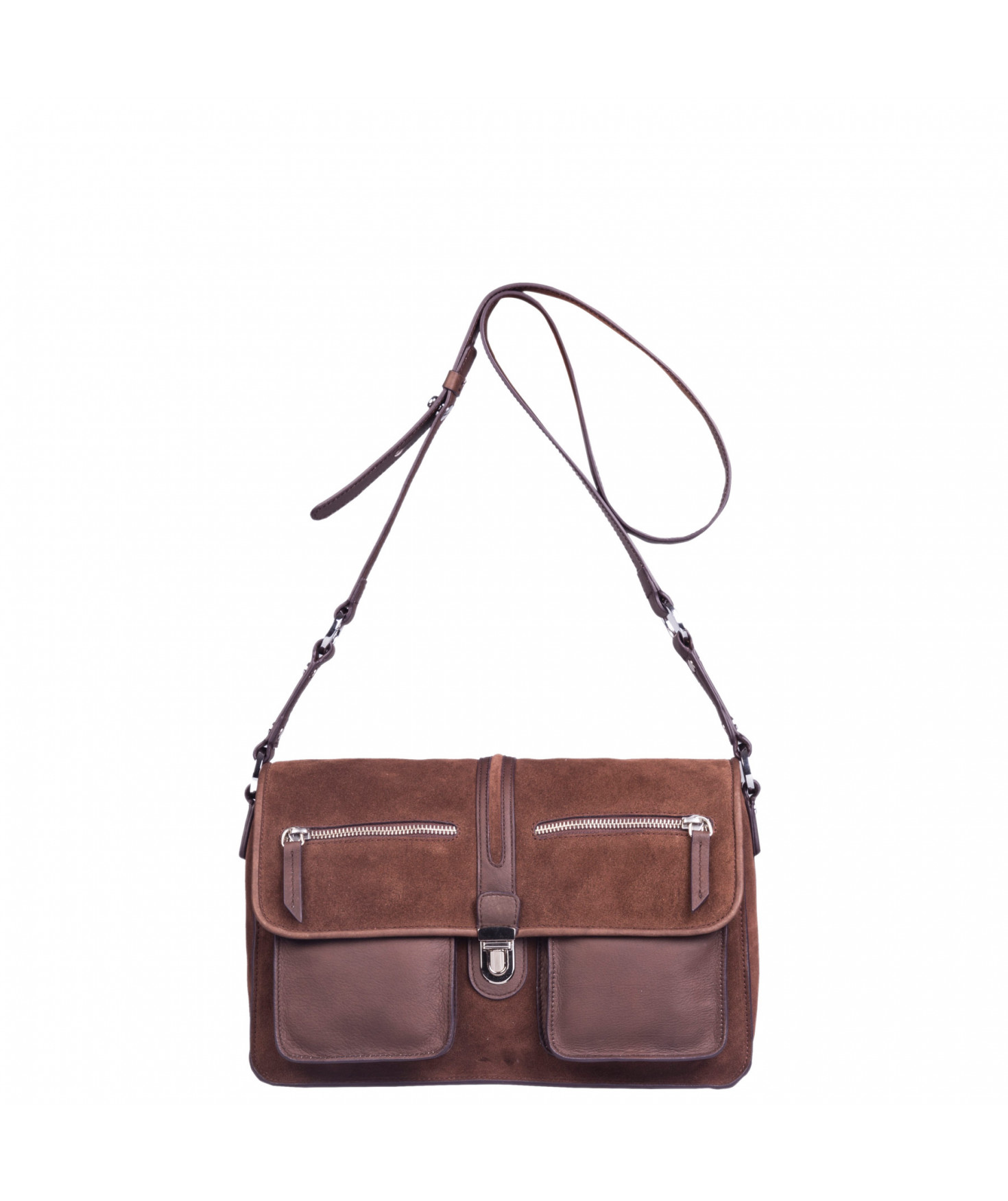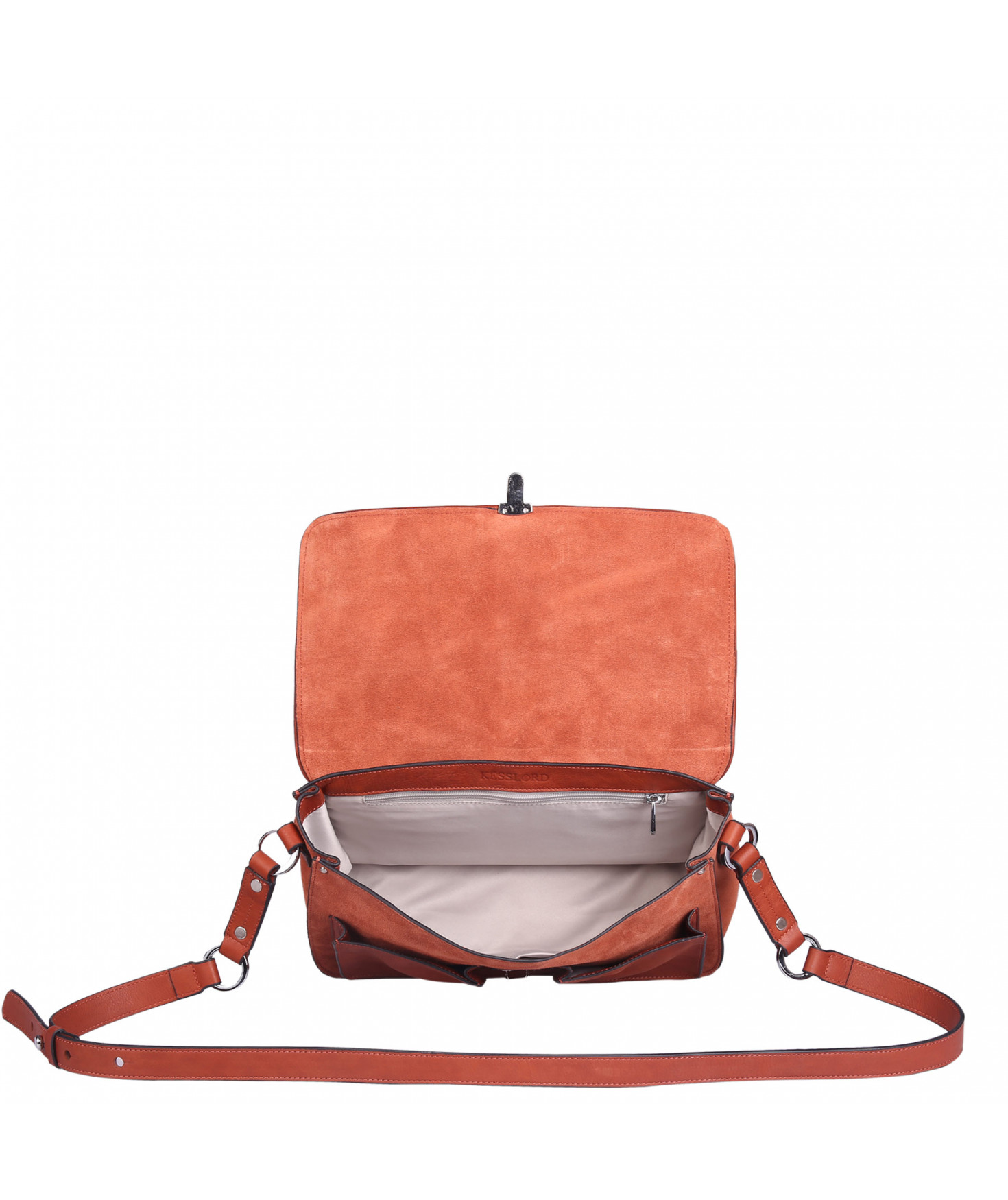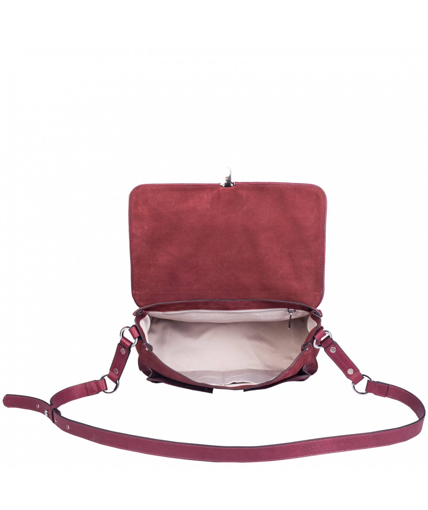 Besace porté épaule ou croisé grâce à sa bandoulière réglable. A l'extérieur, deux poches zippées et deux poches plaquées sous le rabat à fermoir. A l'intérieur, une poche zippée et deux poches plaquées. Bijouterie finition argentée.