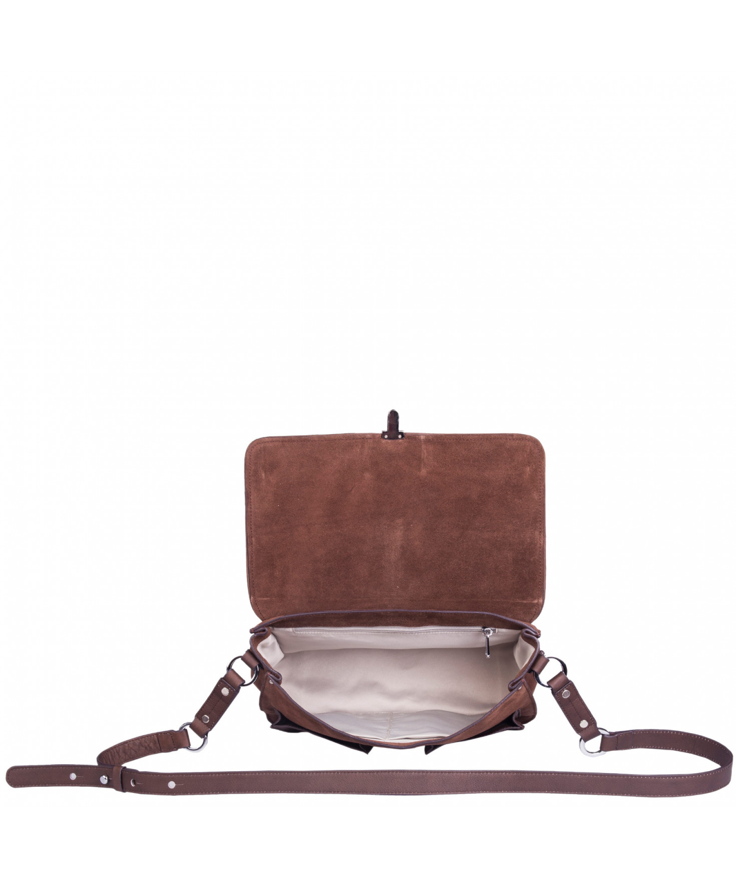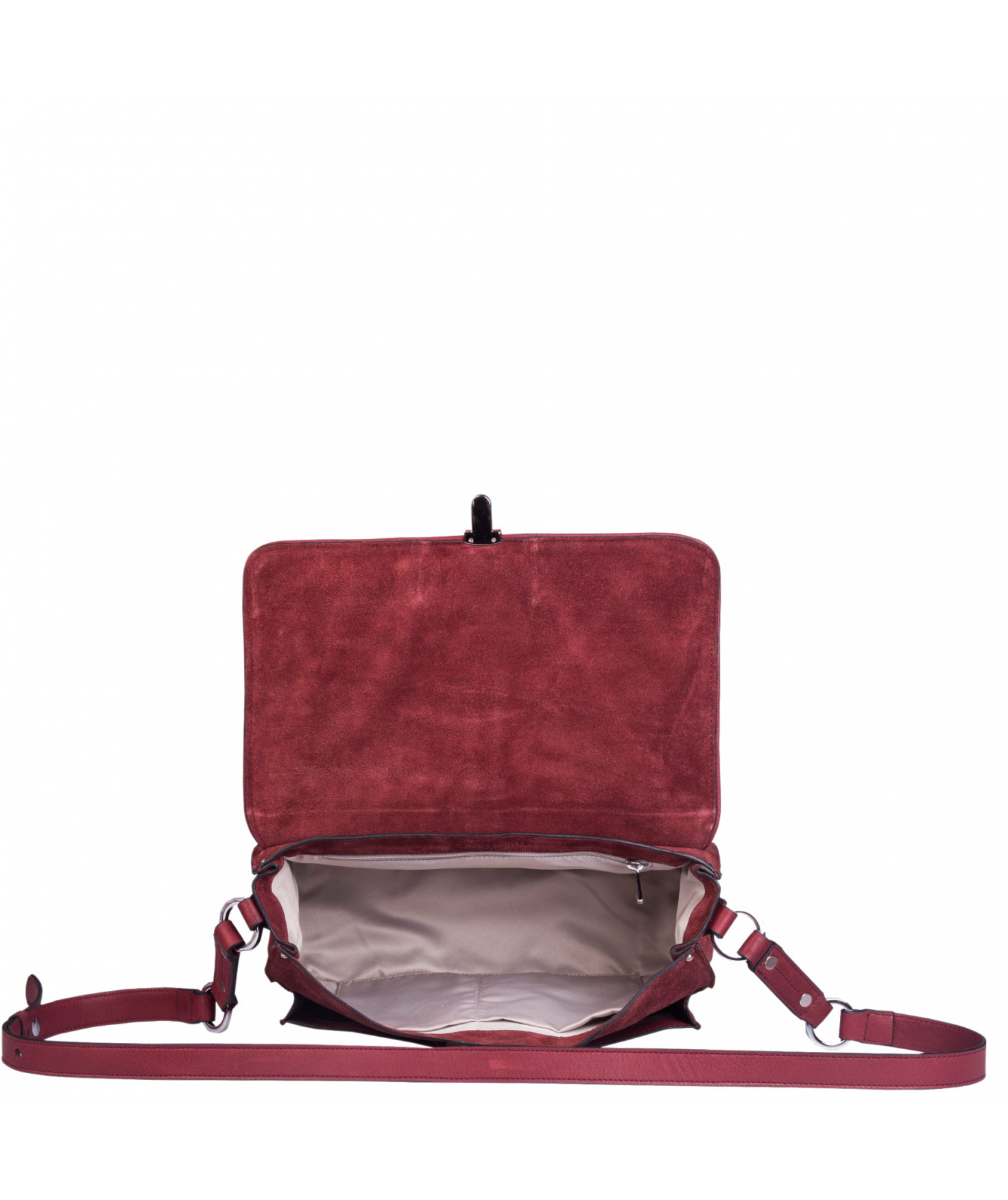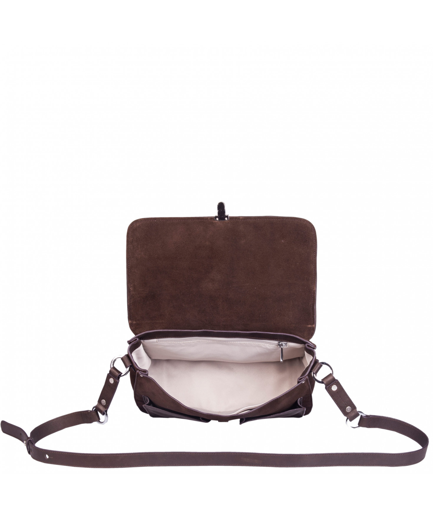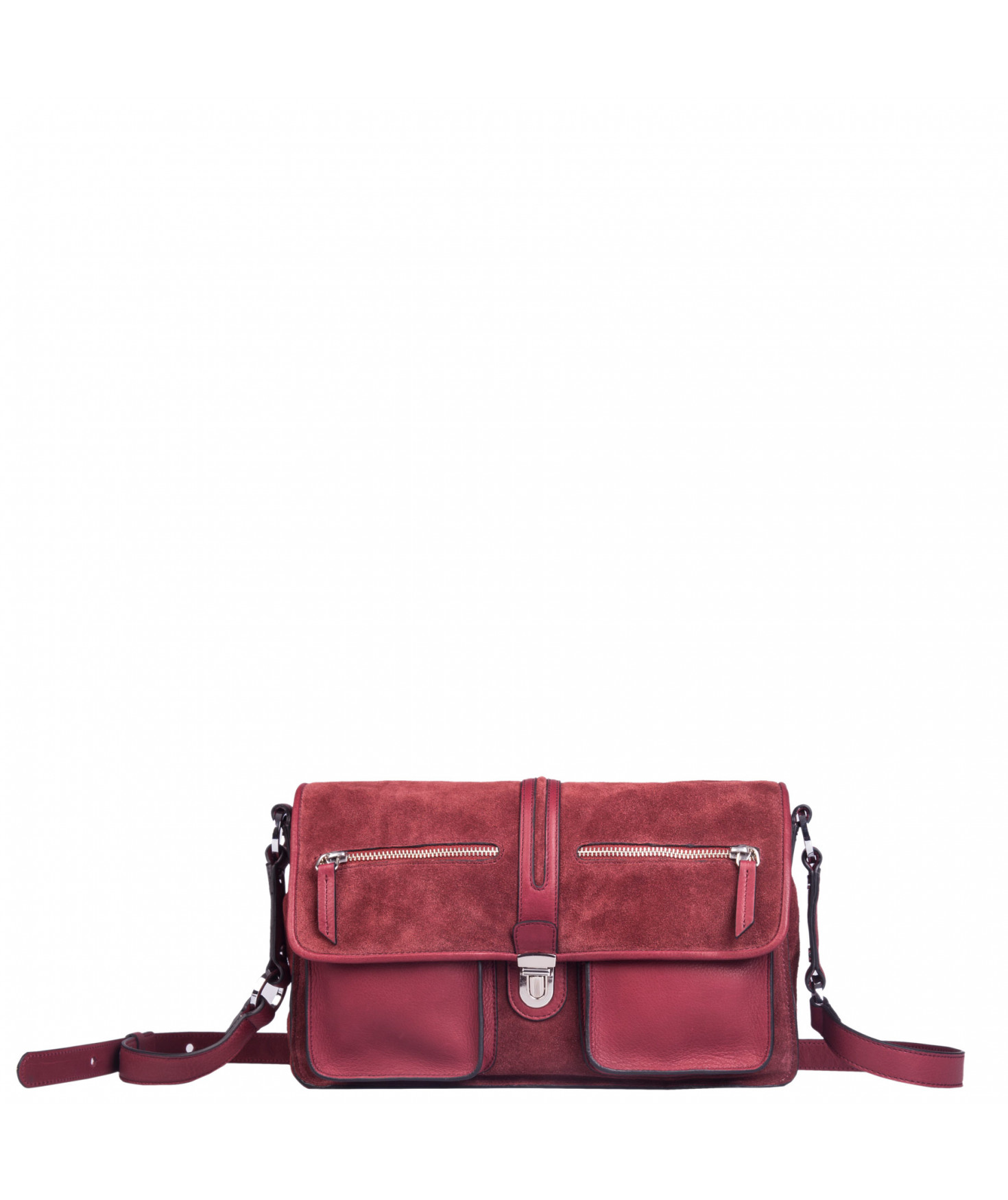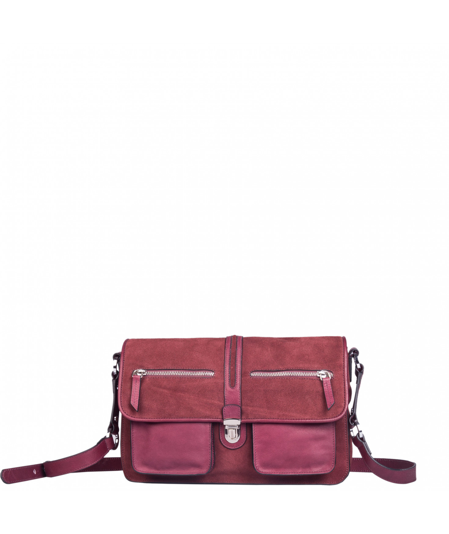 Besace porté épaule ou croisé grâce à sa bandoulière réglable. A l'extérieur, deux poches zippées et deux poches plaquées sous le rabat à fermoir. A l'intérieur, une poche zippée et deux poches plaquées. Bijouterie finition argentée.