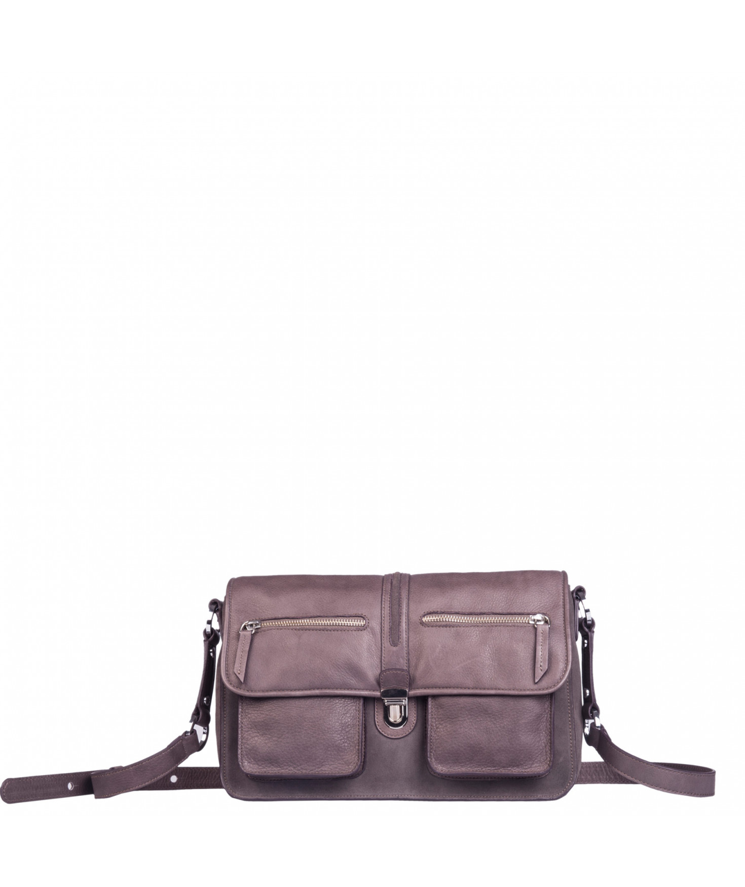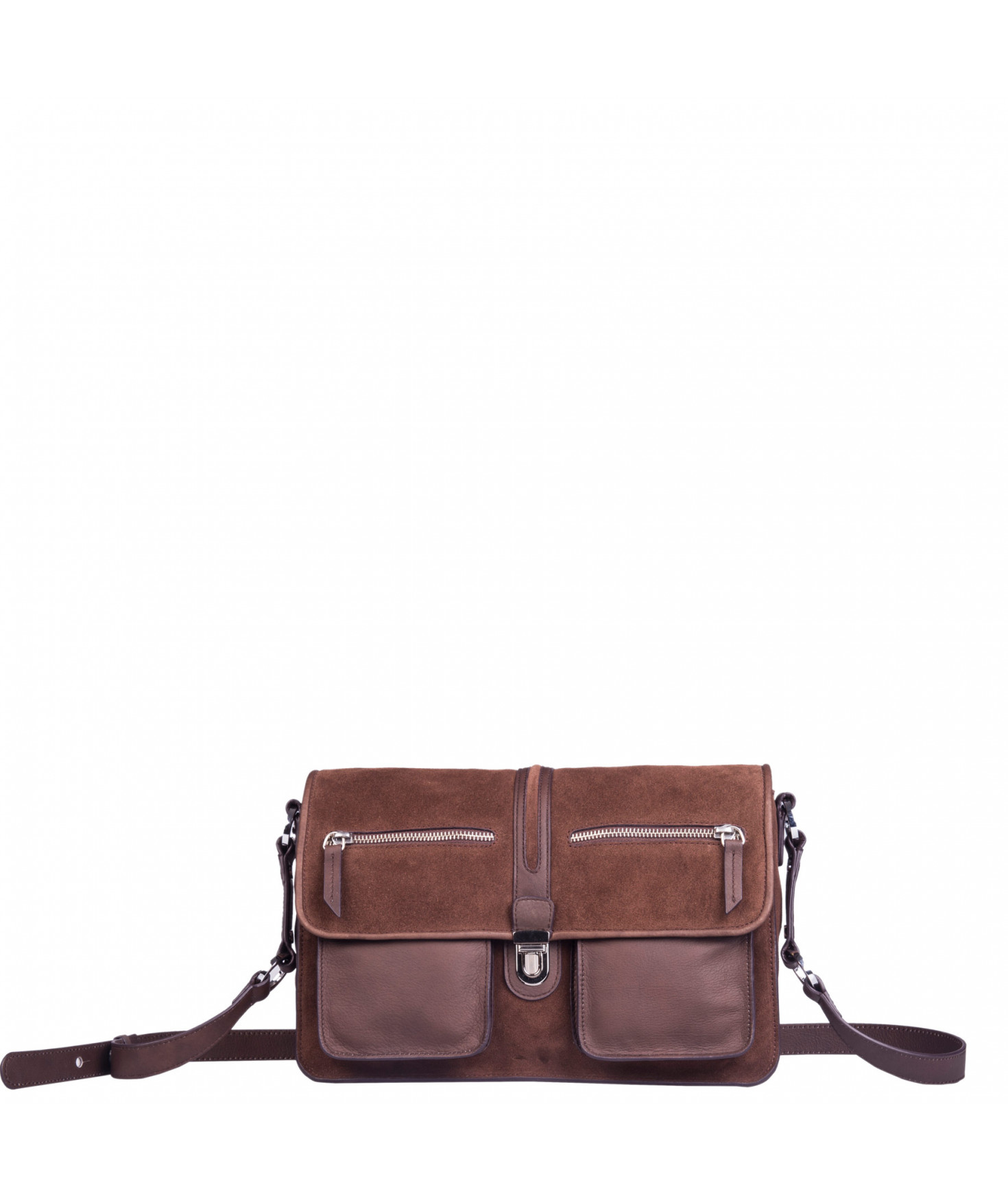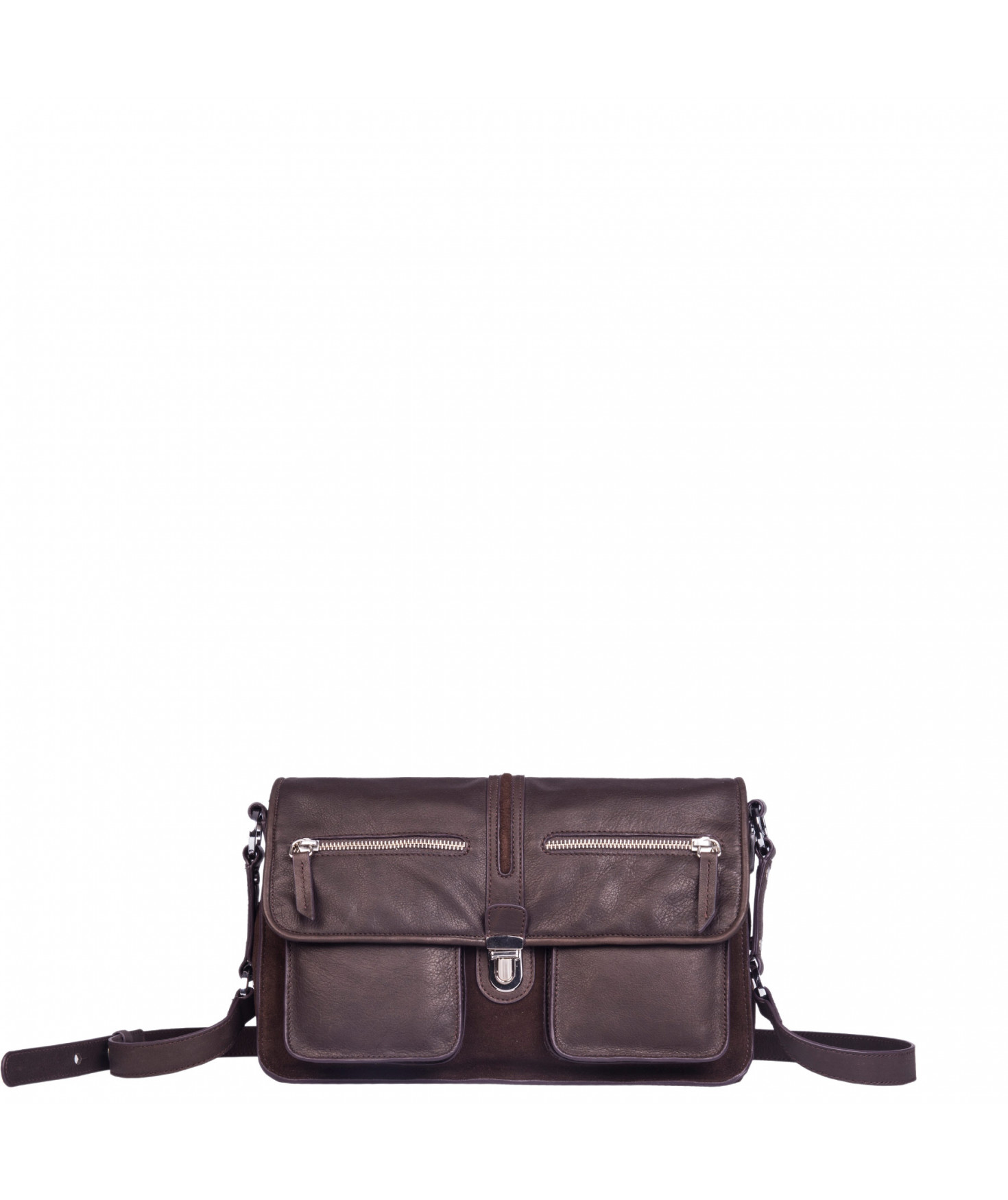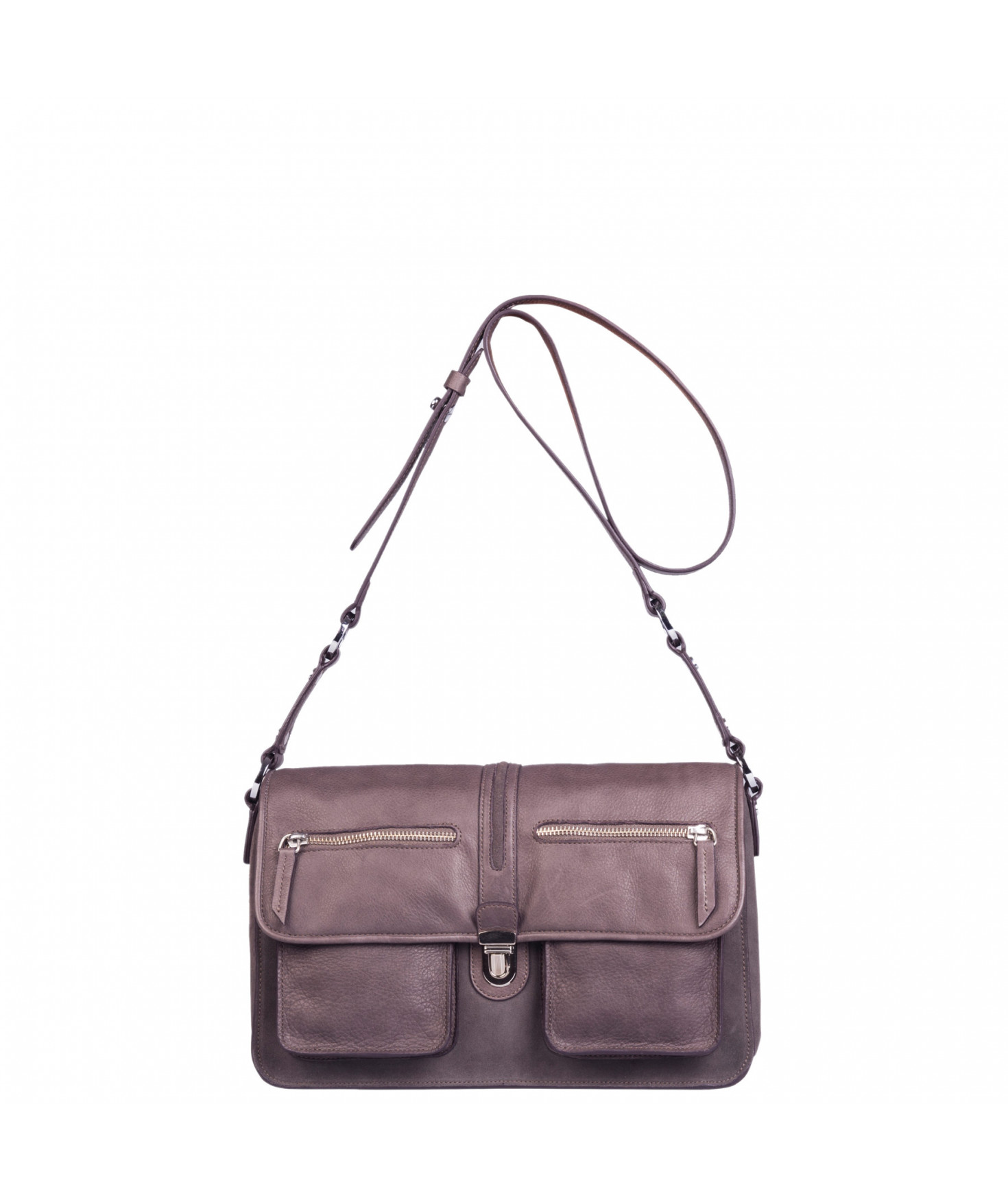 Besace porté épaule ou croisé grâce à sa bandoulière réglable. A l'extérieur, deux poches zippées et deux poches plaquées sous le rabat à fermoir. A l'intérieur, une poche zippée et deux poches plaquées. Bijouterie finition argentée.