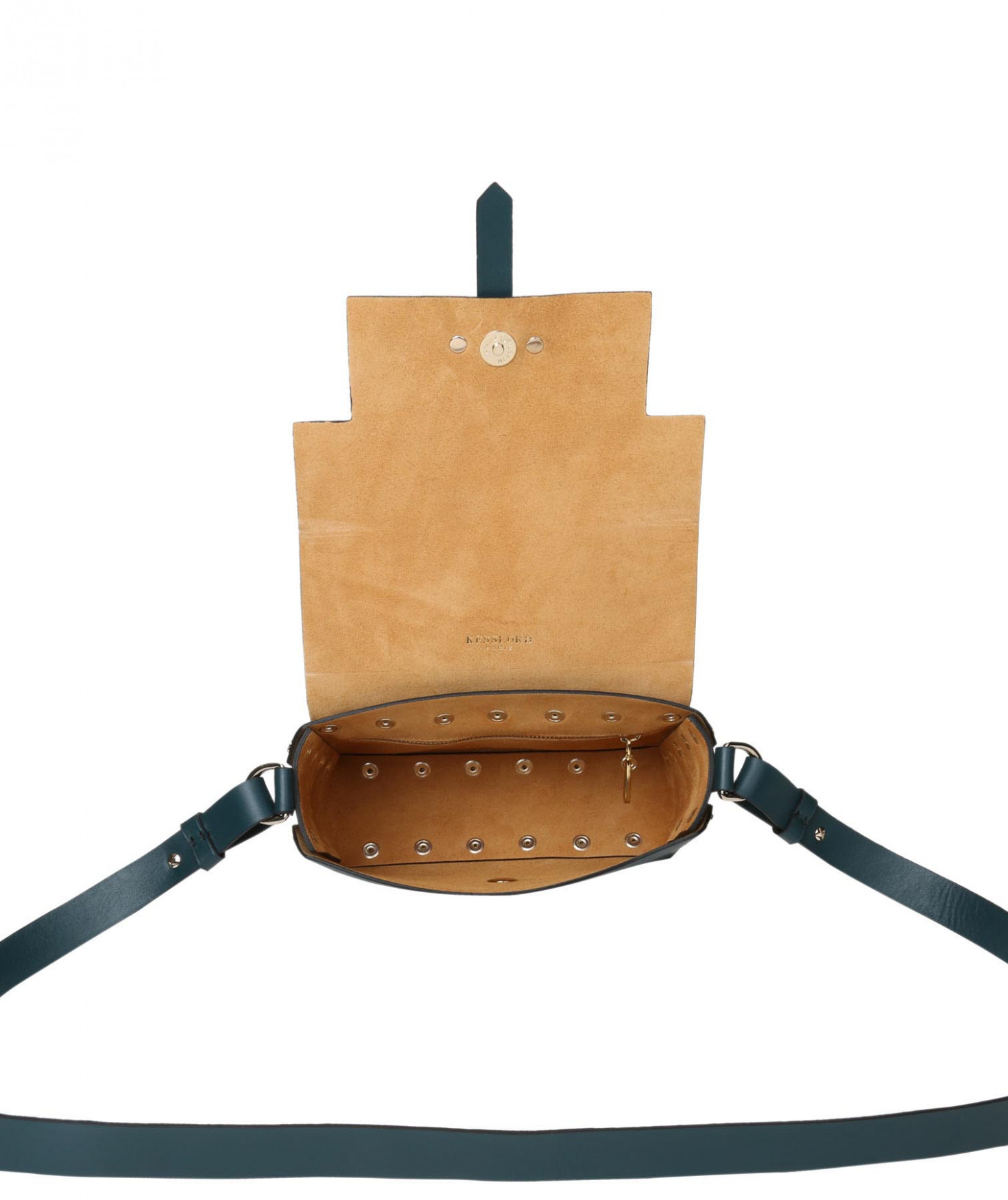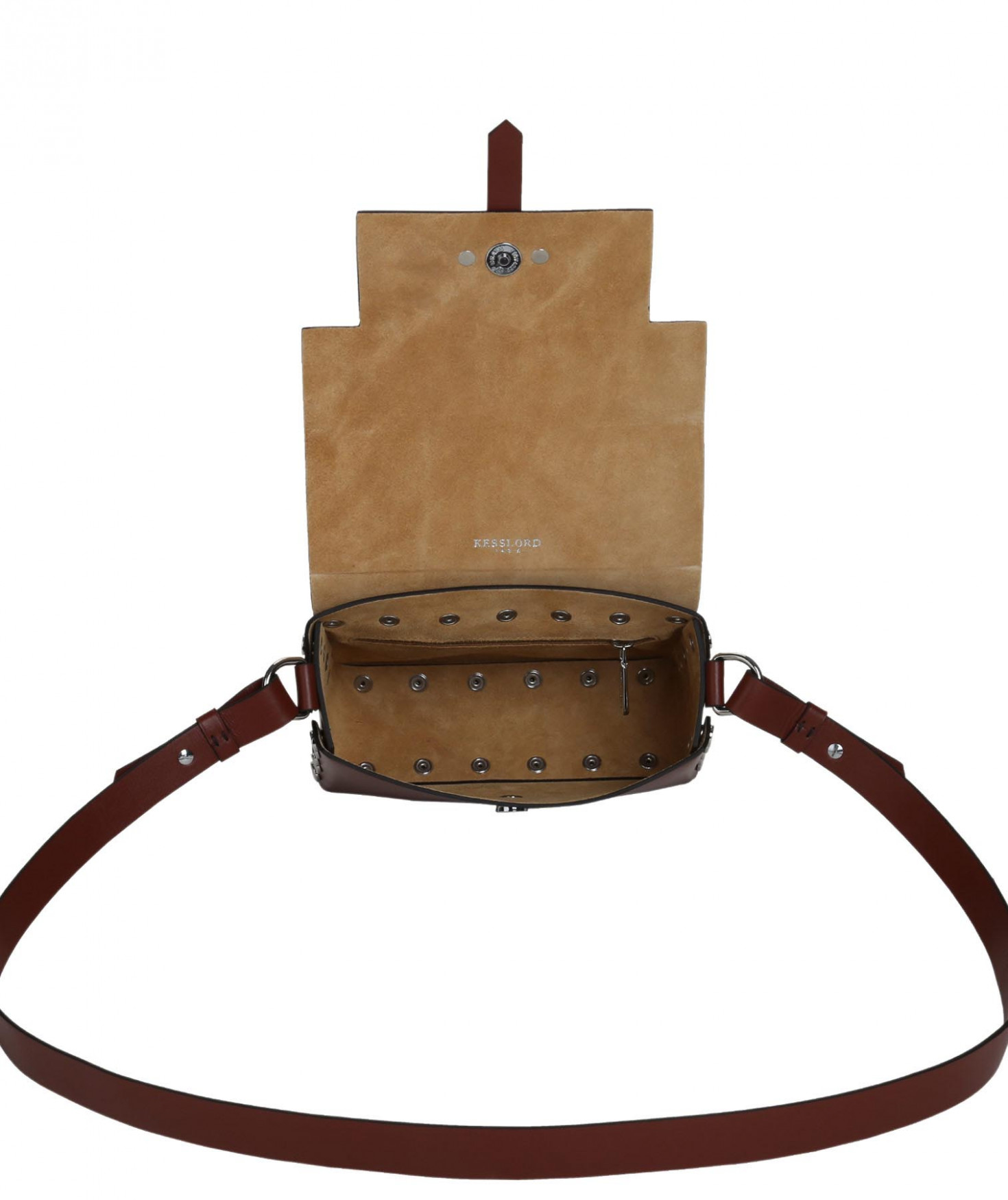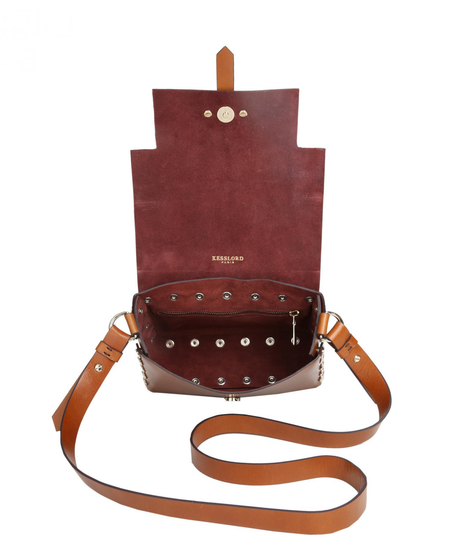 Porté travers en cuir de vachette lisse - Doublure en cuir - Dimensions en cm (HxLxP) : 19x22x8