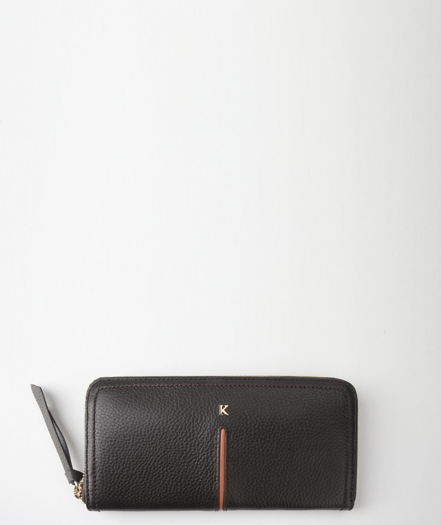 Porte-monnaie/porte billets zippé autour bi-color et bi-matière