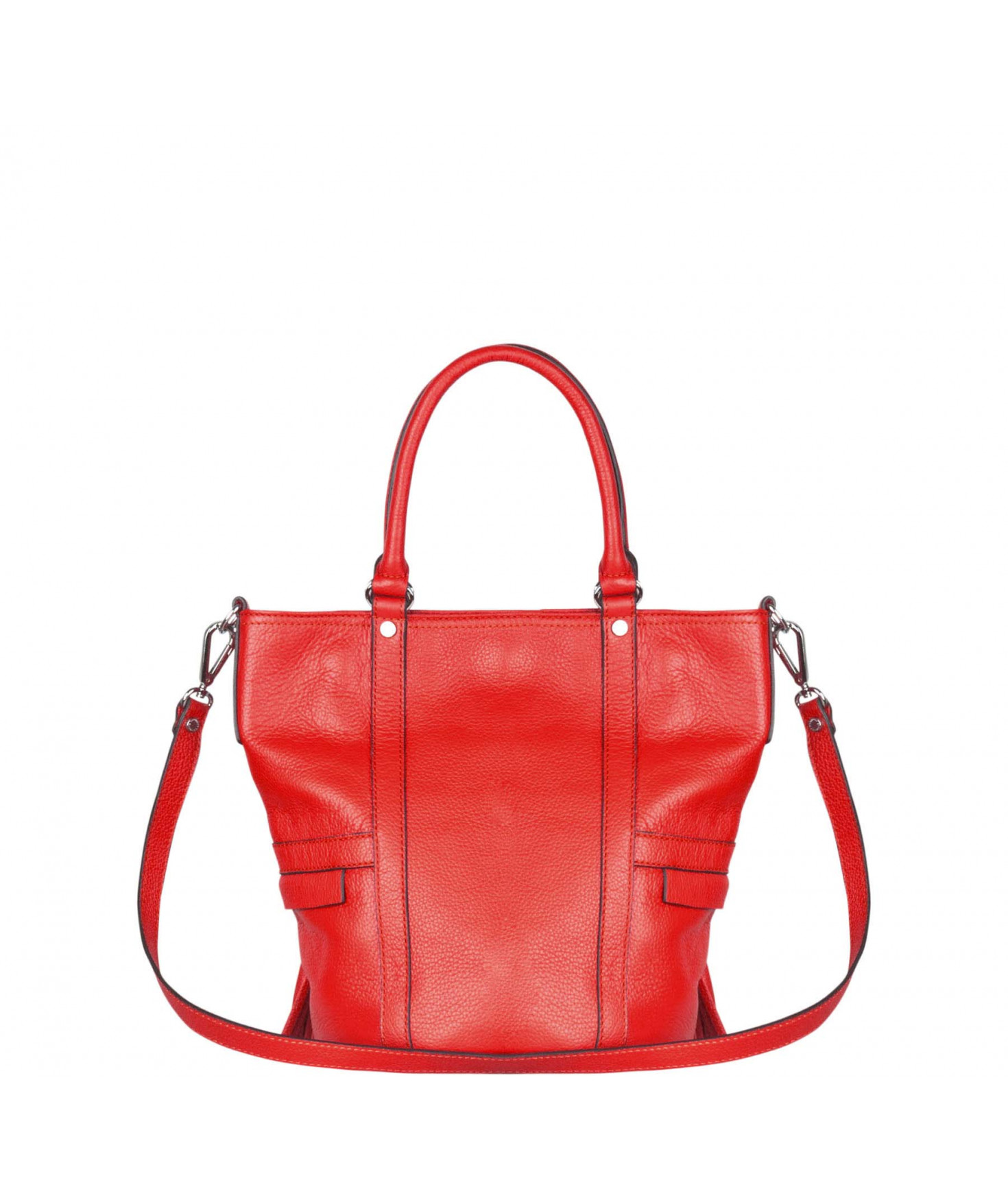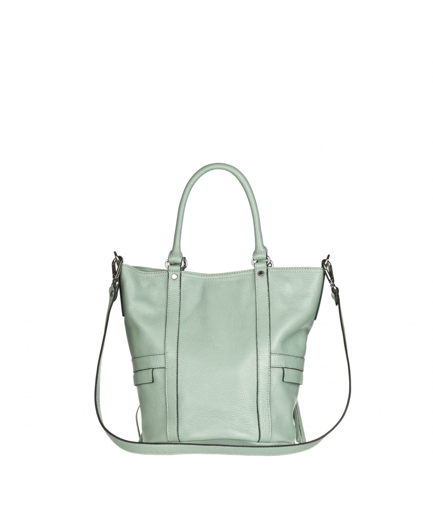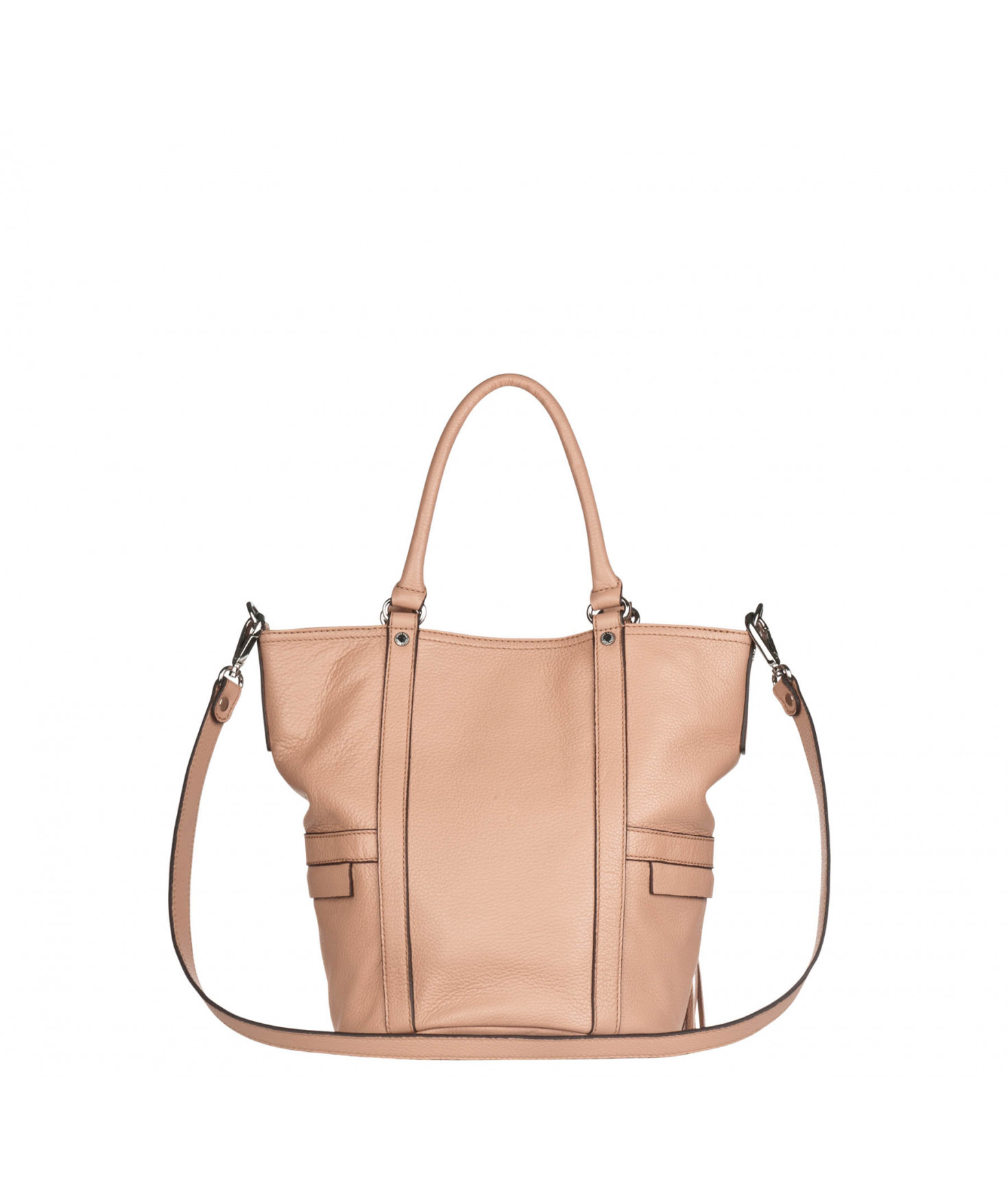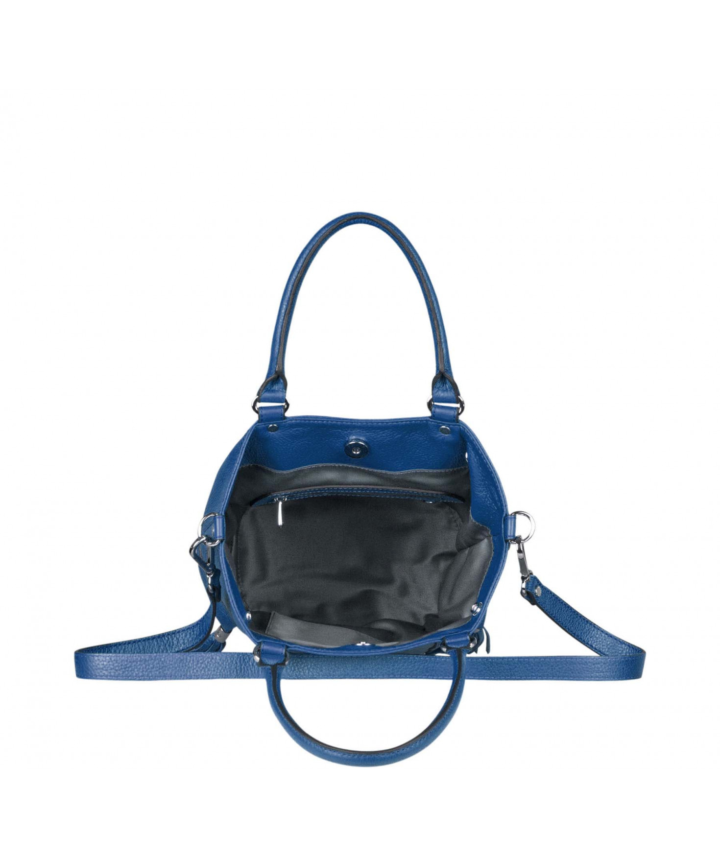 Sac seau porté épaule, fermé par magnétique, deux anses et une bandoulière amovible.