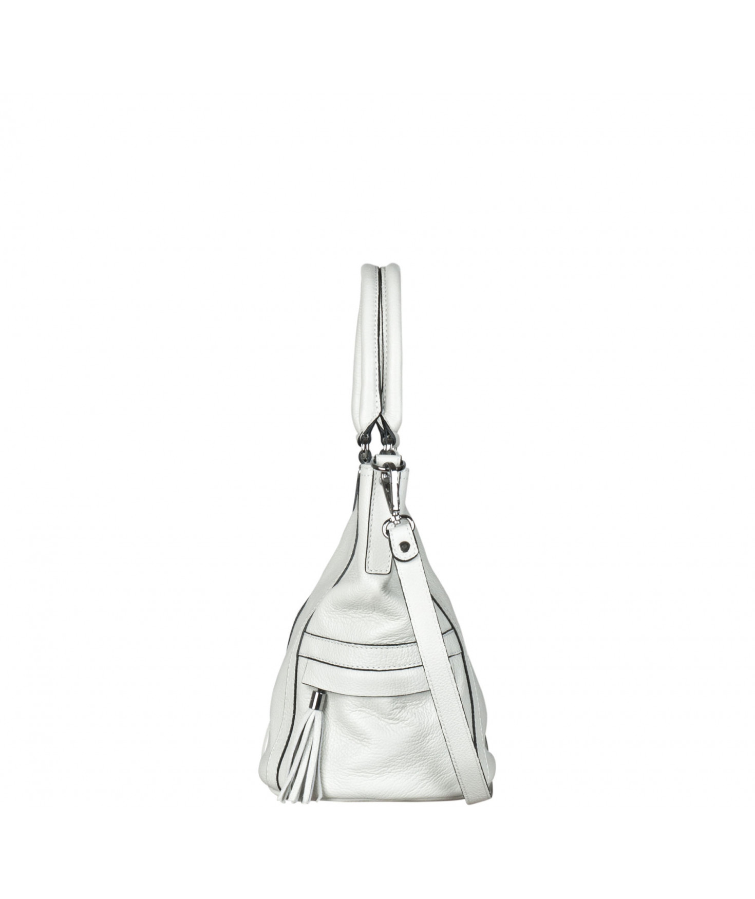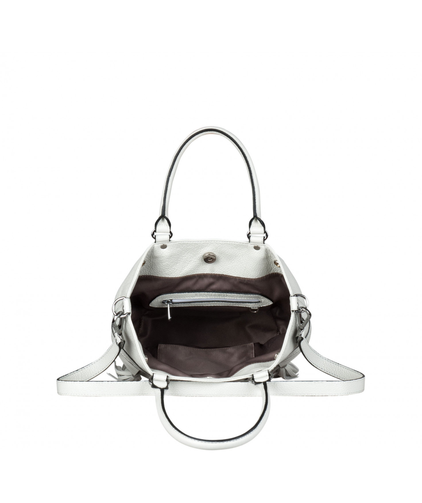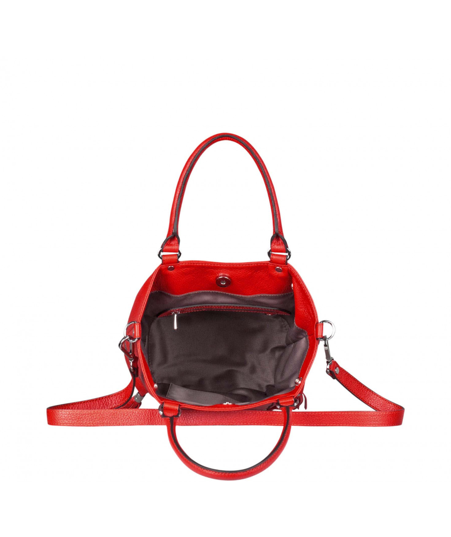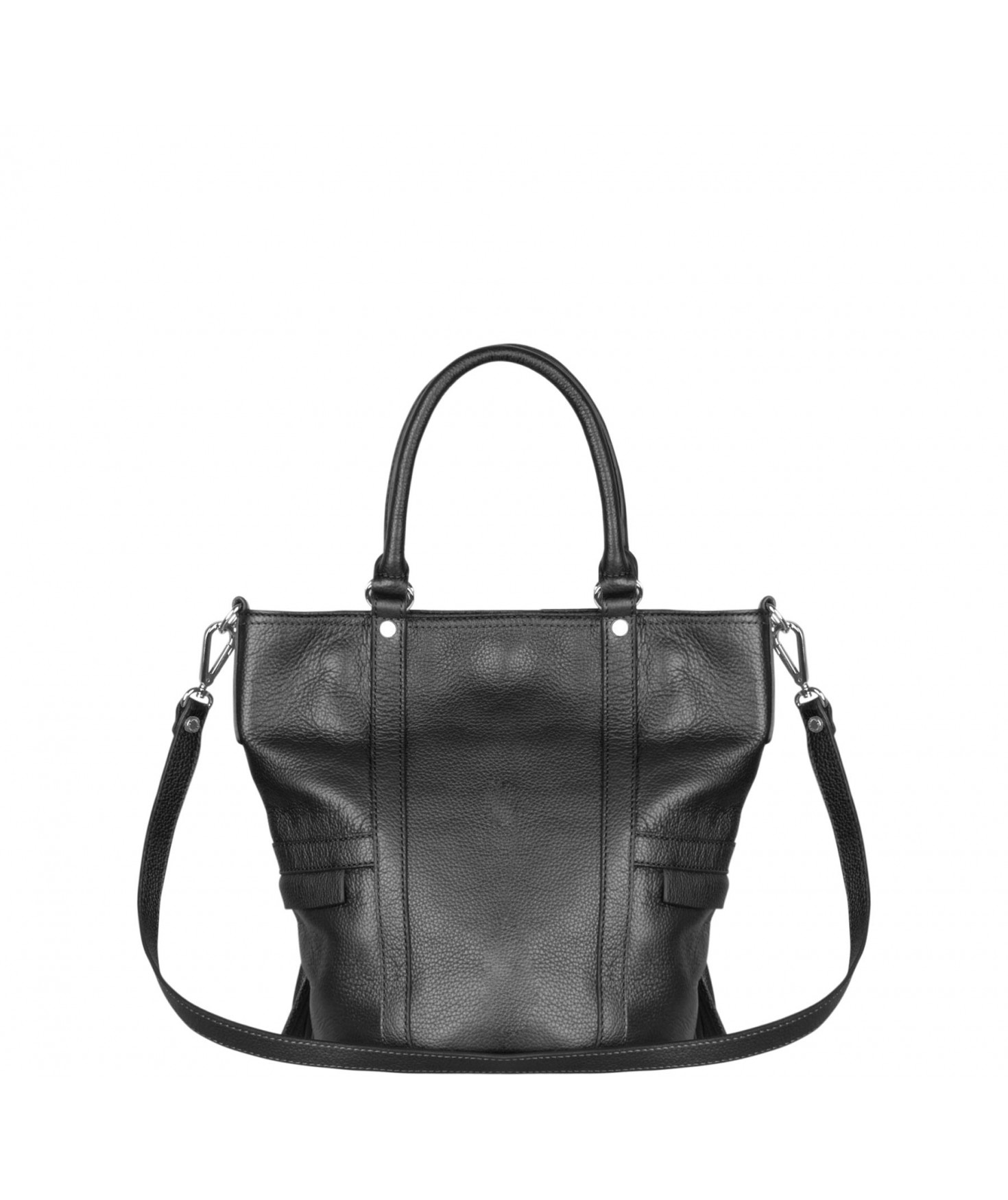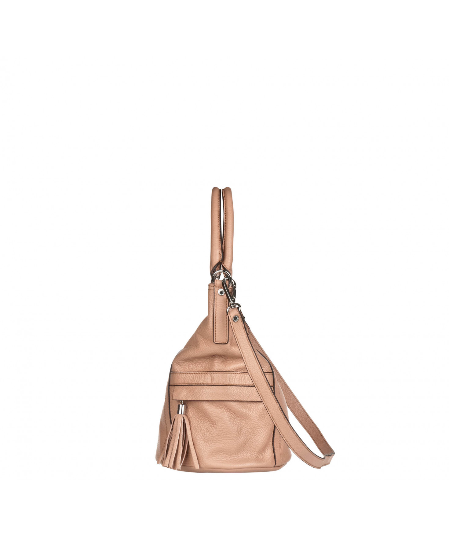 Sac seau porté épaule, fermé par magnétique, deux anses et une bandoulière amovible.