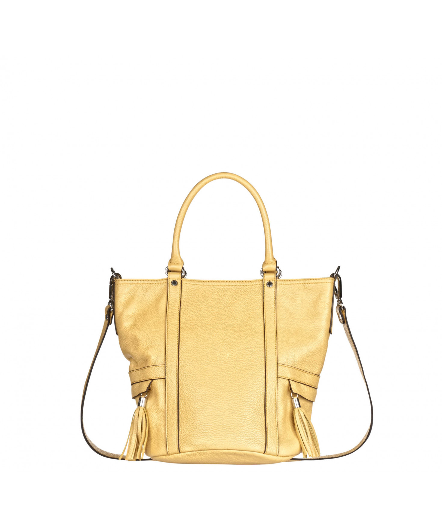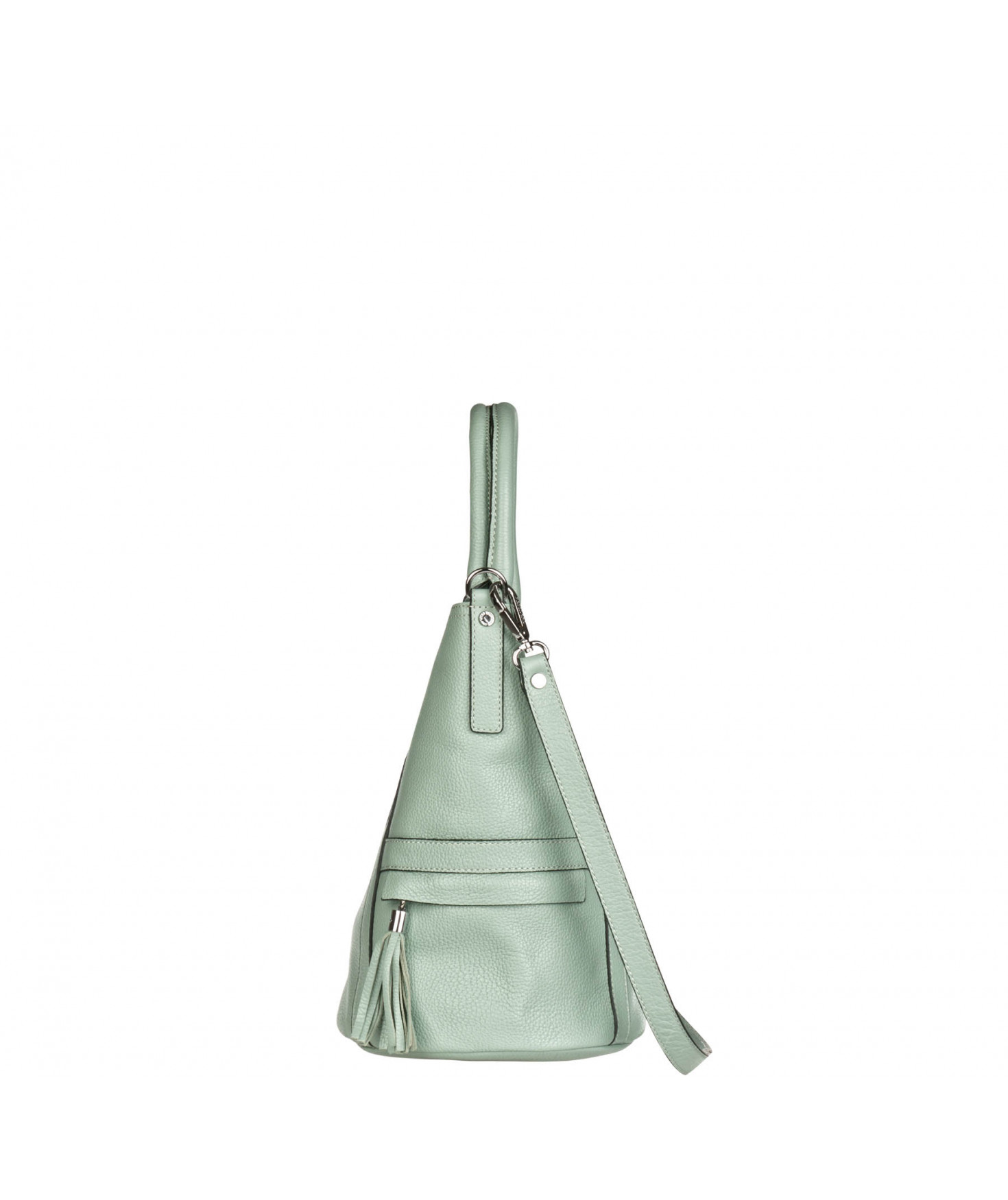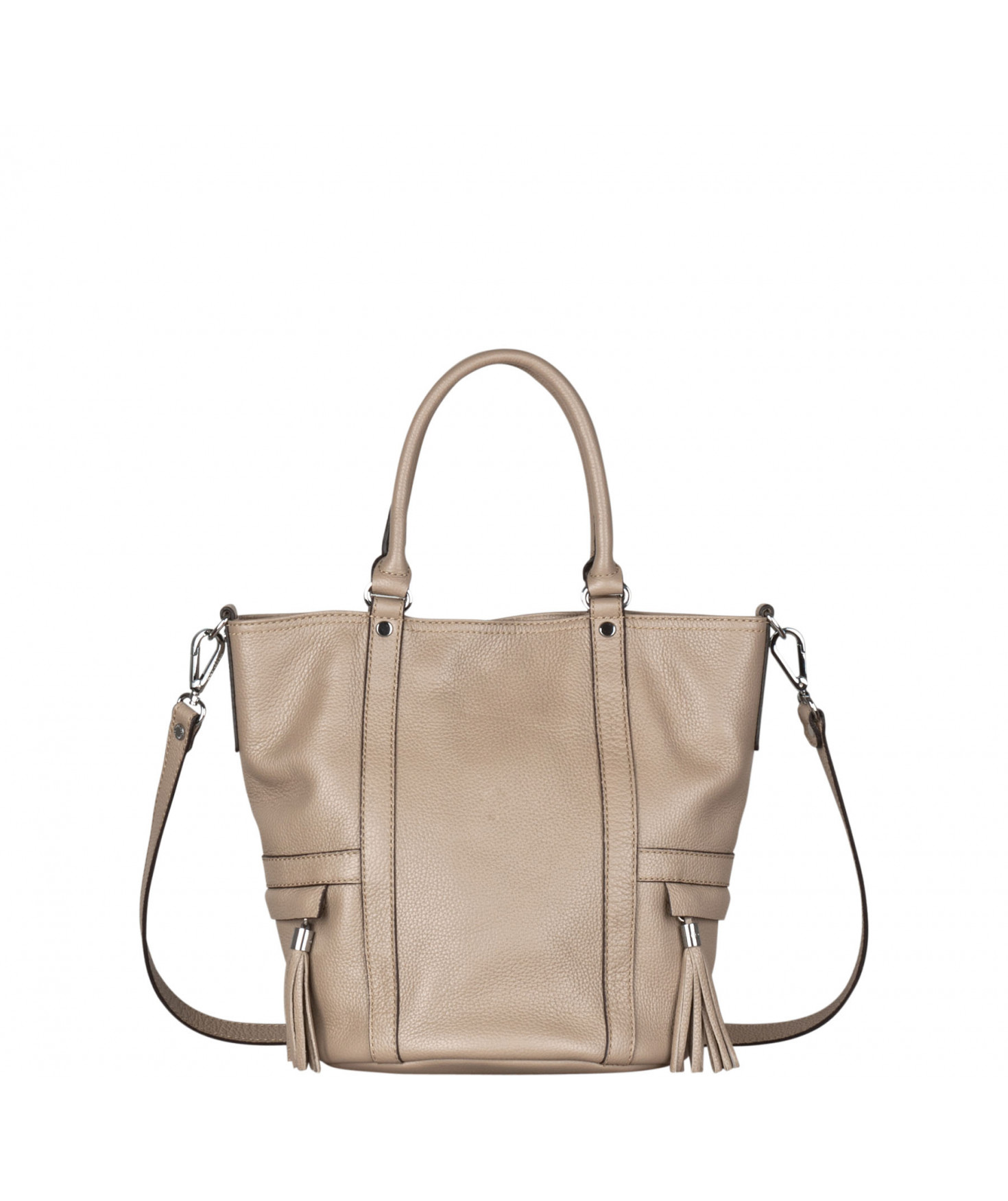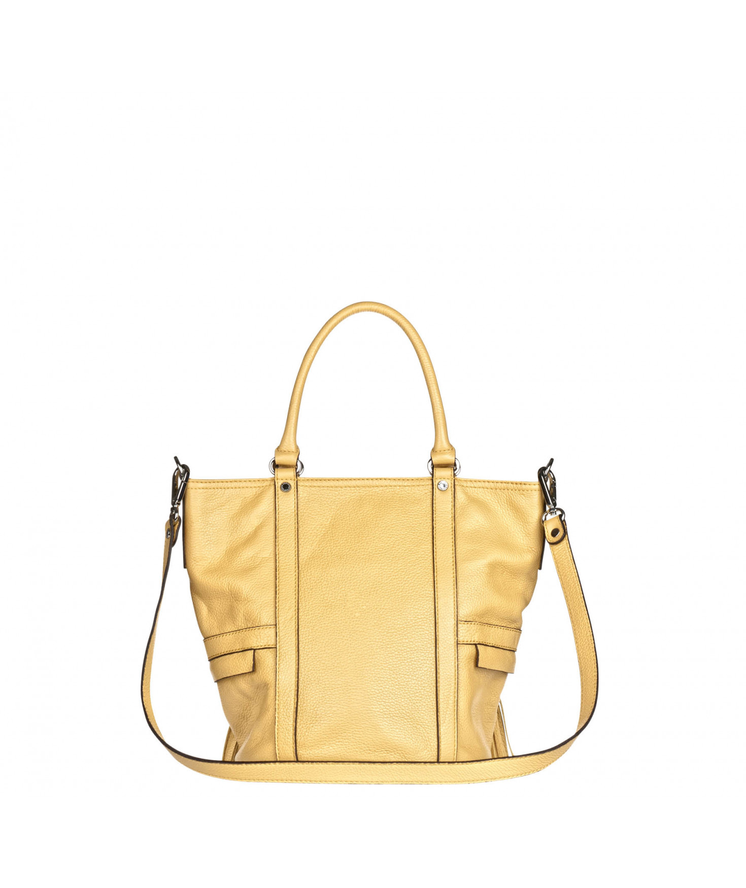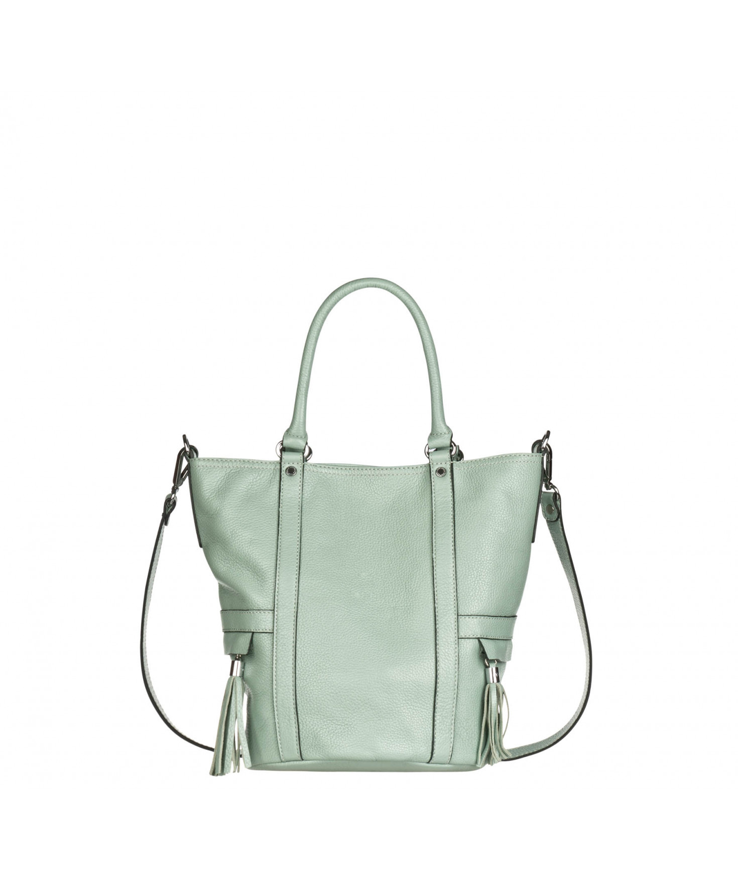 Sac seau porté épaule, fermé par magnétique, deux anses et une bandoulière amovible.